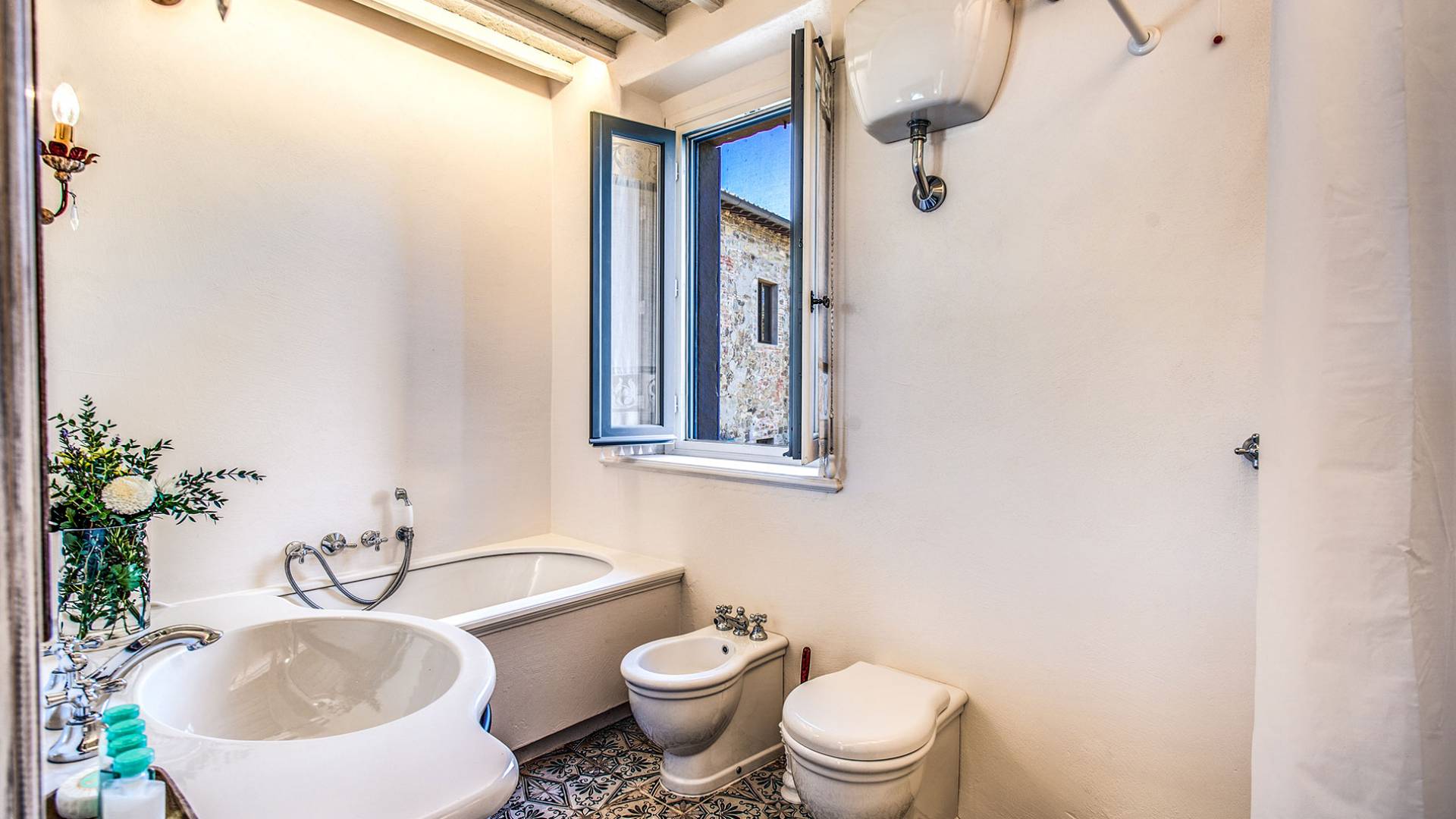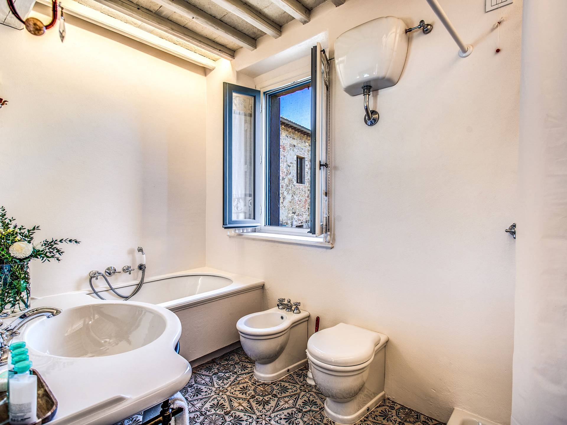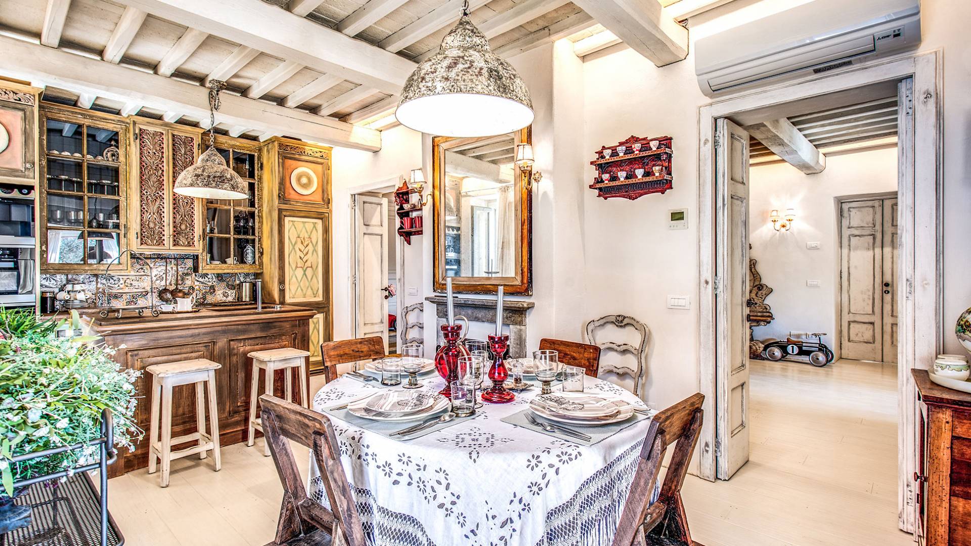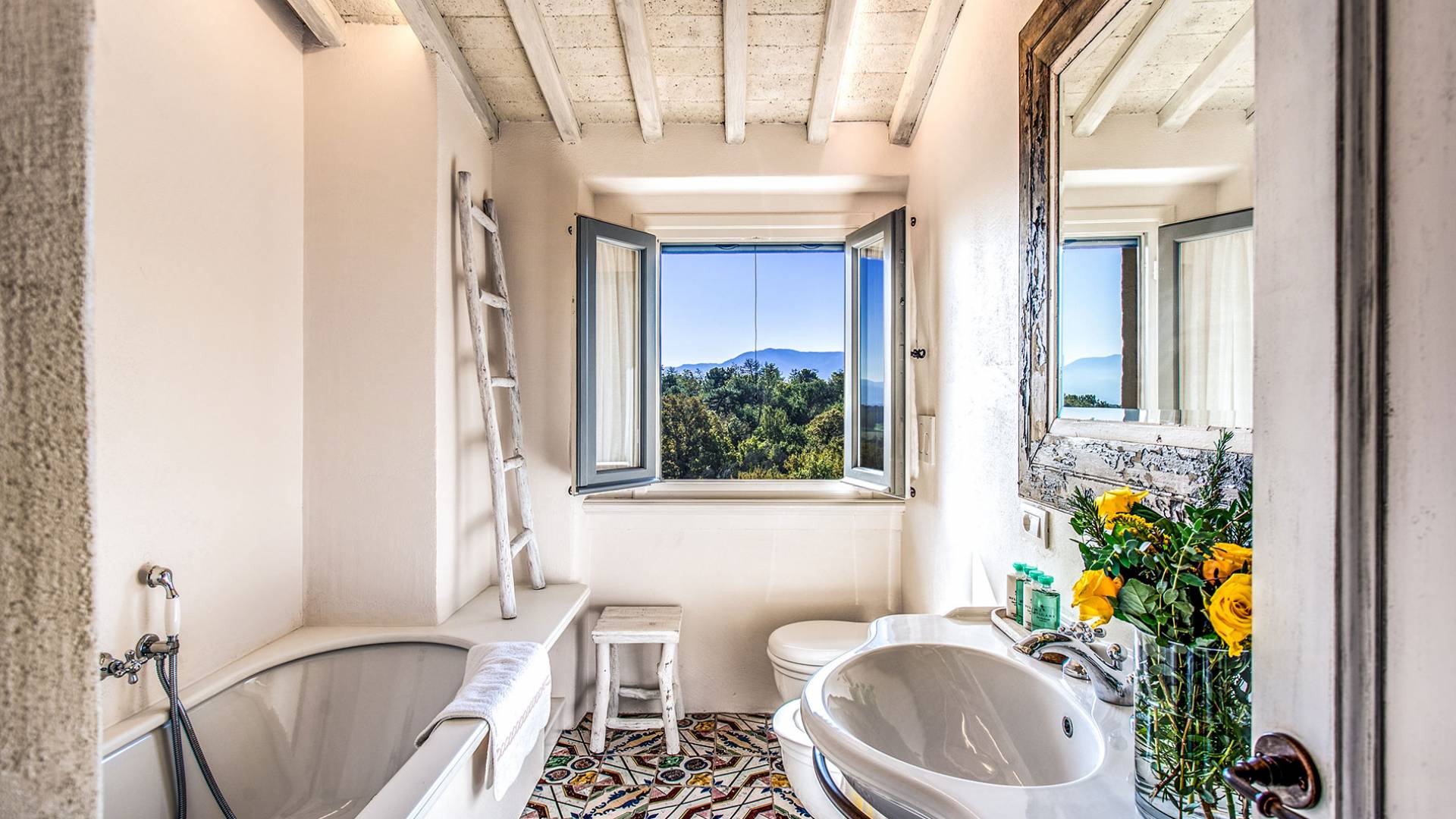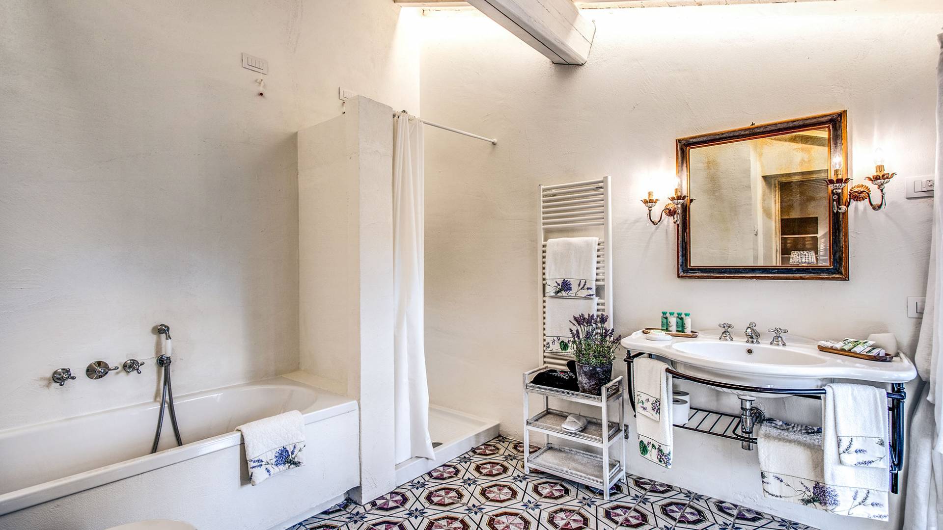 It is decorated in new-classic style with washed walls in pale shades, pietra serena and Italian wood. Countrymodern, the bohemian aesthetic of the property reflects its light and welcoming vibe: fresh and vintage, it oozes tranquillity and a home-like feeling which was exactly the intention of the owners, a couple of young artists and entrepreneurs dividing their time between Lucca, Forte dei Marmi, Ibiza and Geneva. The style encompasses traditional elements brought into the now with updated add-on’s for today’s lifestyles, offering a tennis court, a soccer field, a helipad, a pizza woodenoven and a security system with controlled circuit. Environmentally friendly and ecorestored, it also features a twenty metres heated swimming pool with view on the estate vineyards.