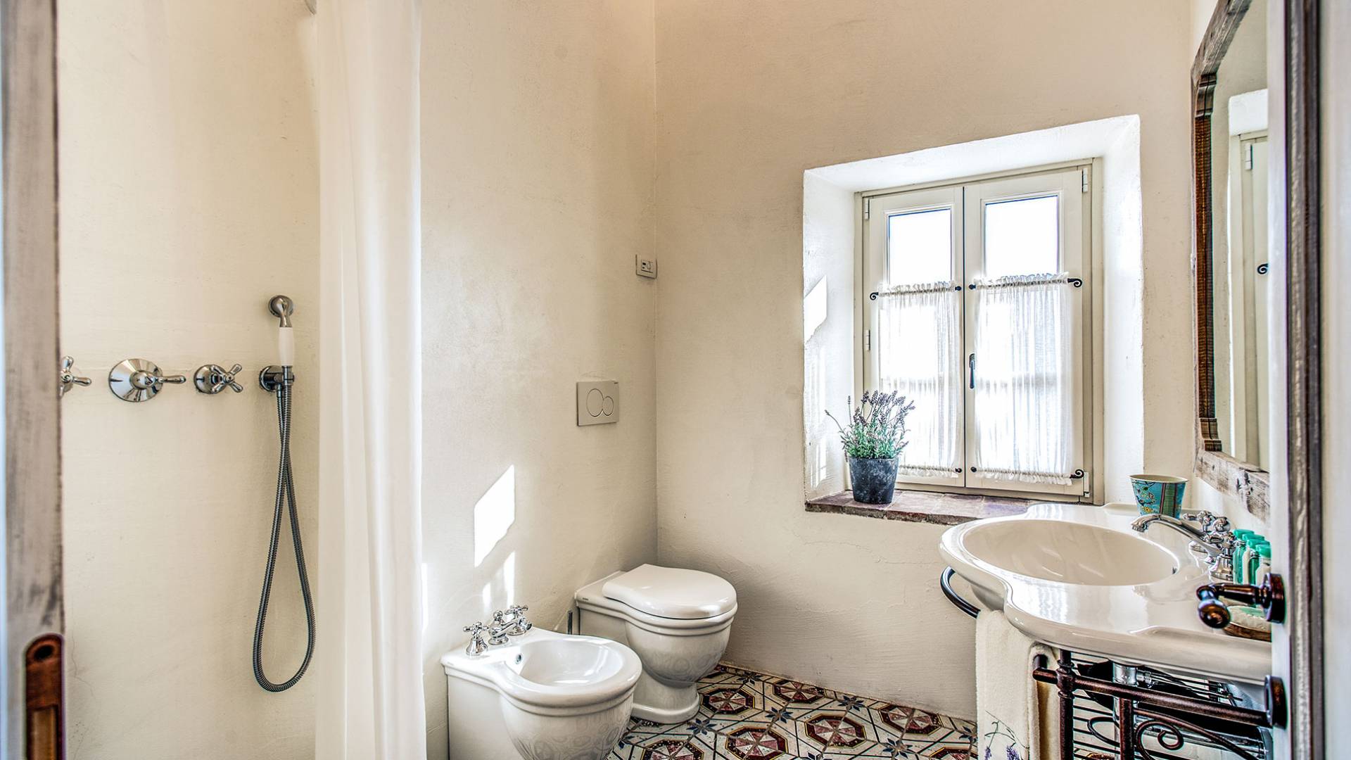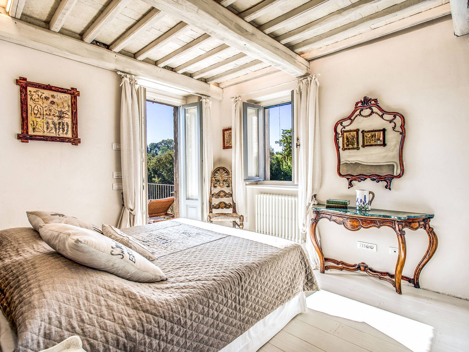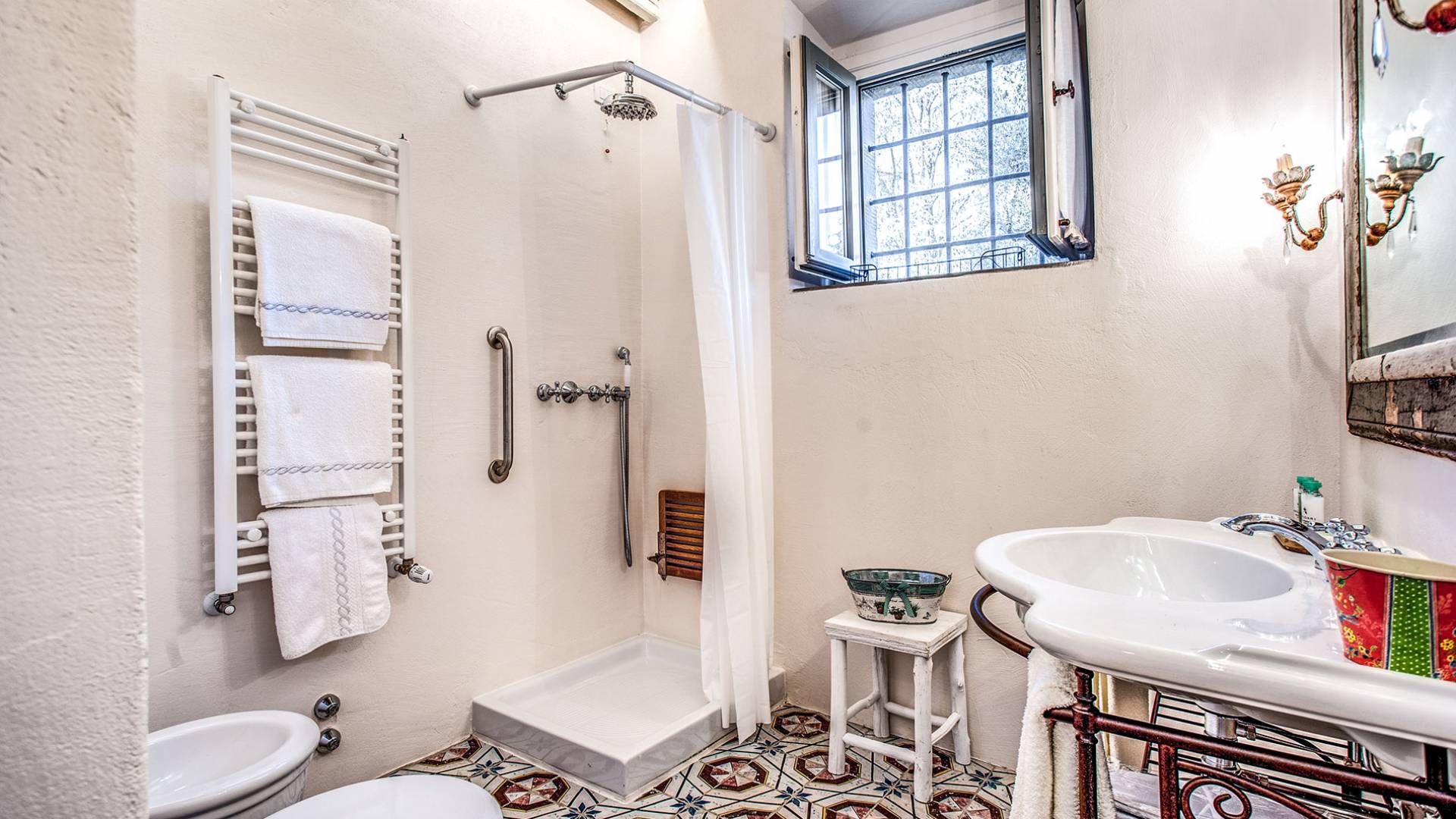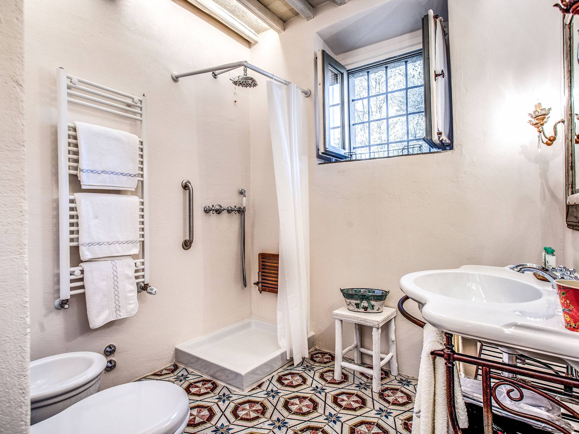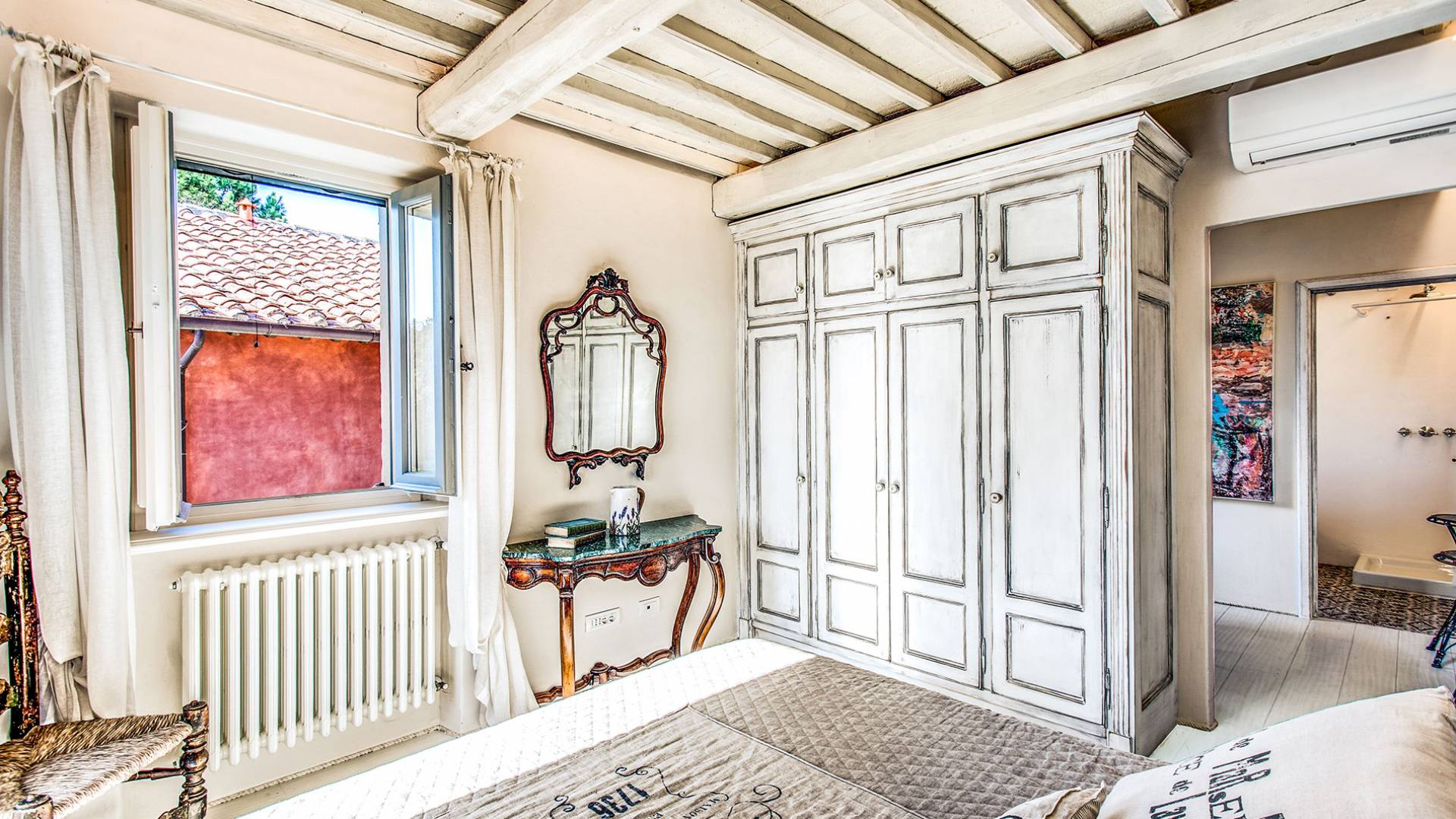 Featuring 6 bedrooms each with private bathroom, on the ground floor we find a living room, a fully equipped kitchen, and a service bathroom. On the same floor one double bedroom with wardrobe. On the first floor, paved in parquet, stand two double bedrooms with custom-made furnishings and private terraces. The last three bedrooms are located on the second floor. The last three bedrooms are located on the second floor.