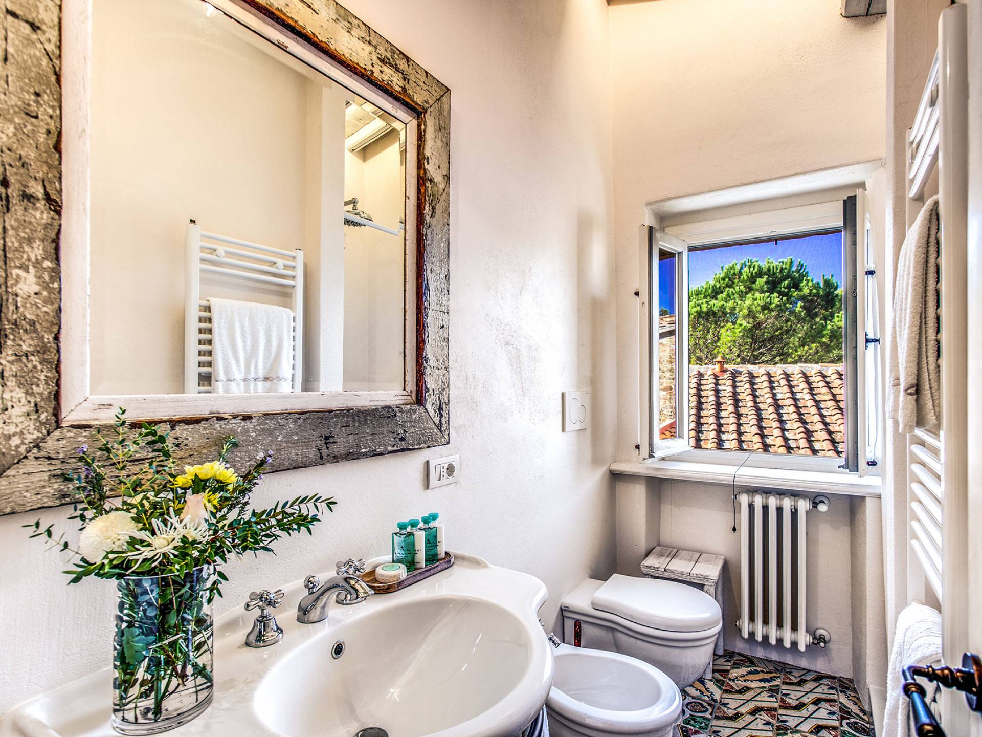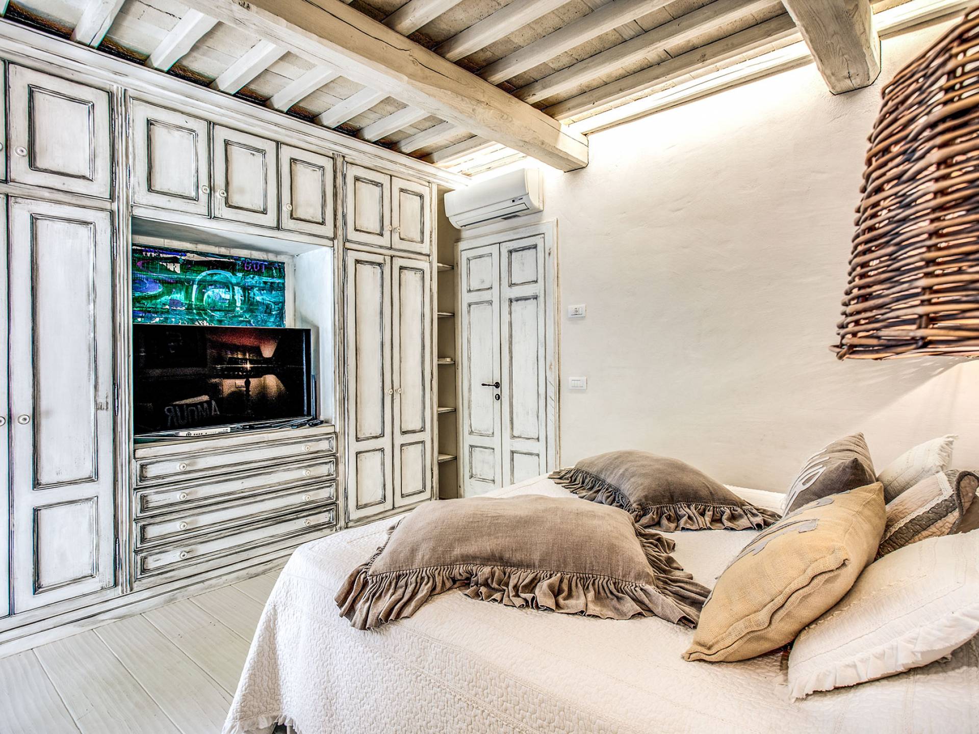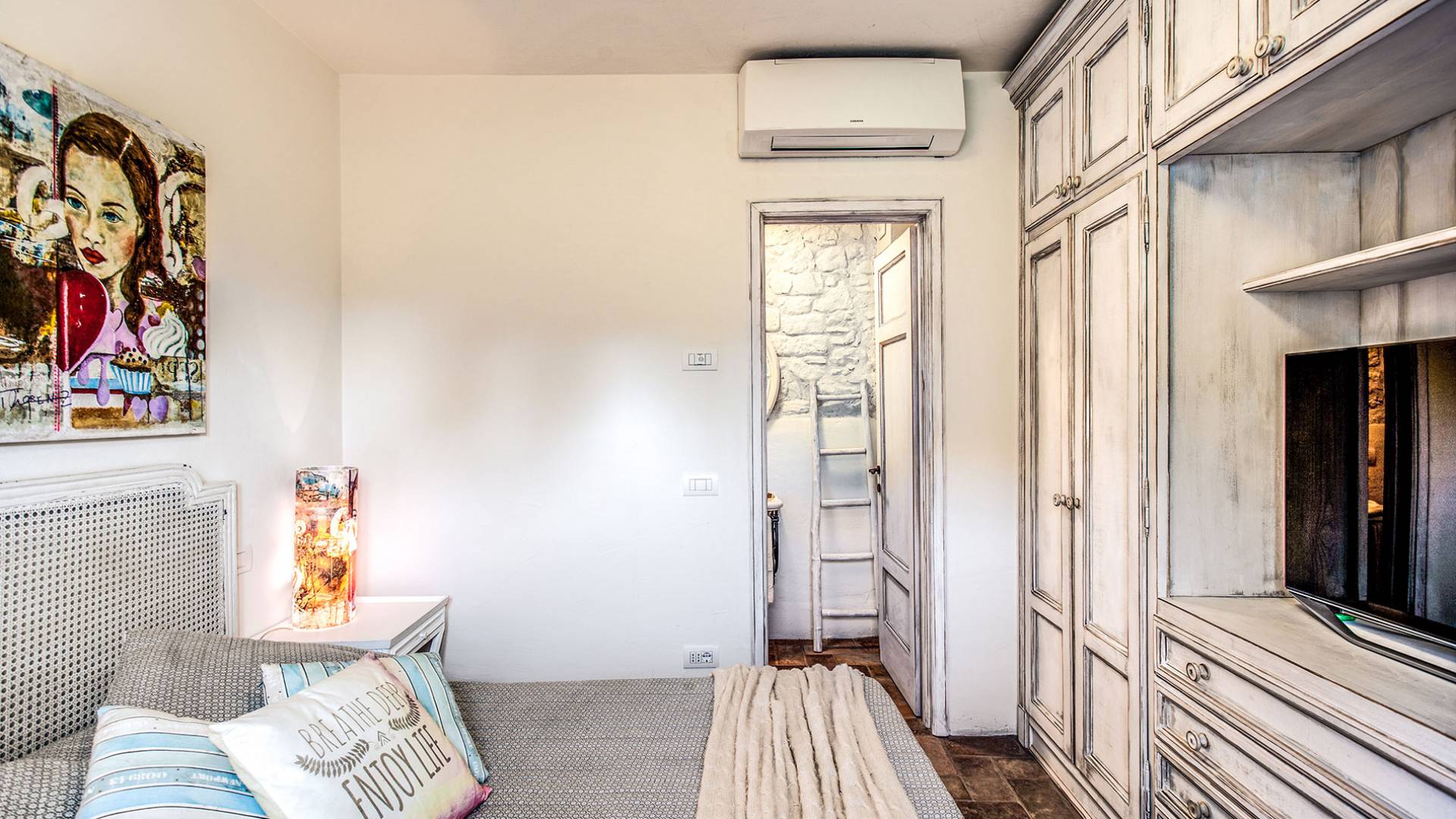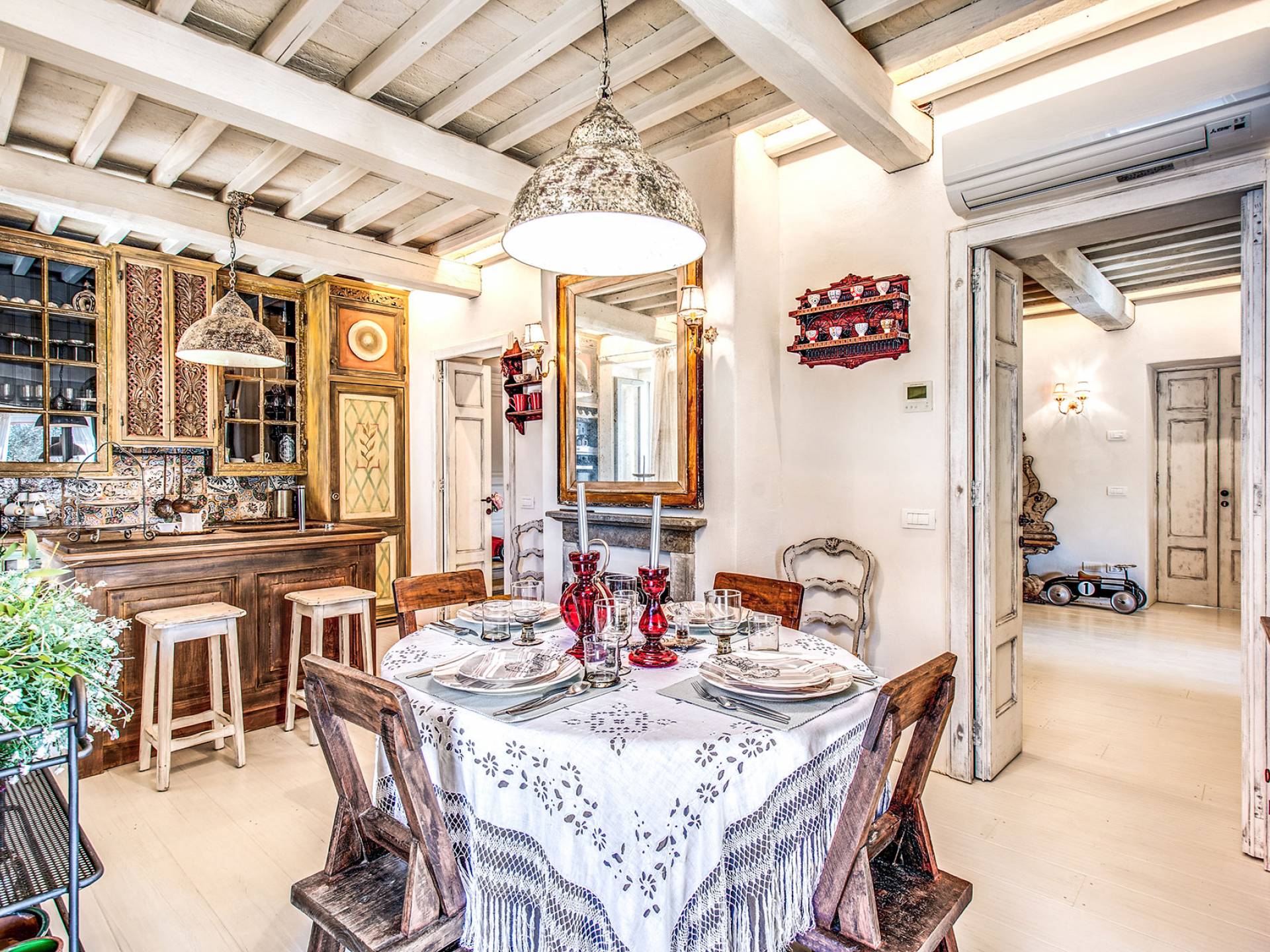 Featuring 6 bedrooms each with private bathroom, on the ground floor we find a living room, a fully equipped kitchen, and a service bathroom. On the same floor one double bedroom with wardrobe. On the first floor, paved in parquet, stand two double bedrooms with custom-made furnishings and private terraces. The last three bedrooms are located on the second floor. The last three bedrooms are located on the second floor.