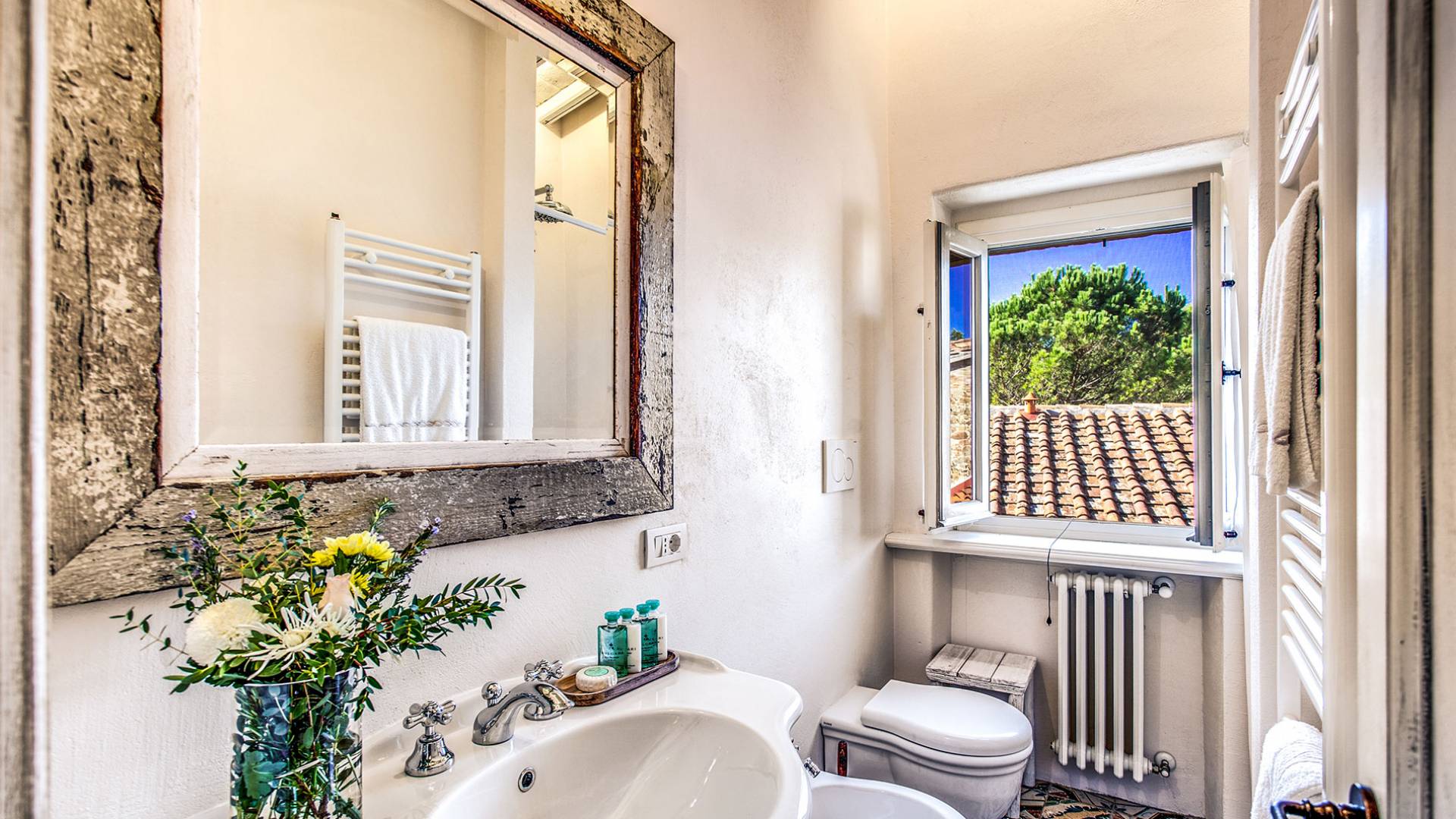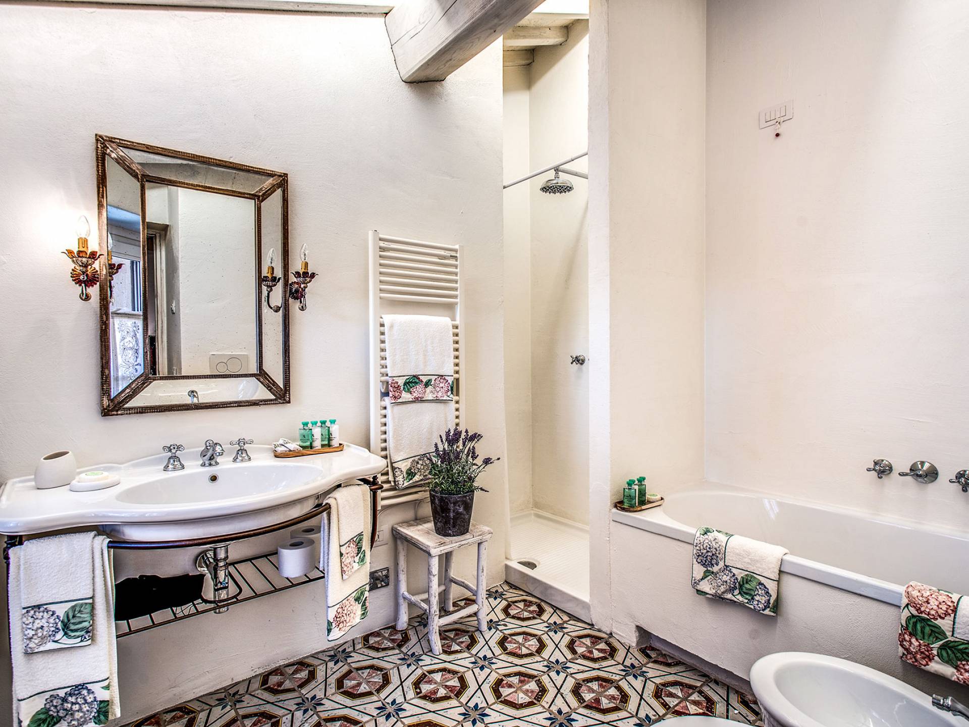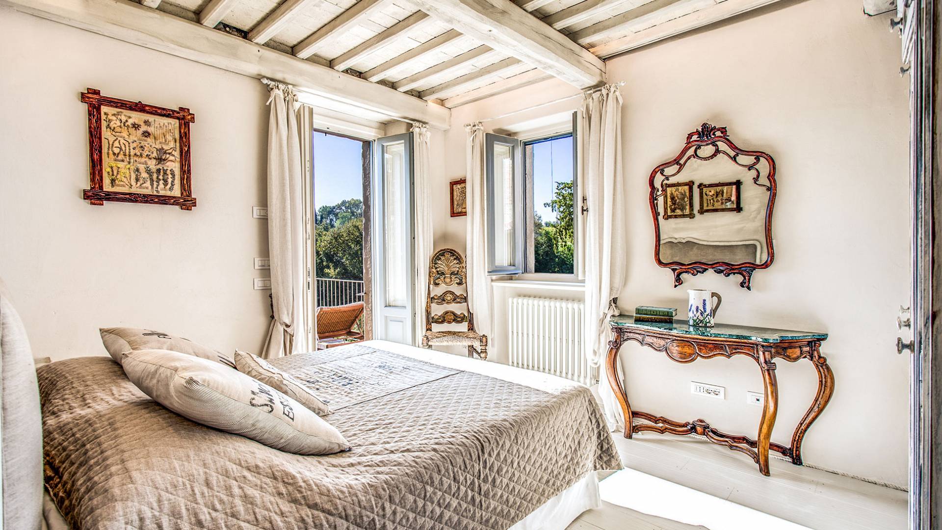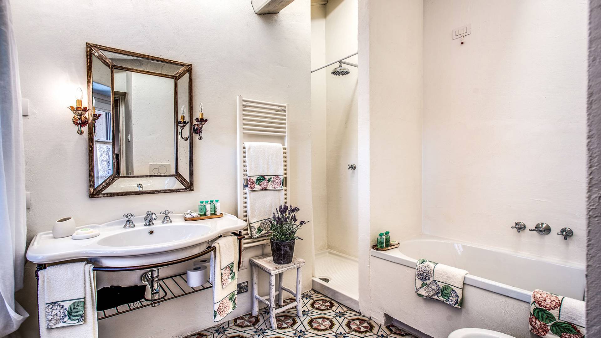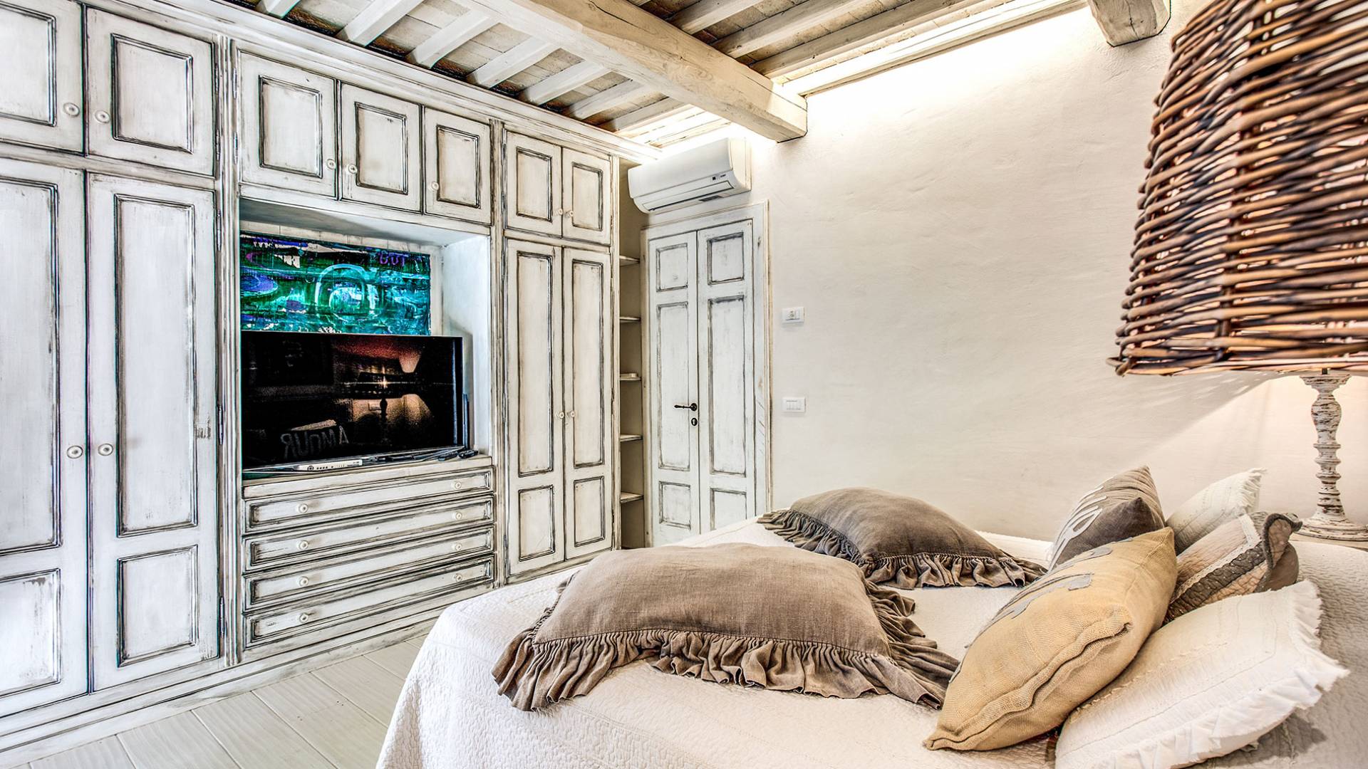 Featuring 6 bedrooms each with private bathroom, on the ground floor we find a living room, a fully equipped kitchen, and a service bathroom. On the same floor one double bedroom with wardrobe. On the first floor, paved in parquet, stand two double bedrooms with custom-made furnishings and private terraces. The last three bedrooms are located on the second floor. The last three bedrooms are located on the second floor.