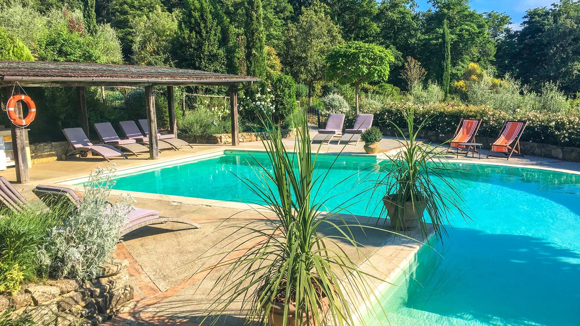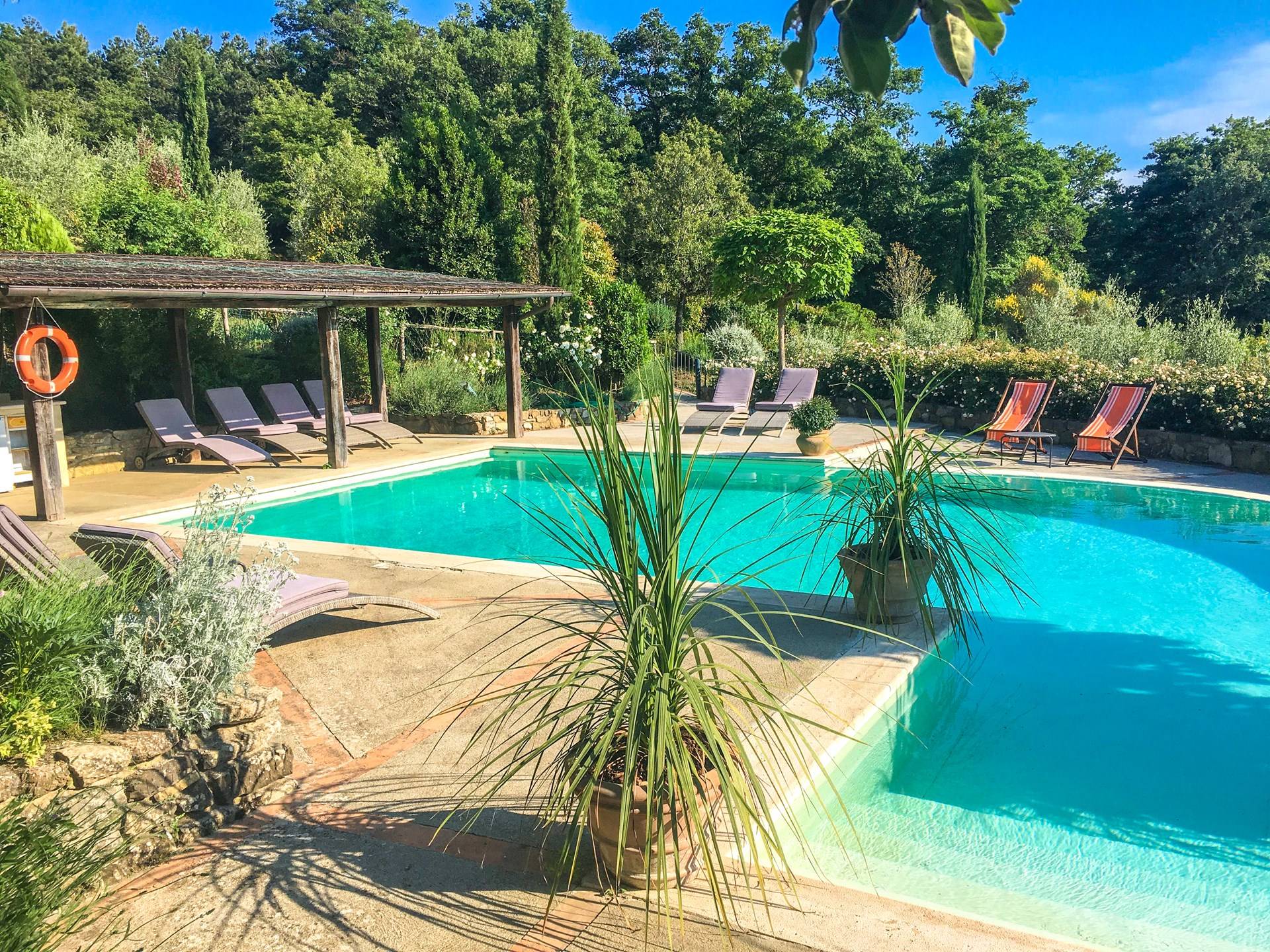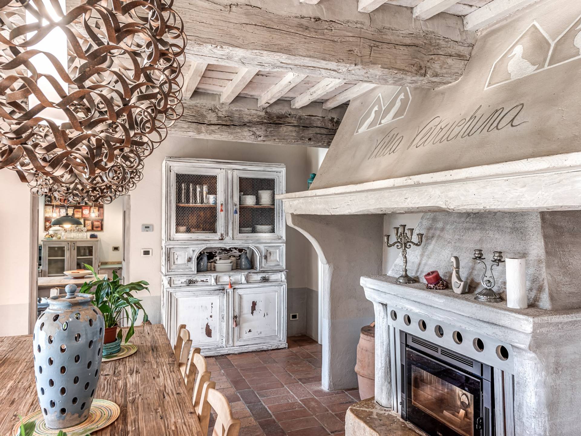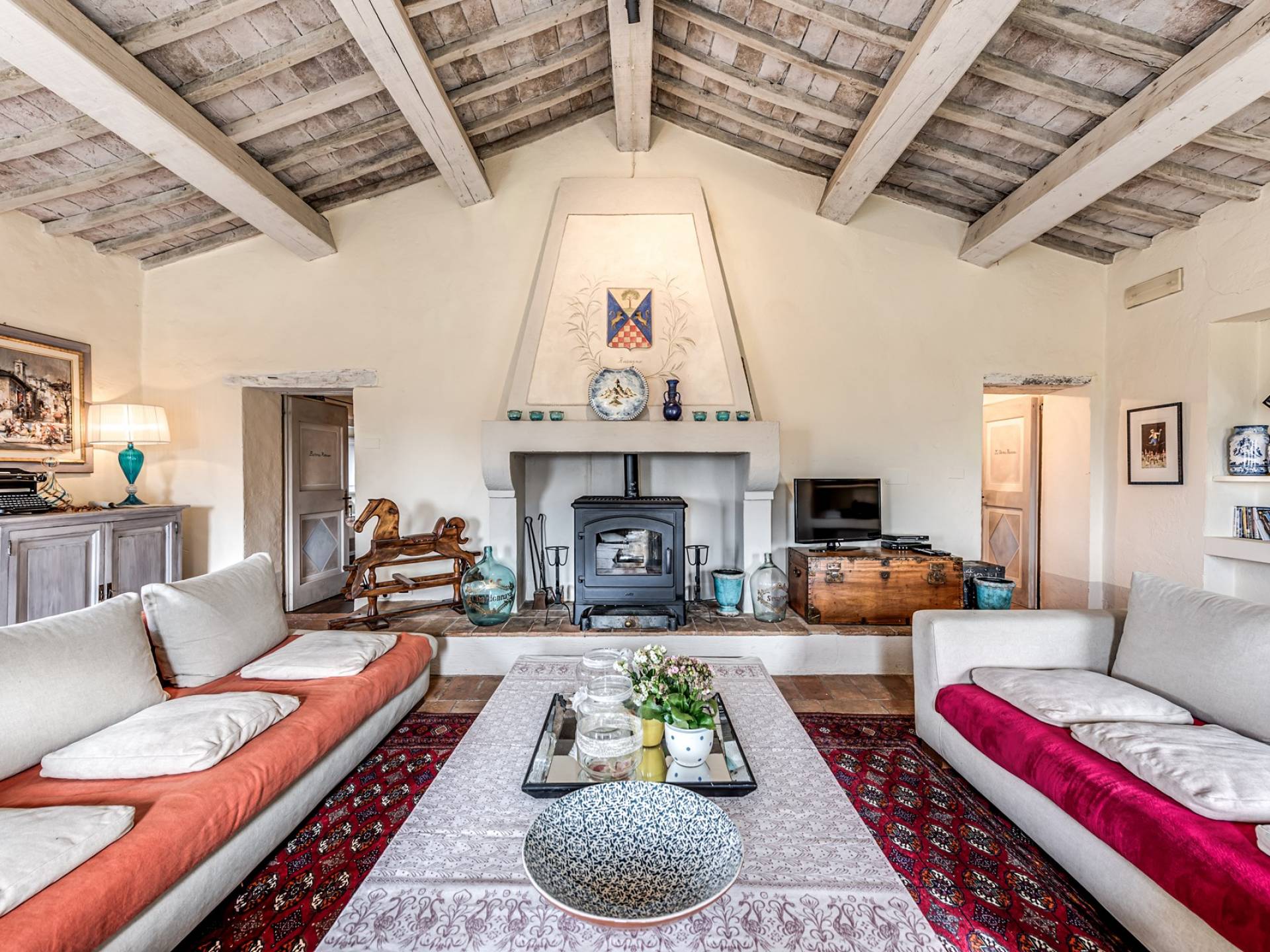 it features a landscaped garden and a heated swimming pool. In a strategic position to visit all the most iconic destinations of central Italy, this rustic estate offers seven bedrooms decorated in classic style with warm tones. The property, featuring 350 square meters of living space and 10.000 square meters of gardens, channels the Tuscan lifestyle as seen in movies. Local activities include hiking, relaxing in thermal waters, and wine tasting: the concierge can help guests hire bicycles, while the local staff can work with you to create a custom culinary experience. Interiors include a spacious living room with a terrace, a dining area with an impressive wooden table seating 14 guests, a well-equipped kitchen designed by the chef in charge of in-villa catering, and seven bedrooms. The villa can accommodate a total of 14 guests in 7 bedrooms, 6 bathrooms, and 1 half-bathroom.