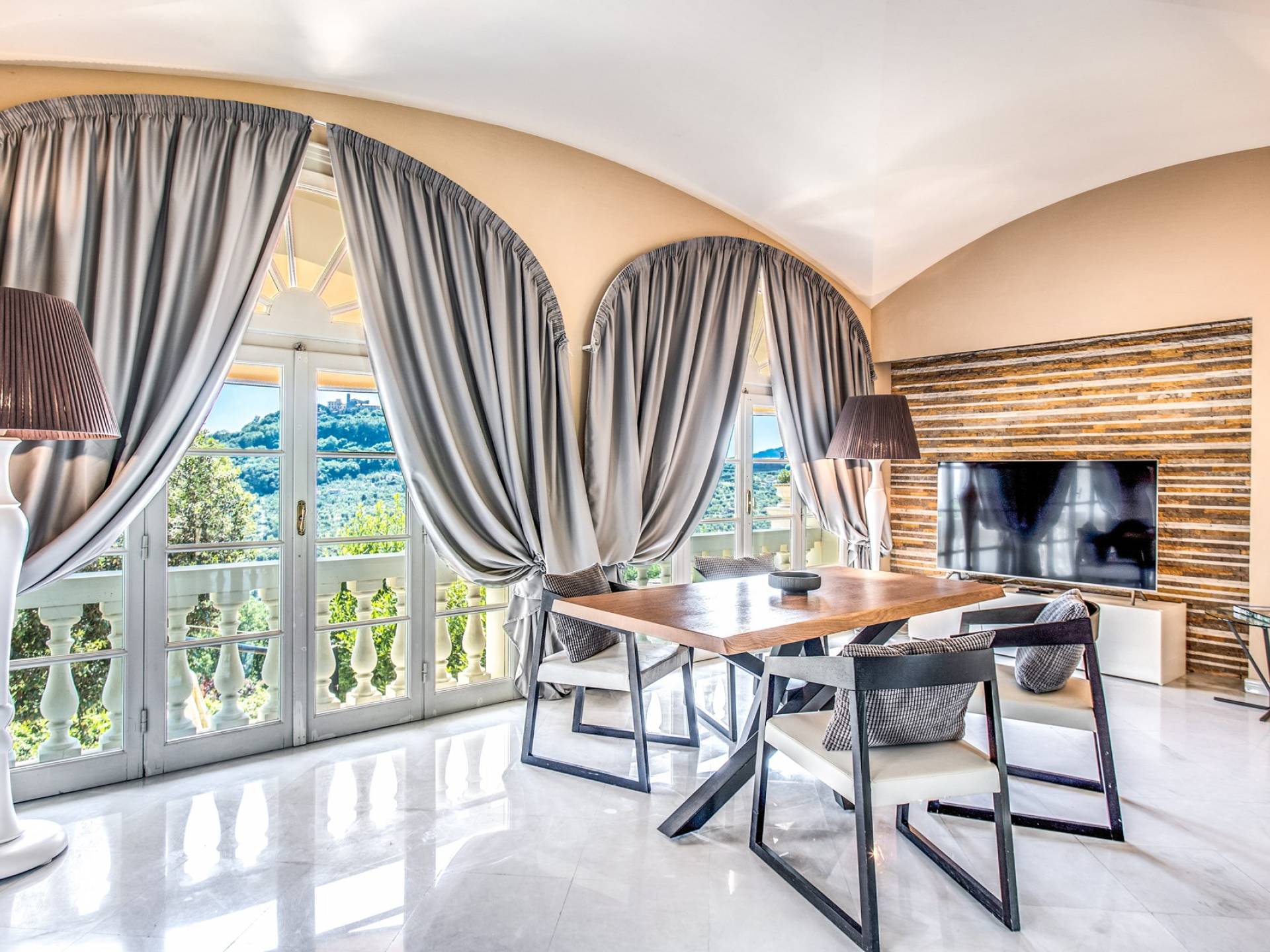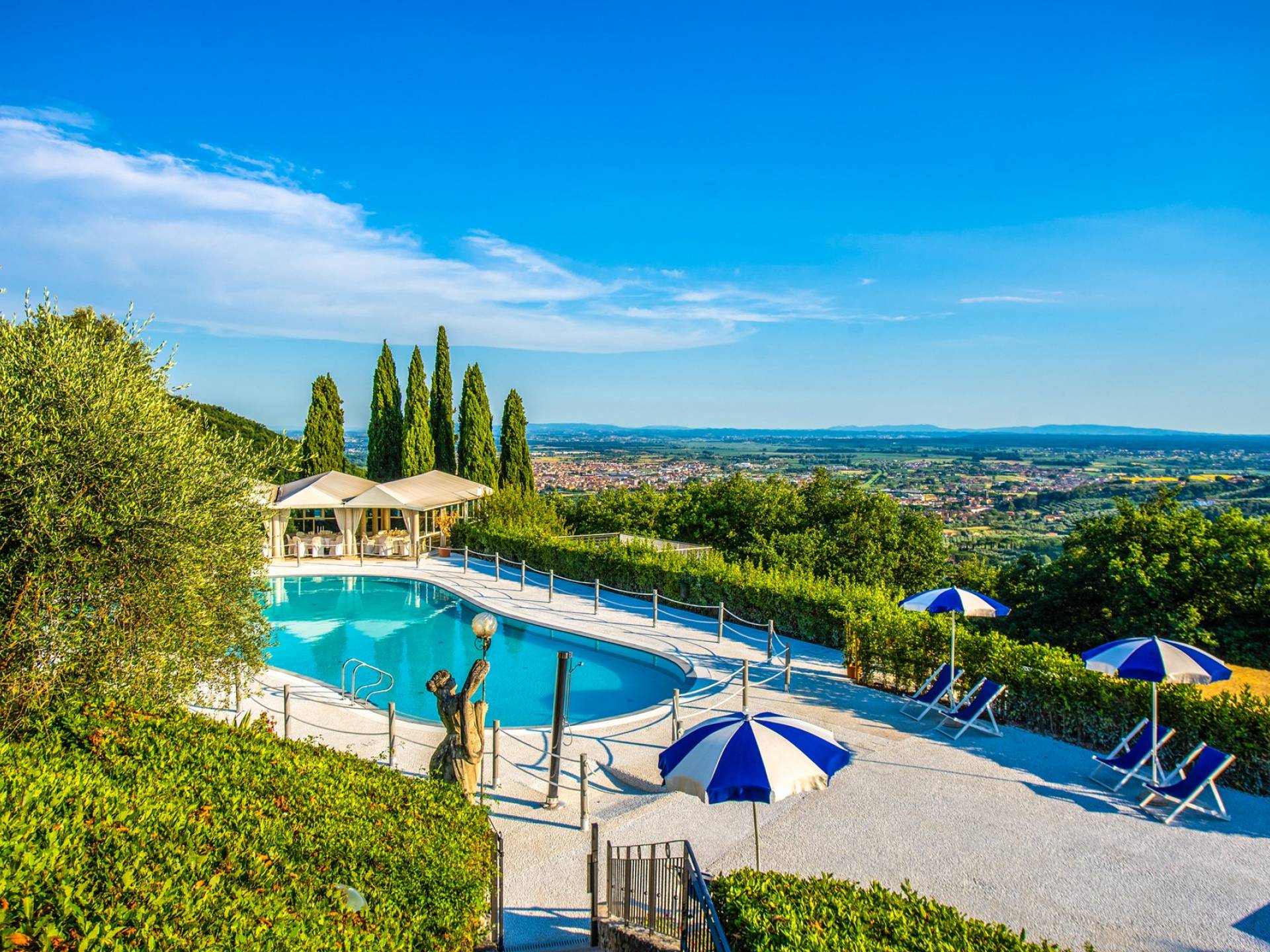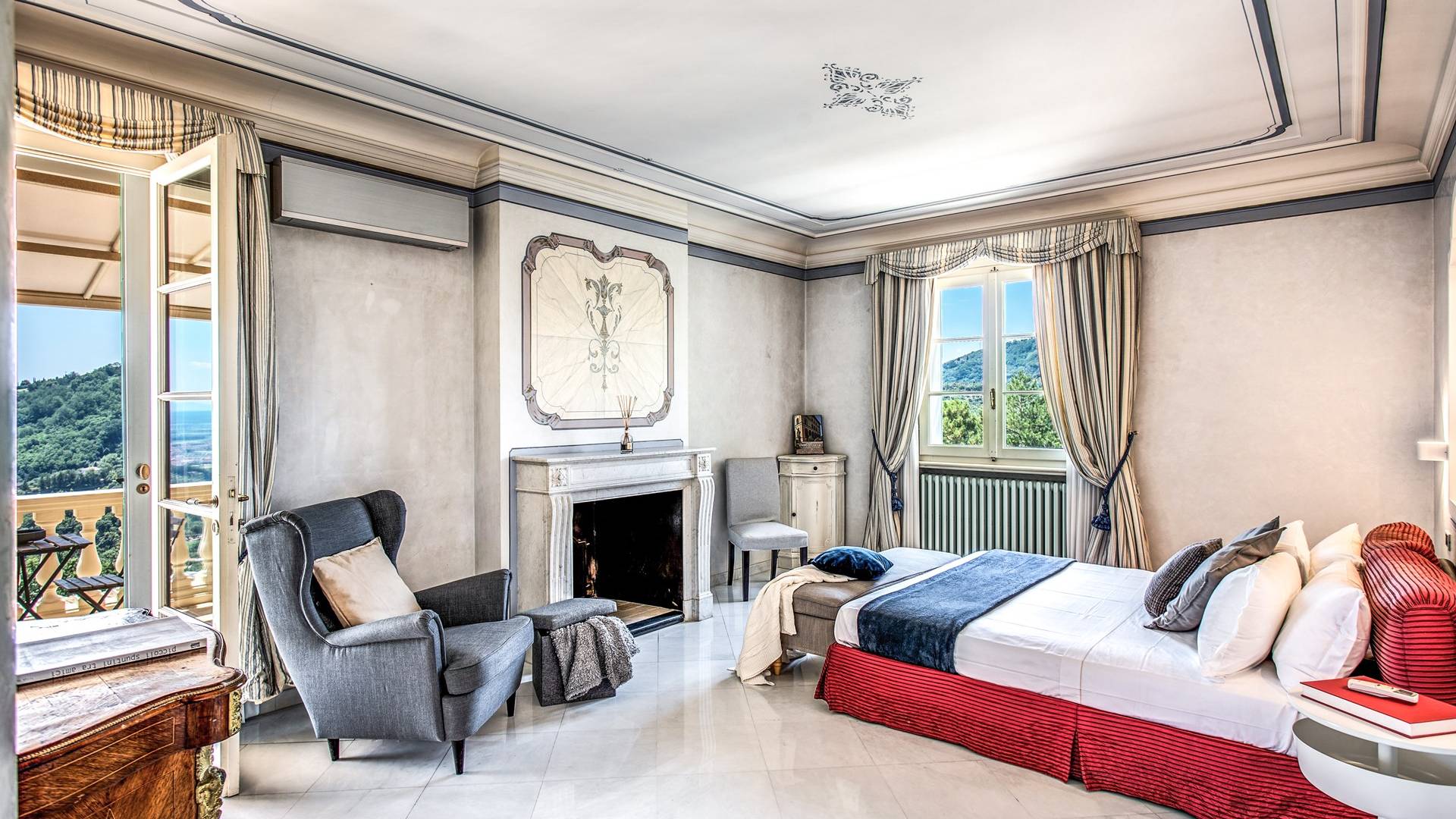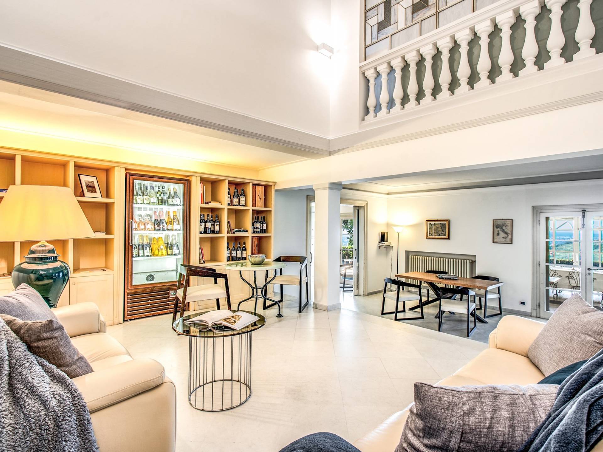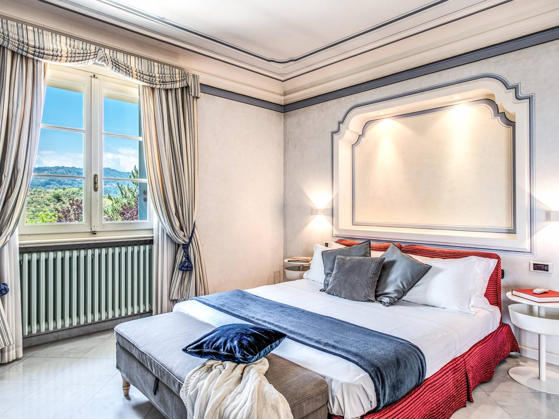 Villa Convento Tuscany is set on the highest point of the property, the three-level main house affords views of the scenic landscape from almost every angle. On the sweeping grounds, there’s a large pool, a solarium, and multiple chairs and chaise-longues for guests or to use as rentals. Hidden away, yet very close to the village of Montecatini Alto center, this estate offers six bedrooms decorated in elegant style with color-washed walls in pale shades, and contemporary fabrics, which lend a very personal touch.