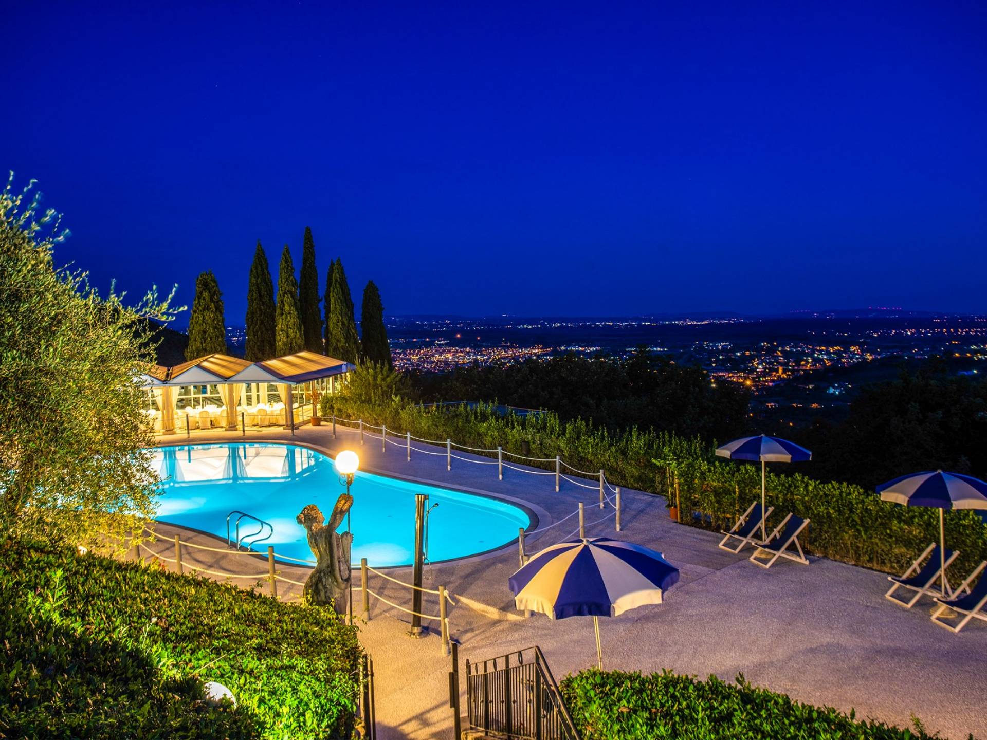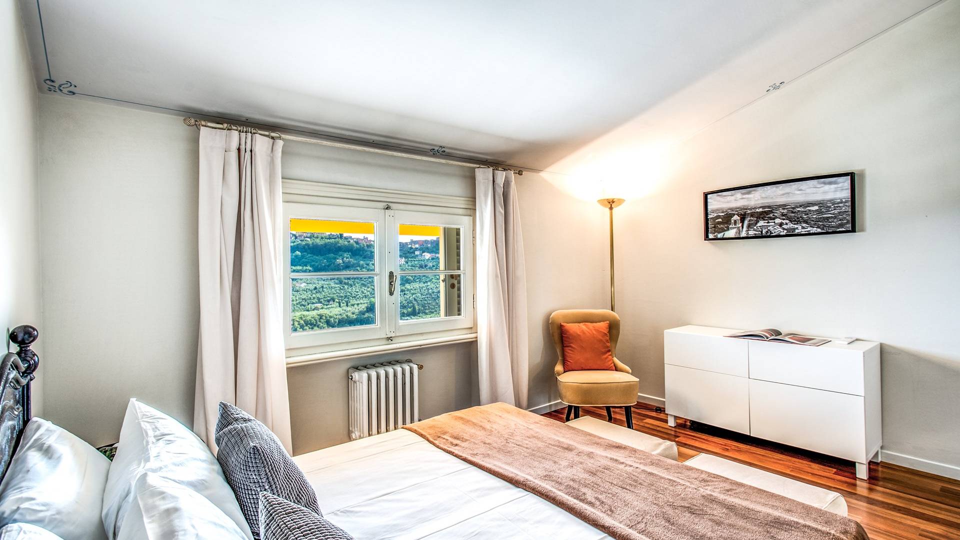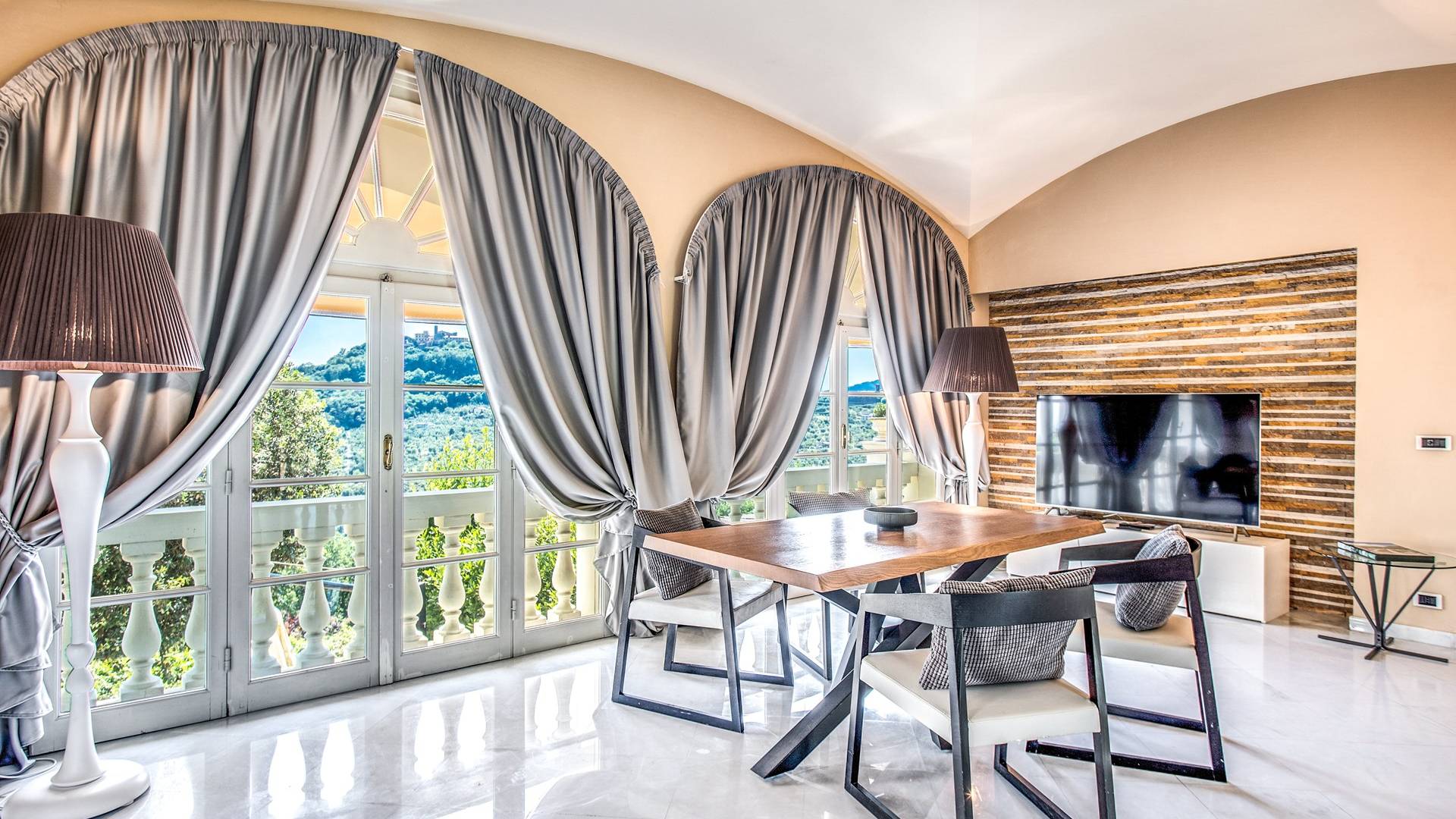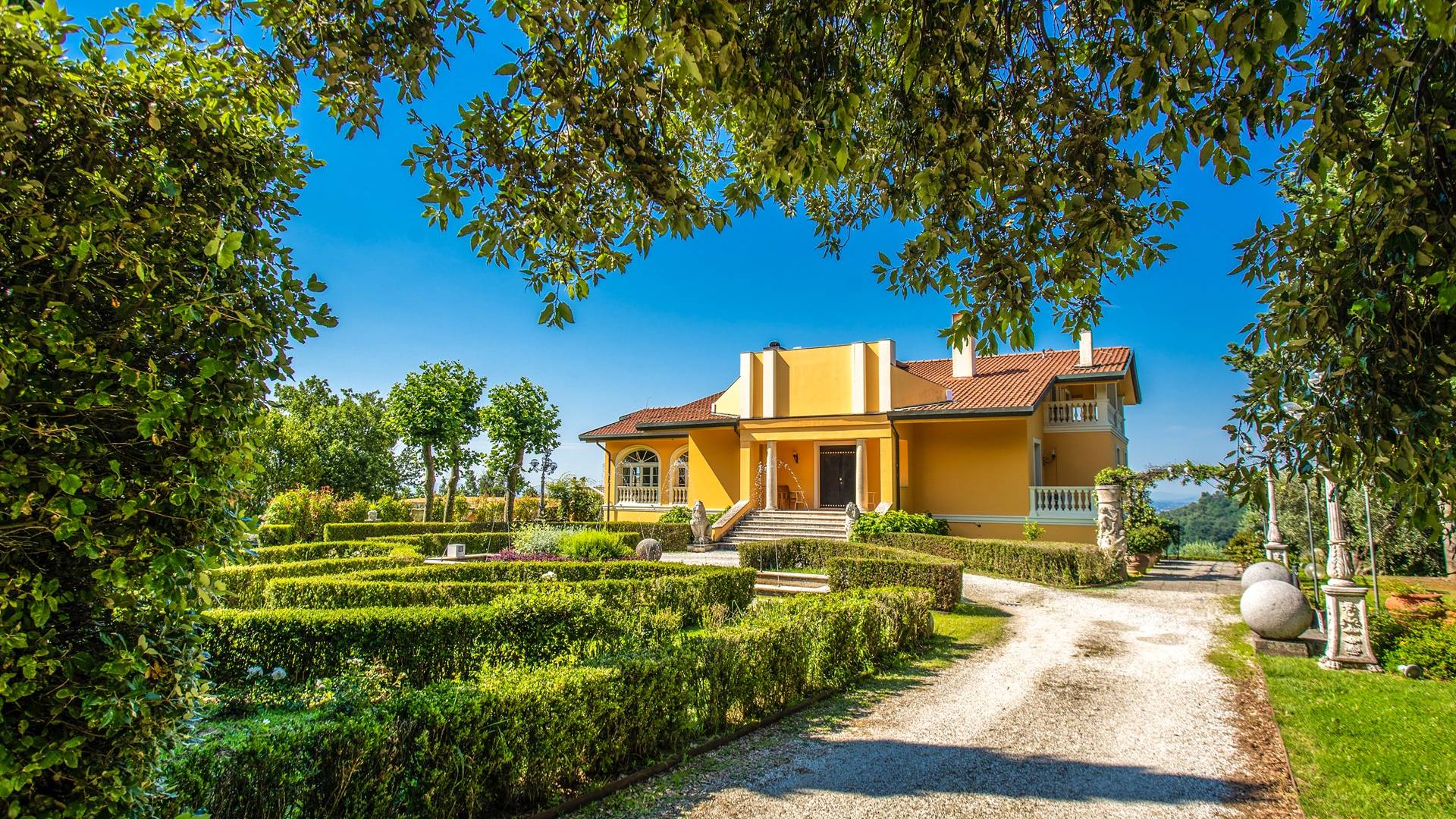 Villa Convento Tuscany is set on the highest point of the property, the three-level main house affords views of the scenic landscape from almost every angle. On the sweeping grounds, there’s a large pool, a solarium, and multiple chairs and chaise-longues for guests or to use as rentals. Hidden away, yet very close to the village of Montecatini Alto center, this estate offers six bedrooms decorated in elegant style with color-washed walls in pale shades, and contemporary fabrics, which lend a very personal touch.