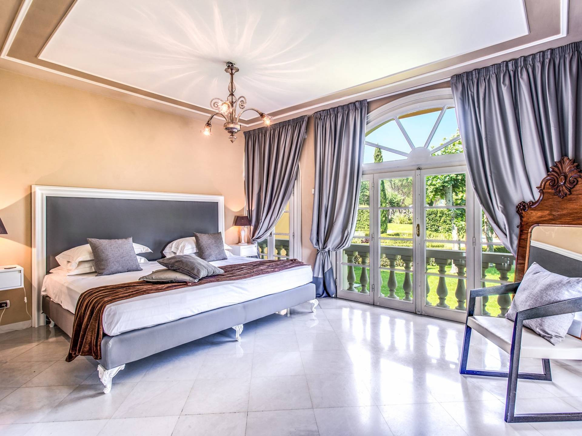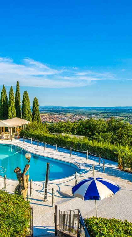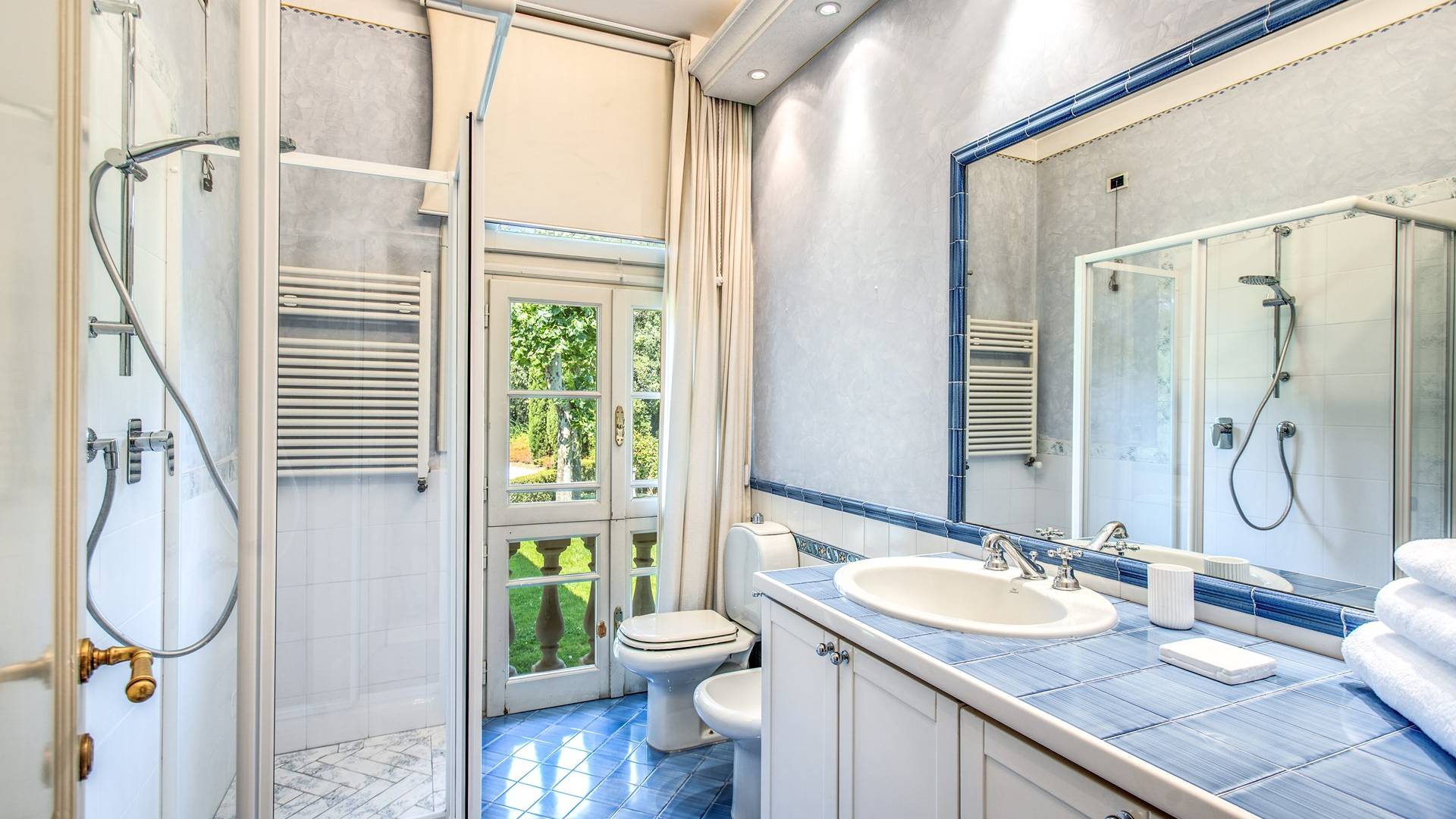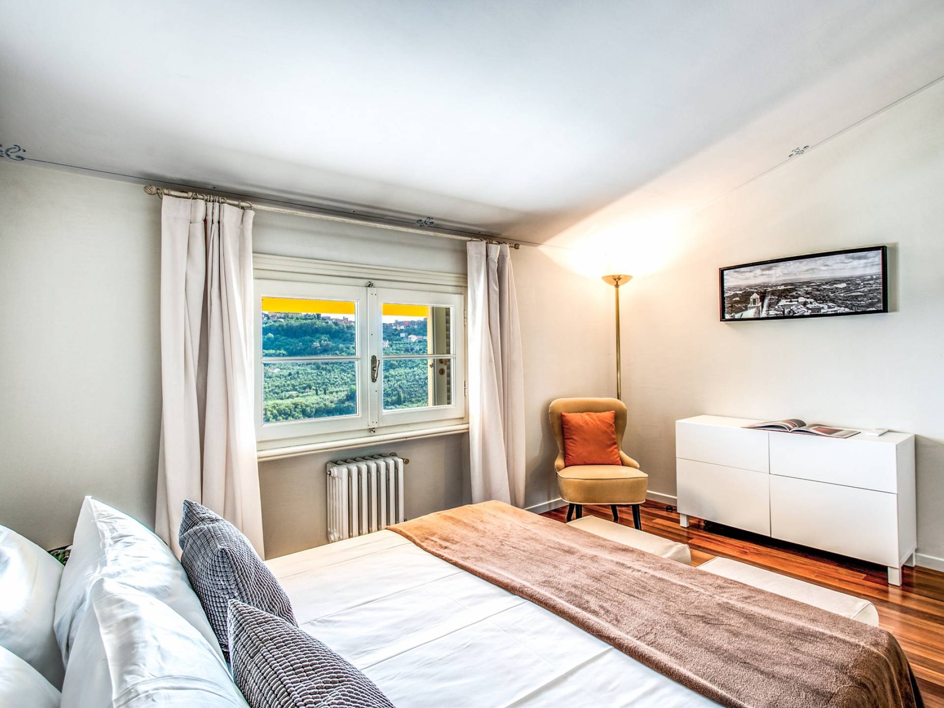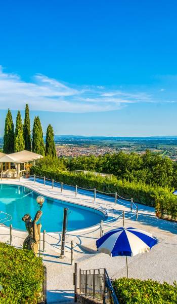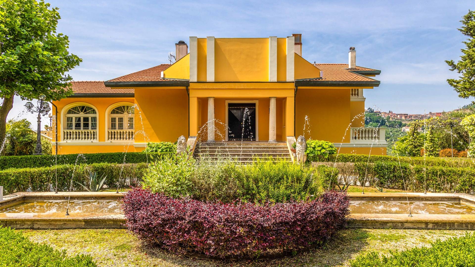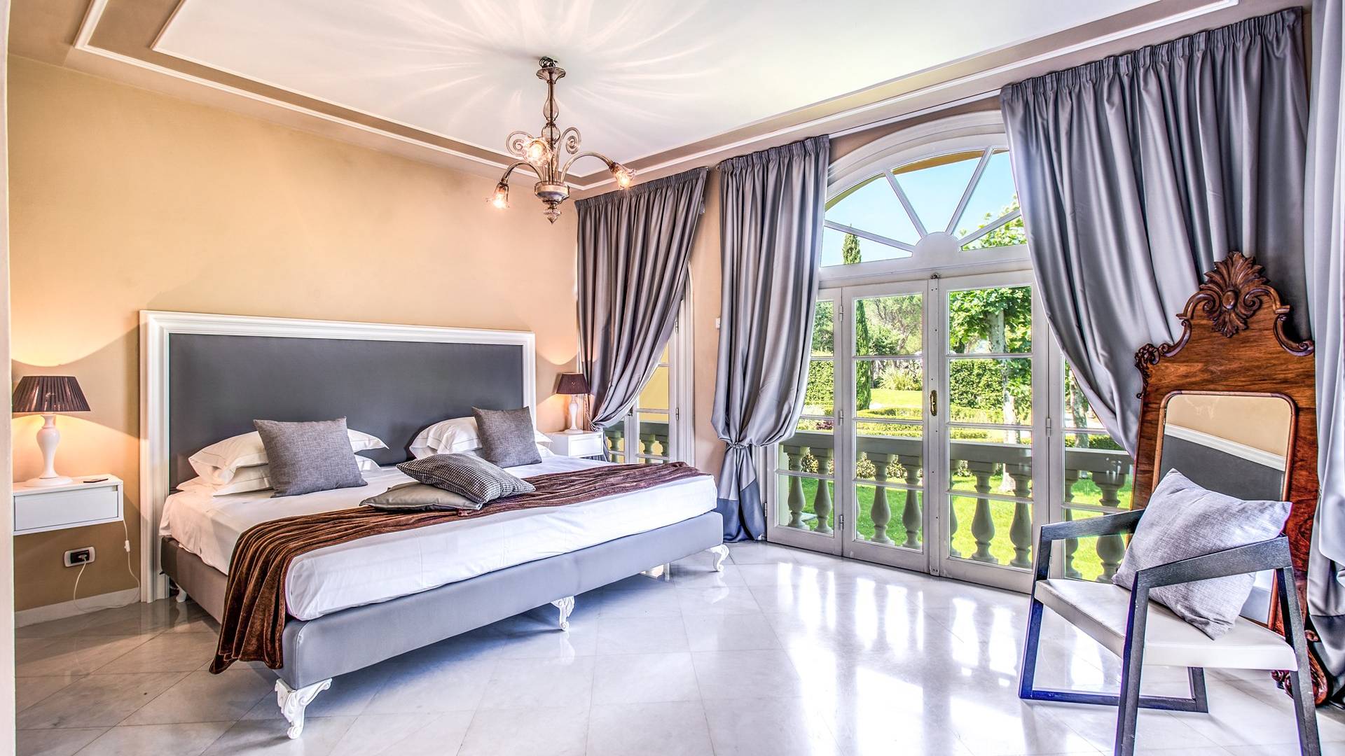 Villa Convento Tuscany is set on the highest point of the property, the three-level main house affords views of the scenic landscape from almost every angle. On the sweeping grounds, there’s a large pool, a solarium, and multiple chairs and chaise-longues for guests or to use as rentals. Hidden away, yet very close to the village of Montecatini Alto center, this estate offers six bedrooms decorated in elegant style with color-washed walls in pale shades, and contemporary fabrics, which lend a very personal touch.