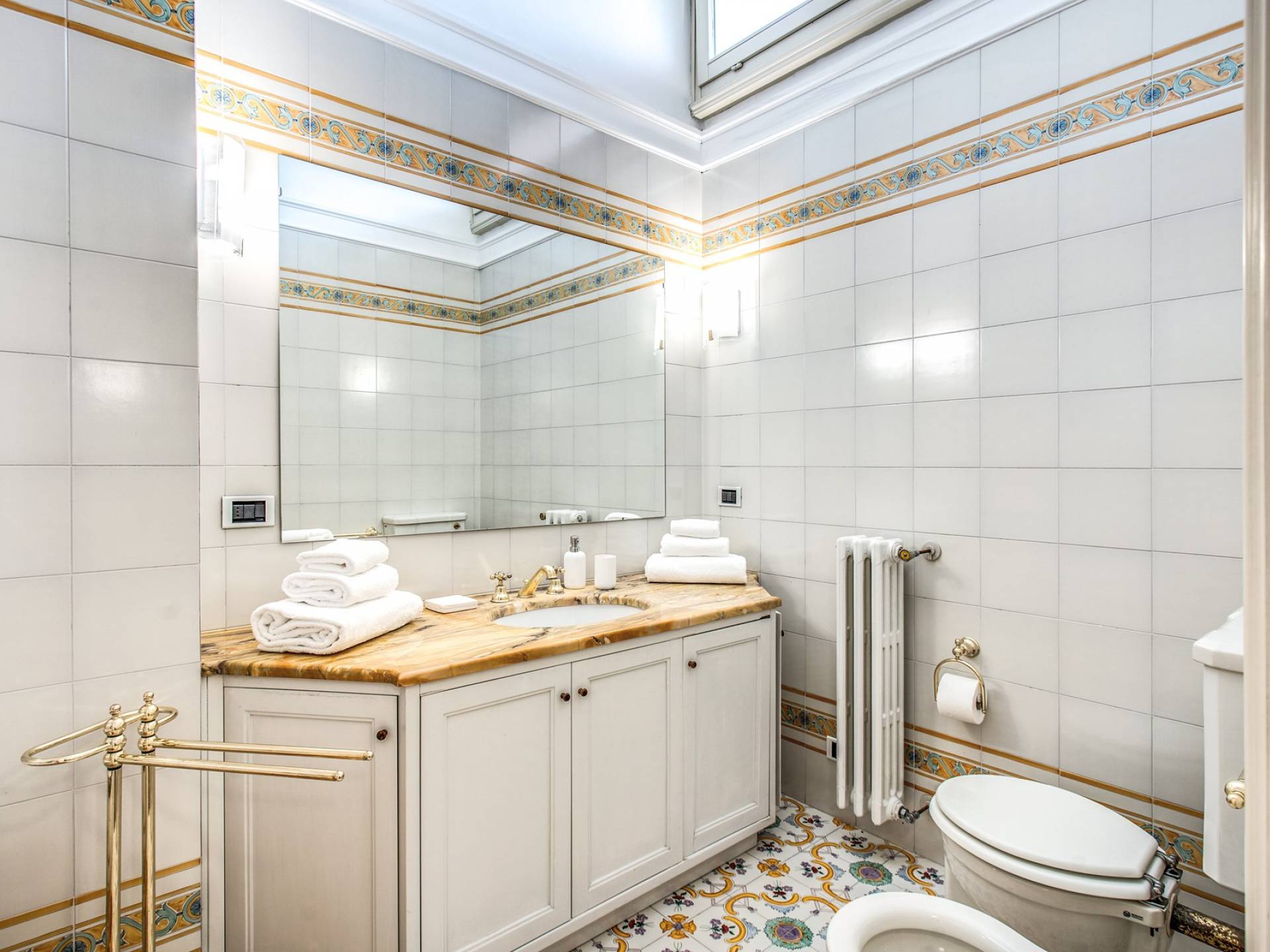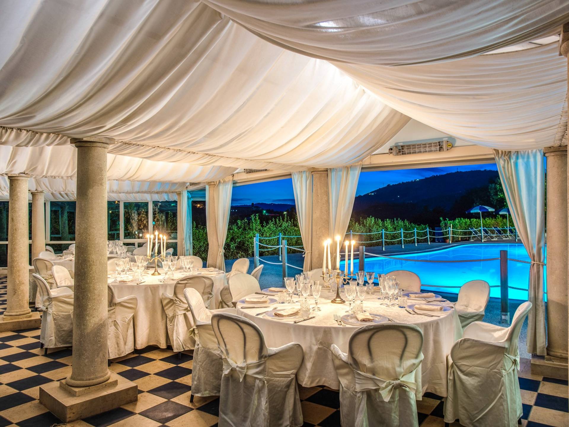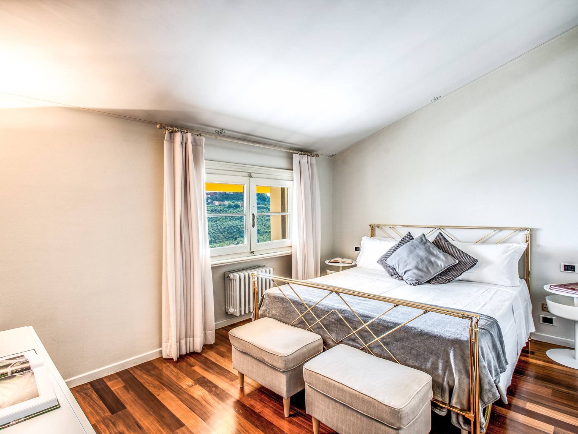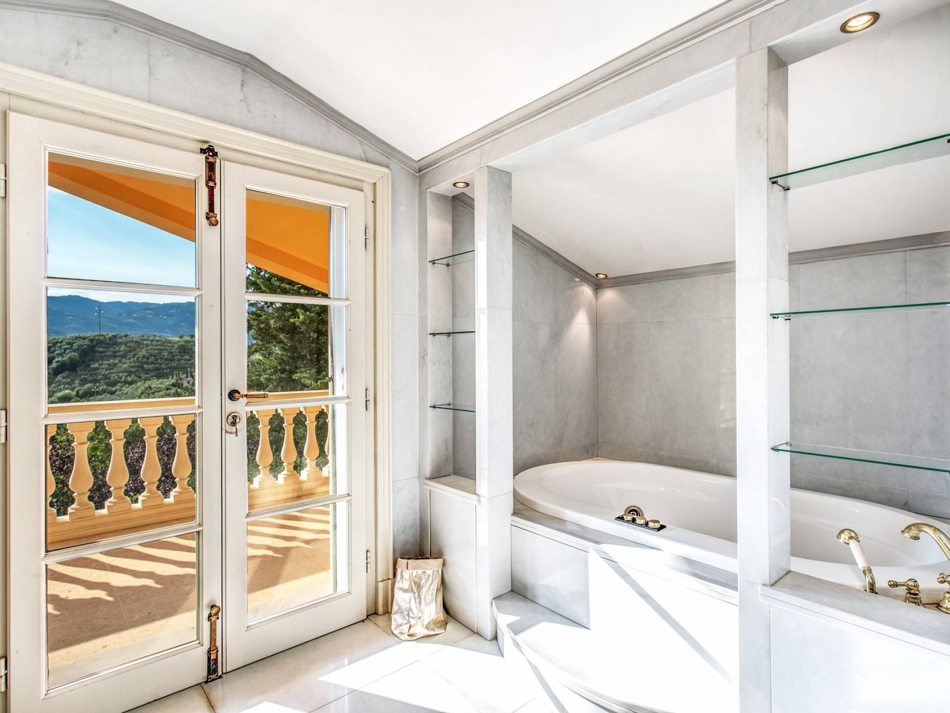 Villa Convento Tuscany is set on the highest point of the property, the three-level main house affords views of the scenic landscape from almost every angle. On the sweeping grounds, there’s a large pool, a solarium, and multiple chairs and chaise-longues for guests or to use as rentals. Hidden away, yet very close to the village of Montecatini Alto center, this estate offers six bedrooms decorated in elegant style with color-washed walls in pale shades, and contemporary fabrics, which lend a very personal touch.