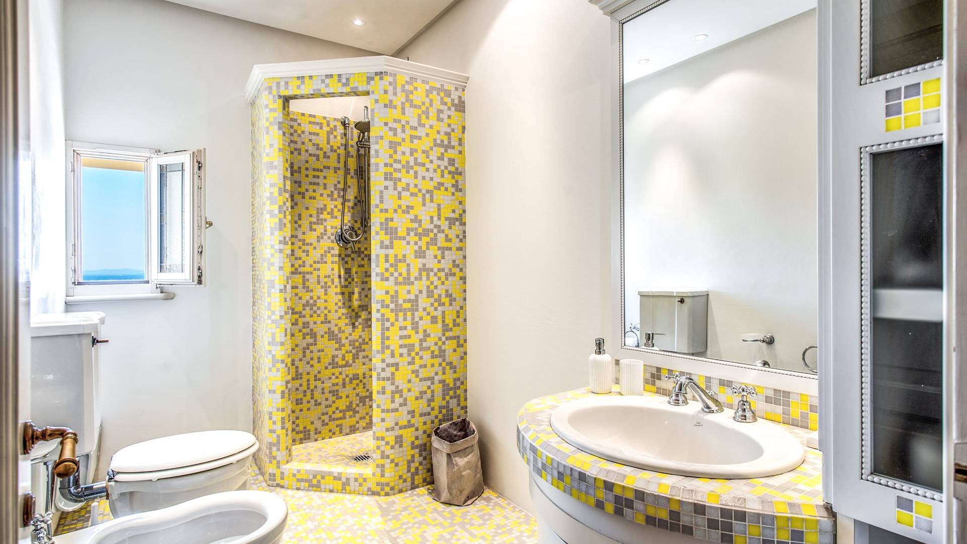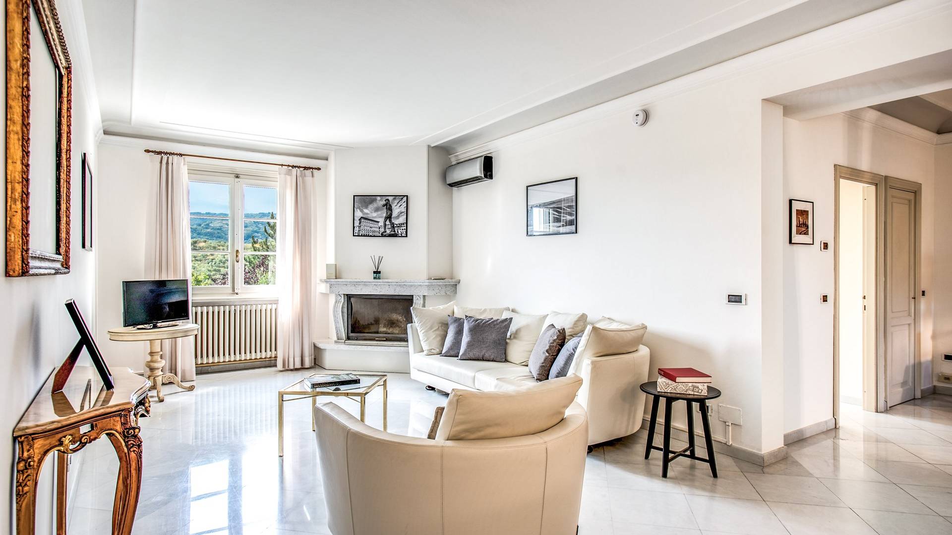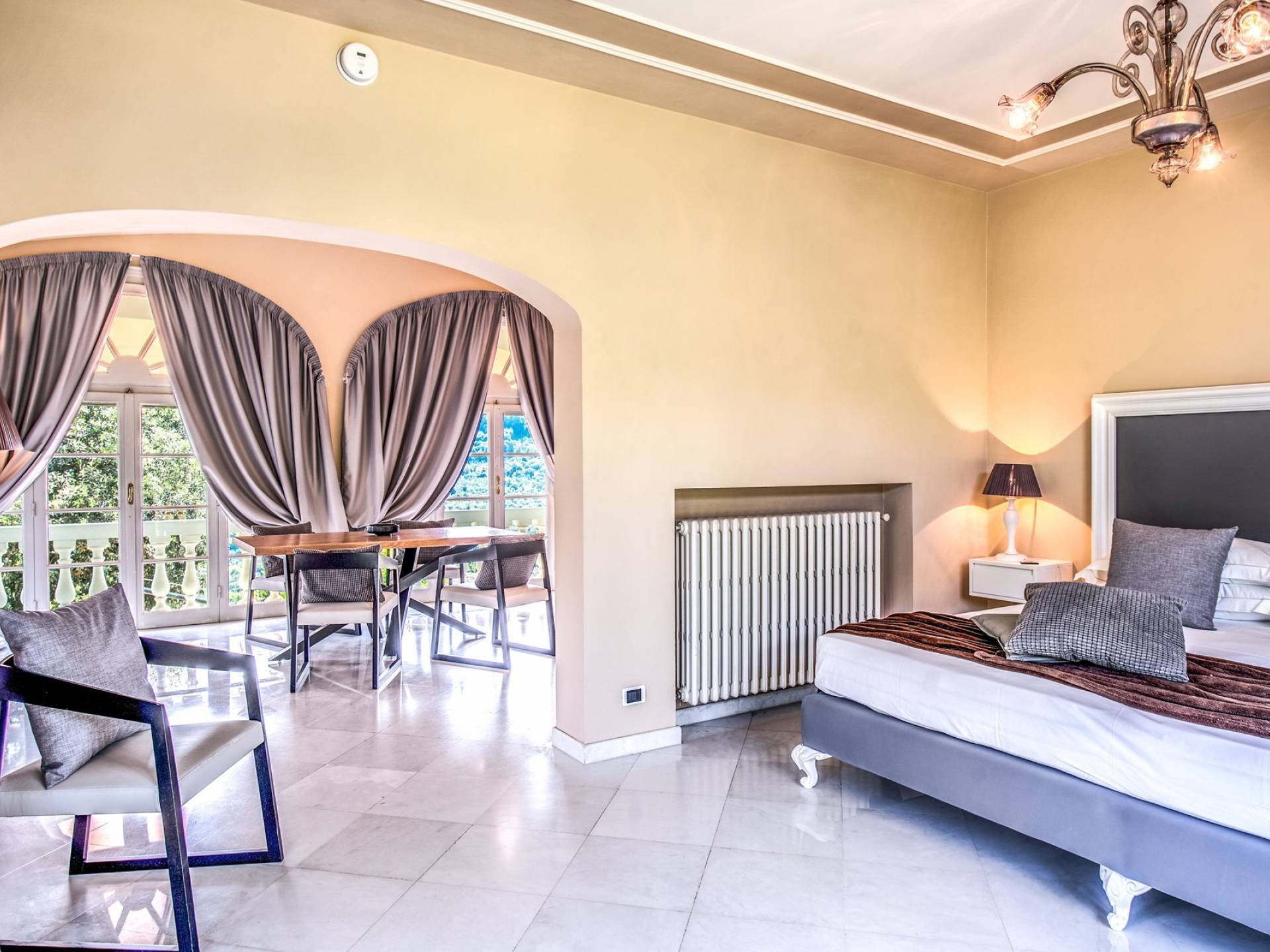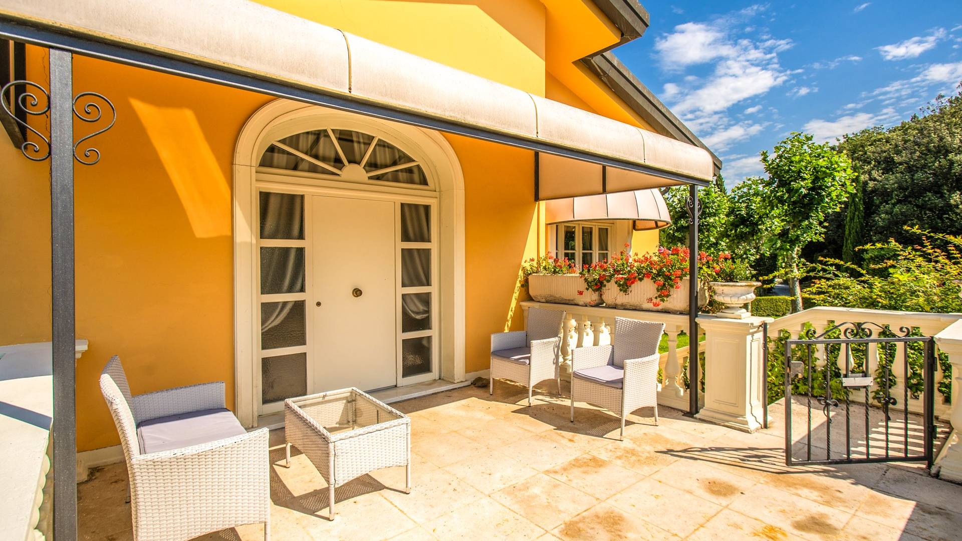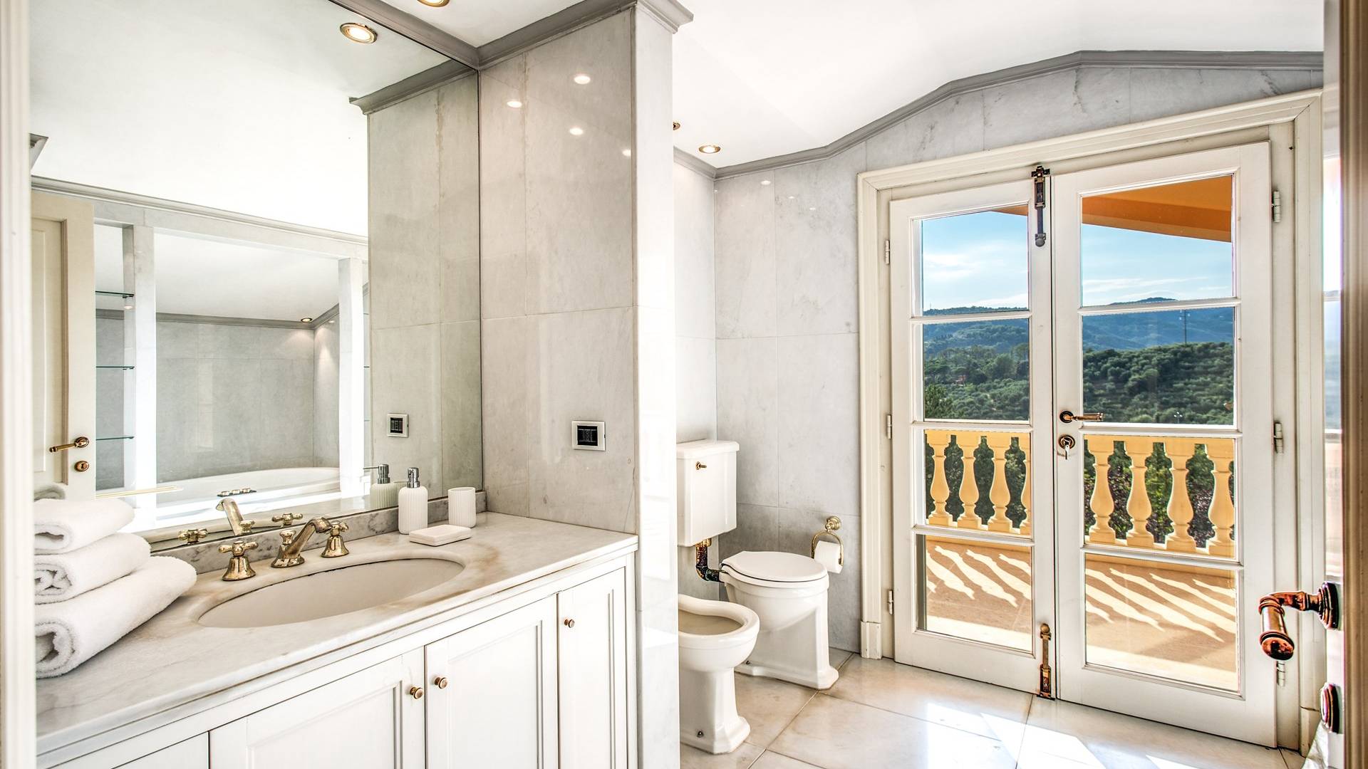 Villa Convento Tuscany is set on the highest point of the property, the three-level main house affords views of the scenic landscape from almost every angle. On the sweeping grounds, there’s a large pool, a solarium, and multiple chairs and chaise-longues for guests or to use as rentals. Hidden away, yet very close to the village of Montecatini Alto center, this estate offers six bedrooms decorated in elegant style with color-washed walls in pale shades, and contemporary fabrics, which lend a very personal touch.