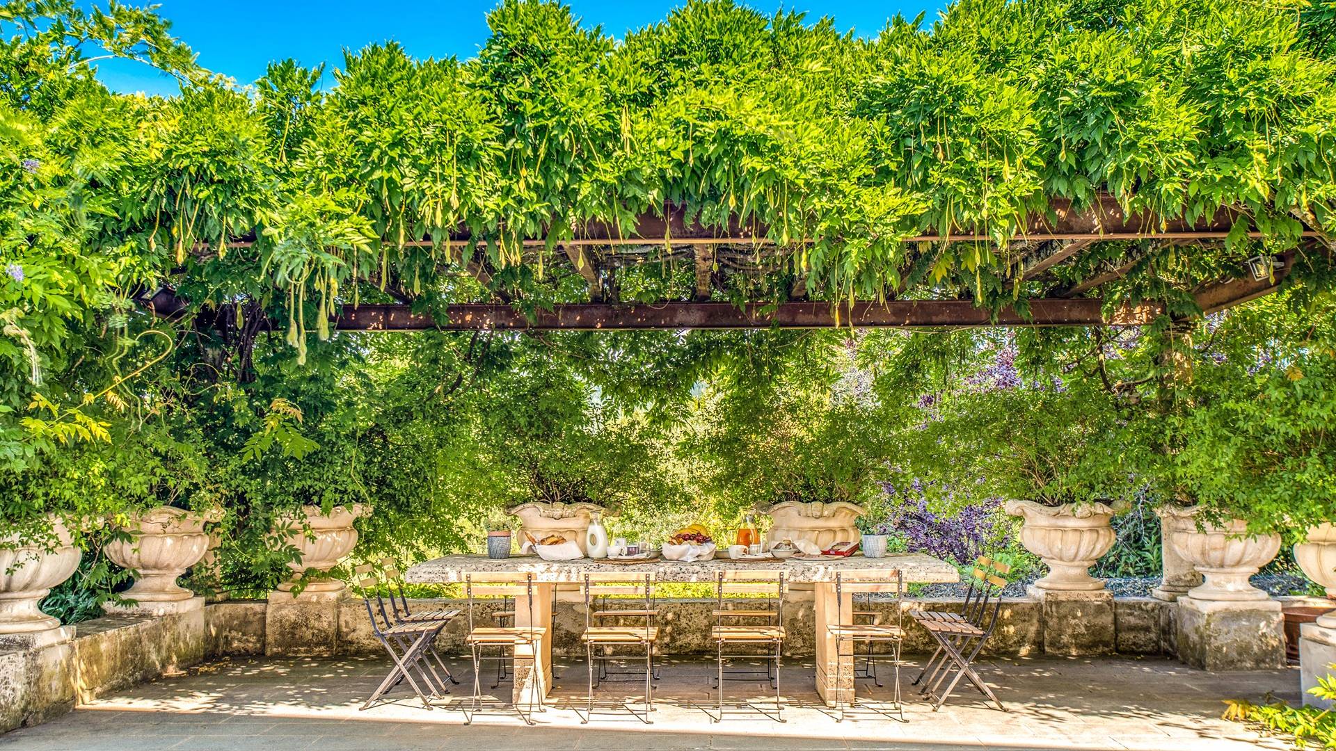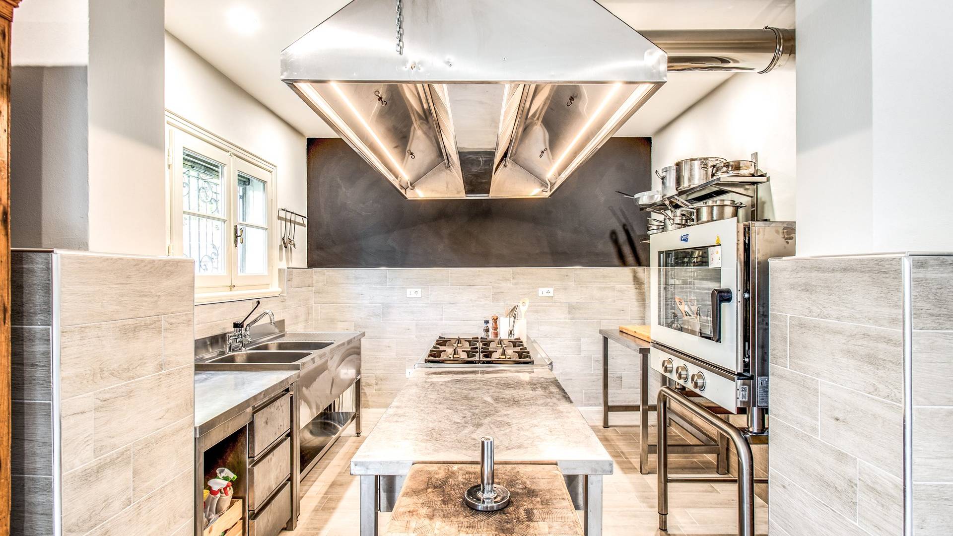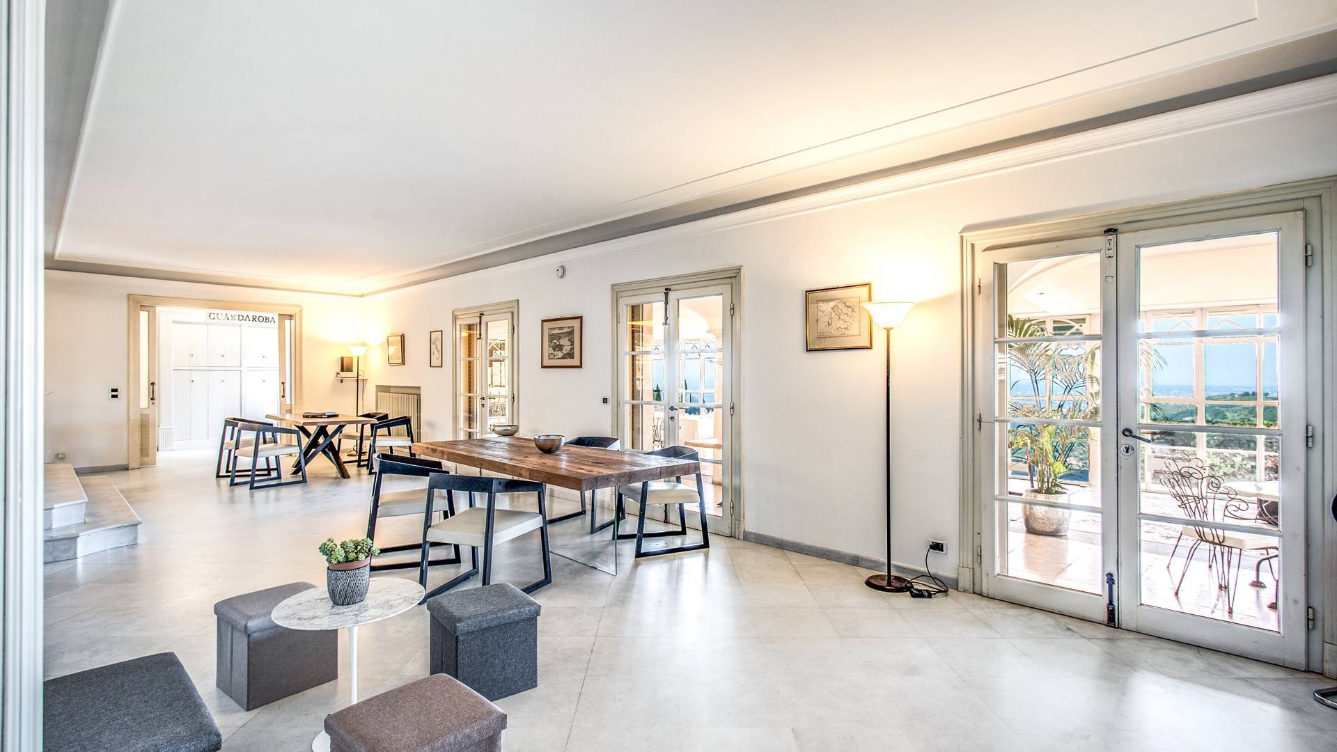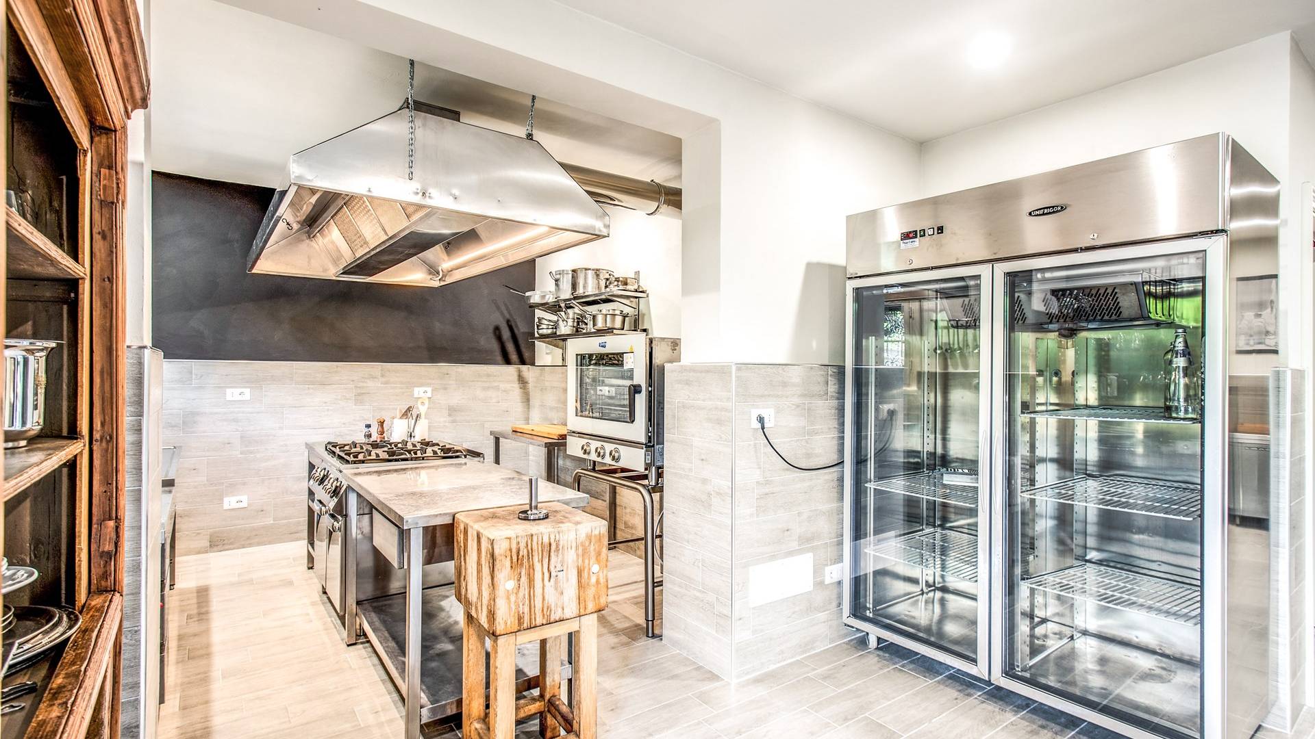 The interiors include a spacious living room, a veranda and dining area with spectacular garden vistas, and a professional kitchen that will make a perfect location for cooking classes. The home design, approached with simplicity and space for light, results in a modern style, comfortable and soothing: this is a family retreat full of light and a joyful, welcoming vibe.