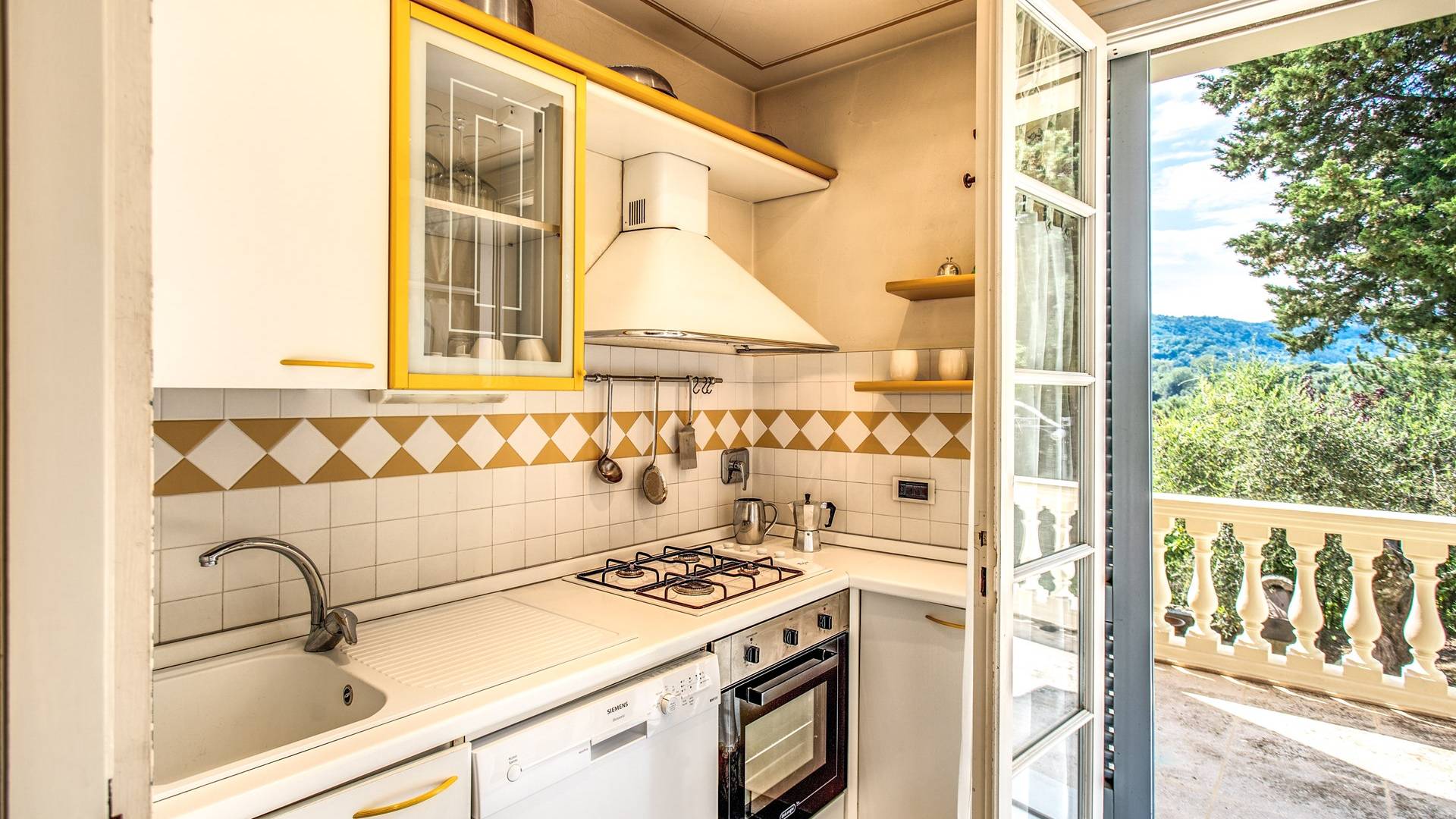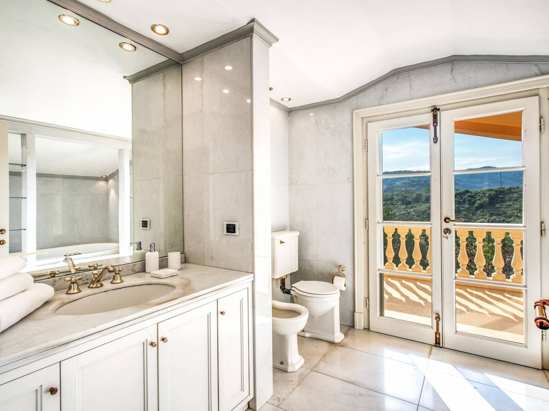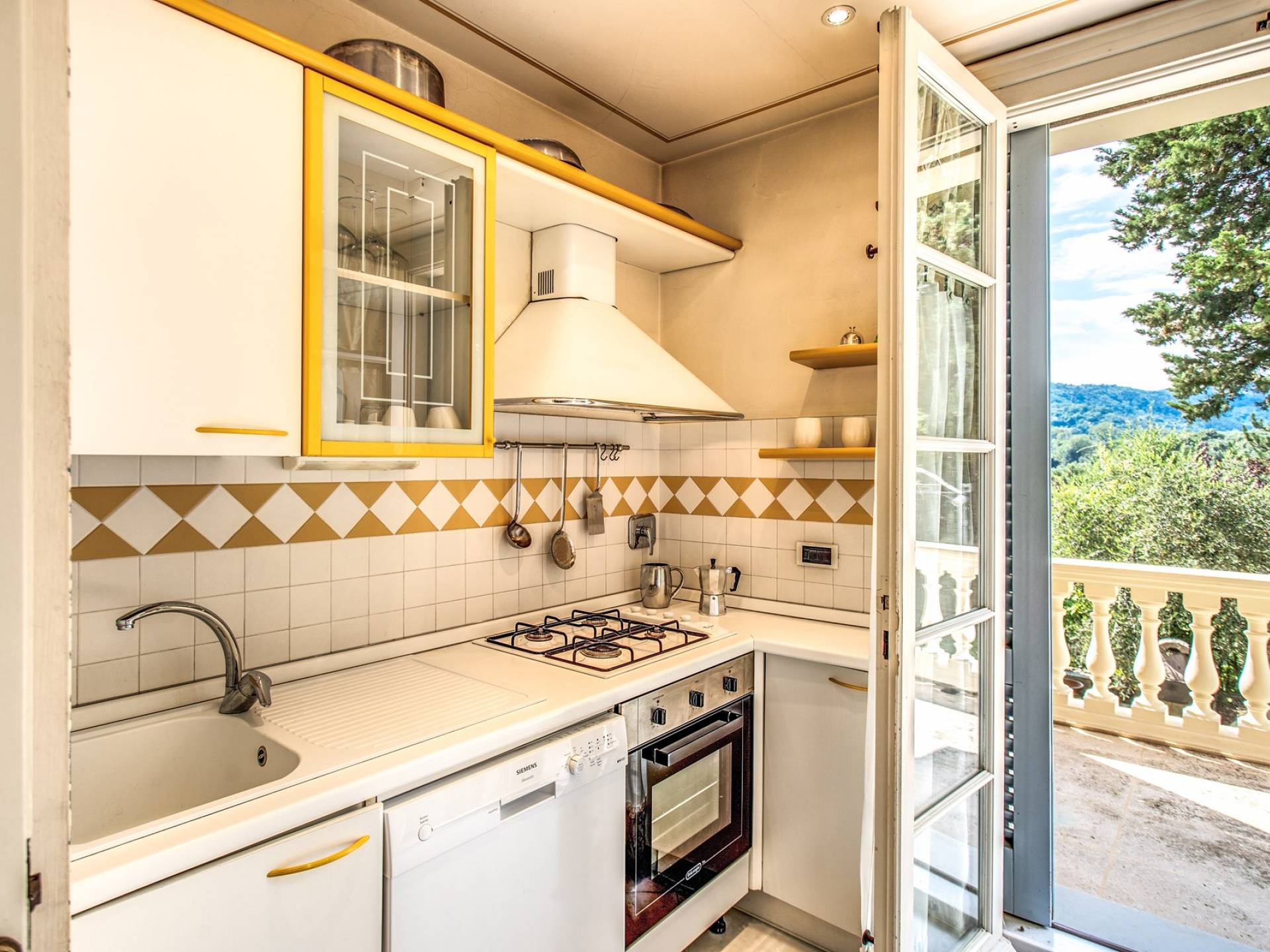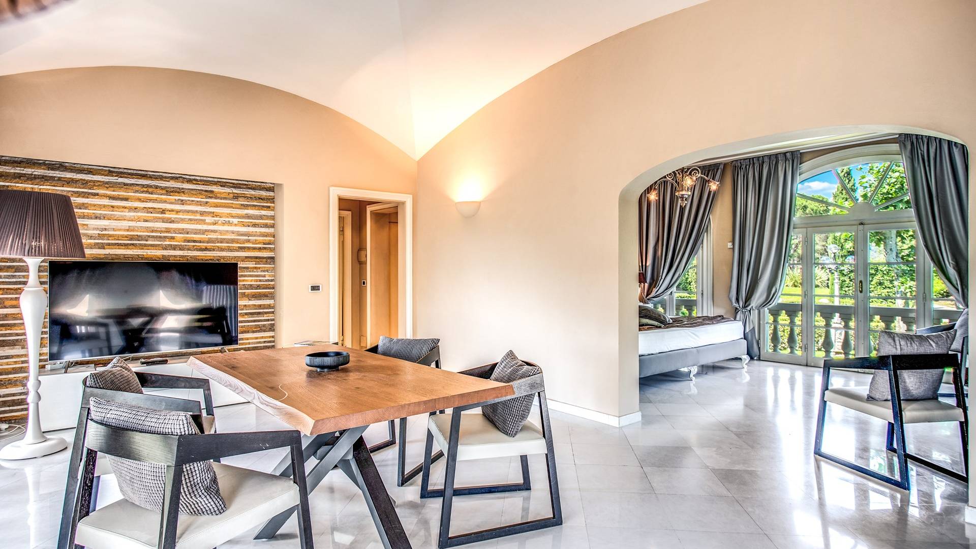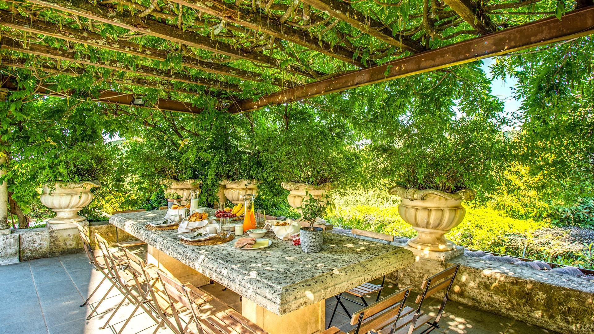 The interiors include a spacious living room, a veranda and dining area with spectacular garden vistas, and a professional kitchen that will make a perfect location for cooking classes. The home design, approached with simplicity and space for light, results in a modern style, comfortable and soothing: this is a family retreat full of light and a joyful, welcoming vibe.