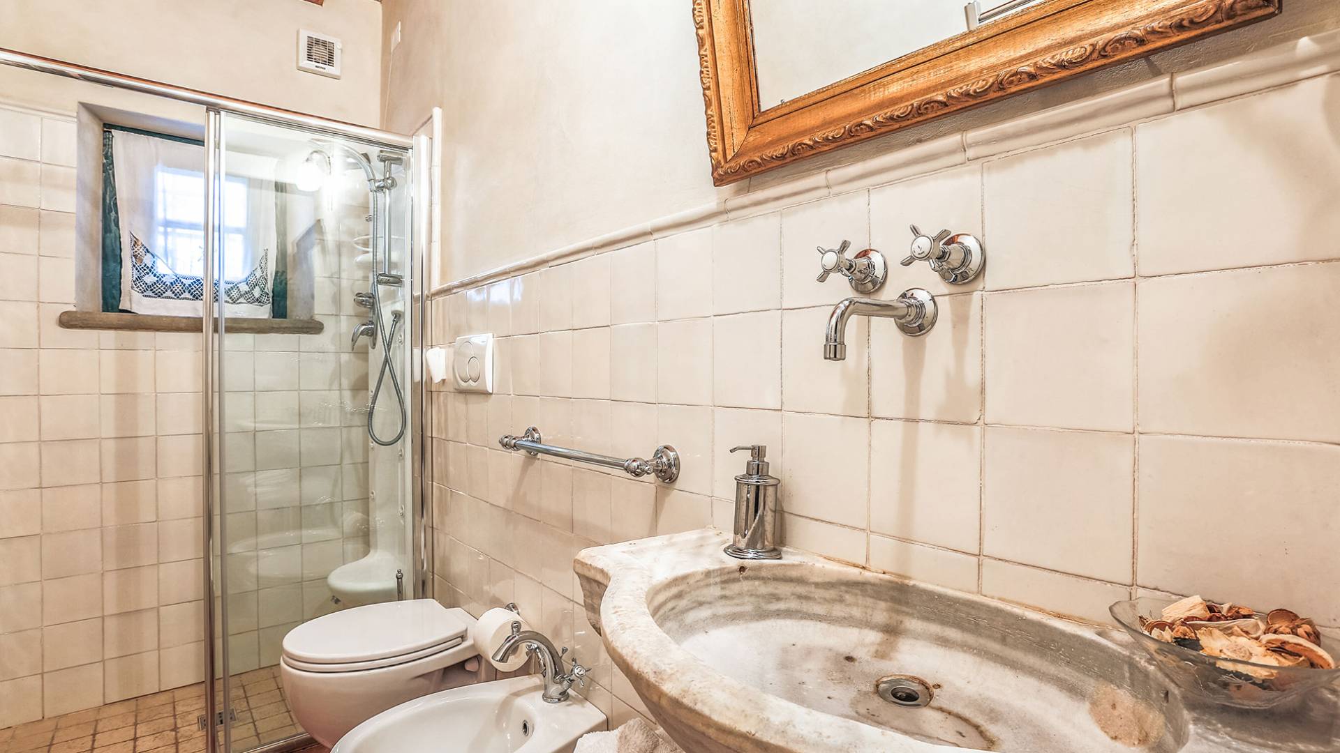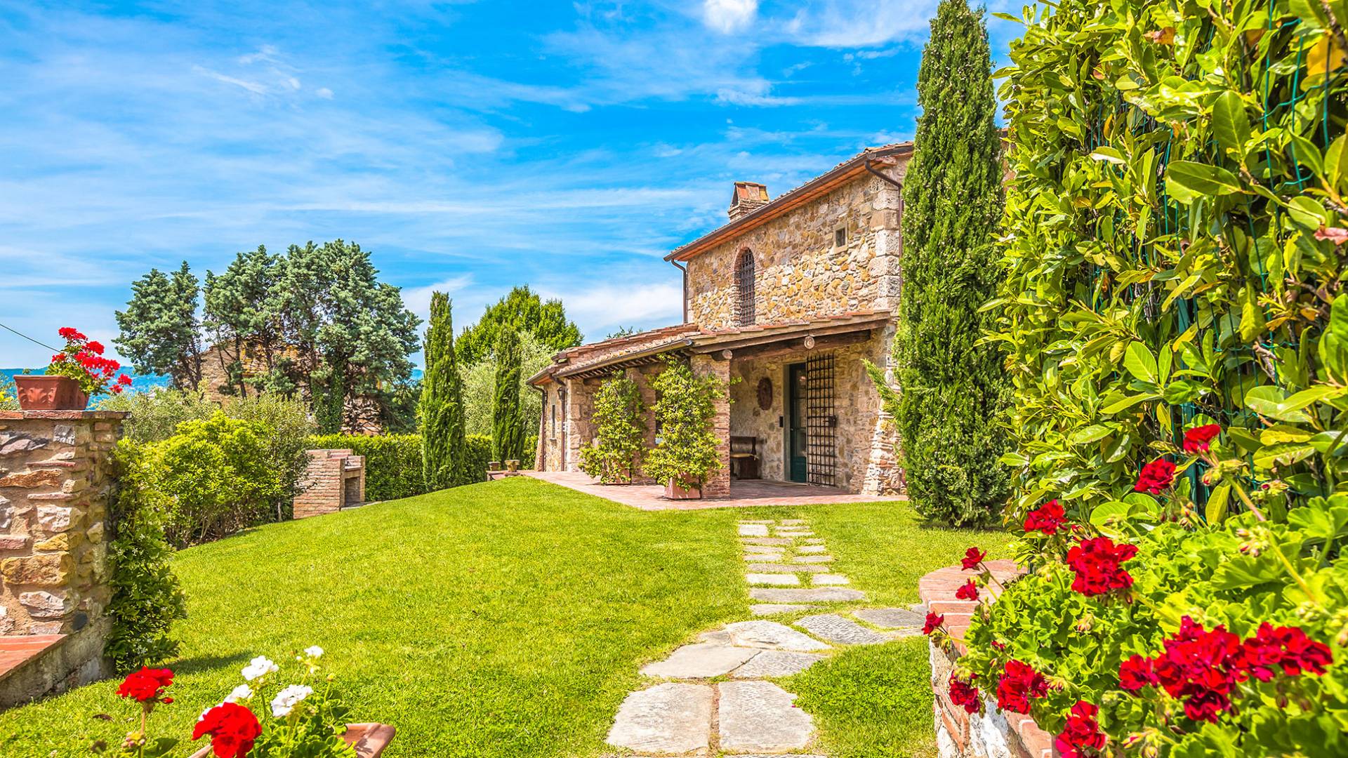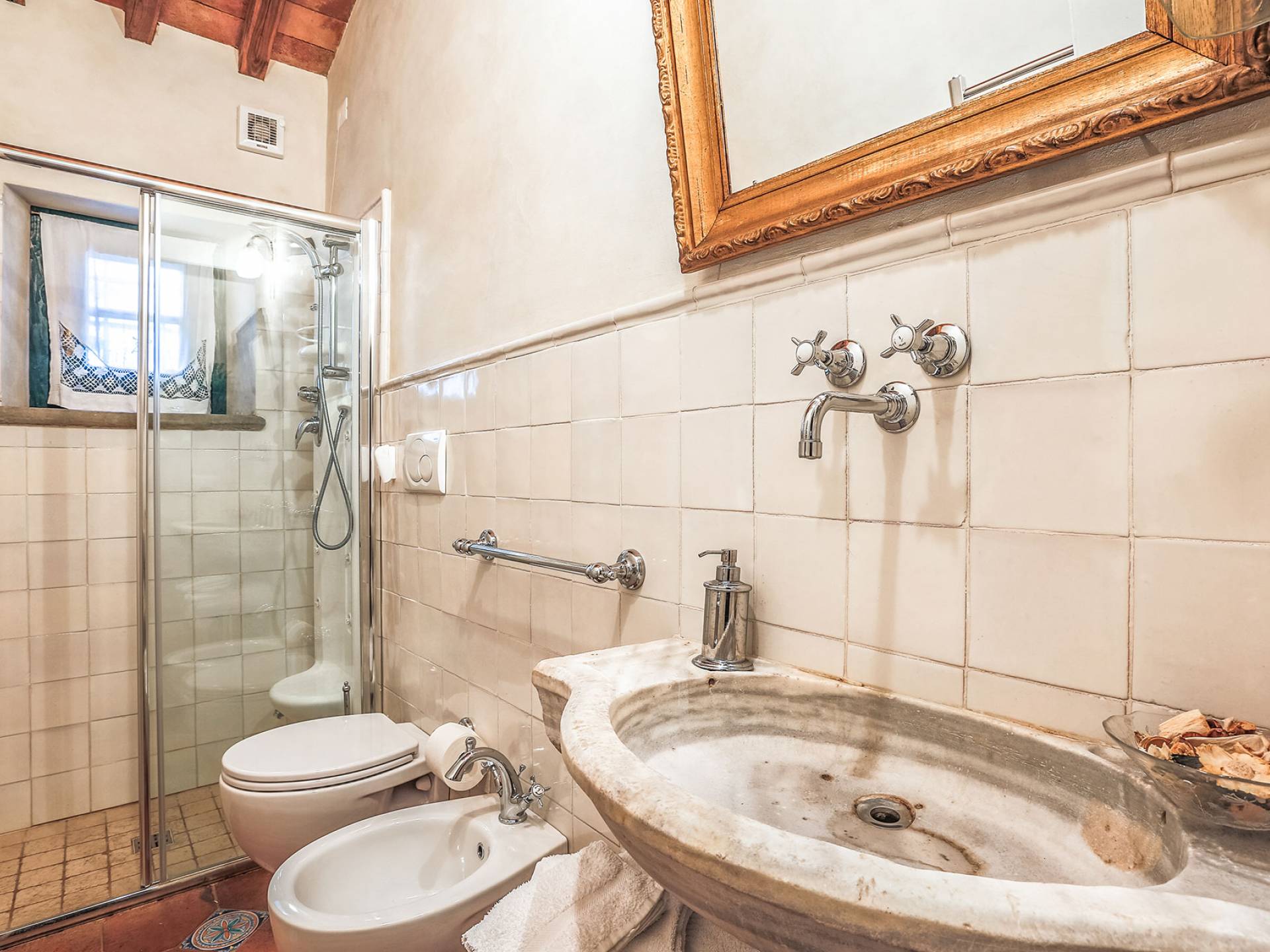 Villa dell' Angelo Tuscany consists of two floors and each room has air conditioning and central heating. On the first floor, there is a kitchen with an exit to a terrace, a dining room, a living room, a laundry room, a bathroom, and a bedroom with its own exit to a terrace. A beautiful stone staircase leads up to the second floor where you will find three bedrooms and two bathrooms. In the beautiful garden, there are a number of terraces and furnished patios where guests can enjoy Italian meals. A few steps below the house is a pool terrace with outstanding views of the surrounding countryside. There is a 16x8 m. pool with an attached whirlpool, sun loungers, and parasols.