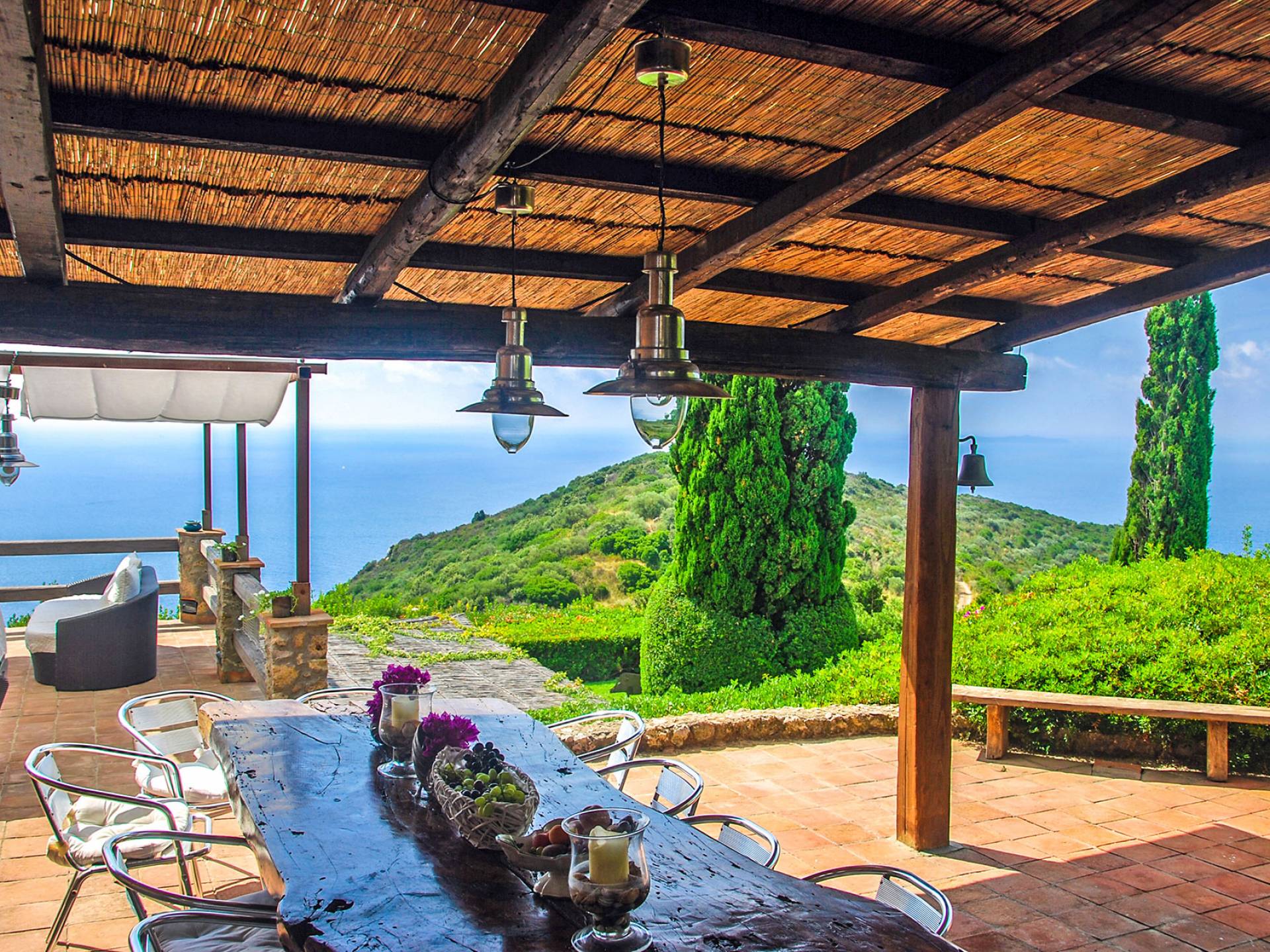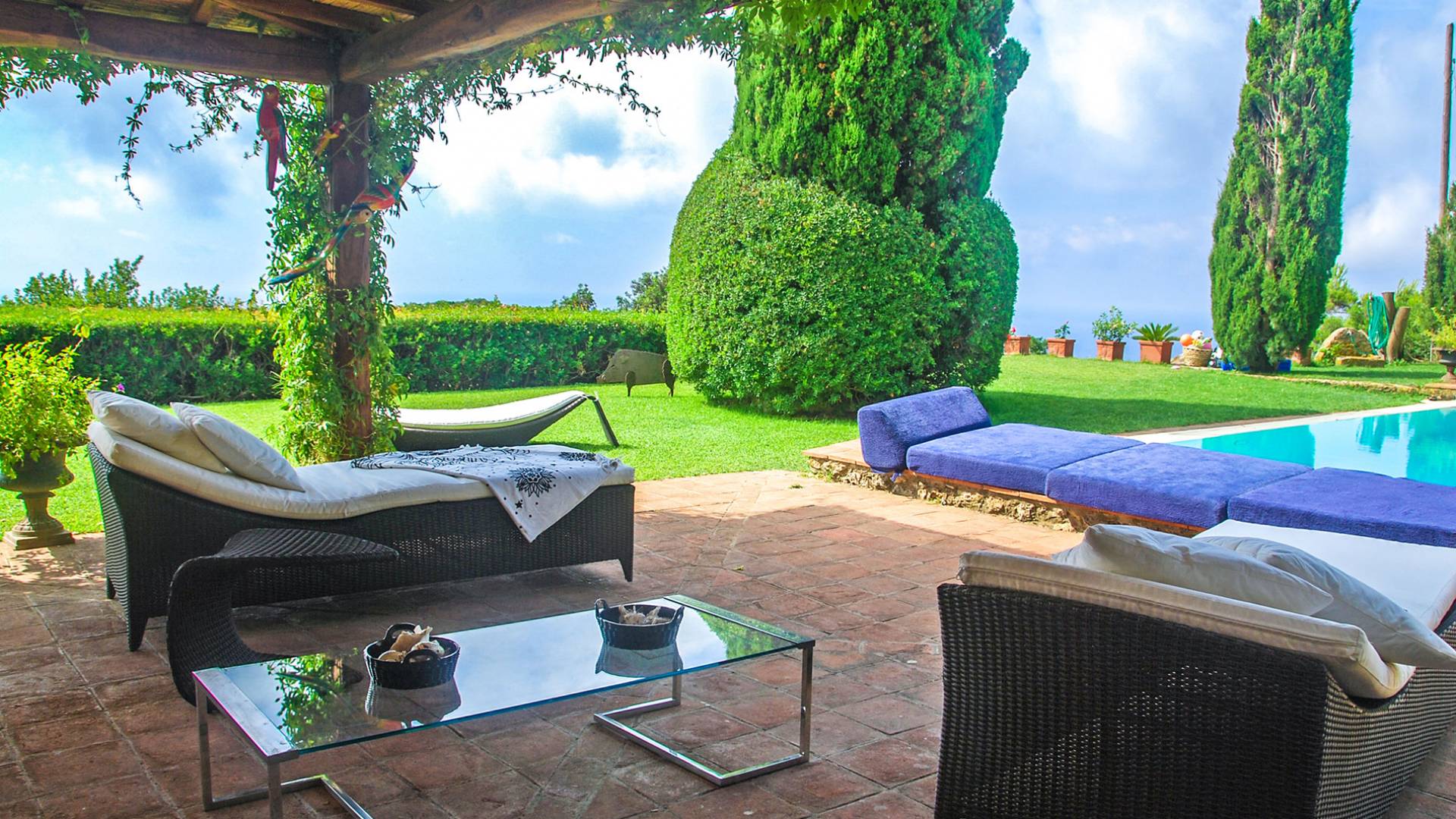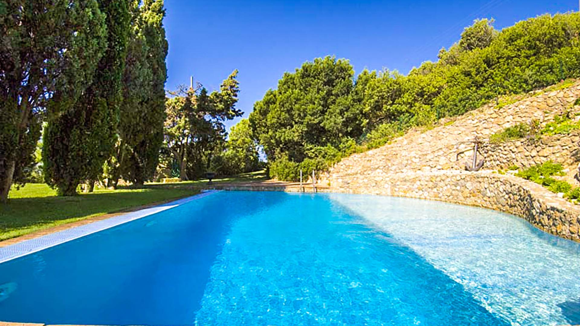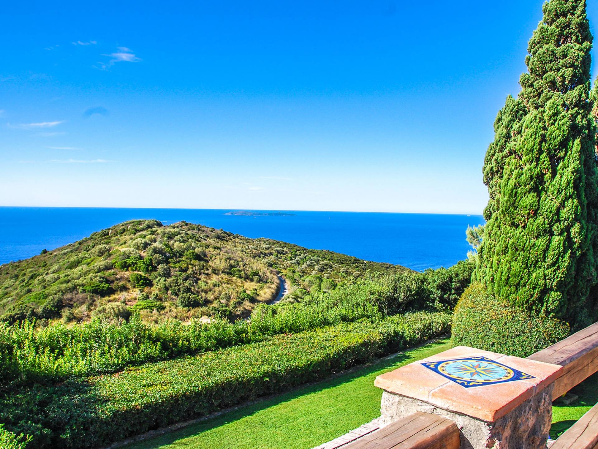 Many reasons have urged travellers to visit this splendid resort during the course of time: the crystal clear sea, of course, the toxic scent of the Mediterranean maquis and the quiet snobbery of this location off the beaten path. However, it is the overall bohemian, chic atmosphere that still today leads discerning travellers, painters, poets and artists to this very place. The villa accommodates up to ten adults and two children in six double bedrooms and five bathrooms, although is at its best when used for ten. It is set in six hectares of extensive lawns and enjoys panoramic views of the Mediterranean, with the islands of Giannutri and Giglio in the distance and of the romantic, wild and rugged coastline.