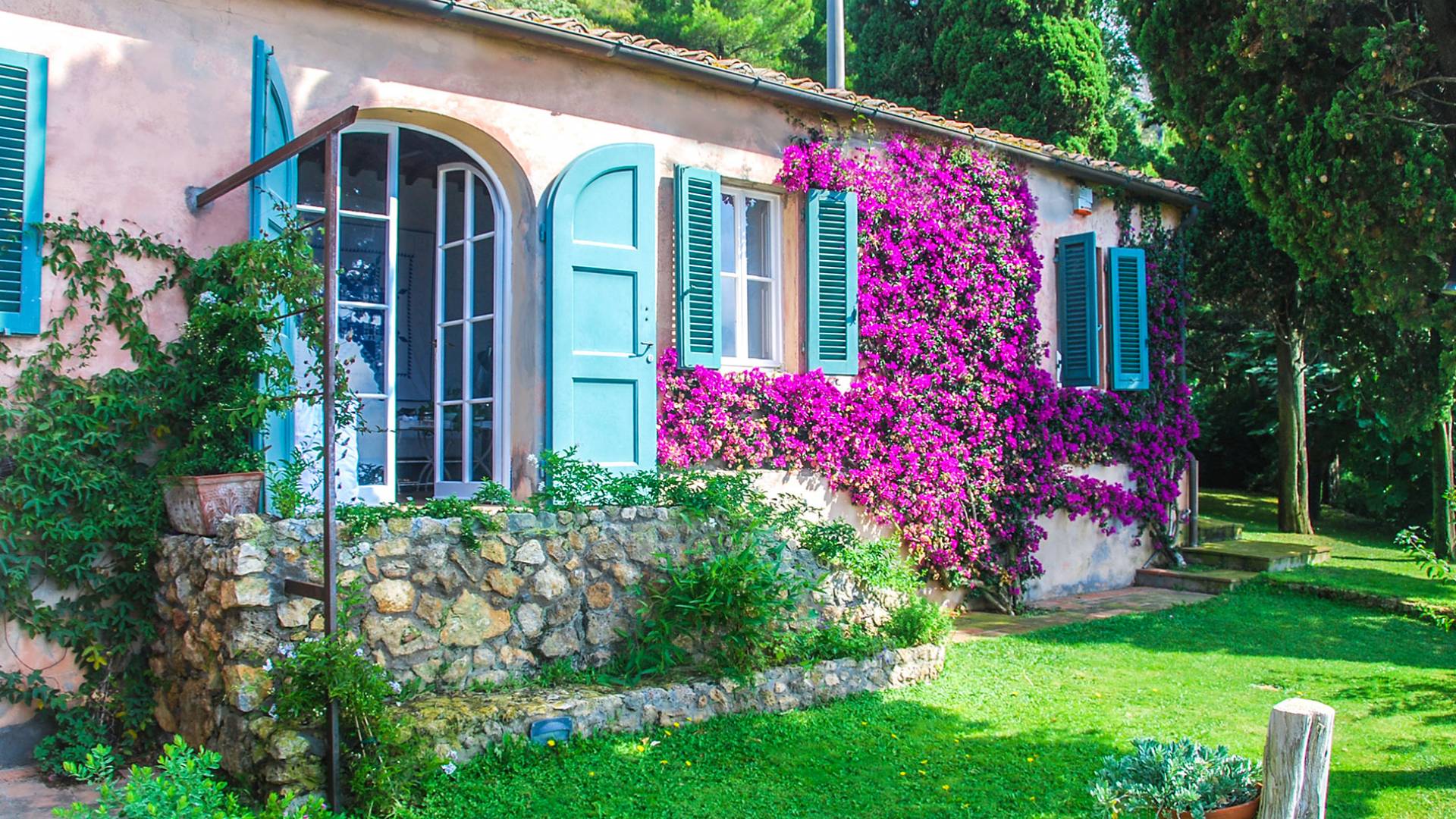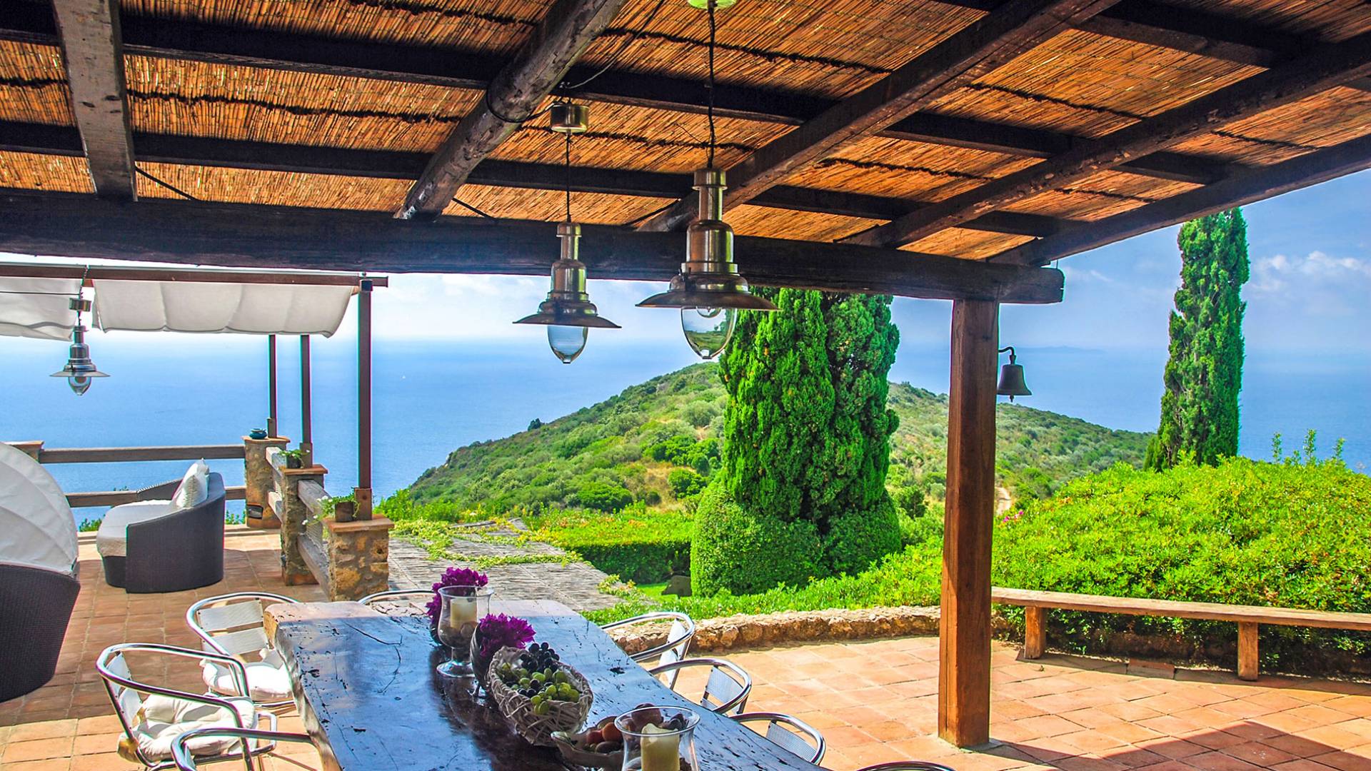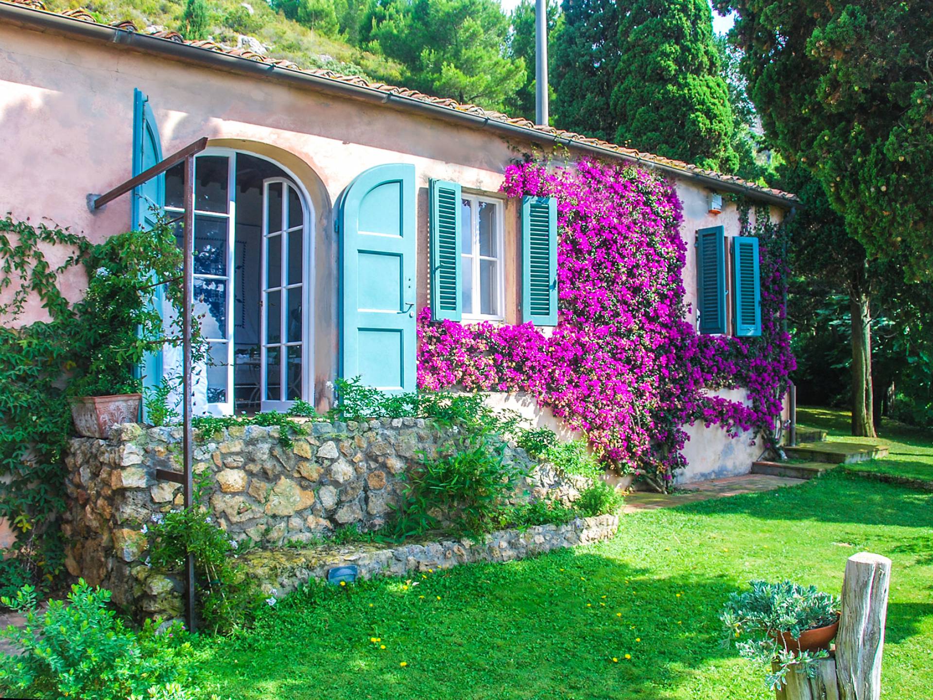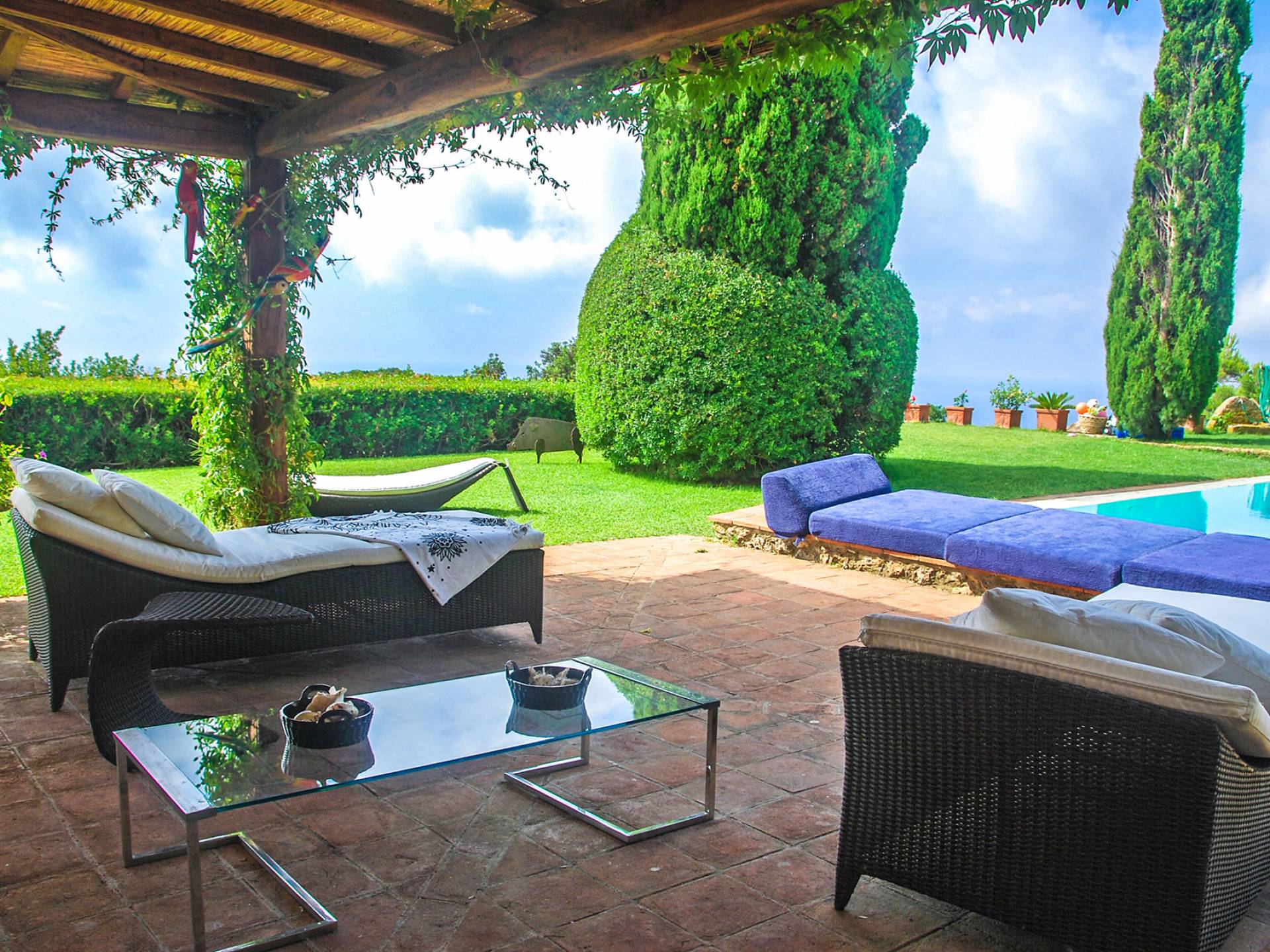 Many reasons have urged travellers to visit this splendid resort during the course of time: the crystal clear sea, of course, the toxic scent of the Mediterranean maquis and the quiet snobbery of this location off the beaten path. However, it is the overall bohemian, chic atmosphere that still today leads discerning travellers, painters, poets and artists to this very place. The villa accommodates up to ten adults and two children in six double bedrooms and five bathrooms, although is at its best when used for ten. It is set in six hectares of extensive lawns and enjoys panoramic views of the Mediterranean, with the islands of Giannutri and Giglio in the distance and of the romantic, wild and rugged coastline.