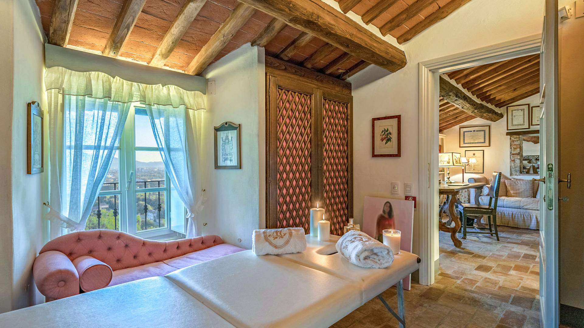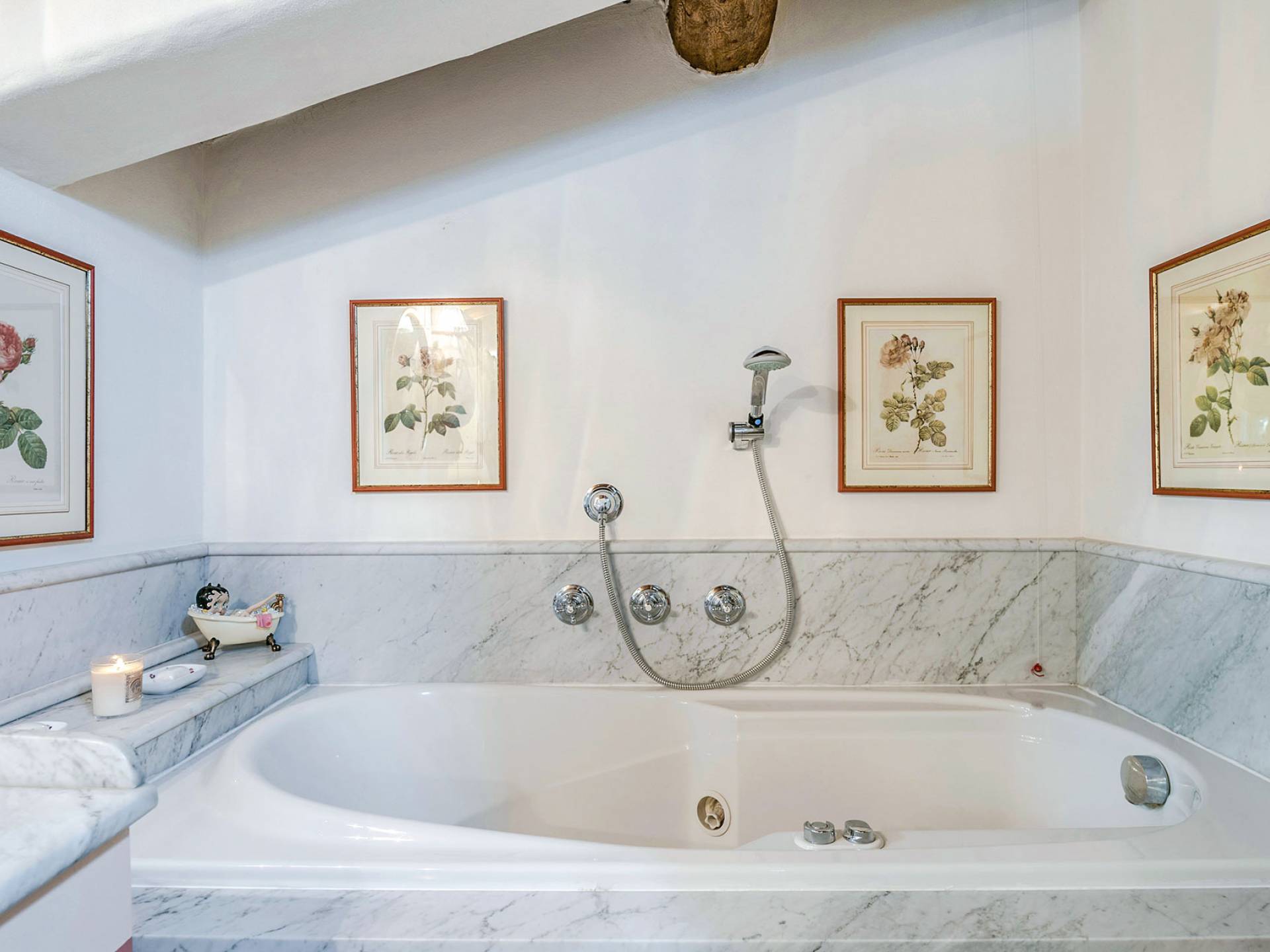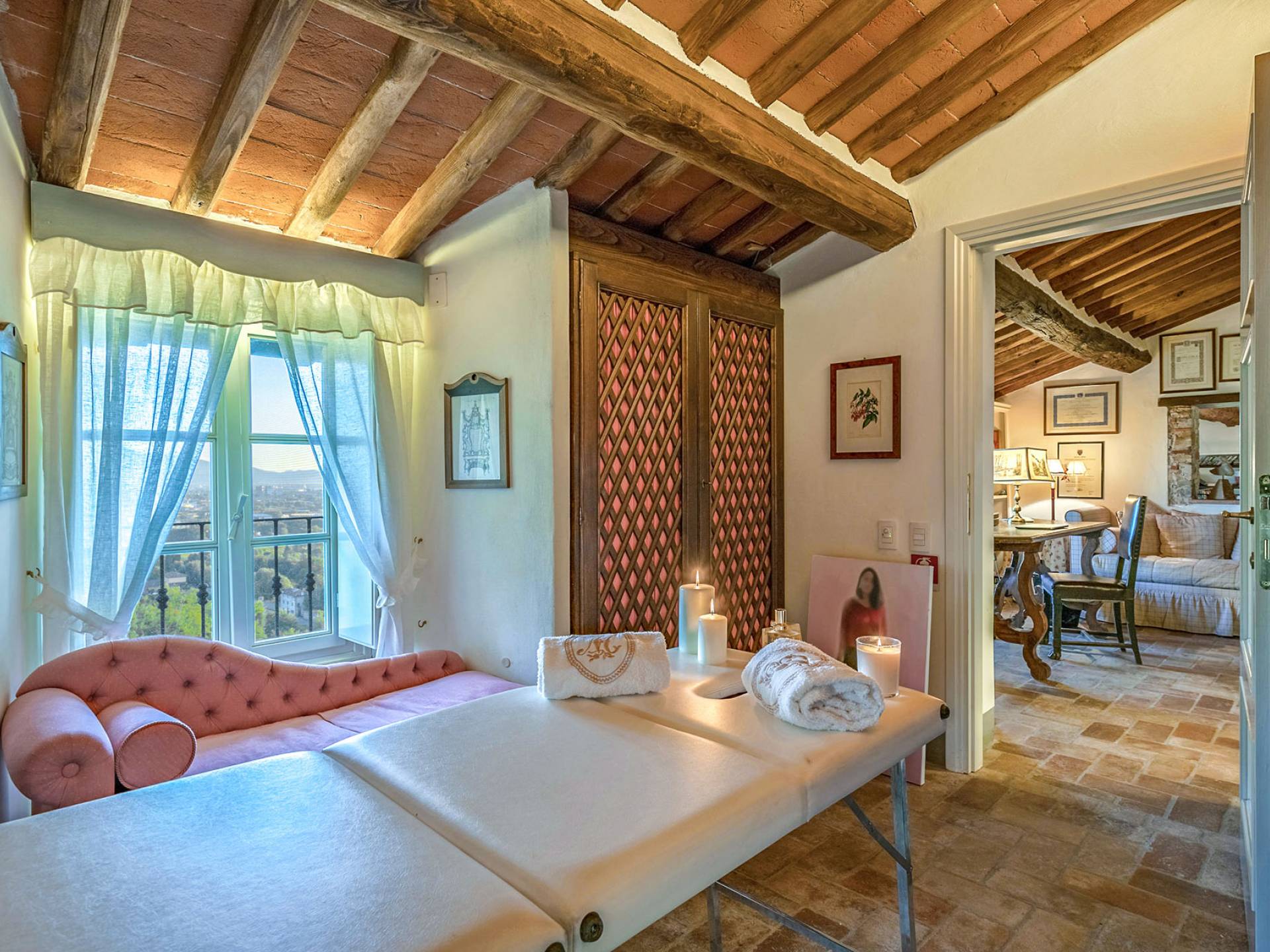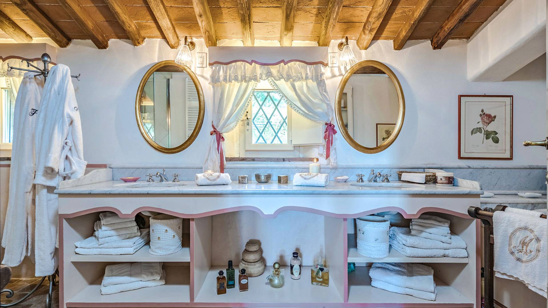 Throughout the villa, guests can admire precious paintings and art objects along with wrought iron and silver accents. Further decorating touches include the highlighting of certain areas of the ancient stone walls with special lighting. The stainless steel appliances and white furniture blend perfectly with the elegant style of the villa and add a modern functional touch, creating a truly comfortable and efficient atmosphere.