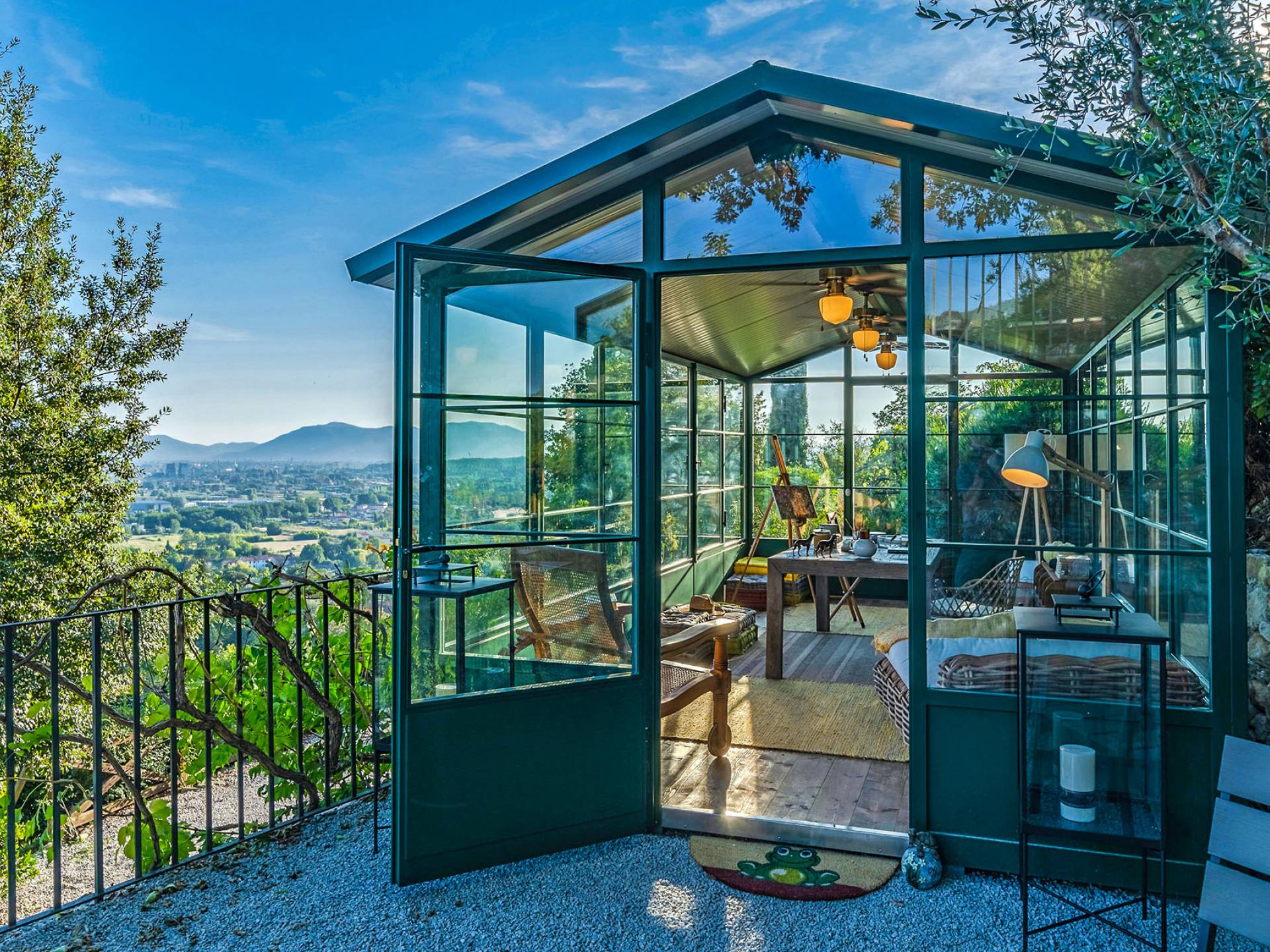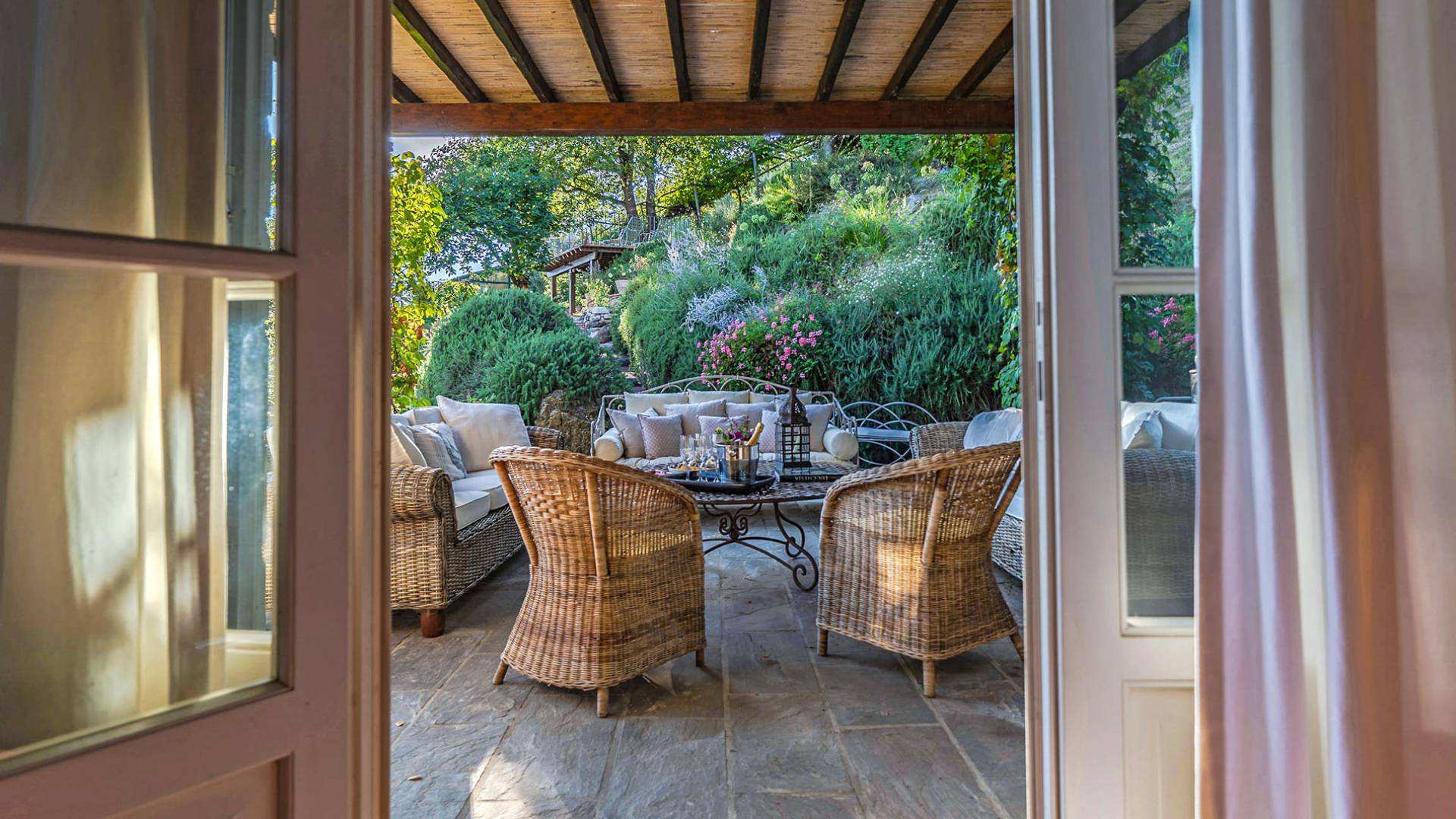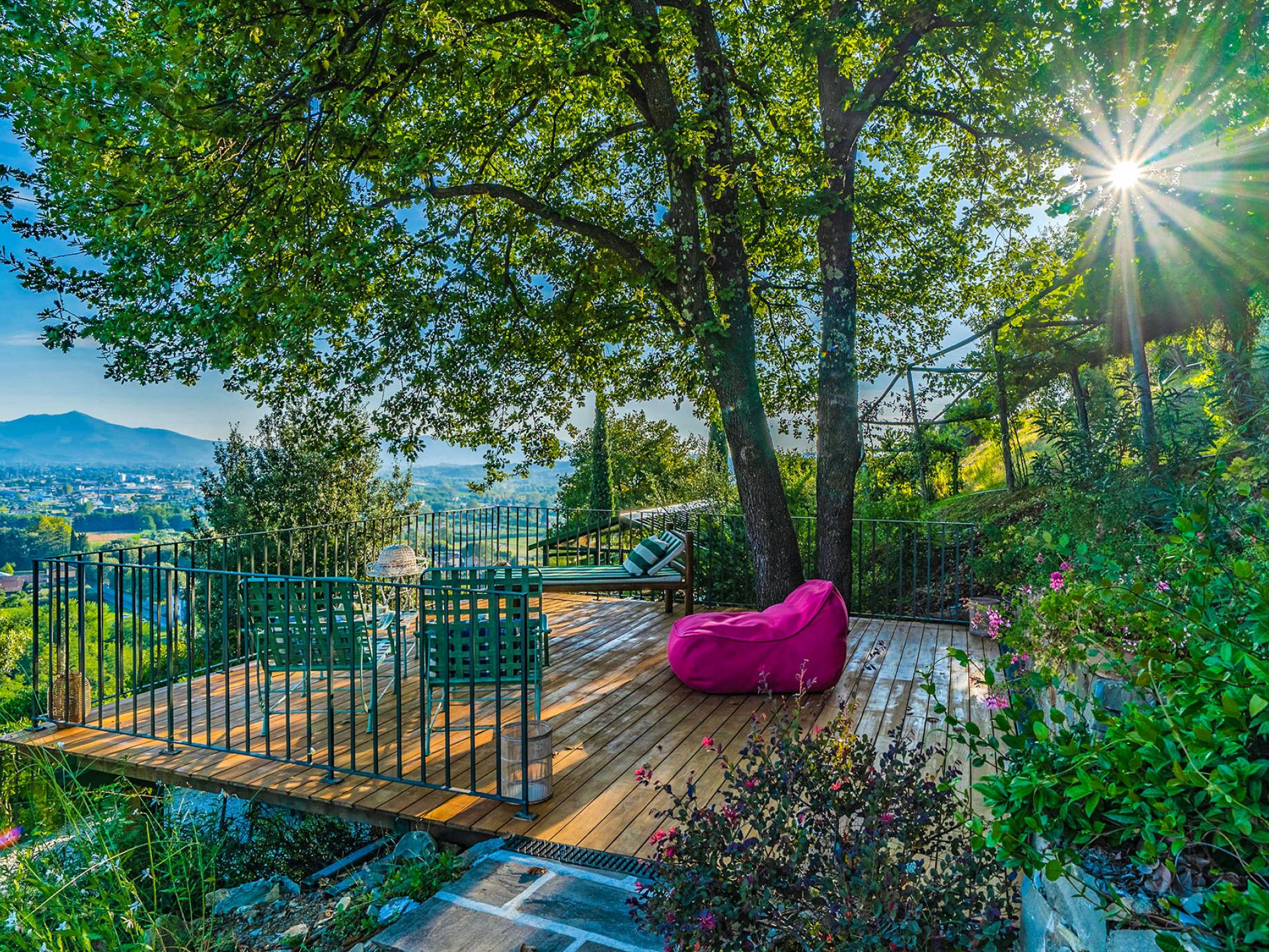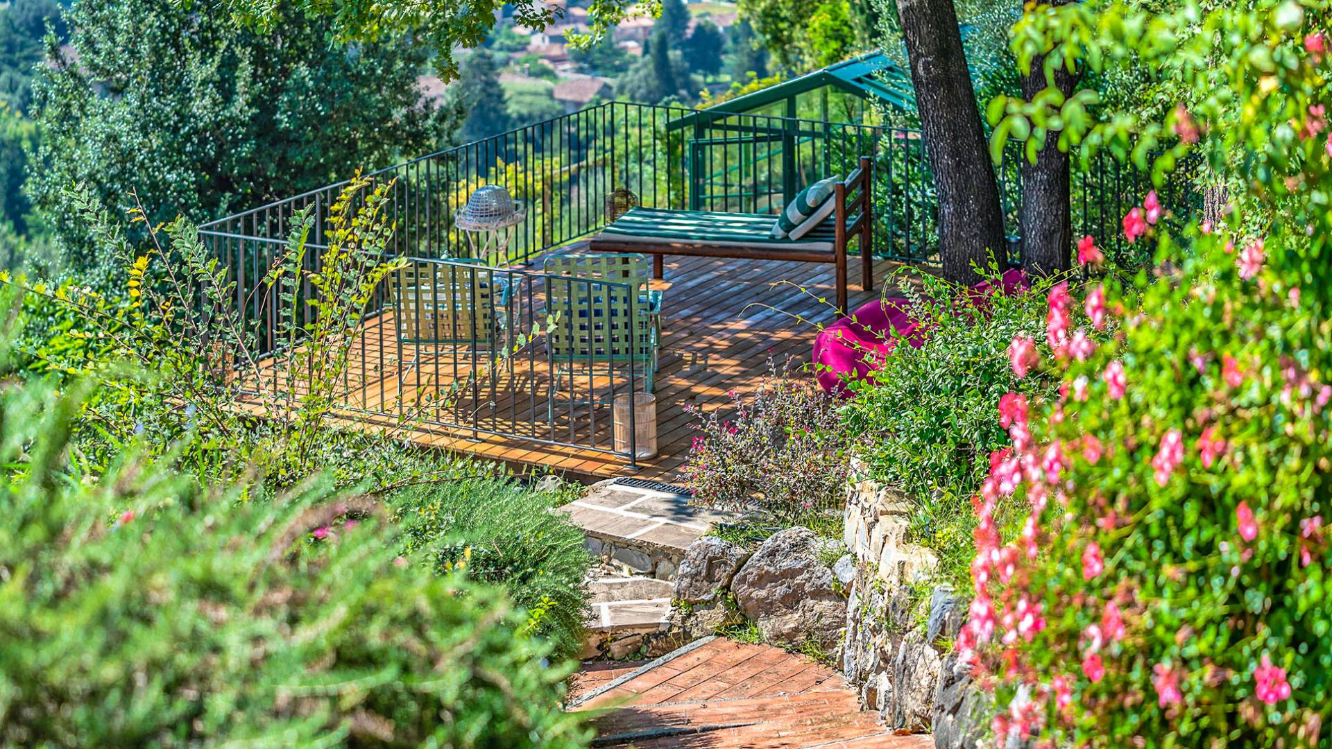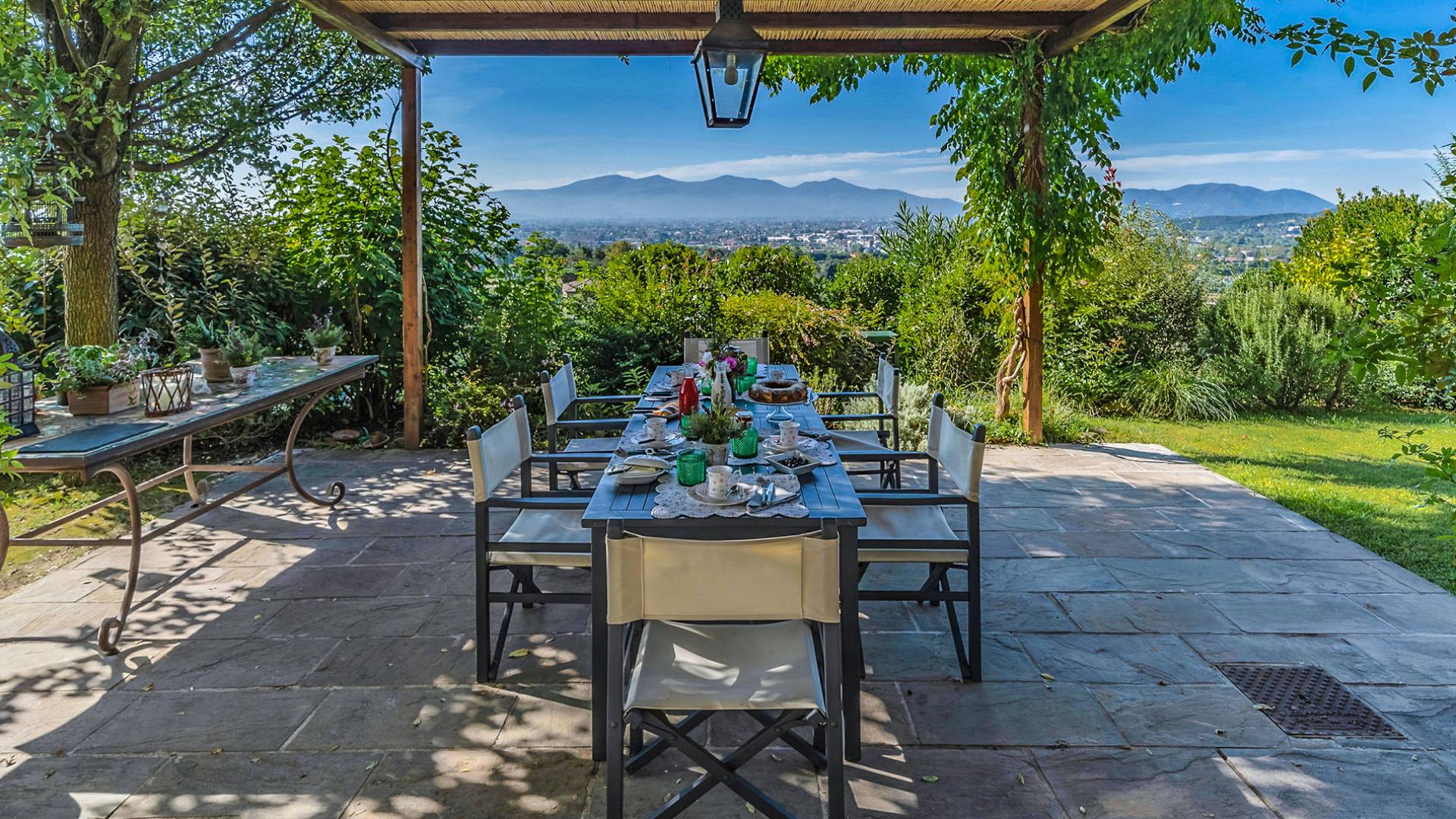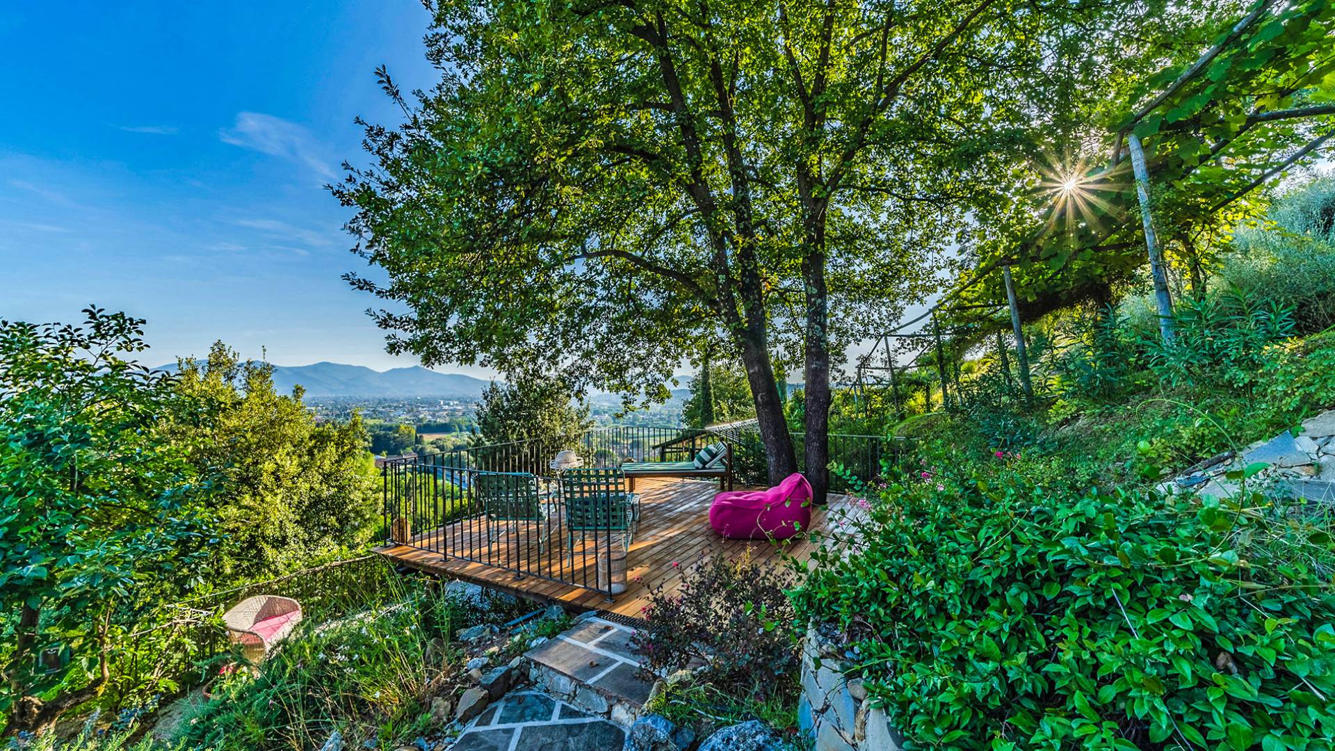 From the lounge area, the stairs go up to a greenhouse, a welcoming and intimate refuge where you can relax, have a good coffee, practice yoga, and, why not, gather inspiration for some painting. Further up you will arrive at a delightful panoramic terrace, under the shade of trees, where you can relax and enjoy the spectacular view of the valley reading a book, and enjoying a glass of good wine.
