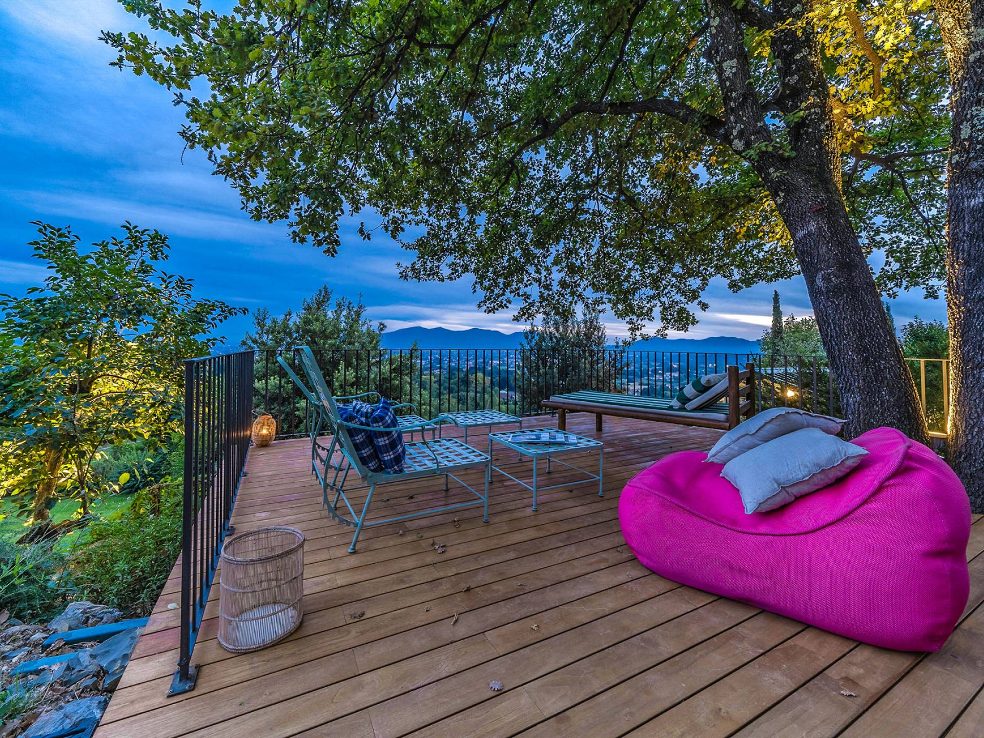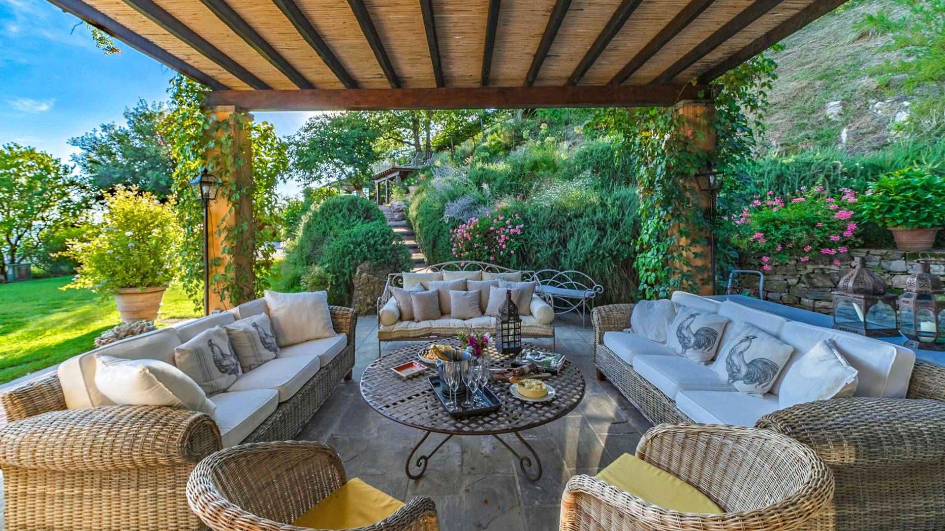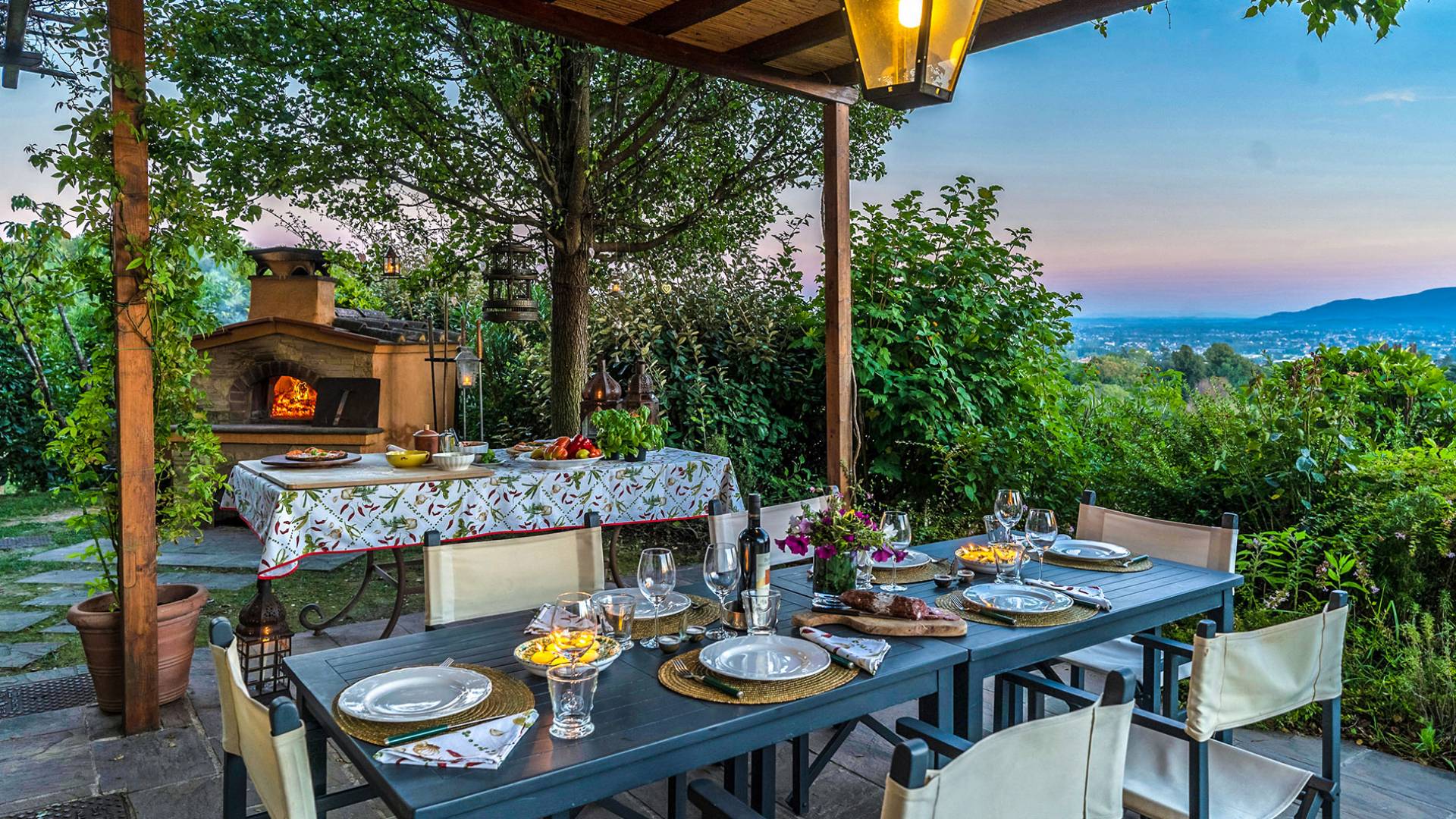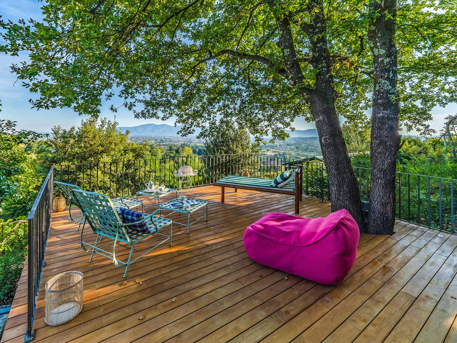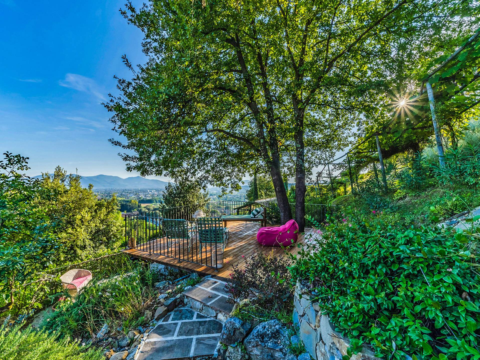 From the lounge area, the stairs go up to a greenhouse, a welcoming and intimate refuge where you can relax, have a good coffee, practice yoga, and, why not, gather inspiration for some painting. Further up you will arrive at a delightful panoramic terrace, under the shade of trees, where you can relax and enjoy the spectacular view of the valley reading a book, and enjoying a glass of good wine.