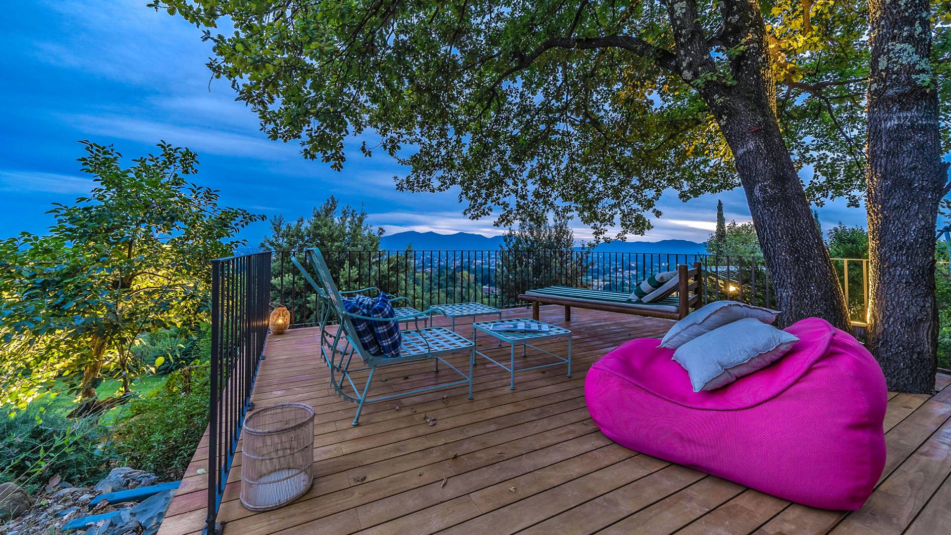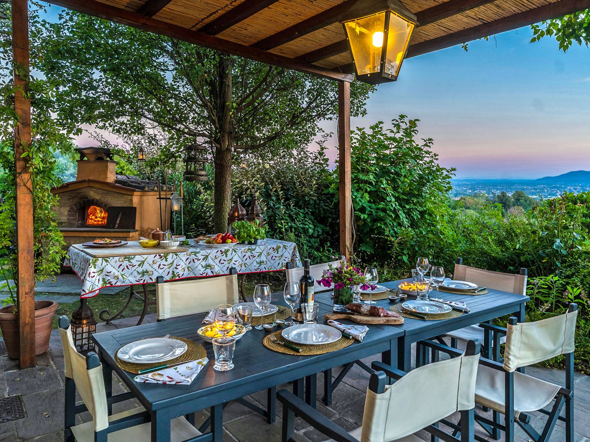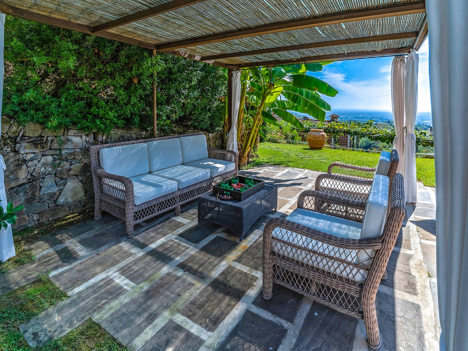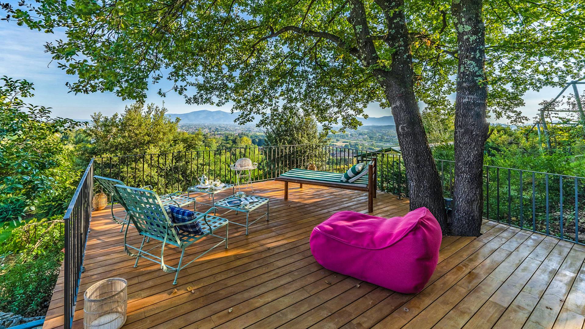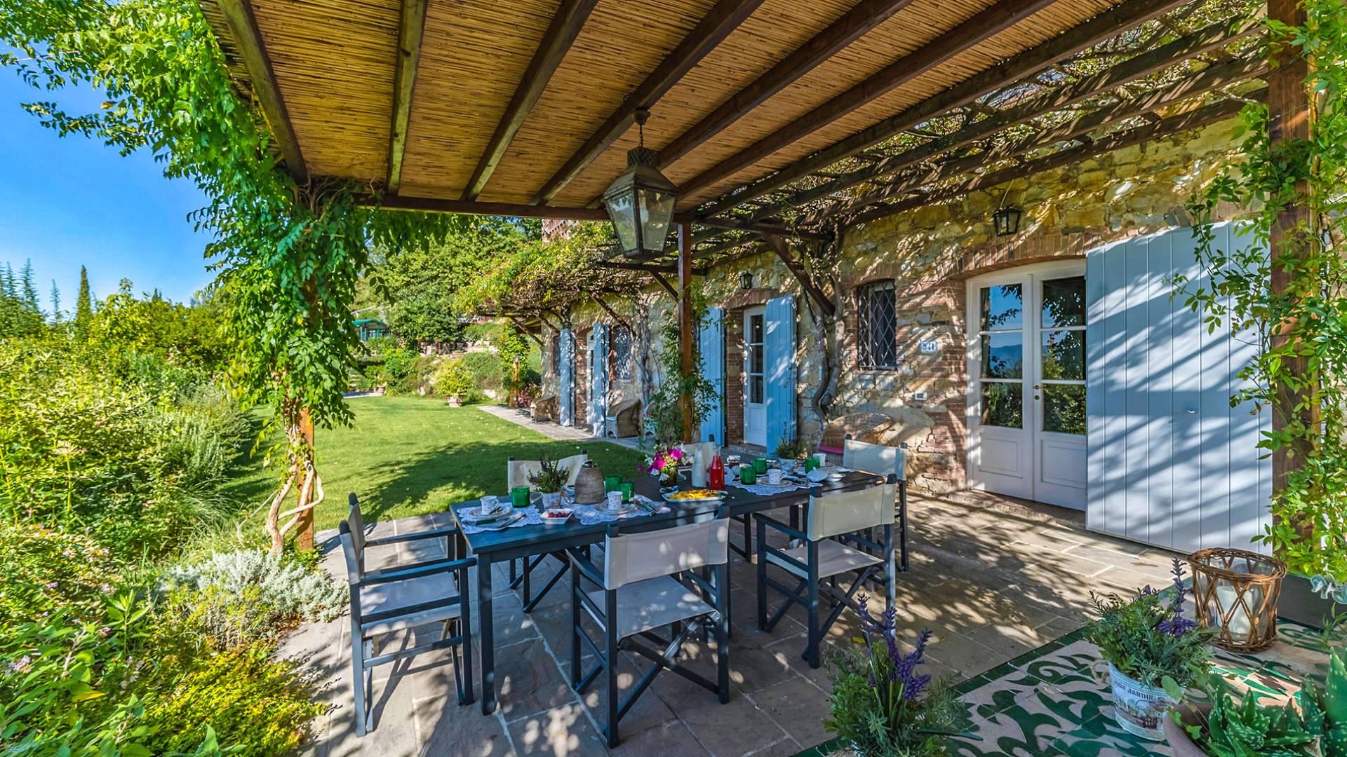 From the lounge area, the stairs go up to a greenhouse, a welcoming and intimate refuge where you can relax, have a good coffee, practice yoga, and, why not, gather inspiration for some painting. Further up you will arrive at a delightful panoramic terrace, under the shade of trees, where you can relax and enjoy the spectacular view of the valley reading a book, and enjoying a glass of good wine.