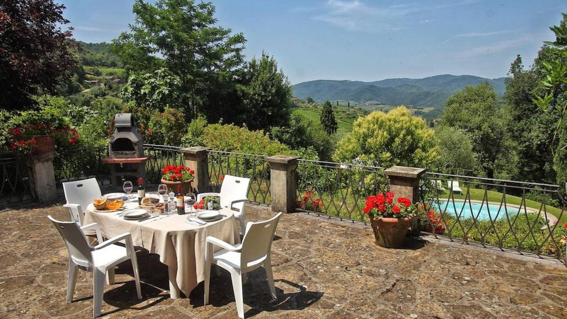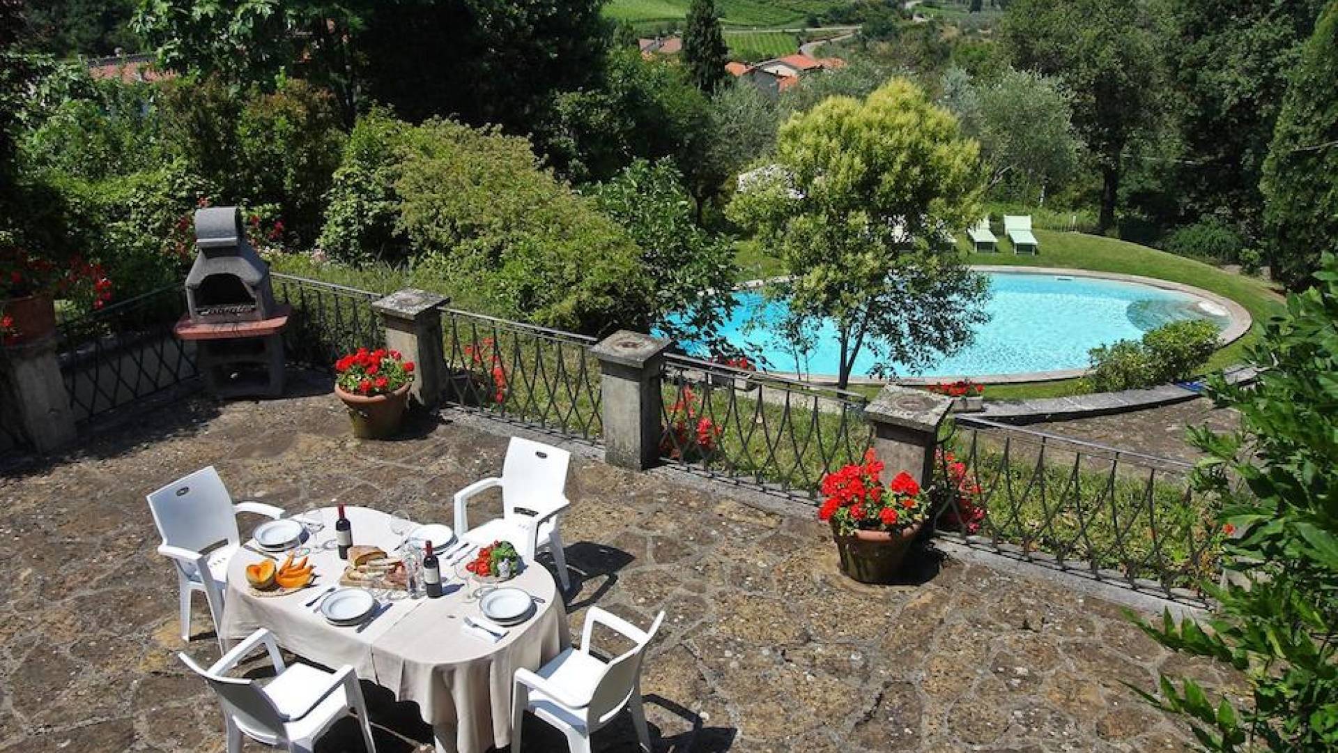 Perched on a green and forested valley of the Chianti, in the small picturesque village of Lucolena, sits Villa Luce Tuscany, a comfortable country home with a private pool and open views from its raised terraces. The well-tended terraced gardens are planted with flowers typical of the Chianti area giving a fragrant aroma throughout.