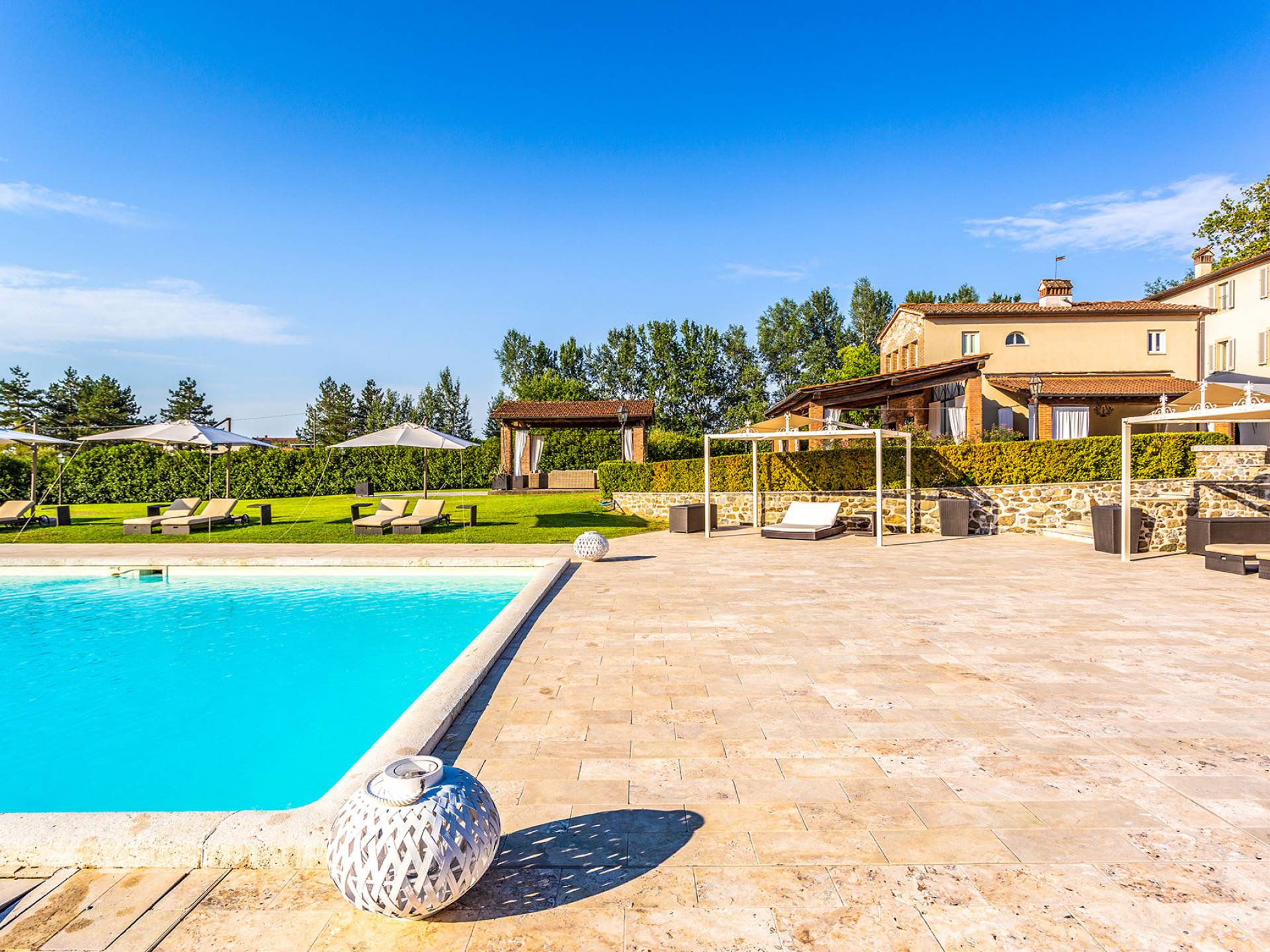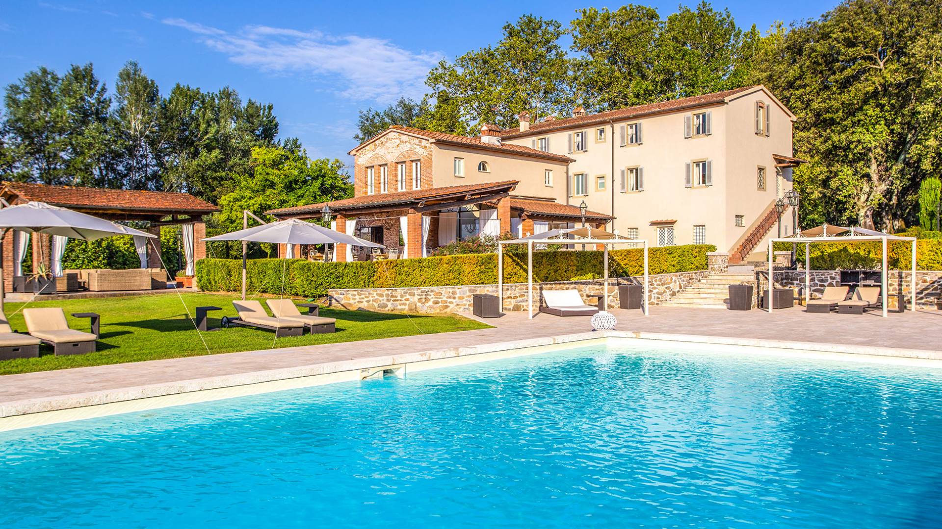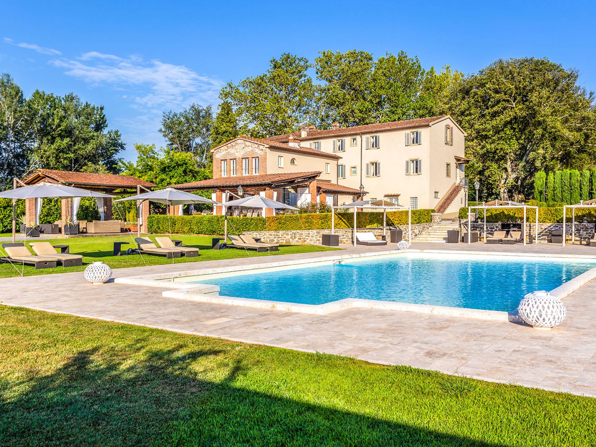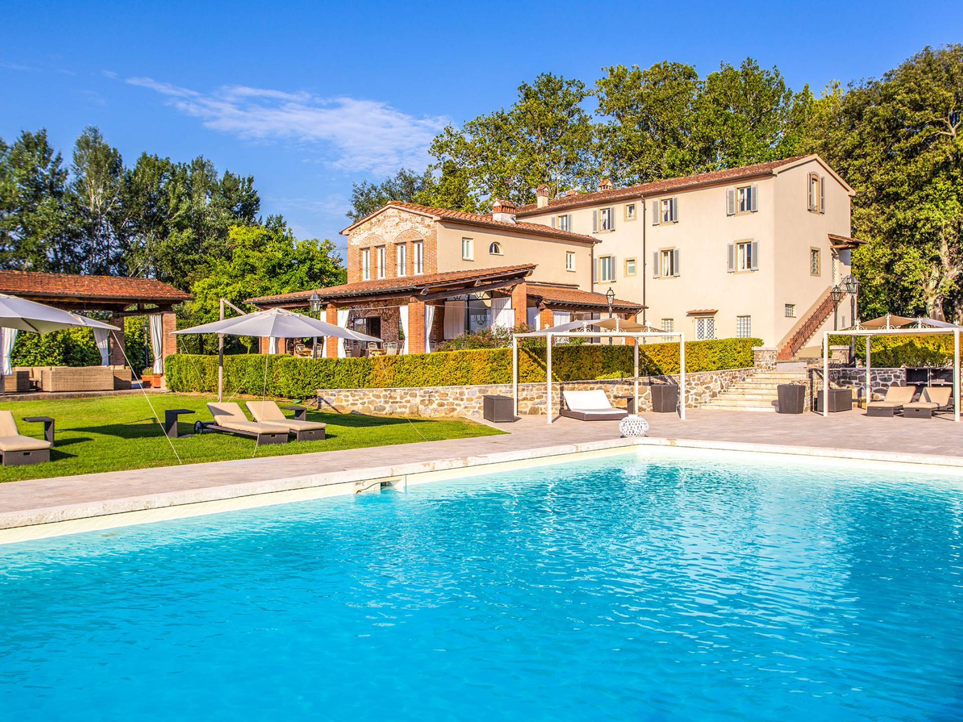 Villa Orizzonte Tuscany is highly recommended for large groups of friends or families traveling together, as the hotel-like kind of management will allow everybody to follow their own plan. The villa per se is luxurious, bedrooms are exceptionally furnished and the choice of materials reflects the impeccable taste of its owners, cachemire entrepreneurs converted into generous, fabulous, and many beloved owners.