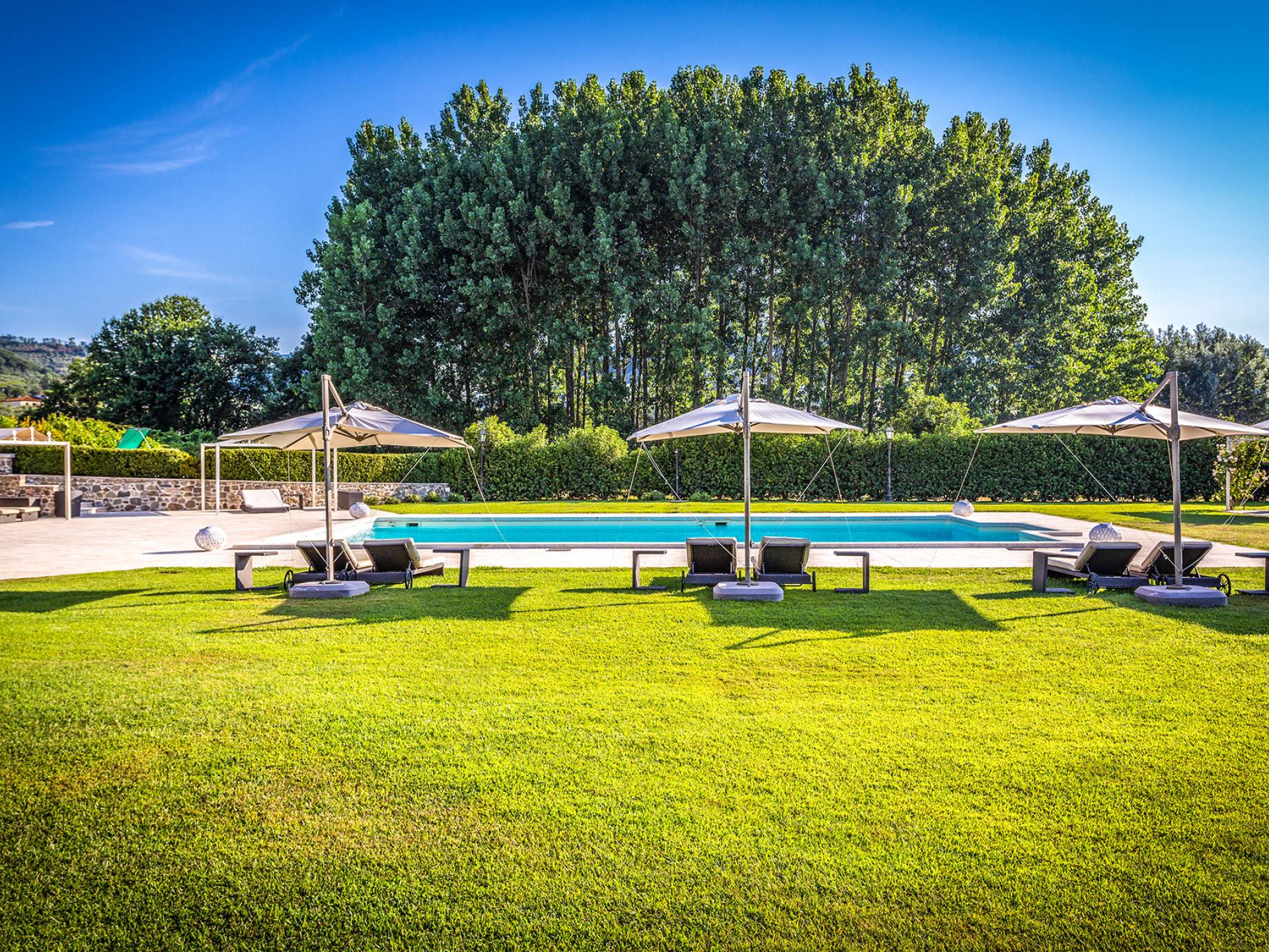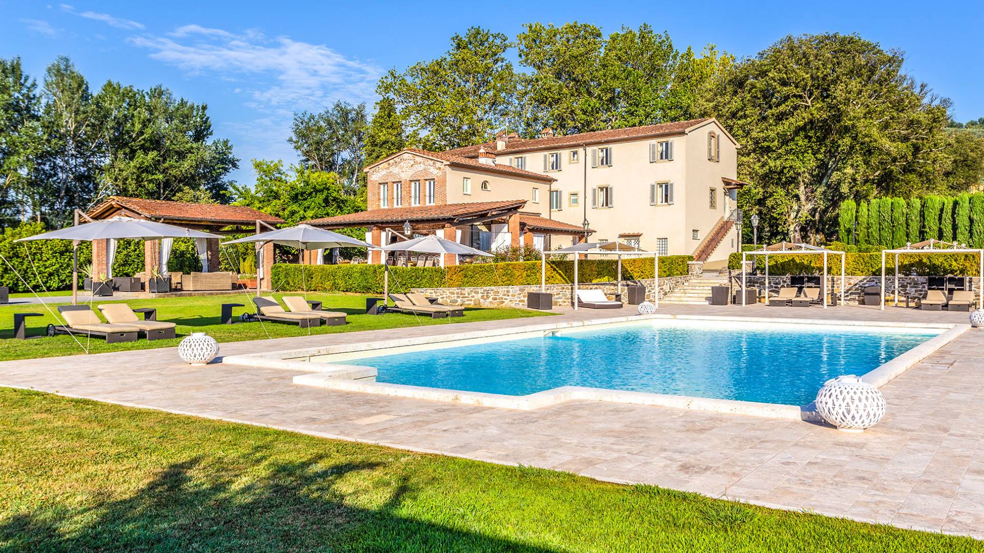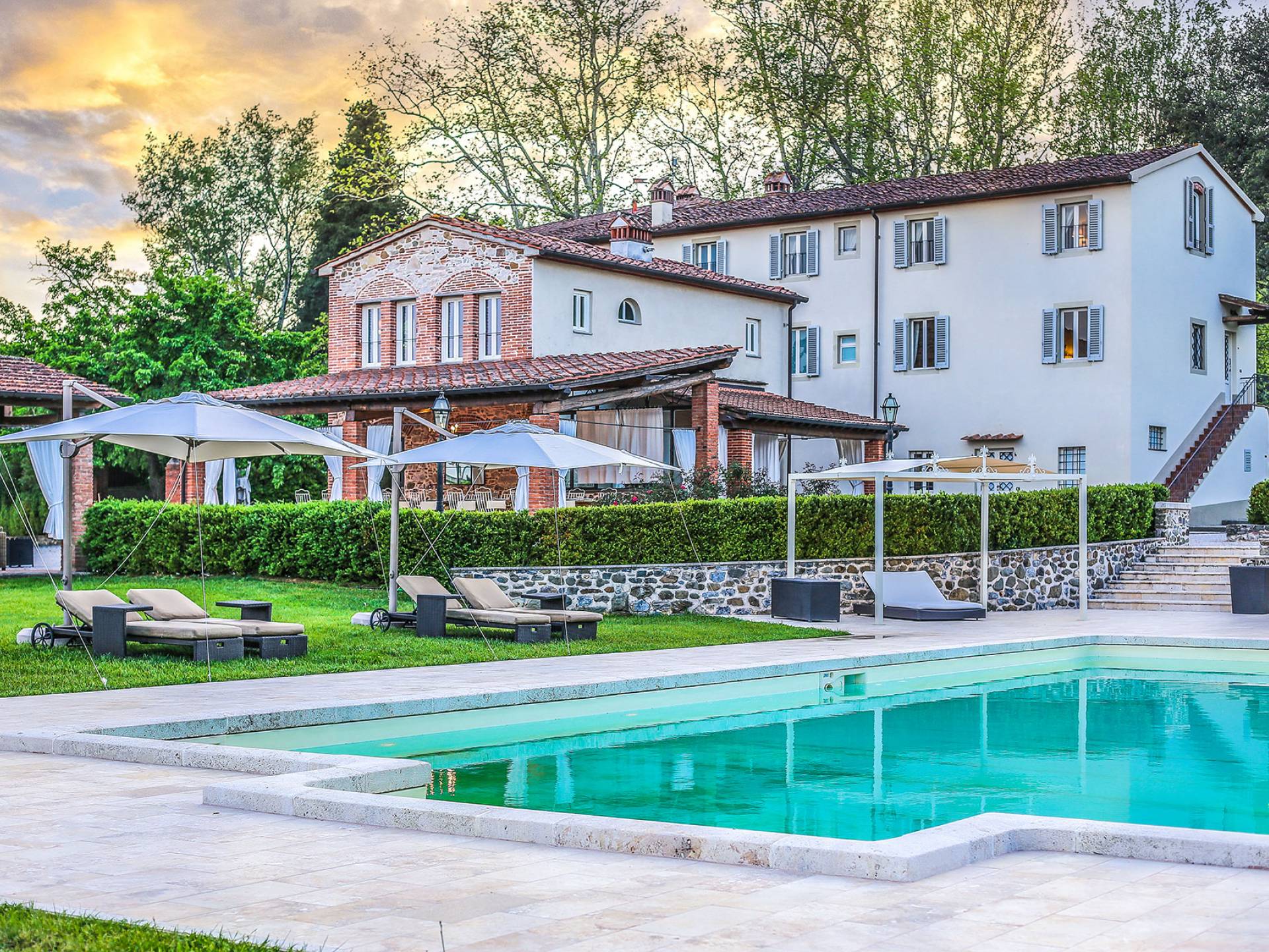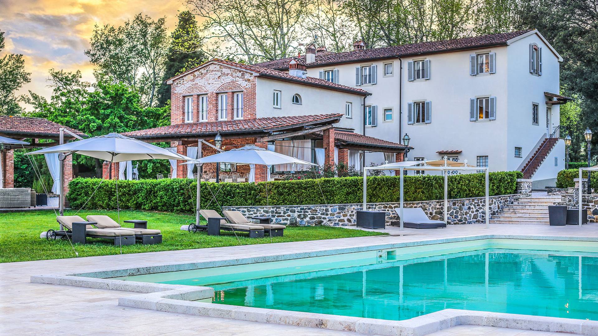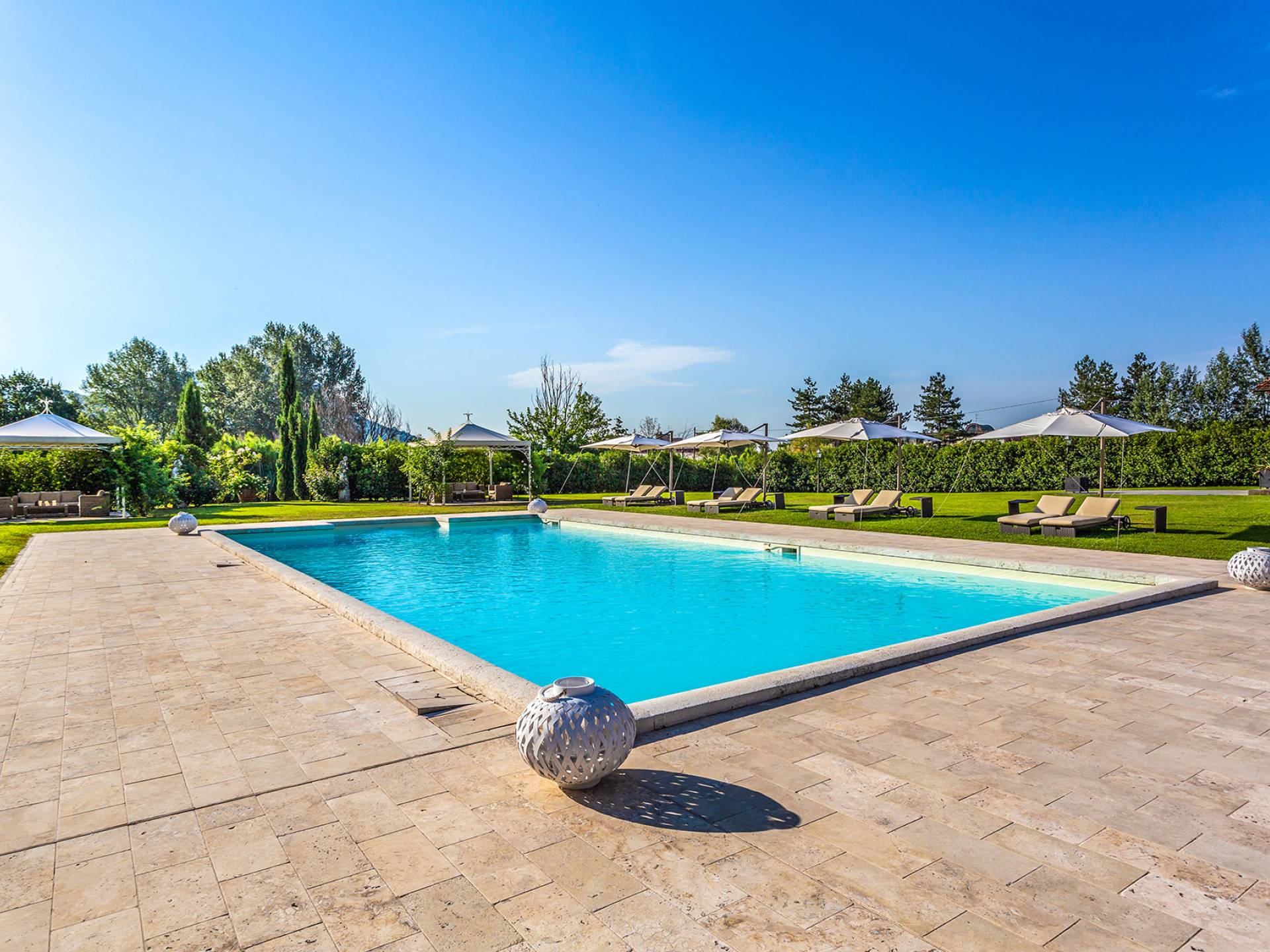 Villa Orizzonte Tuscany is highly recommended for large groups of friends or families traveling together, as the hotel-like kind of management will allow everybody to follow their own plan. The villa per se is luxurious, bedrooms are exceptionally furnished and the choice of materials reflects the impeccable taste of its owners, cachemire entrepreneurs converted into generous, fabulous, and many beloved owners.