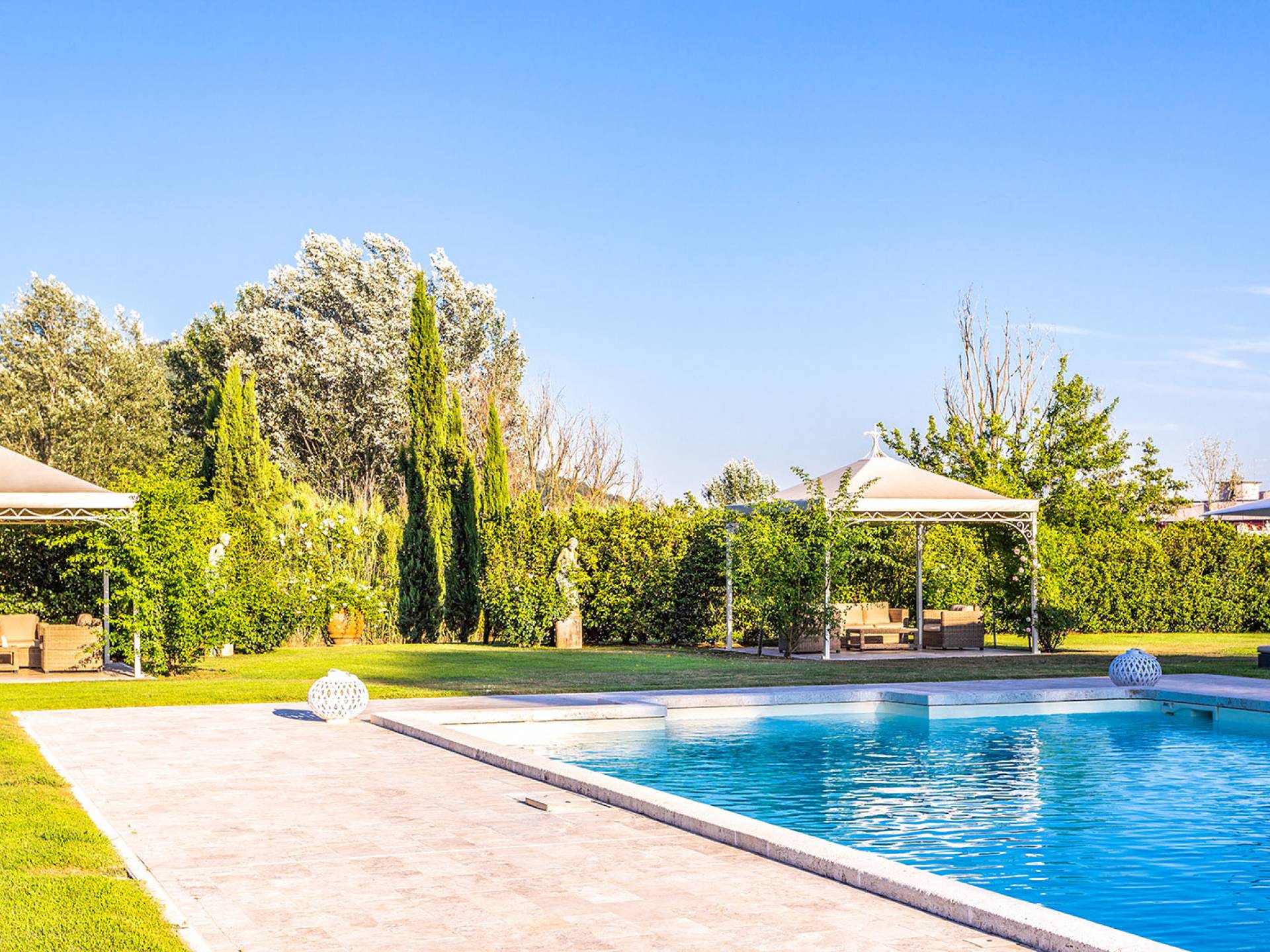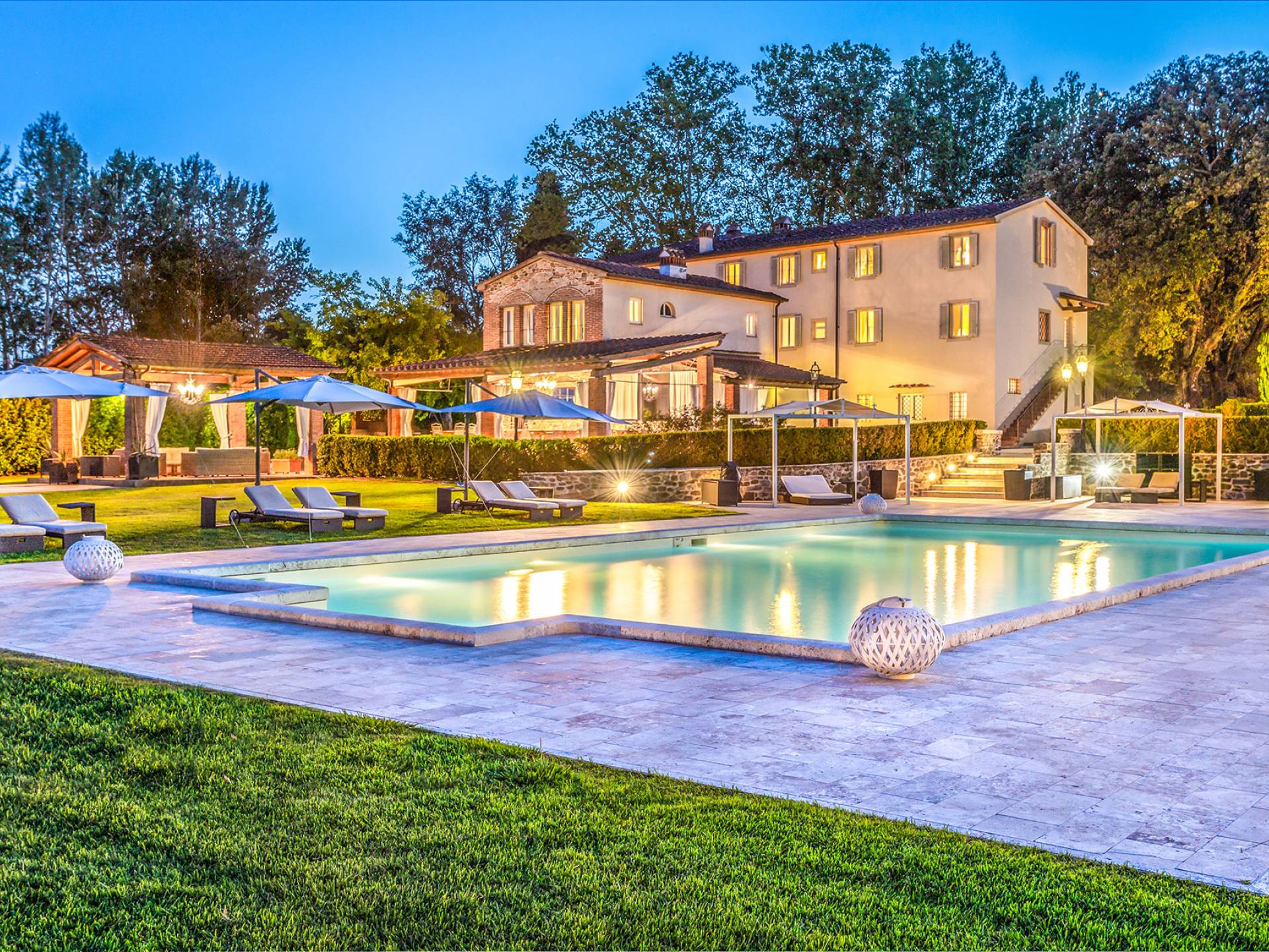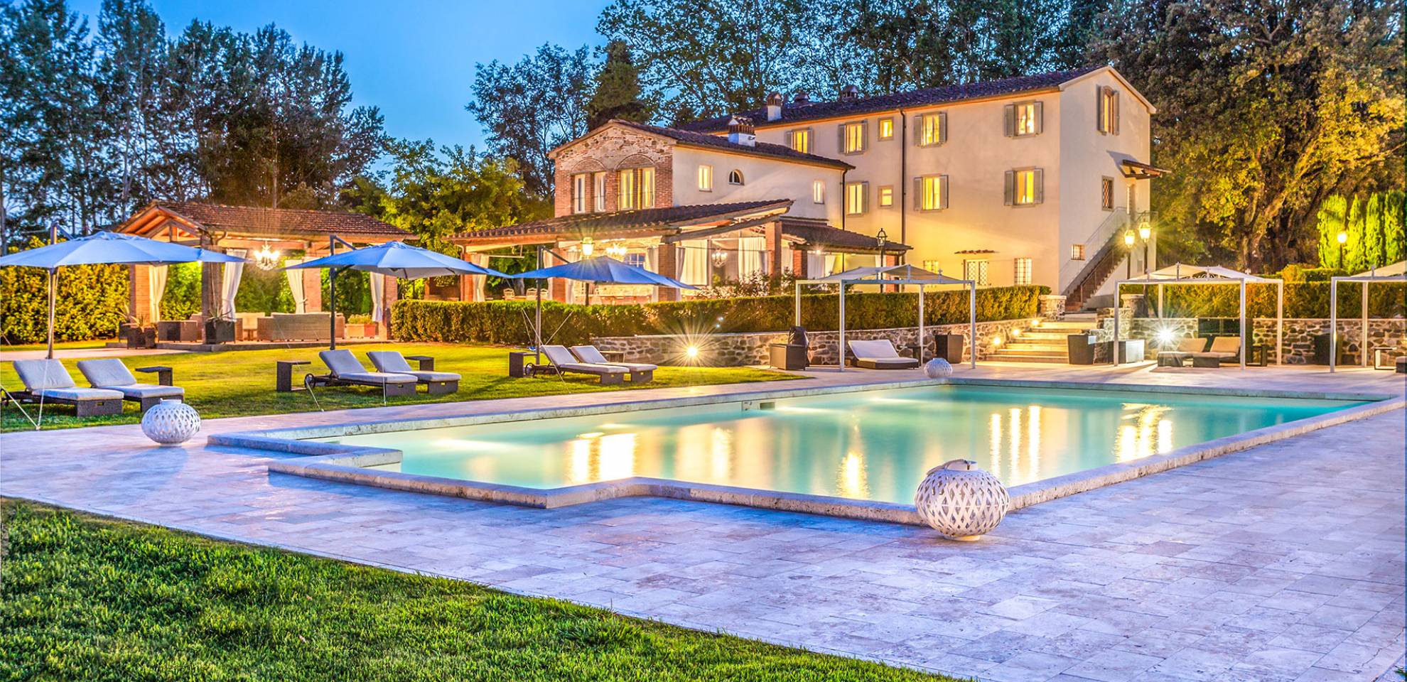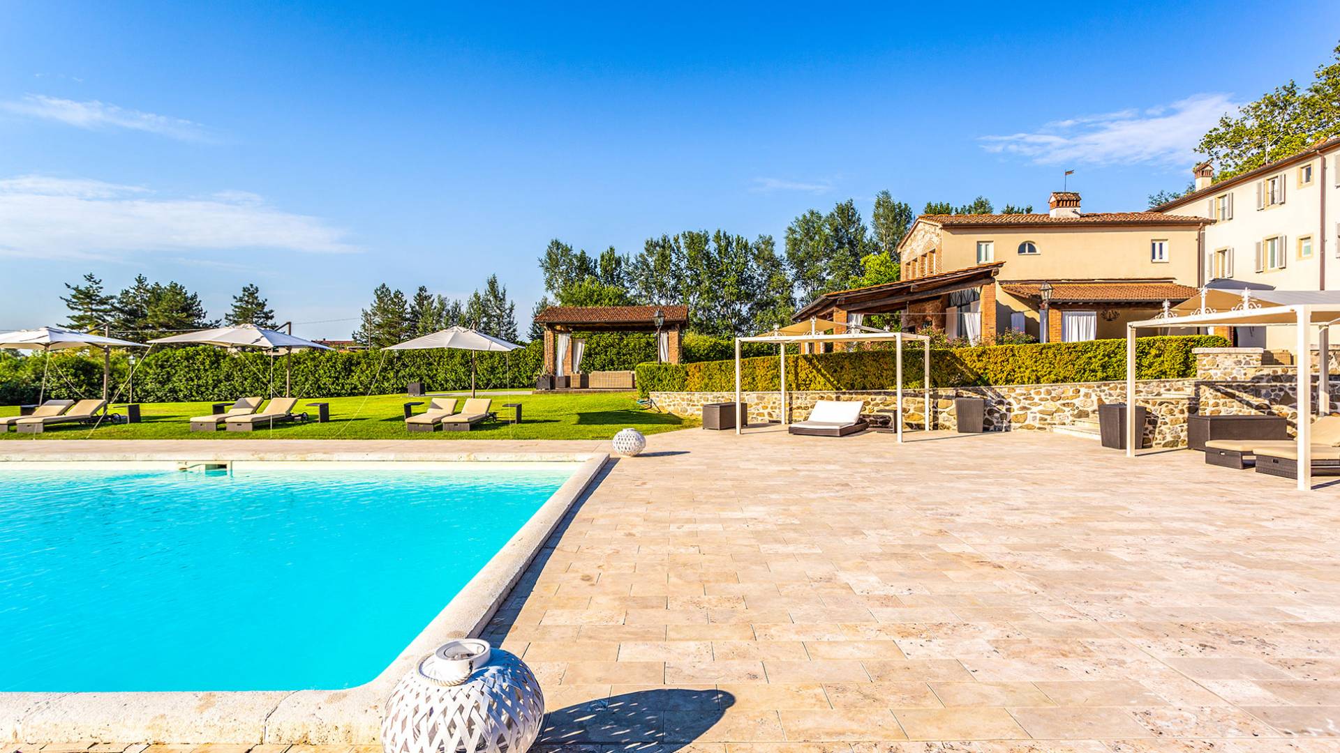Villa Orizzonte Tuscany is highly recommended for large groups of friends or families traveling together, as the hotel-like kind of management will allow everybody to follow their own plan. The villa per se is luxurious, bedrooms are exceptionally furnished and the choice of materials reflects the impeccable taste of its owners, cachemire entrepreneurs converted into generous, fabulous, and many beloved owners.