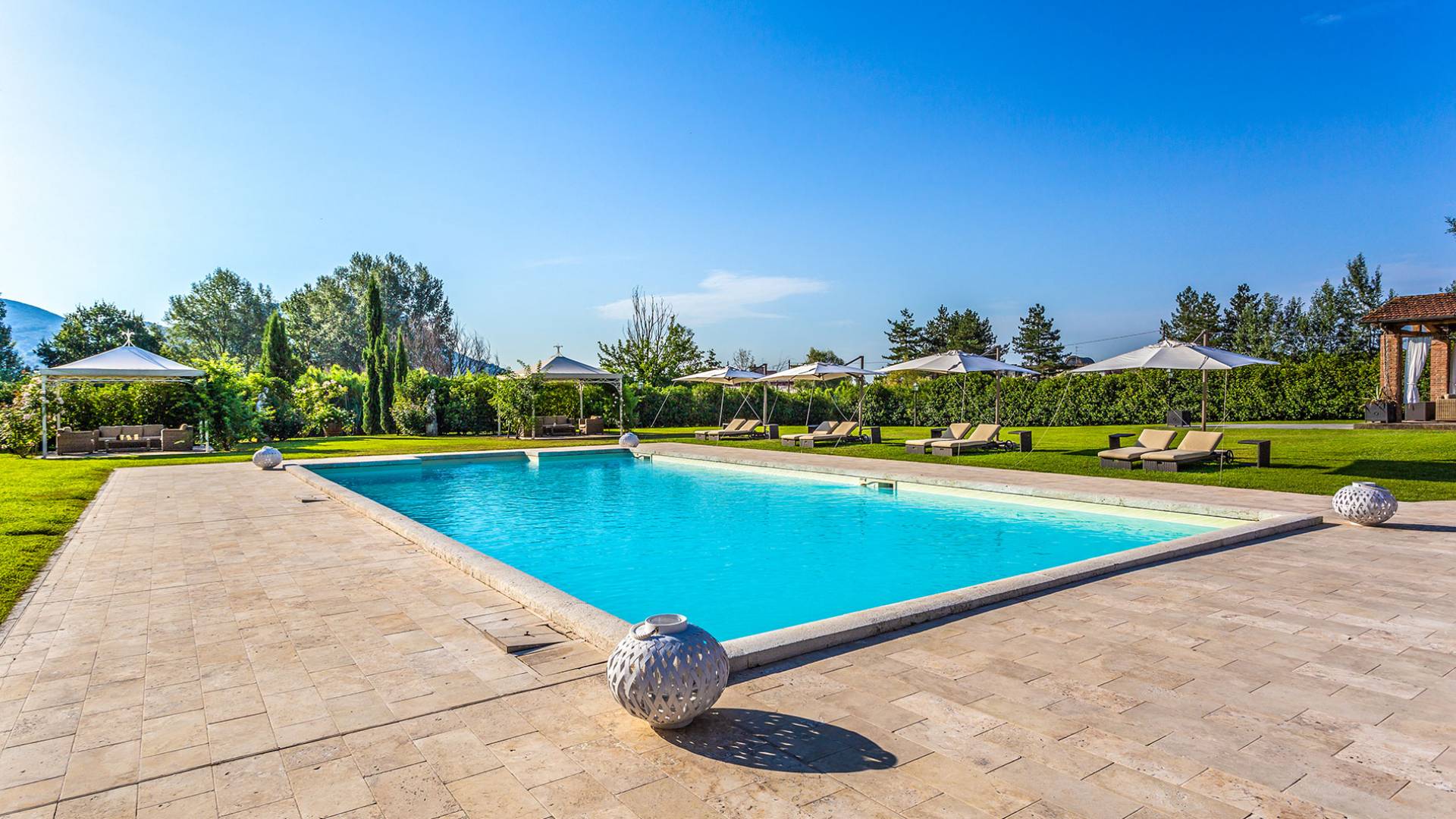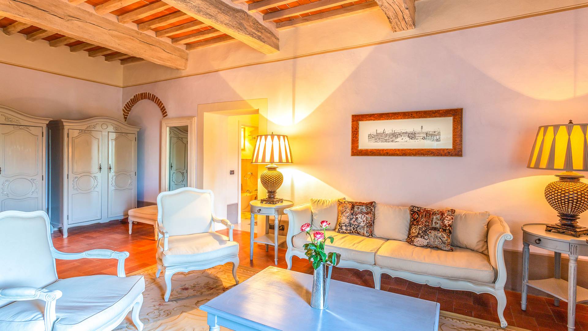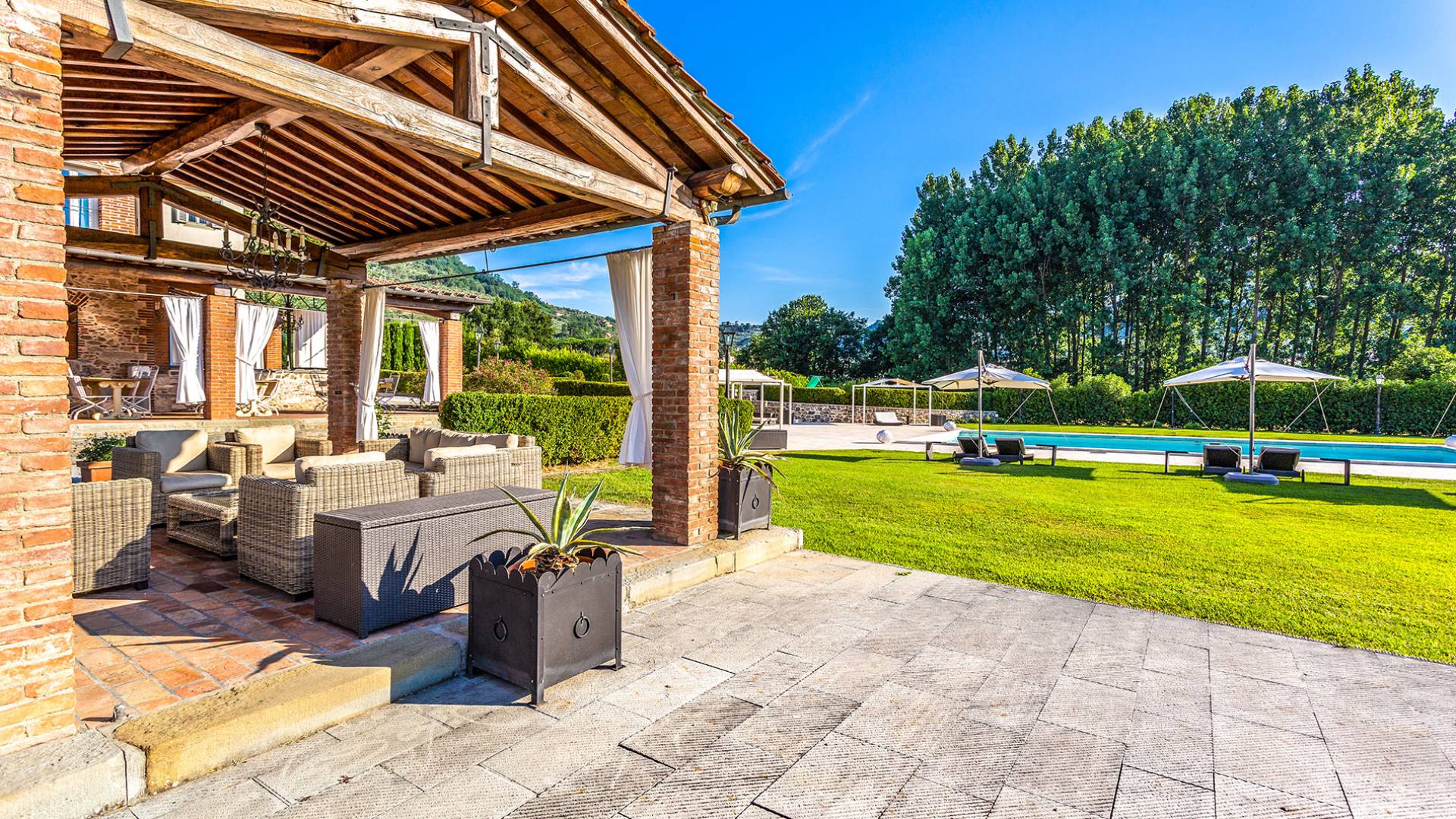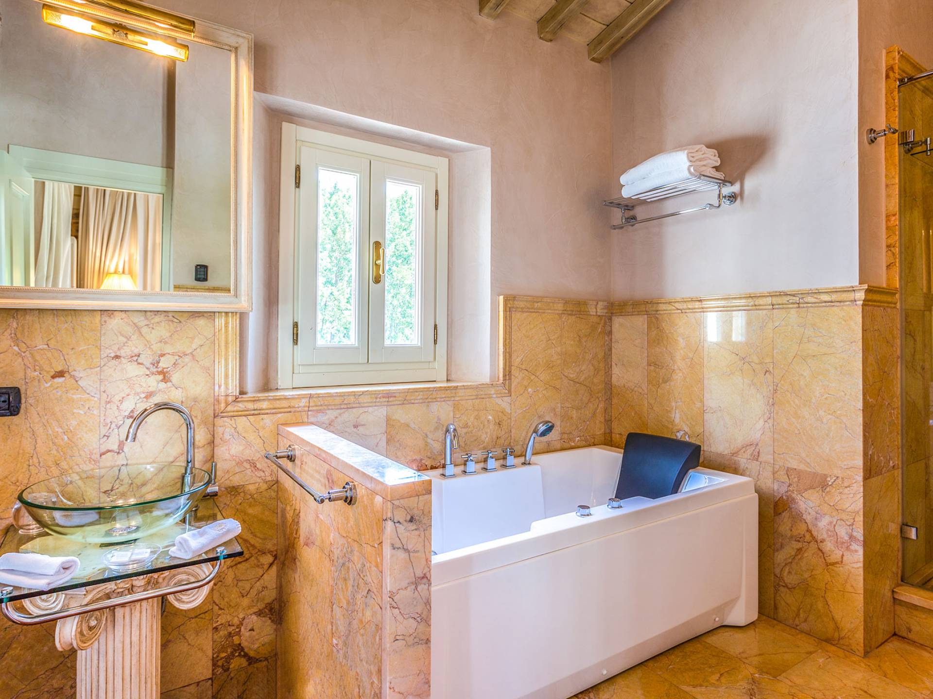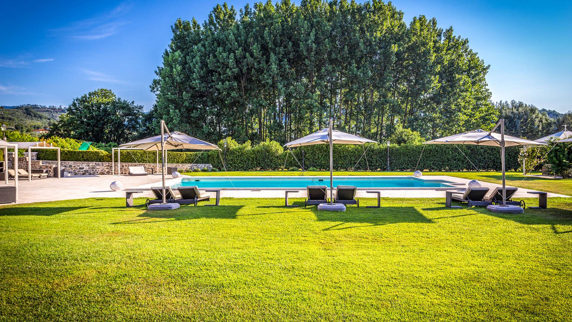 Villa Orizzonte Tuscany is highly recommended for large groups of friends or families traveling together, as the hotel-like kind of management will allow everybody to follow their own plan. The villa per se is luxurious, bedrooms are exceptionally furnished and the choice of materials reflects the impeccable taste of its owners, cachemire entrepreneurs converted into generous, fabulous, and many beloved owners.