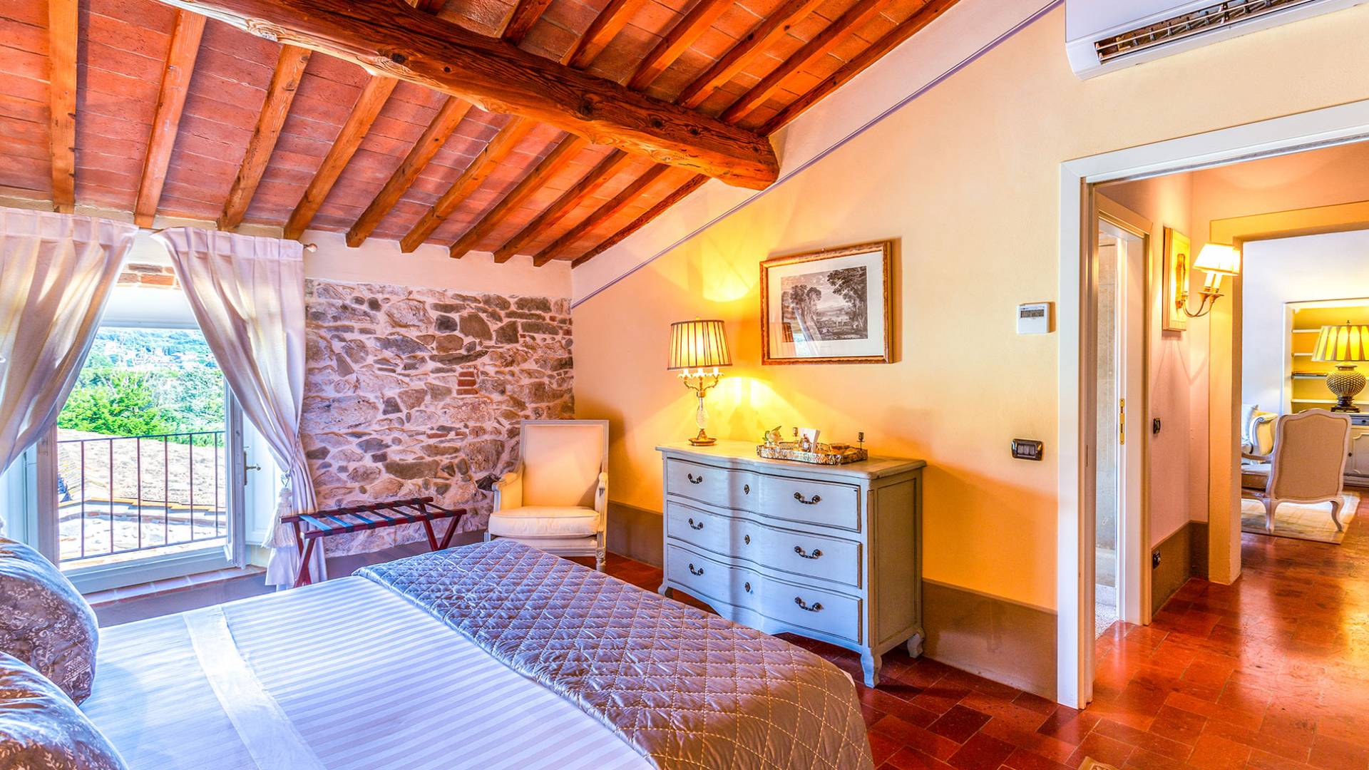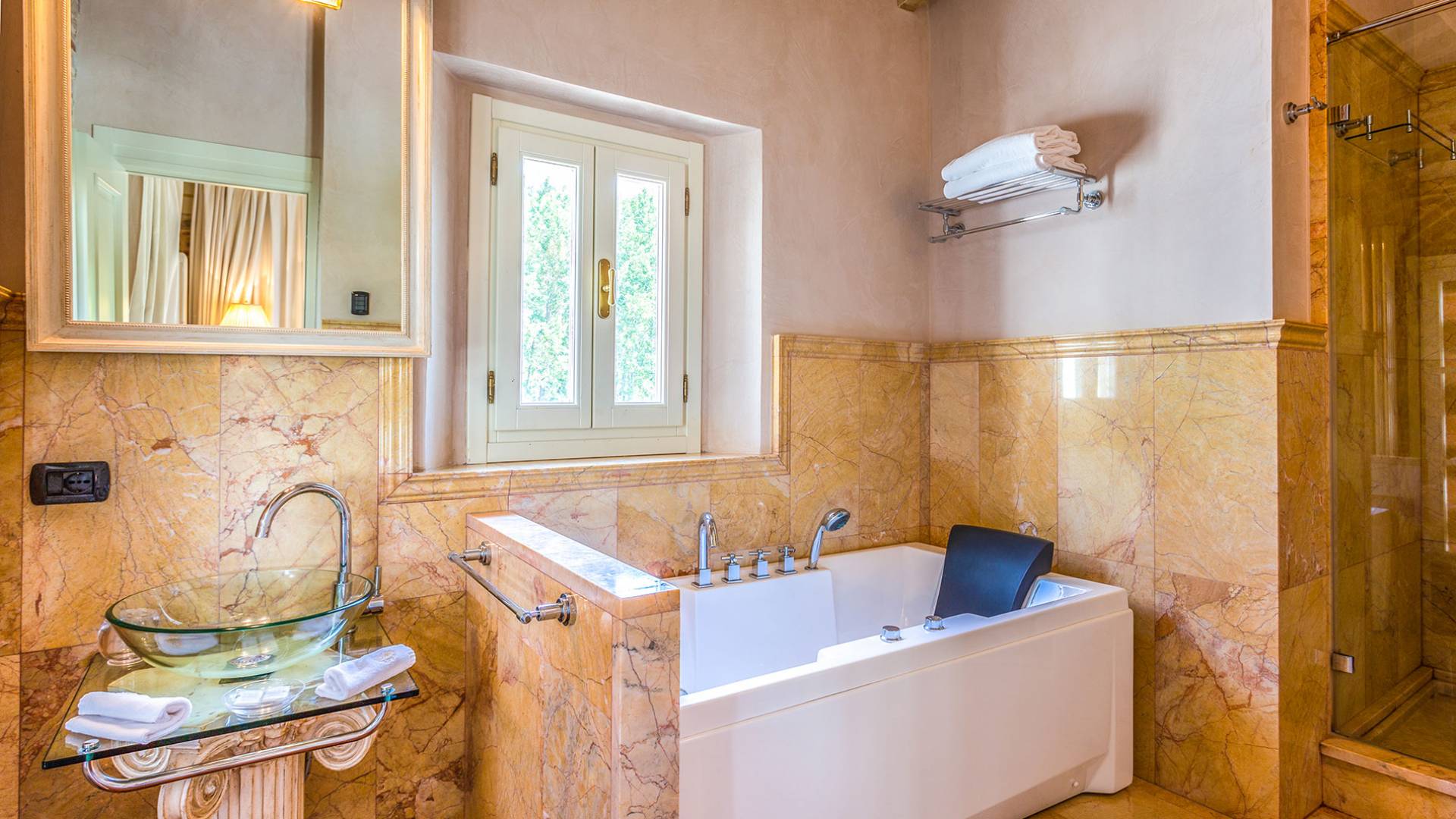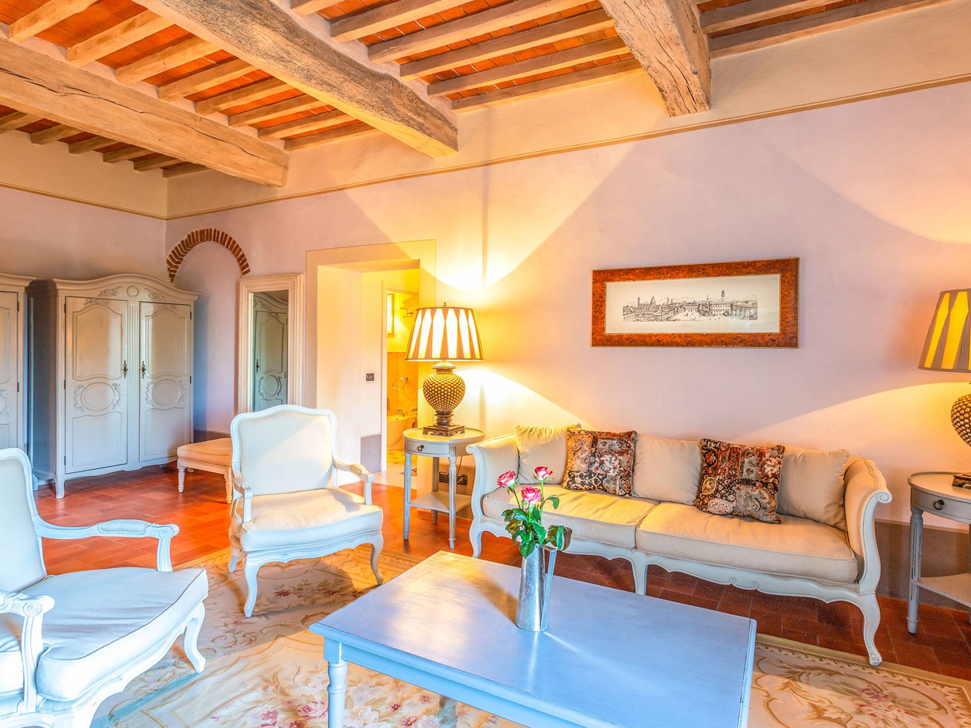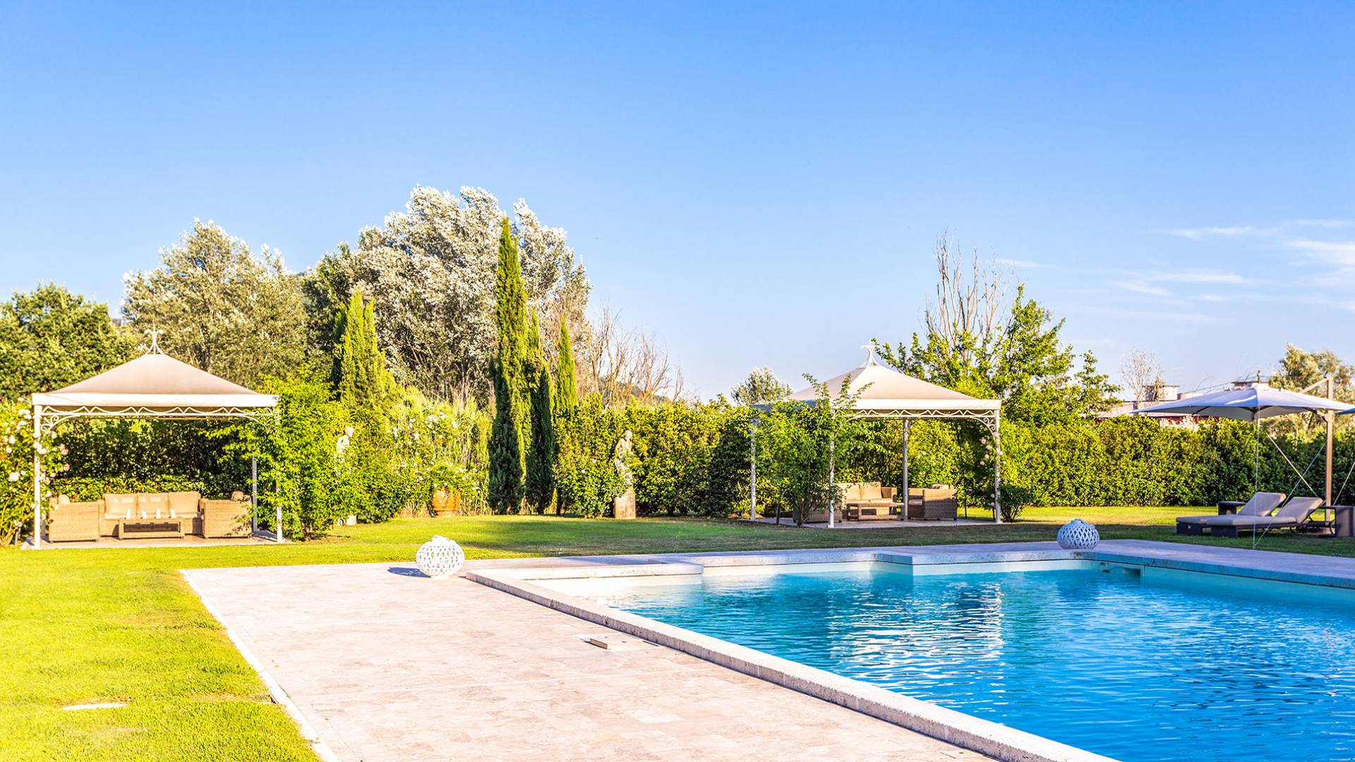 Villa Orizzonte Tuscany is highly recommended for large groups of friends or families traveling together, as the hotel-like kind of management will allow everybody to follow their own plan. The villa per se is luxurious, bedrooms are exceptionally furnished and the choice of materials reflects the impeccable taste of its owners, cachemire entrepreneurs converted into generous, fabulous, and many beloved owners.