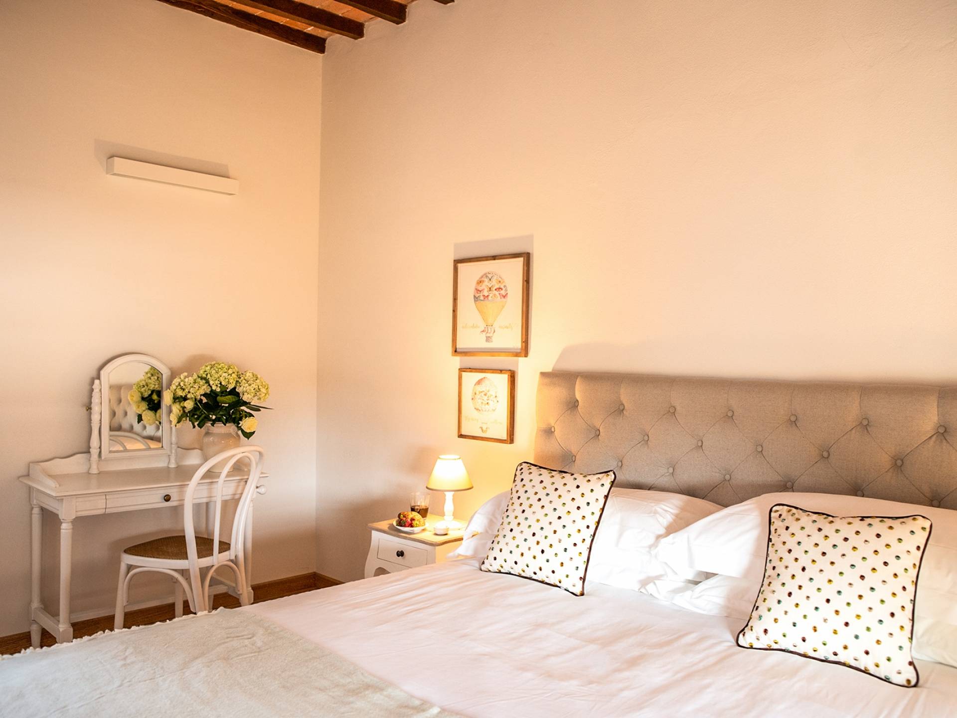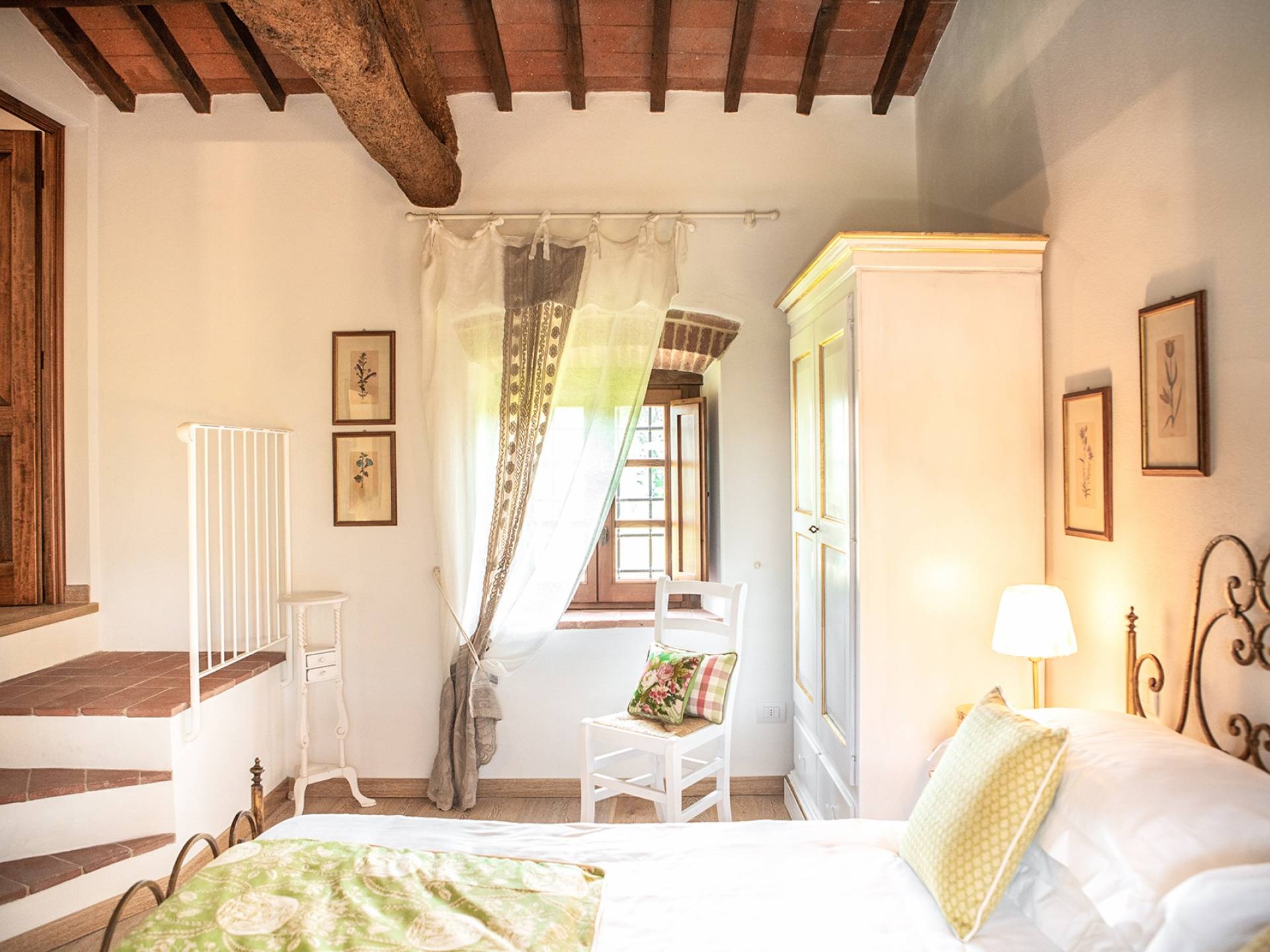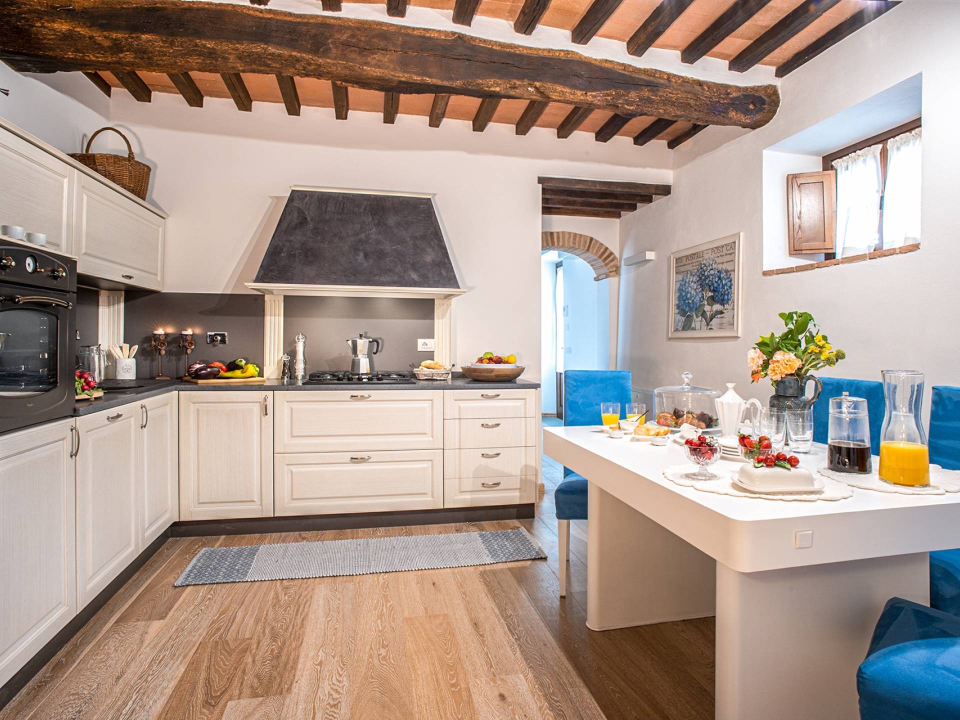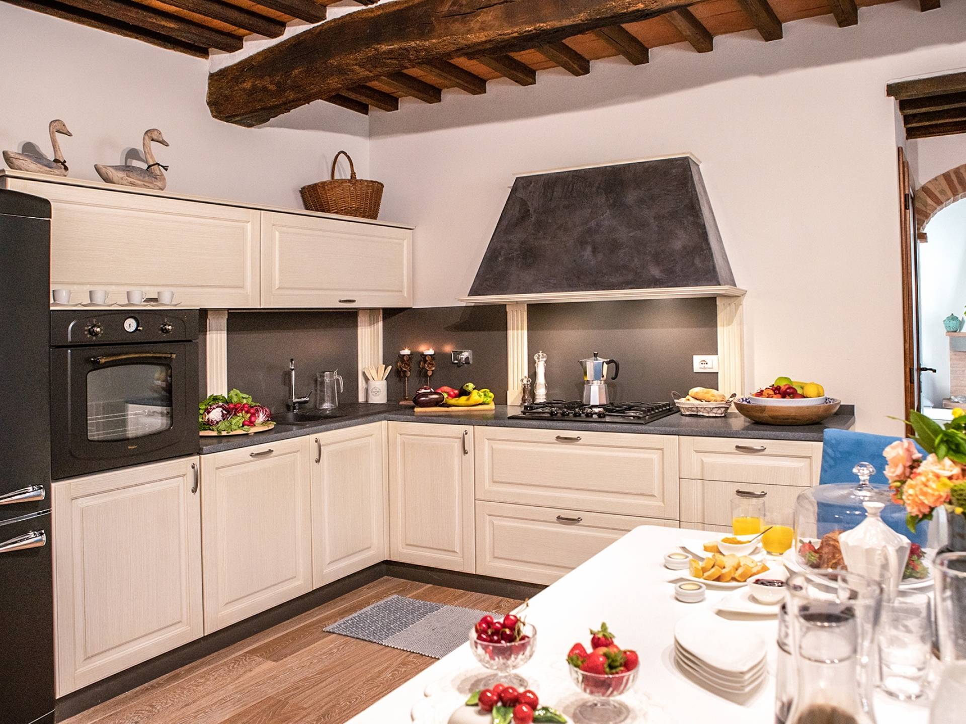 The Villa features ample social spaces, all very well equipped. The beautiful wooden floors, the stunning wooden ceilings, and also the various fireplaces will give you unforgettable moments of a Tuscan dream holiday. The Villa opens onto a living space with a comfortable sofa and Tv from this living room through the internal stairs it is possible to reach the double bedrooms Viola and Margherita, both with Queen size beds and ensuite bathrooms with shower, kitchen completed equipped.