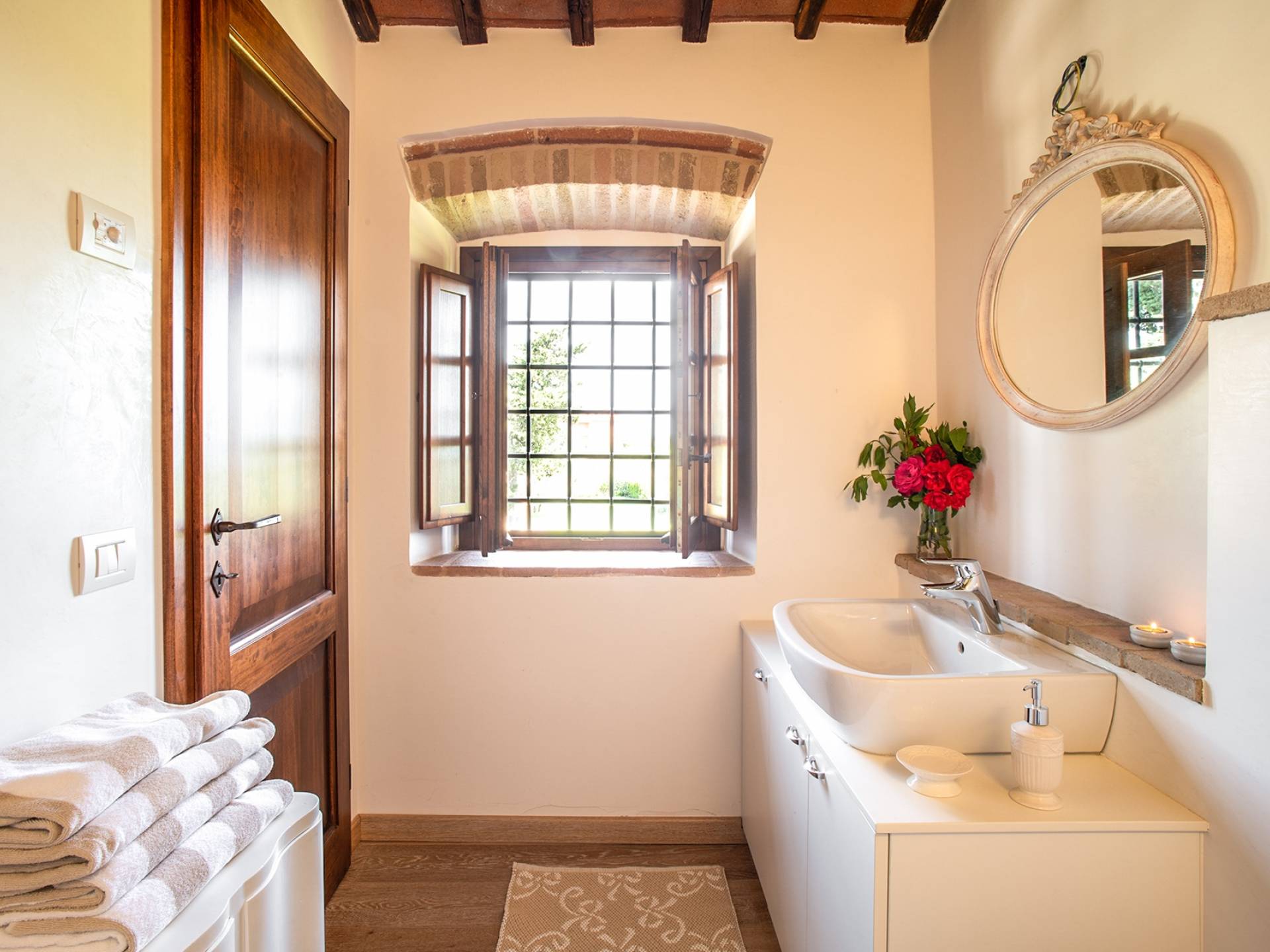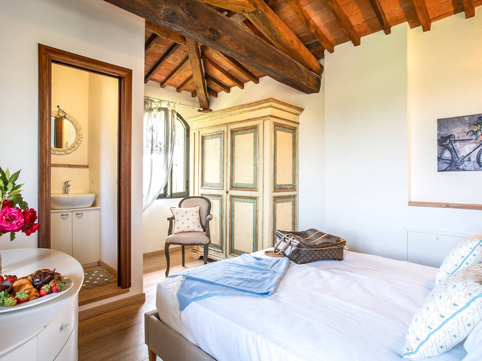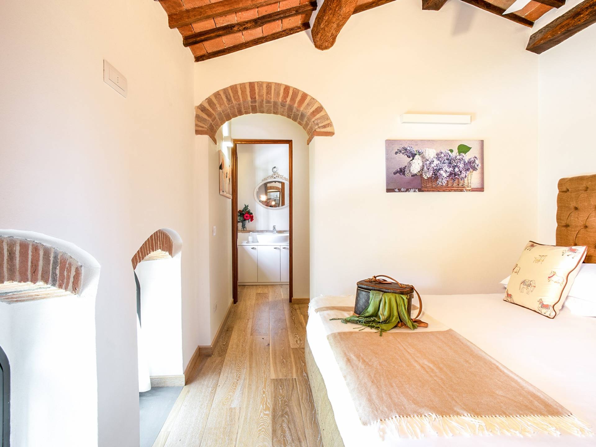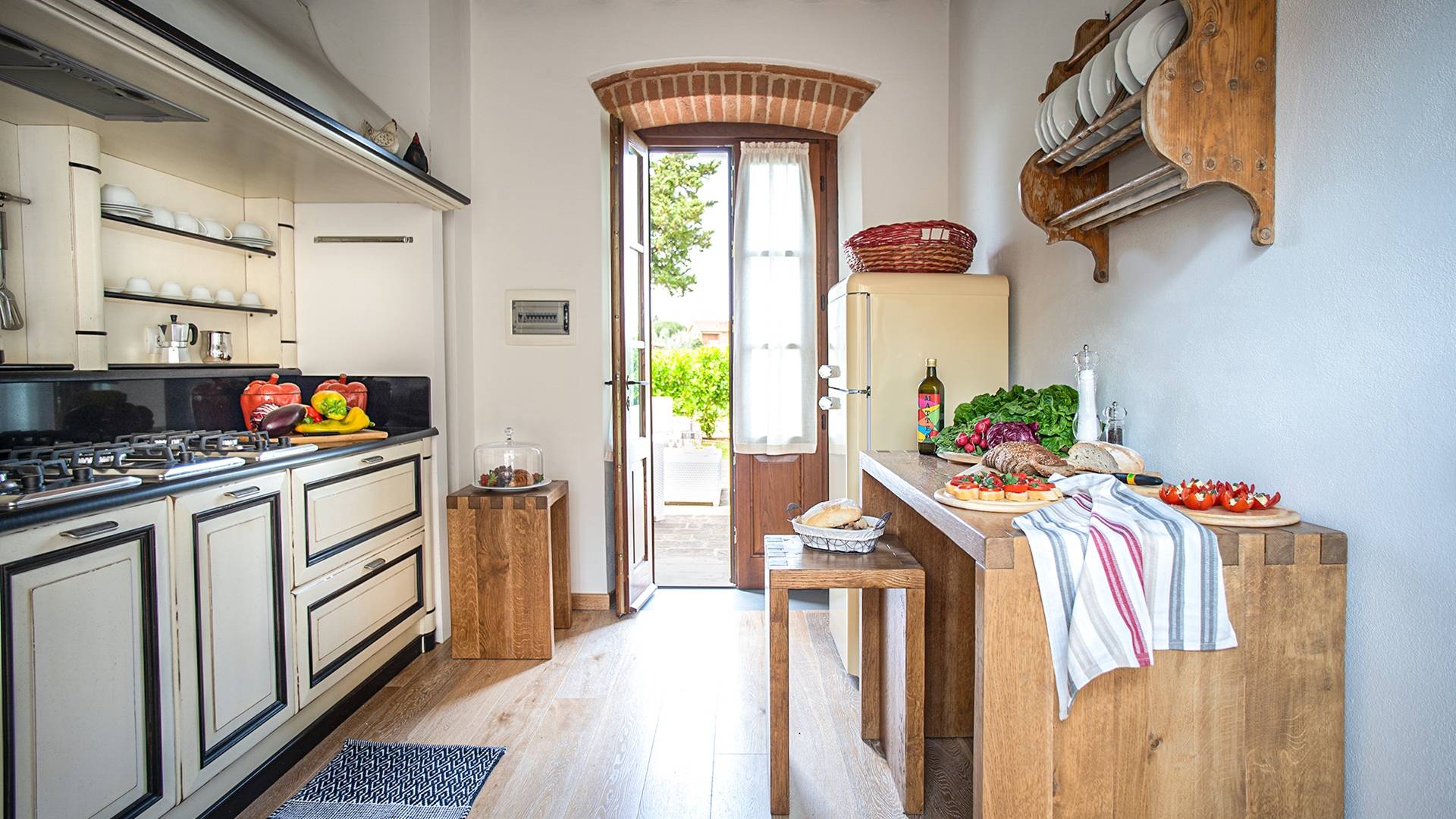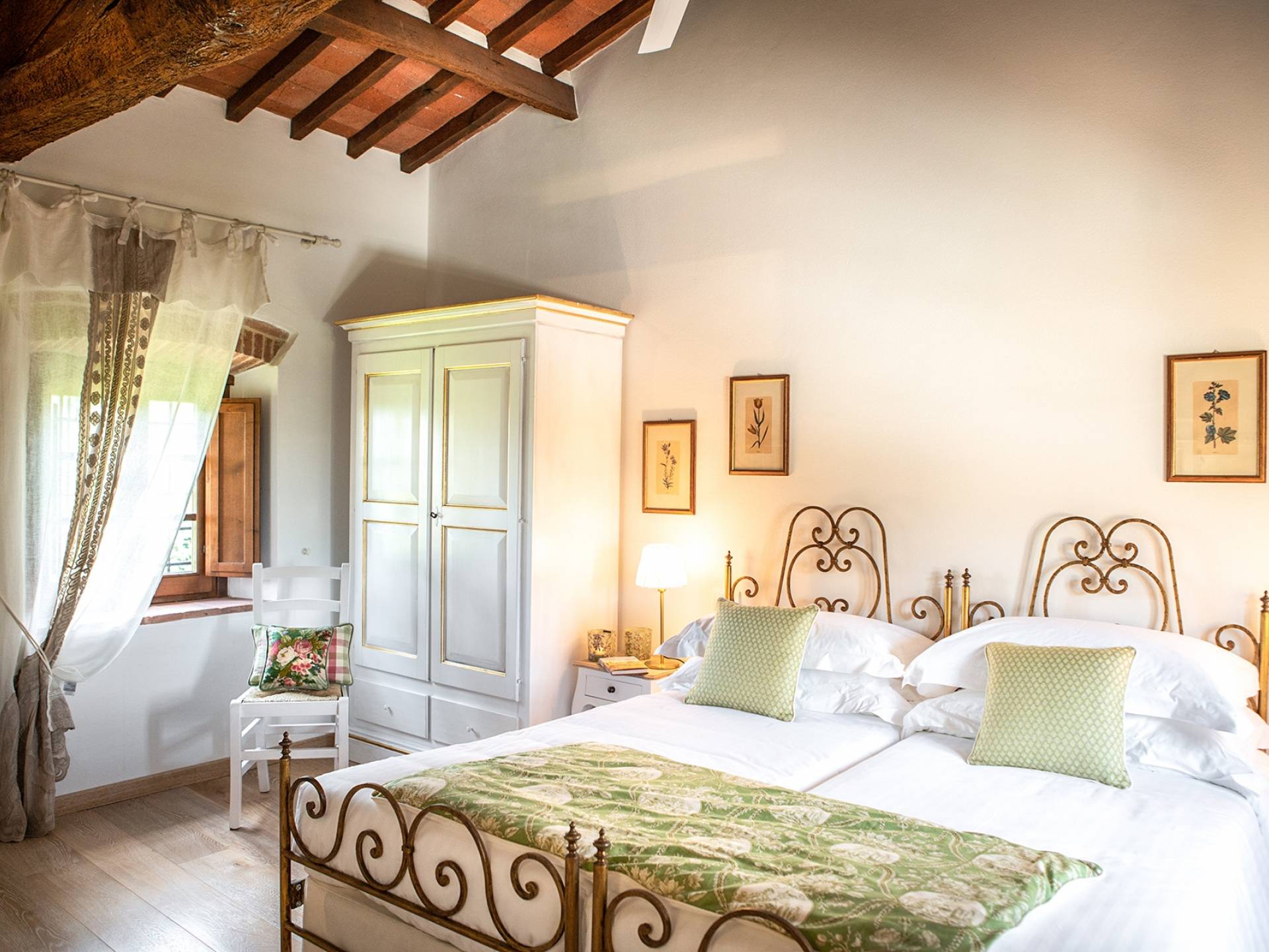The Villa features ample social spaces, all very well equipped. The beautiful wooden floors, the stunning wooden ceilings, and also the various fireplaces will give you unforgettable moments of a Tuscan dream holiday. The Villa opens onto a living space with a comfortable sofa and Tv from this living room through the internal stairs it is possible to reach the double bedrooms Viola and Margherita, both with Queen size beds and ensuite bathrooms with shower, kitchen completed equipped.