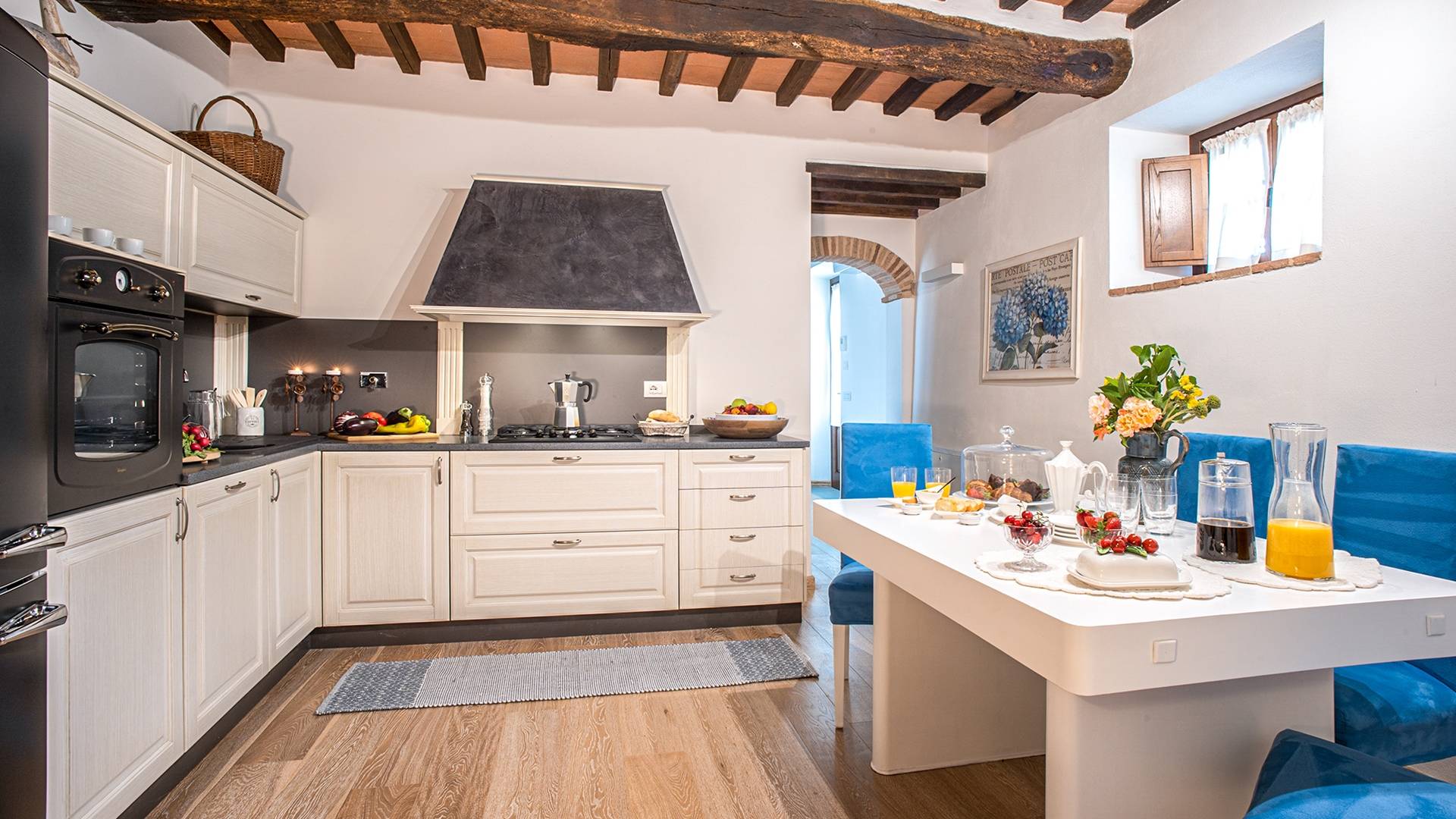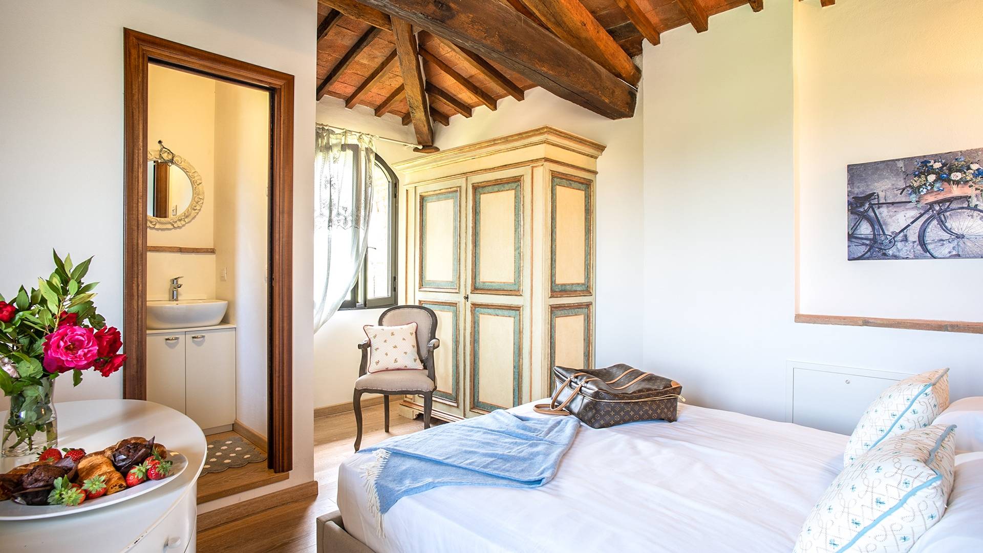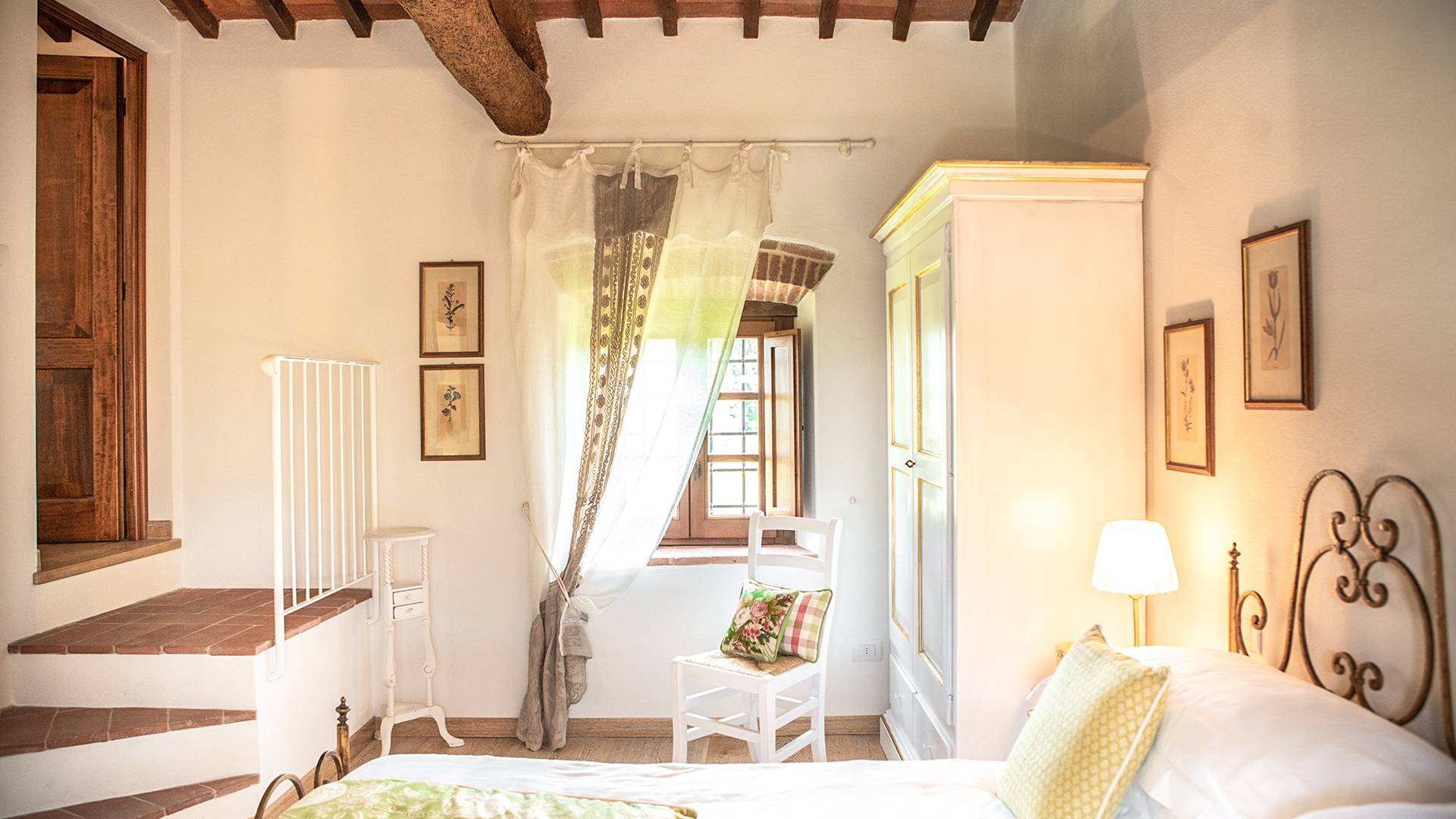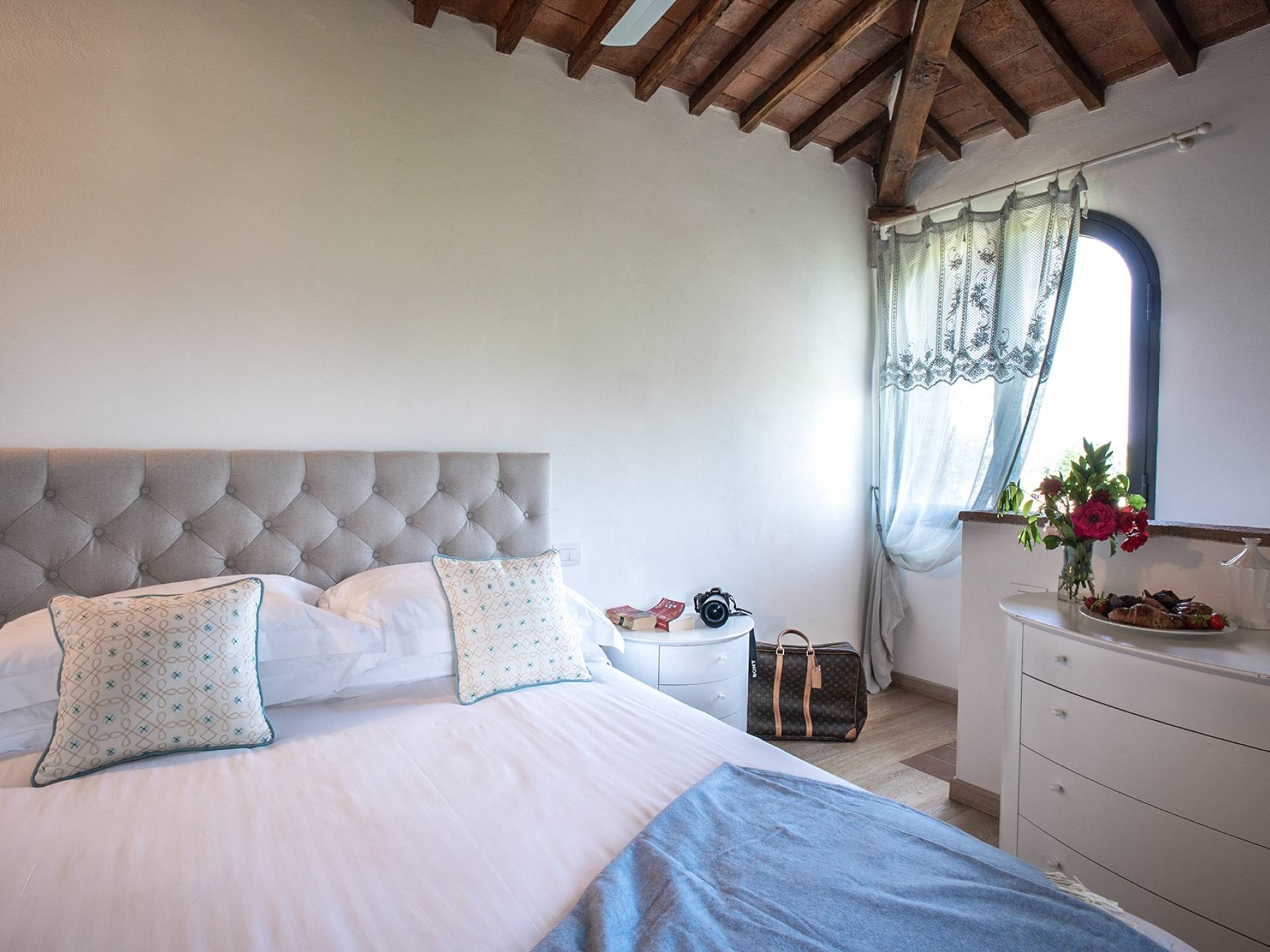 The Villa features ample social spaces, all very well equipped. The beautiful wooden floors, the stunning wooden ceilings, and also the various fireplaces will give you unforgettable moments of a Tuscan dream holiday. The Villa opens onto a living space with a comfortable sofa and Tv from this living room through the internal stairs it is possible to reach the double bedrooms Viola and Margherita, both with Queen size beds and ensuite bathrooms with shower, kitchen completed equipped.