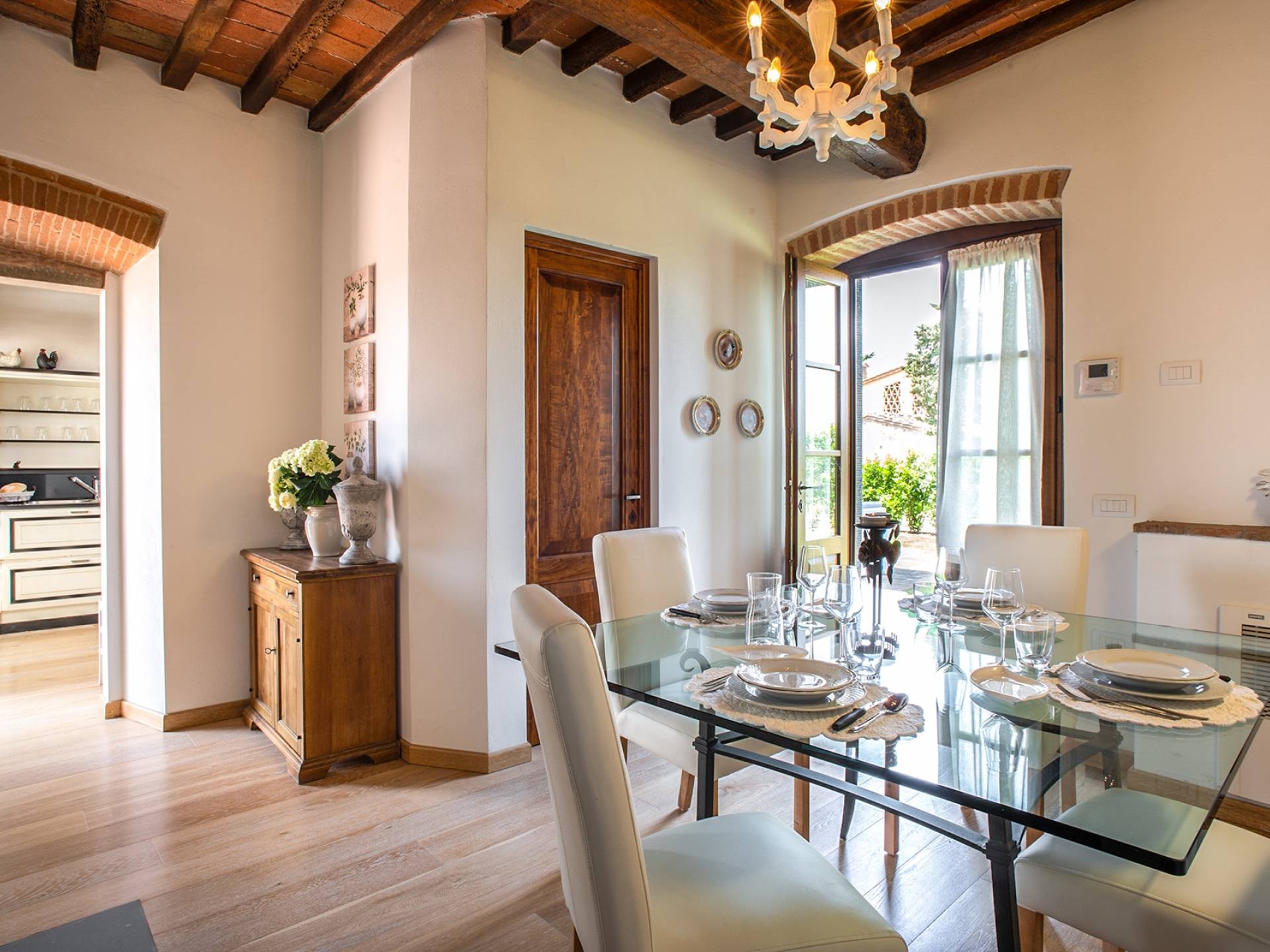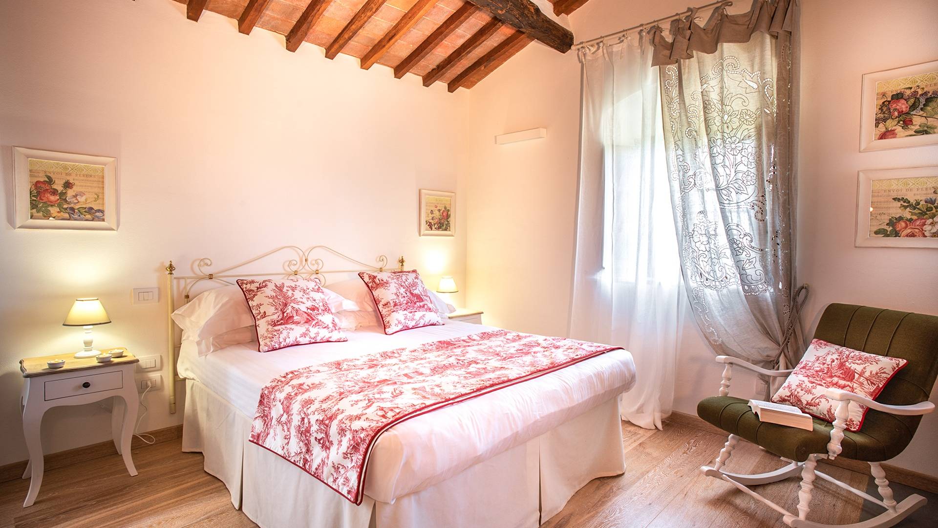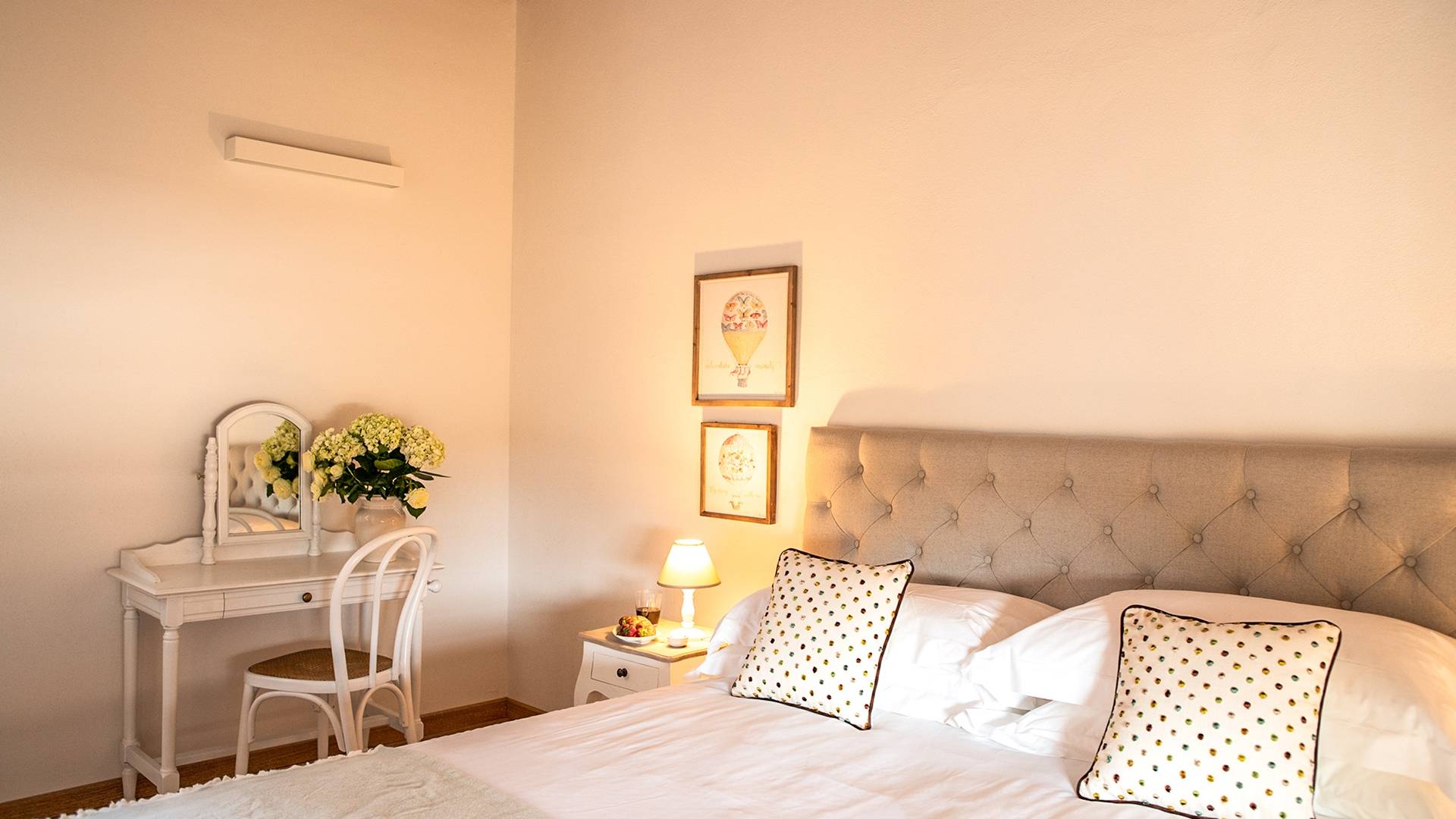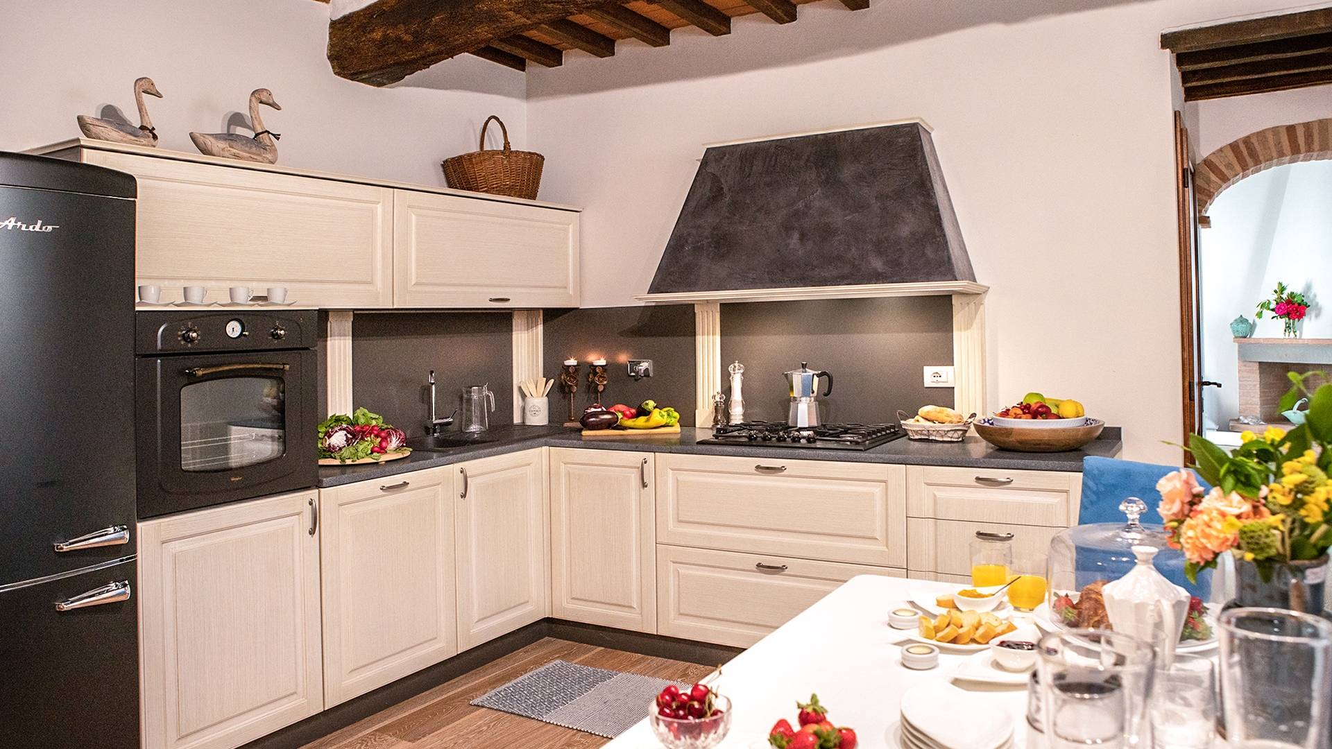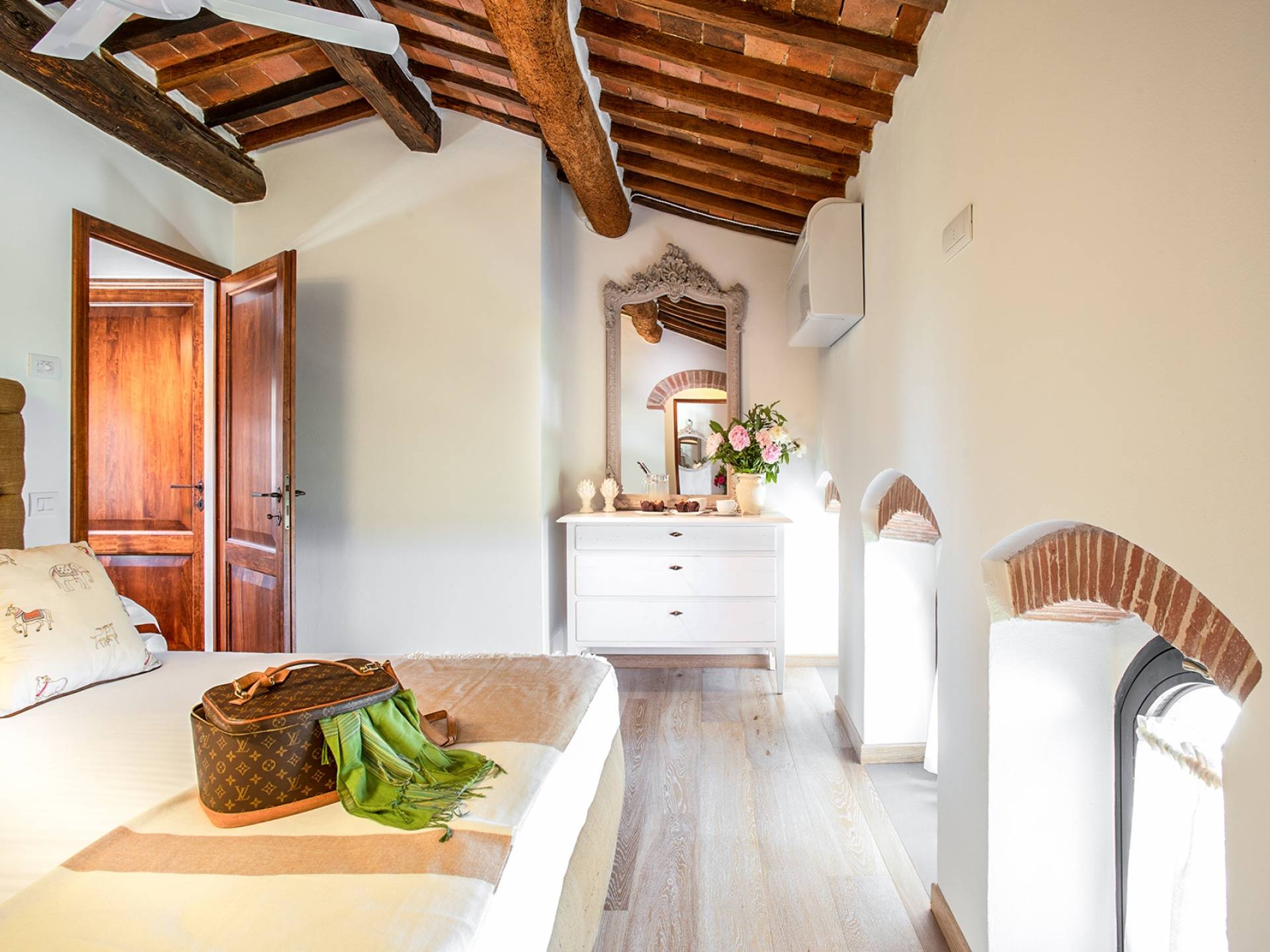 The Villa features ample social spaces, all very well equipped. The beautiful wooden floors, the stunning wooden ceilings, and also the various fireplaces will give you unforgettable moments of a Tuscan dream holiday. The Villa opens onto a living space with a comfortable sofa and Tv from this living room through the internal stairs it is possible to reach the double bedrooms Viola and Margherita, both with Queen size beds and ensuite bathrooms with shower, kitchen completed equipped.