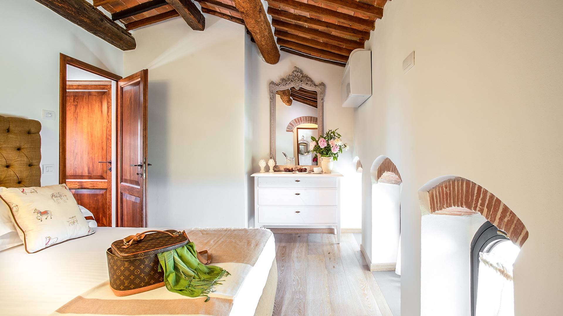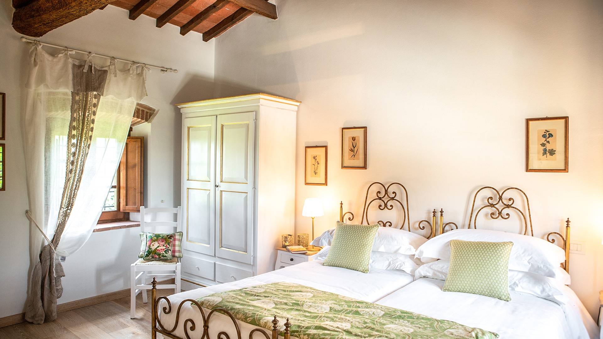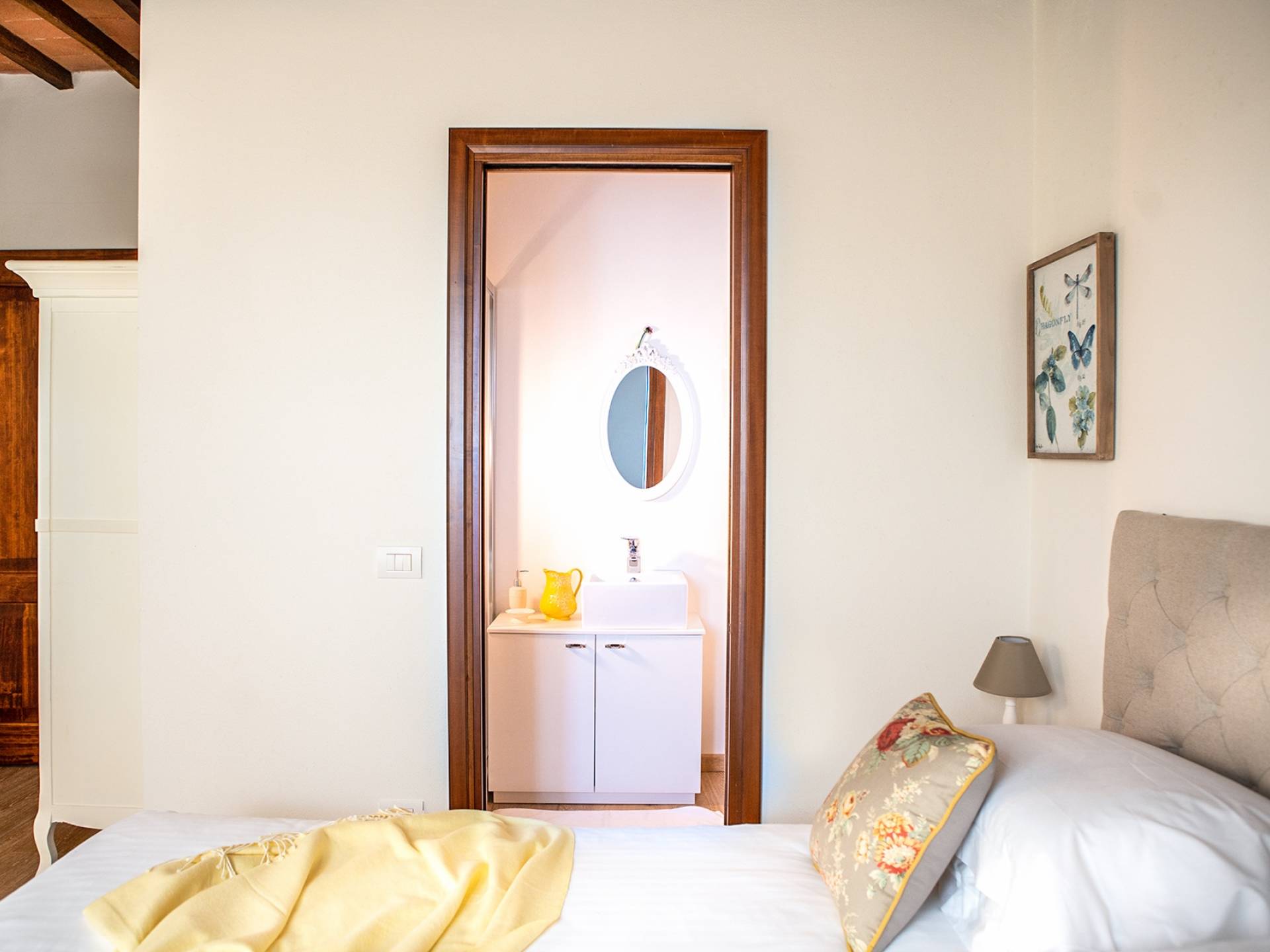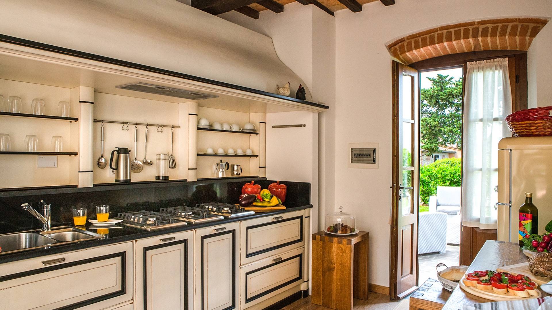 The Villa features ample social spaces, all very well equipped. The beautiful wooden floors, the stunning wooden ceilings, and also the various fireplaces will give you unforgettable moments of a Tuscan dream holiday. The Villa opens onto a living space with a comfortable sofa and Tv from this living room through the internal stairs it is possible to reach the double bedrooms Viola and Margherita, both with Queen size beds and ensuite bathrooms with shower, kitchen completed equipped.