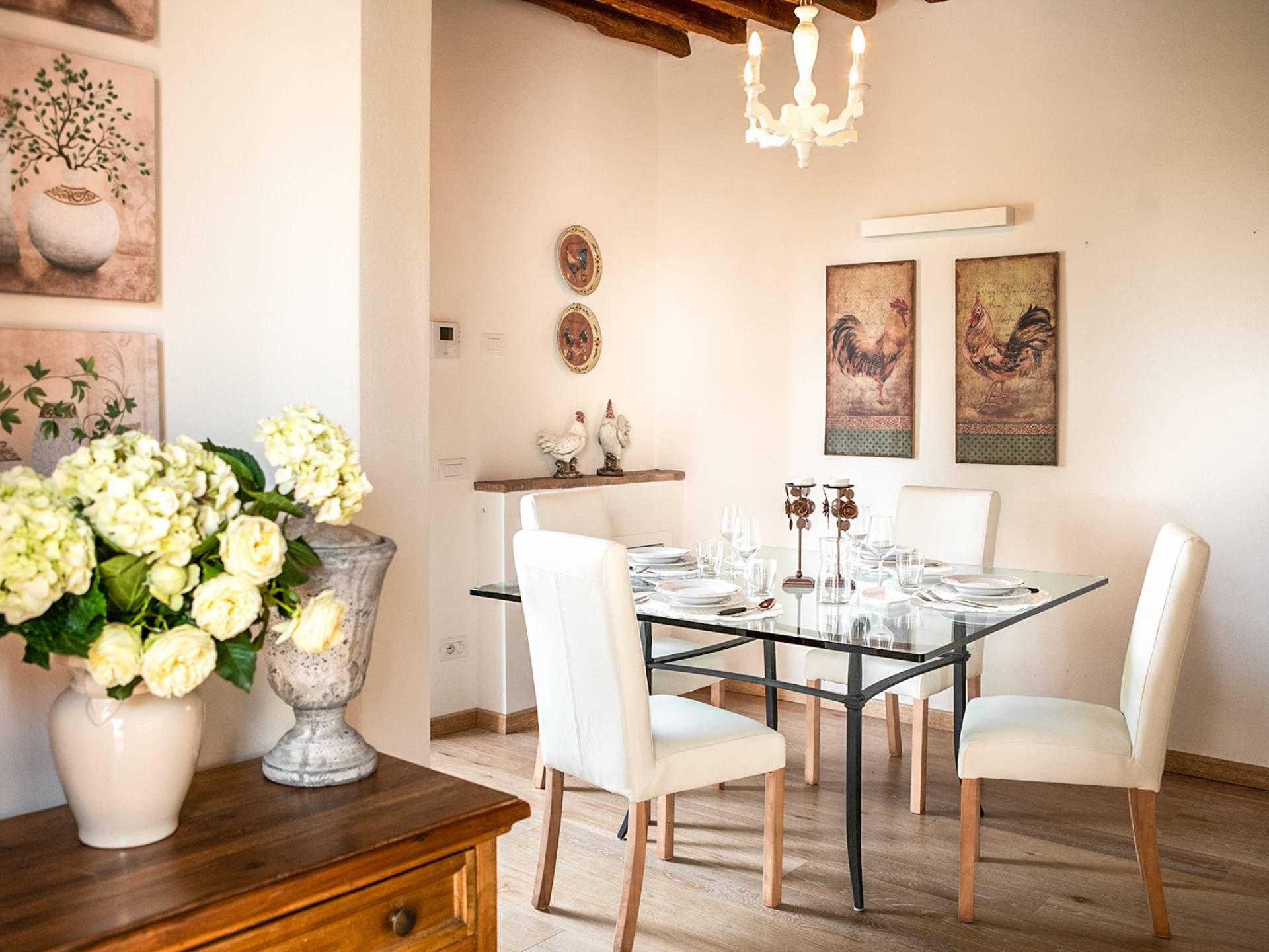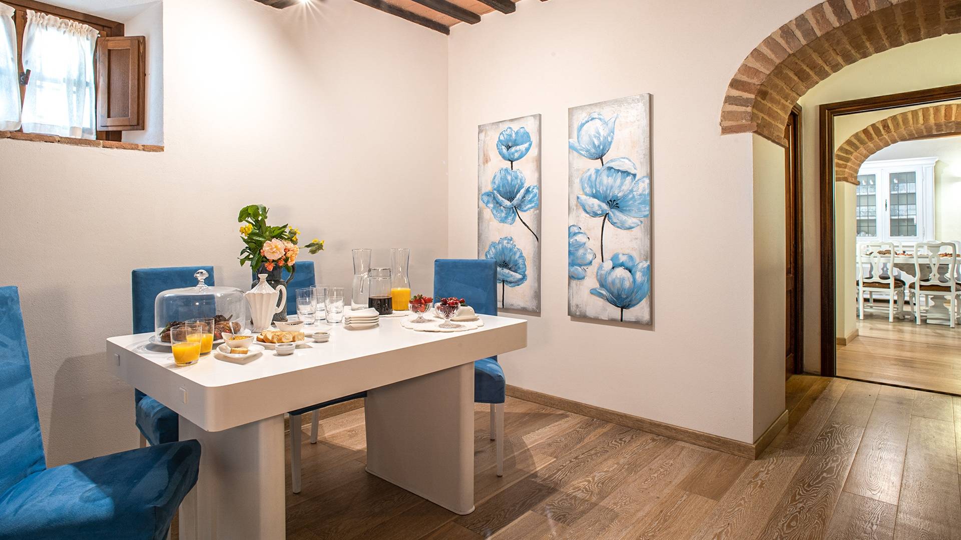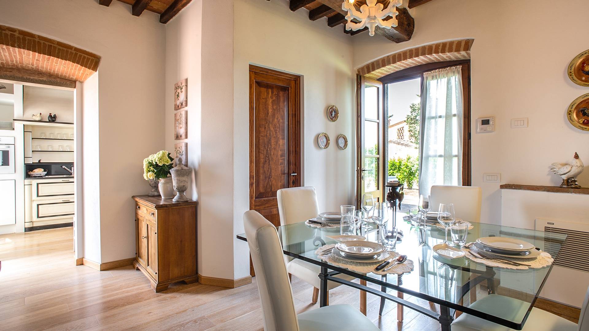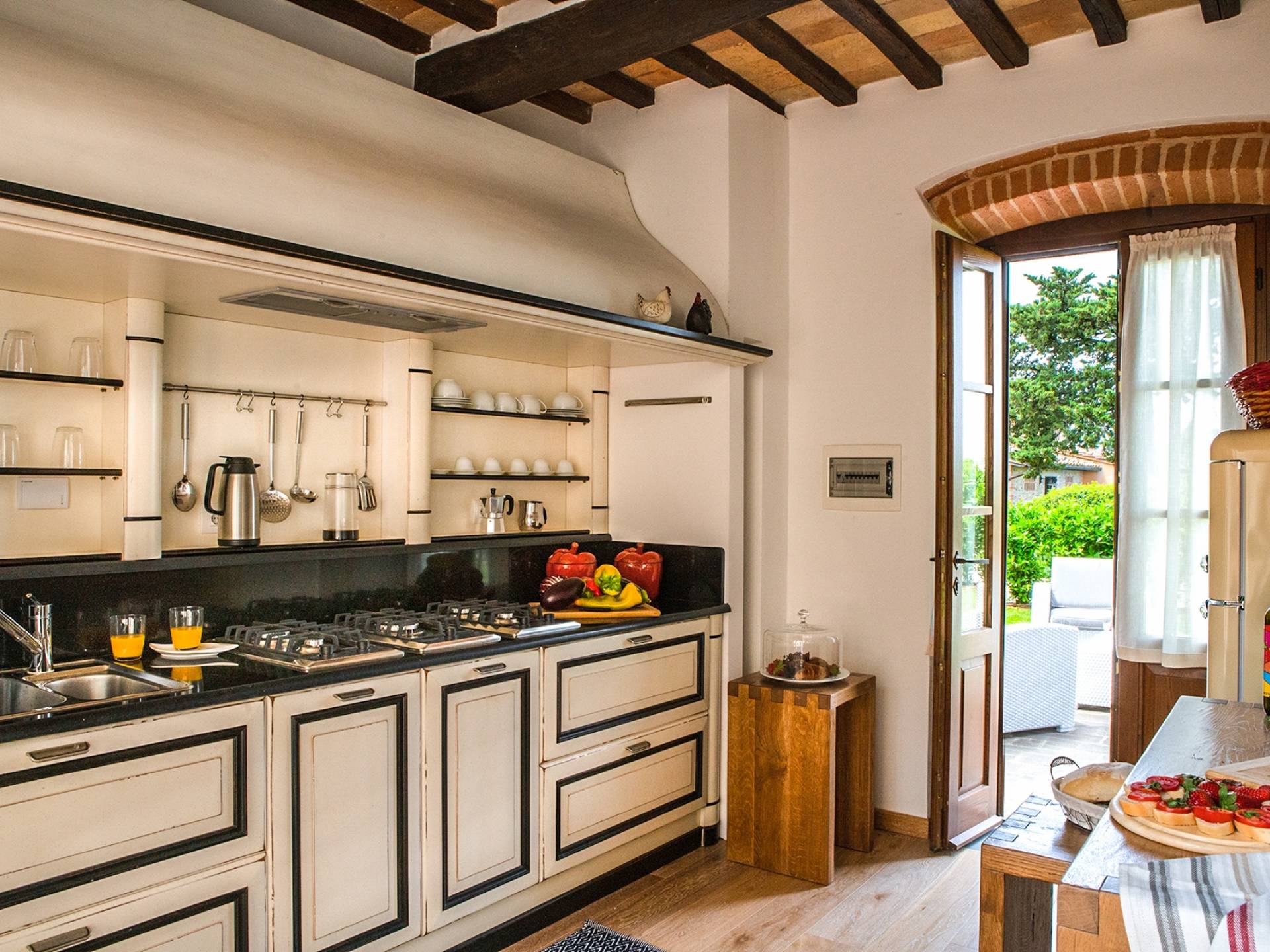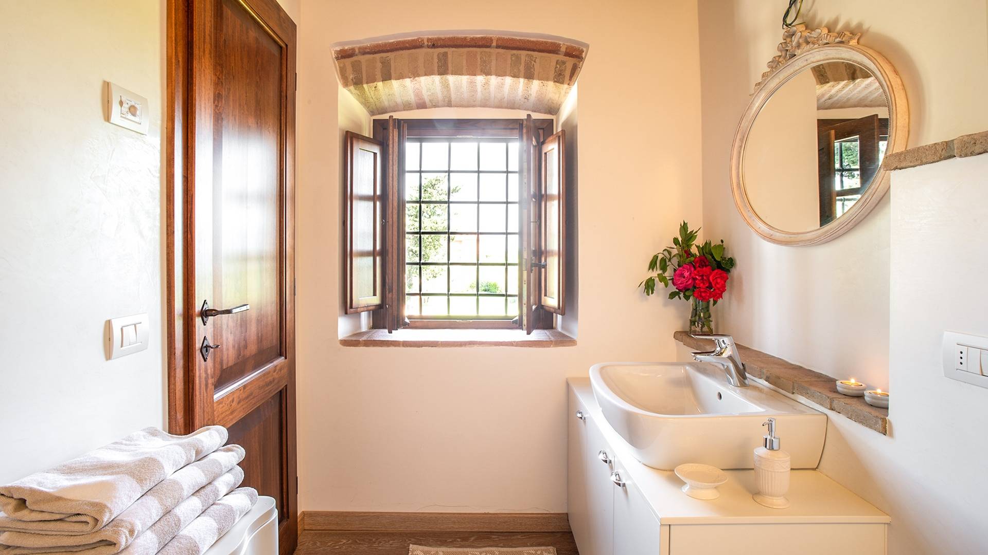 The Villa features ample social spaces, all very well equipped. The beautiful wooden floors, the stunning wooden ceilings, and also the various fireplaces will give you unforgettable moments of a Tuscan dream holiday. The Villa opens onto a living space with a comfortable sofa and Tv from this living room through the internal stairs it is possible to reach the double bedrooms Viola and Margherita, both with Queen size beds and ensuite bathrooms with shower, kitchen completed equipped.