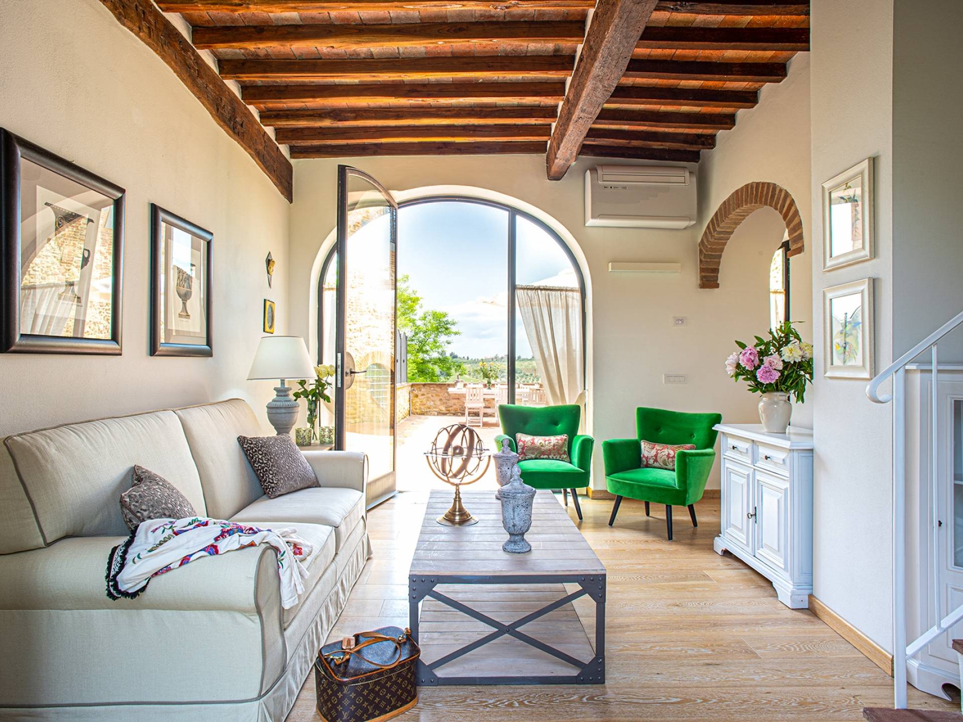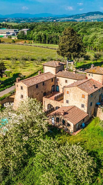 Villa Pianora is the entire right wing of an elegant three-story villa located just 35 km away from Florence. Set in the Chianti-producing area, the villa is surrounded by grapevines and olive trees and it has a guest’s disposal 6 double bedrooms all with ensuite bathrooms with showers. Villa Pianora is an ancient semi-attached Villa recently restored and equipped with any comfort you may need.
