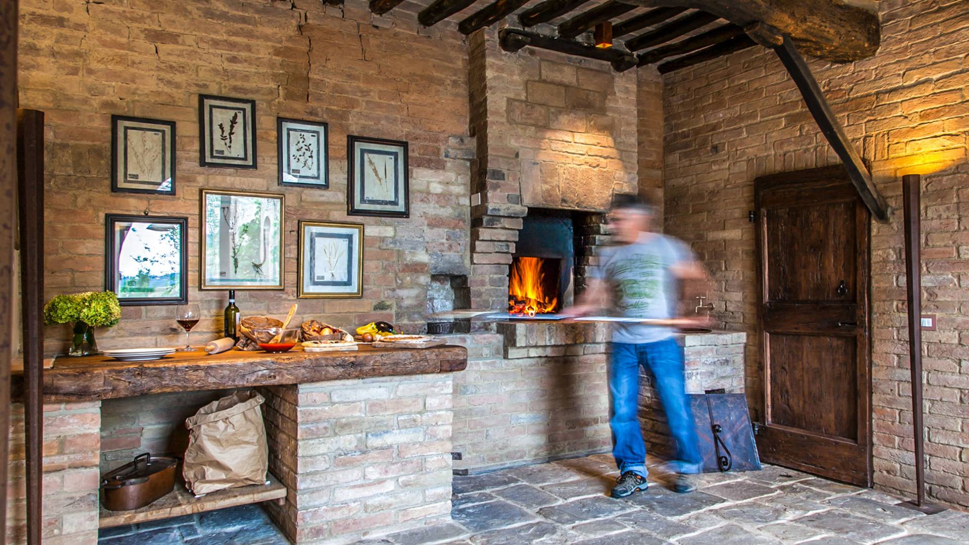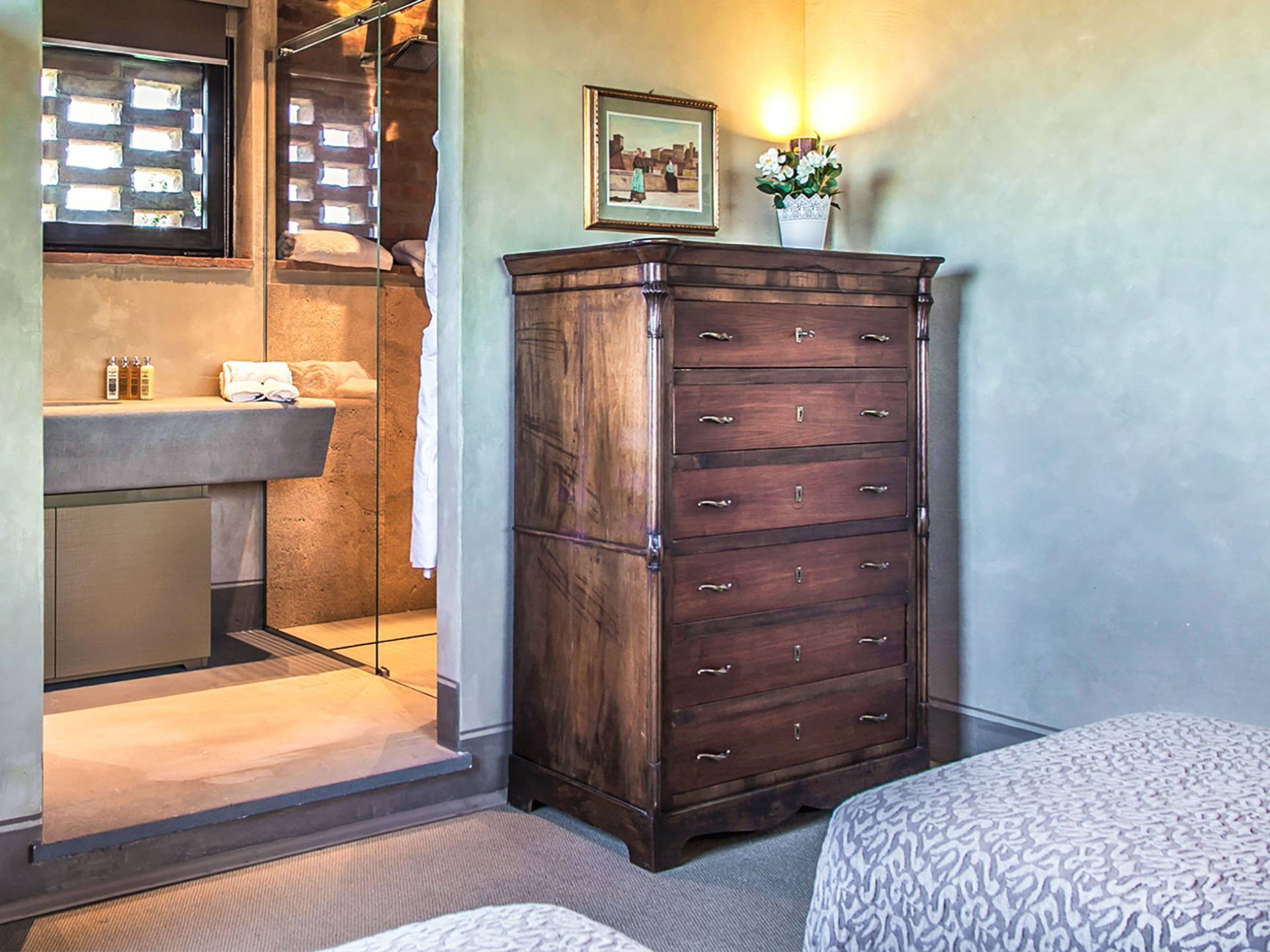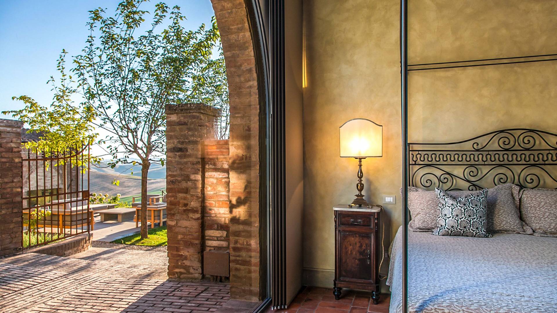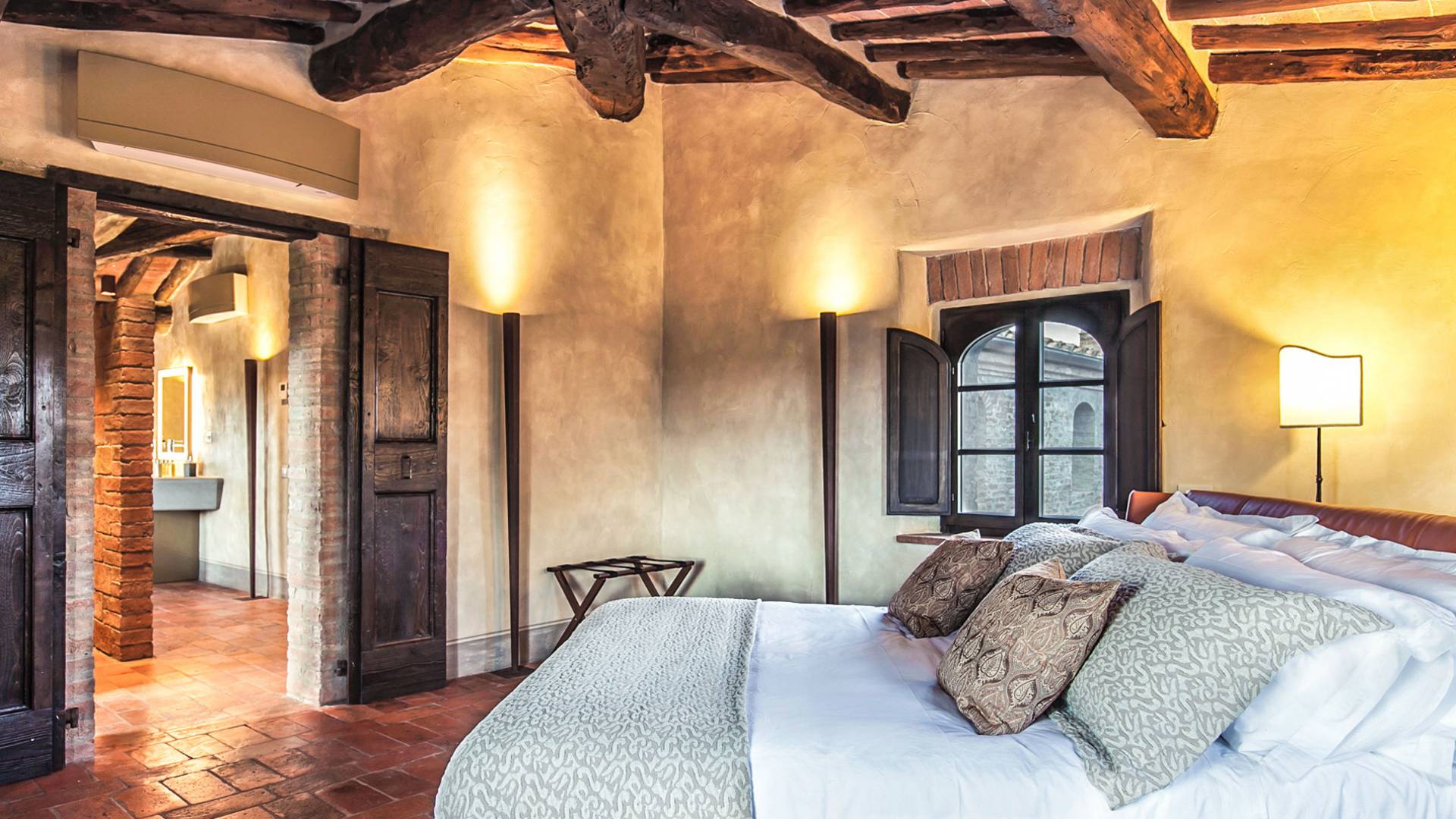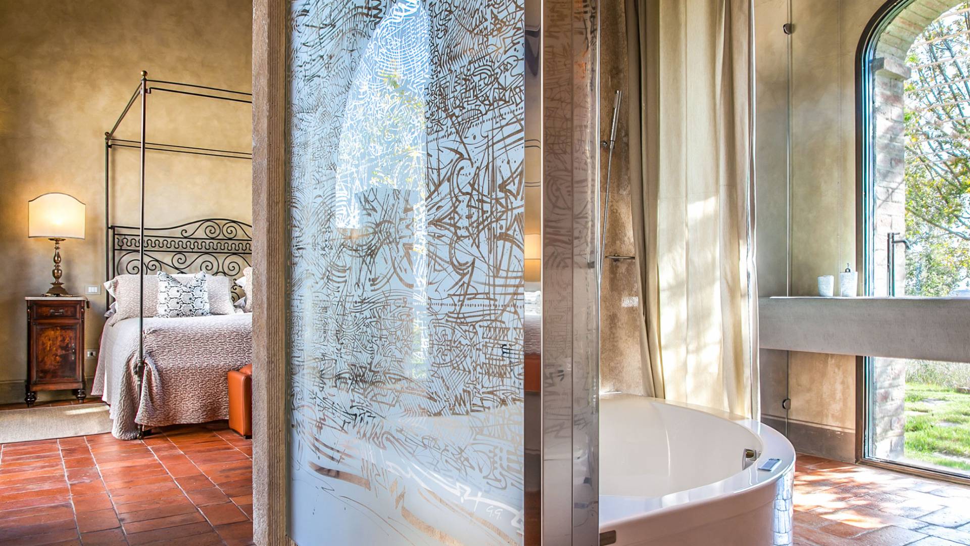 Villa Prode Tuscany open floor plan seamlessly blends contemporary standards, including modern plumbing and state-of-the-art appliances, with authentic Tuscan living. Each of the three master bedrooms and three king bed guest suites include modern en-suites, which allows this property to comfortably accommodate large family or group retreats. The generous kitchen, original forno oven, and traditional Tuscan fireplace make this farmhouse ideal for culinary adventures, while the outdoor swimming pool is the perfect location to relax and soak up the stunning landscapes. As guests gaze out the expansive windows across the horizon, drawn in by the changing seasonal colours of the crops and the details under the big skies – scattered olive groves, the lunar landscape, golden ochre, and the towers of Siena.