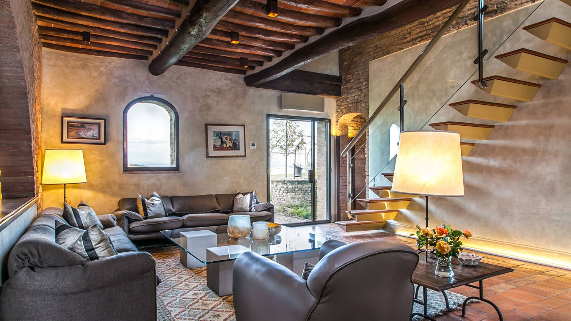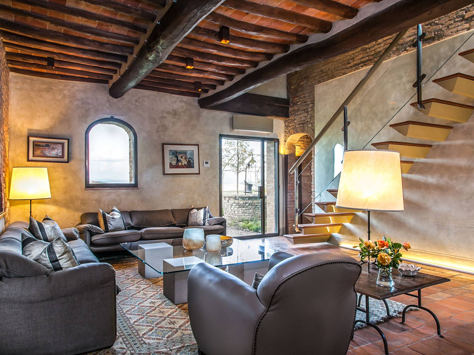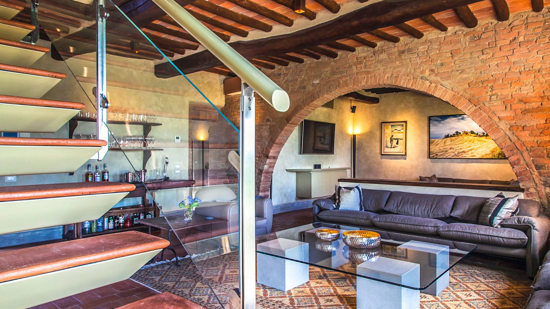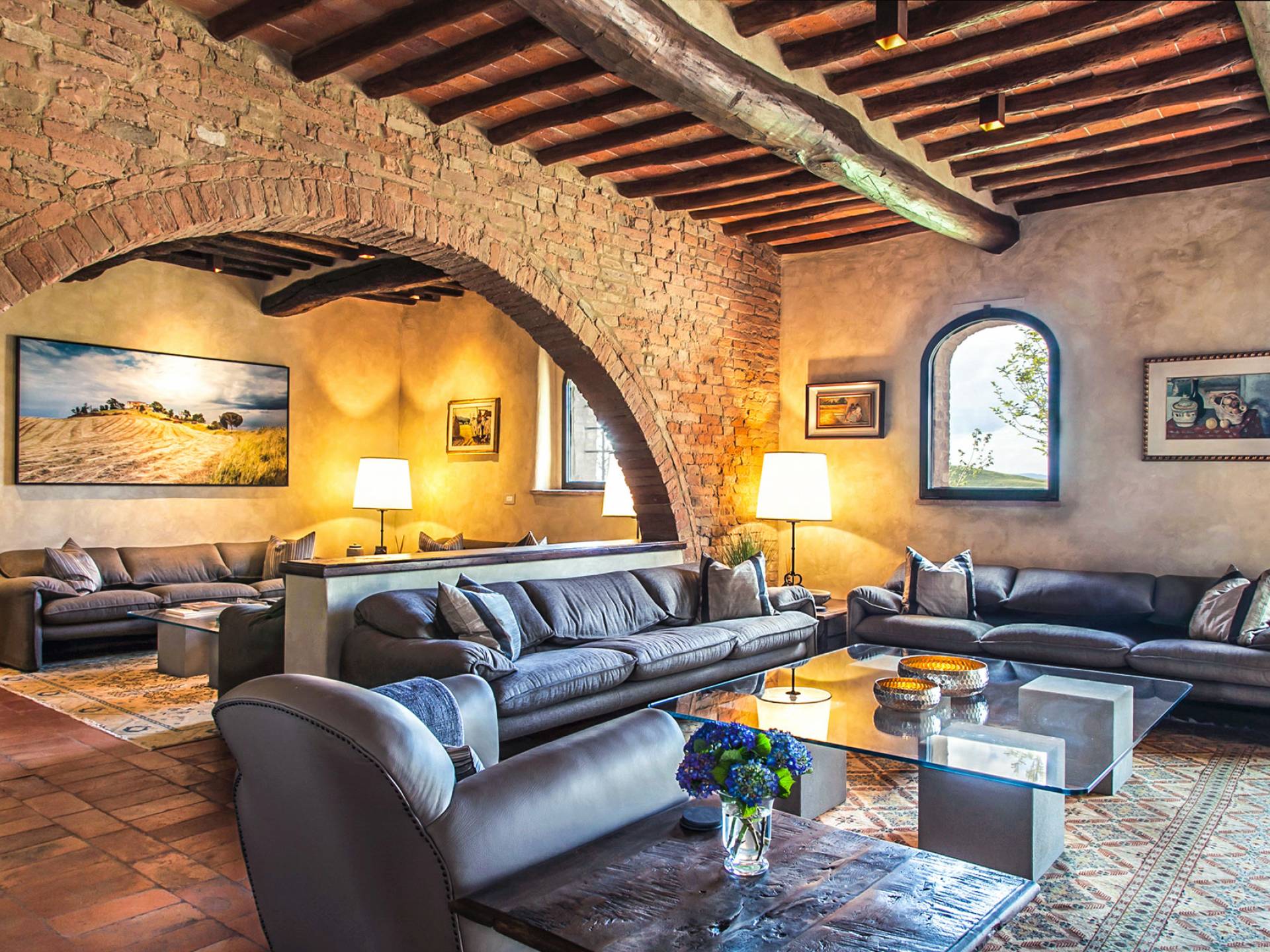 Villa Prode Tuscany blends luxurious comforts with the warmth of rustic Italian life. With over 7,000 ft2 (700 m2) of living space, this property has been designed with flexibility in mind. It can comfortably accommodate multiple families, corporate retreats, weddings, and any other large party desiring to live a fantastic experience. The villa provides both private and shared living spaces allowing guests opportunities to come together and share or retreat and relax. It features three distinct living areas, one on the main level, one on the upper level and one in the barn and together these comprise six bedrooms. Each area also includes individual living rooms to unwind in.