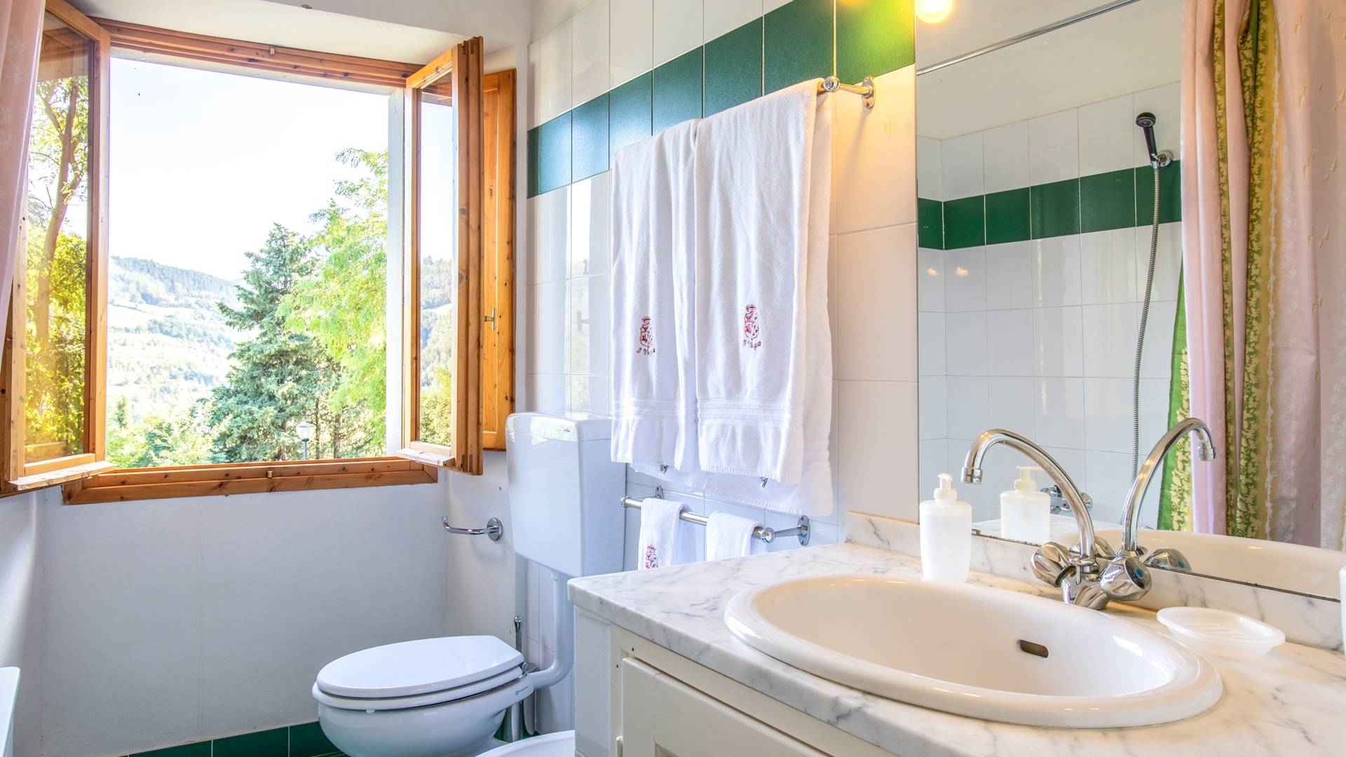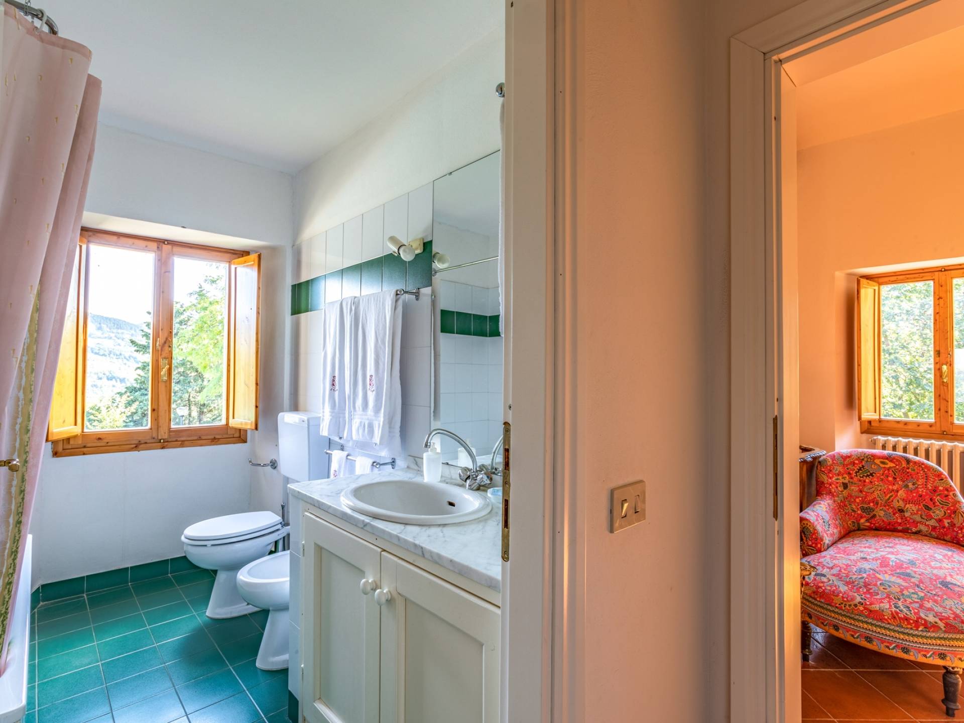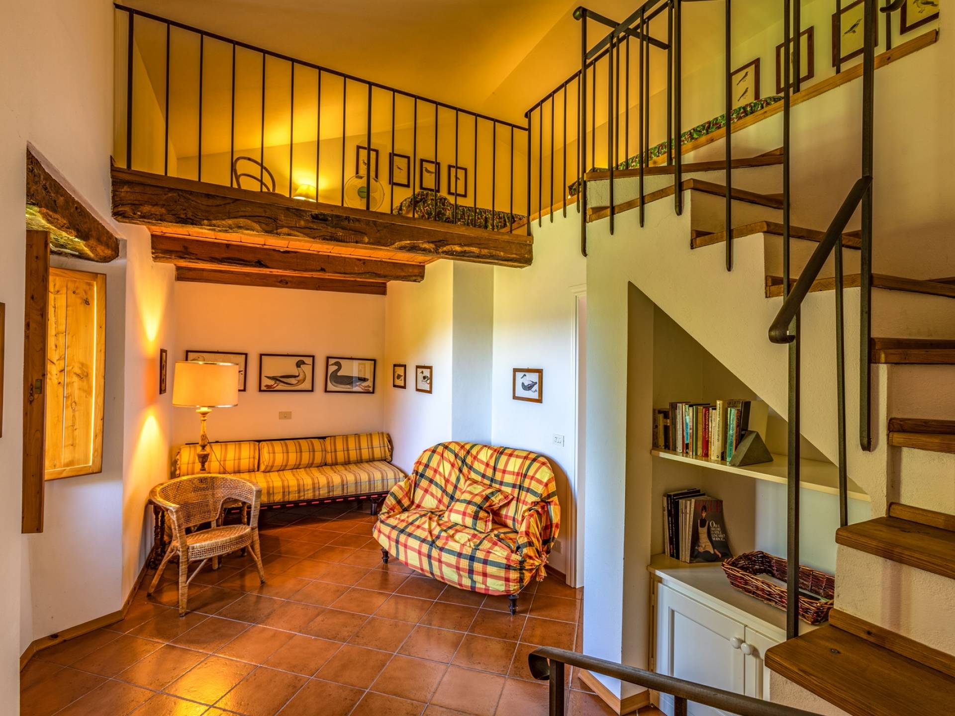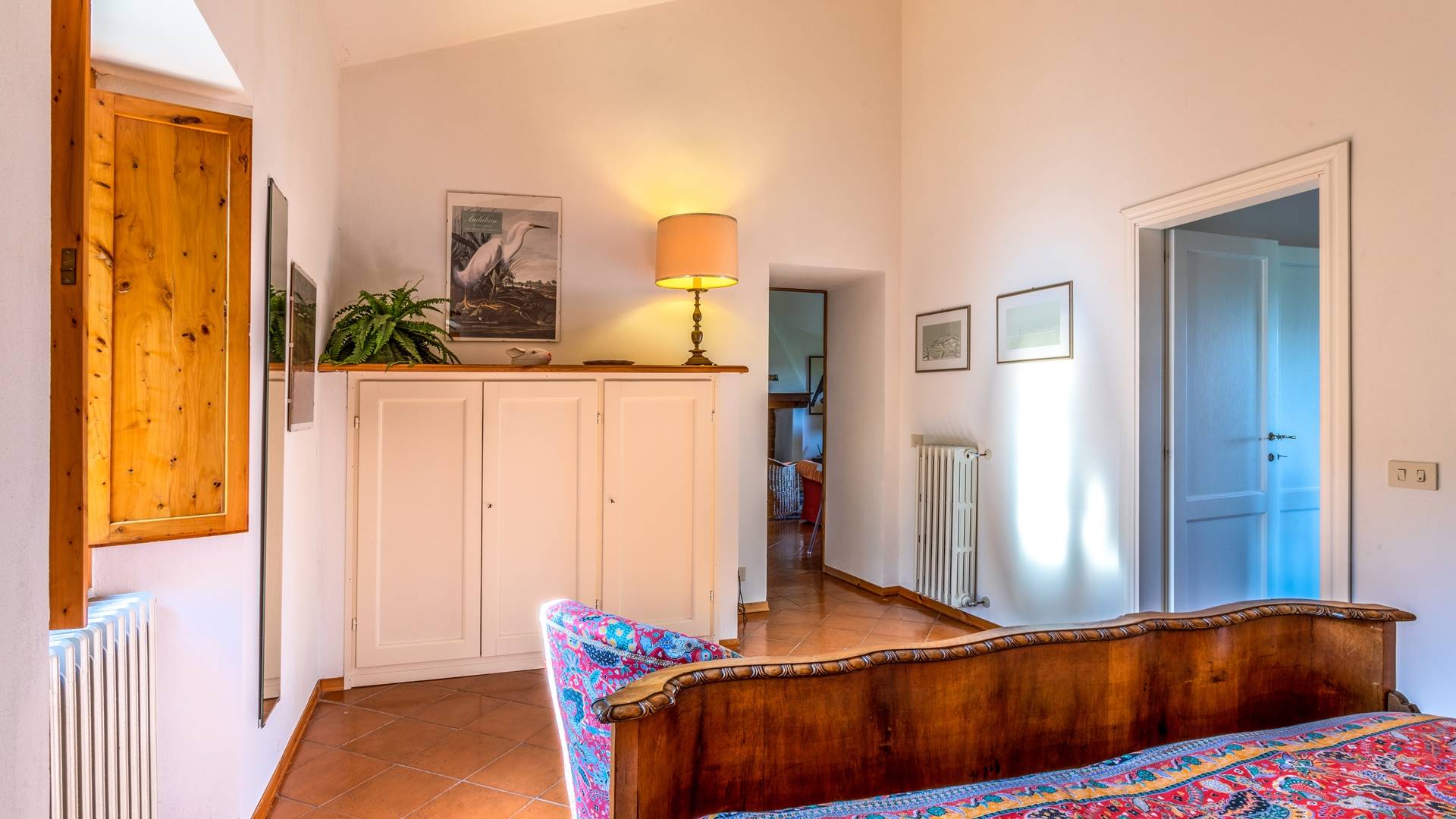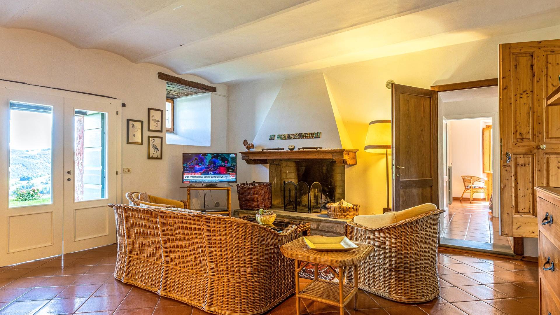 The living room on the first floor is particularly large and bright. The large space is directly connected to the dining room which, in turn, has access to the kitchen. The openings to the outside give all the rooms lots of light but also unique views. The mezzanine and first floor rooms are also spacious and comfortable, wherefrom the windows you can admire the hills with evergreen trees and the village of Tredozio in the valley below.