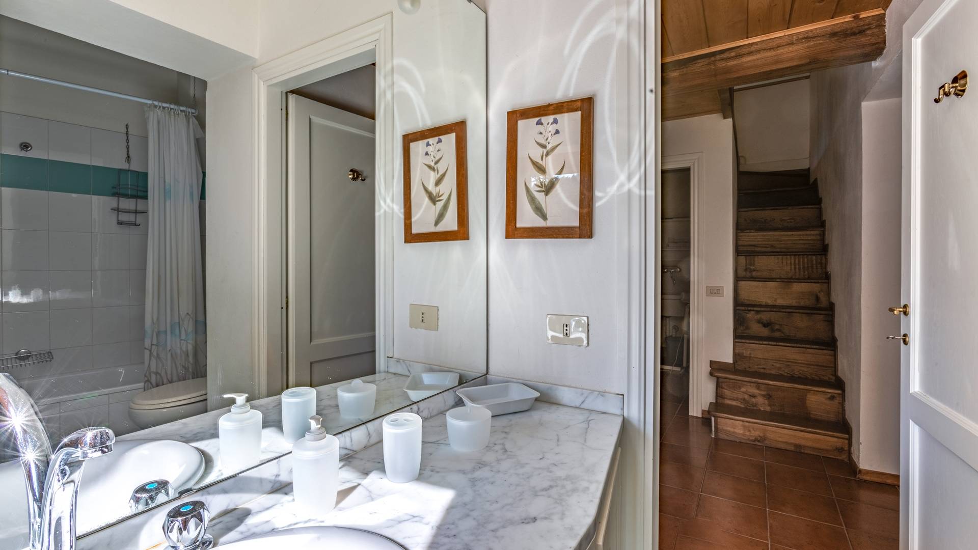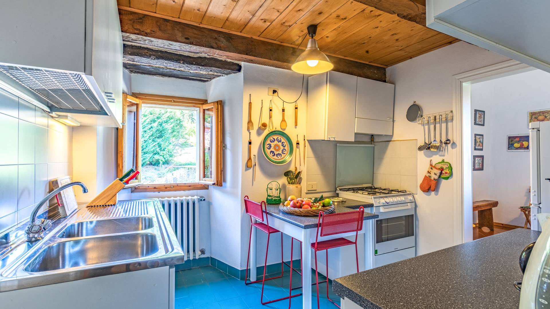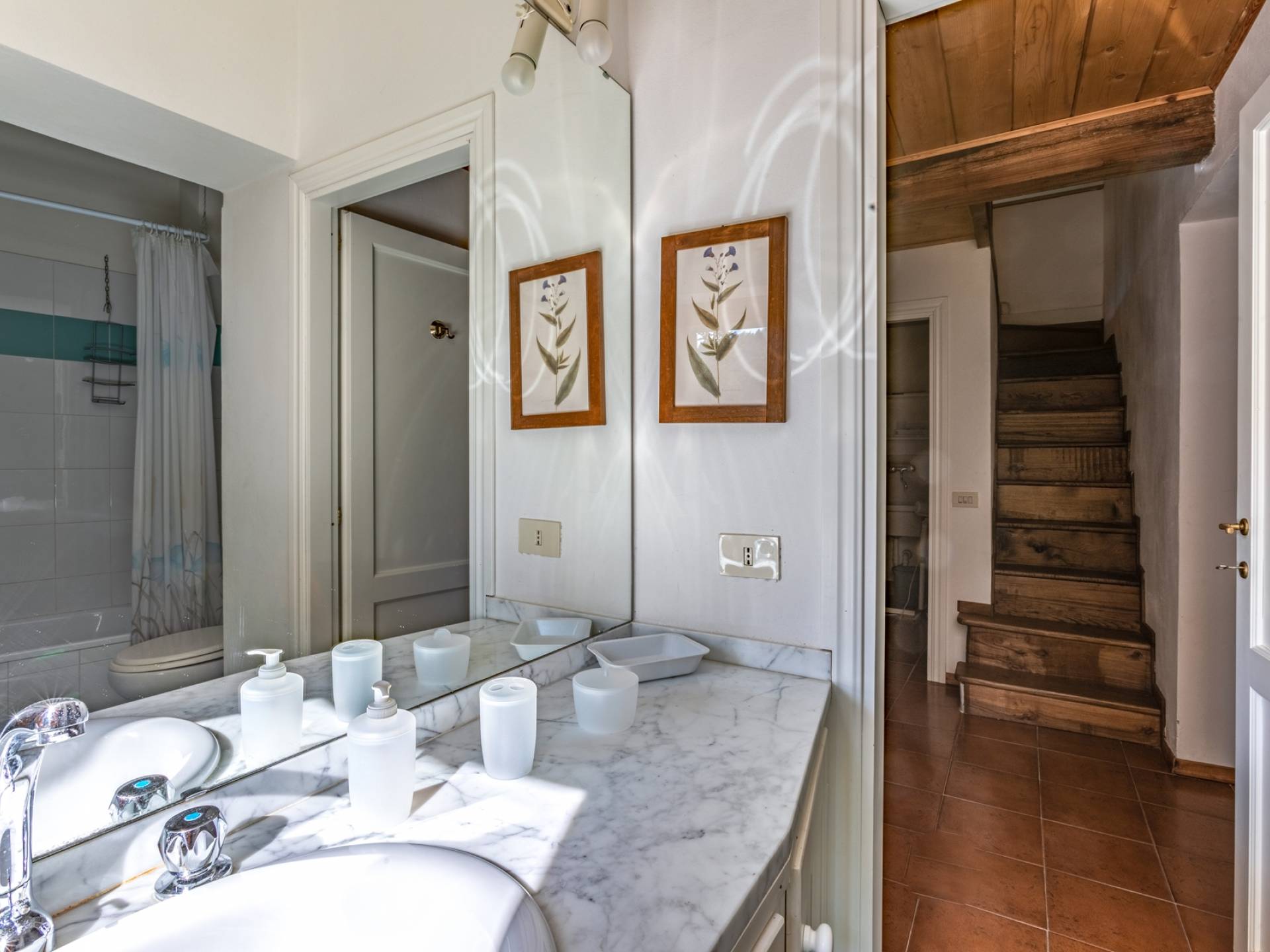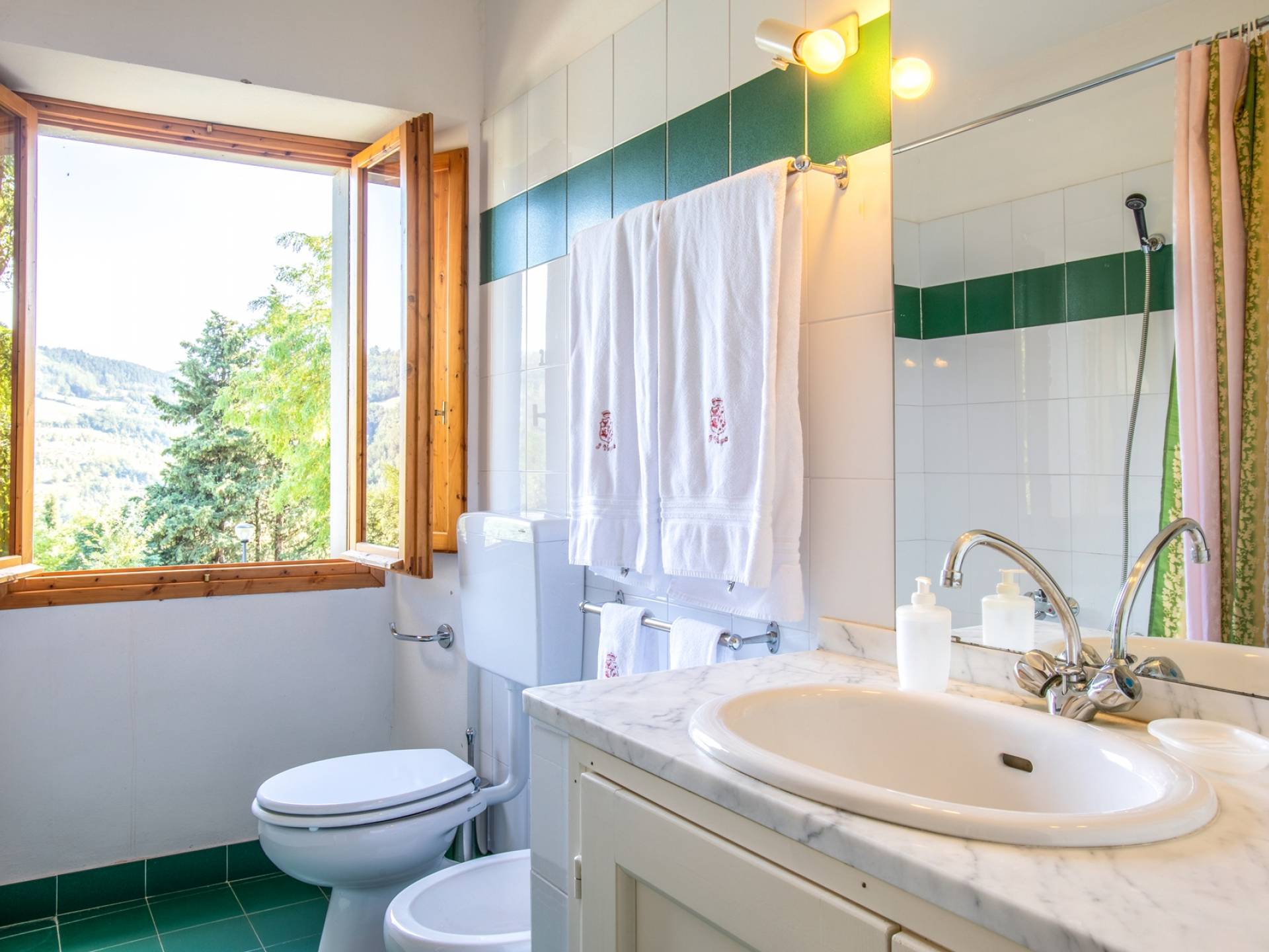 The living room on the first floor is particularly large and bright. The large space is directly connected to the dining room which, in turn, has access to the kitchen. The openings to the outside give all the rooms lots of light but also unique views. The mezzanine and first floor rooms are also spacious and comfortable, wherefrom the windows you can admire the hills with evergreen trees and the village of Tredozio in the valley below.