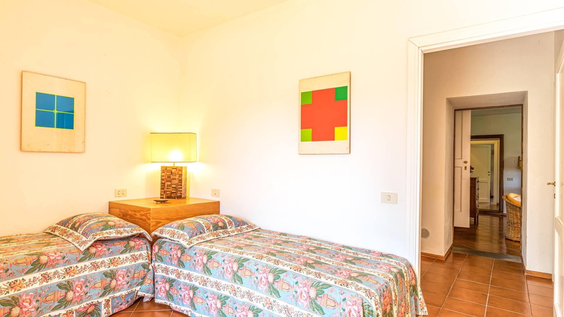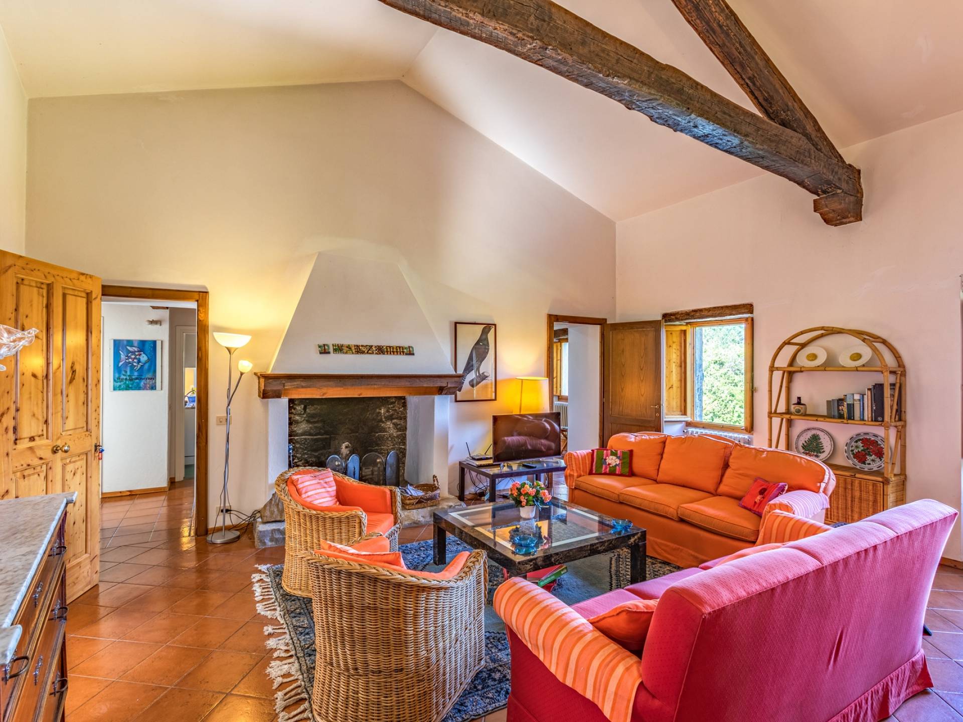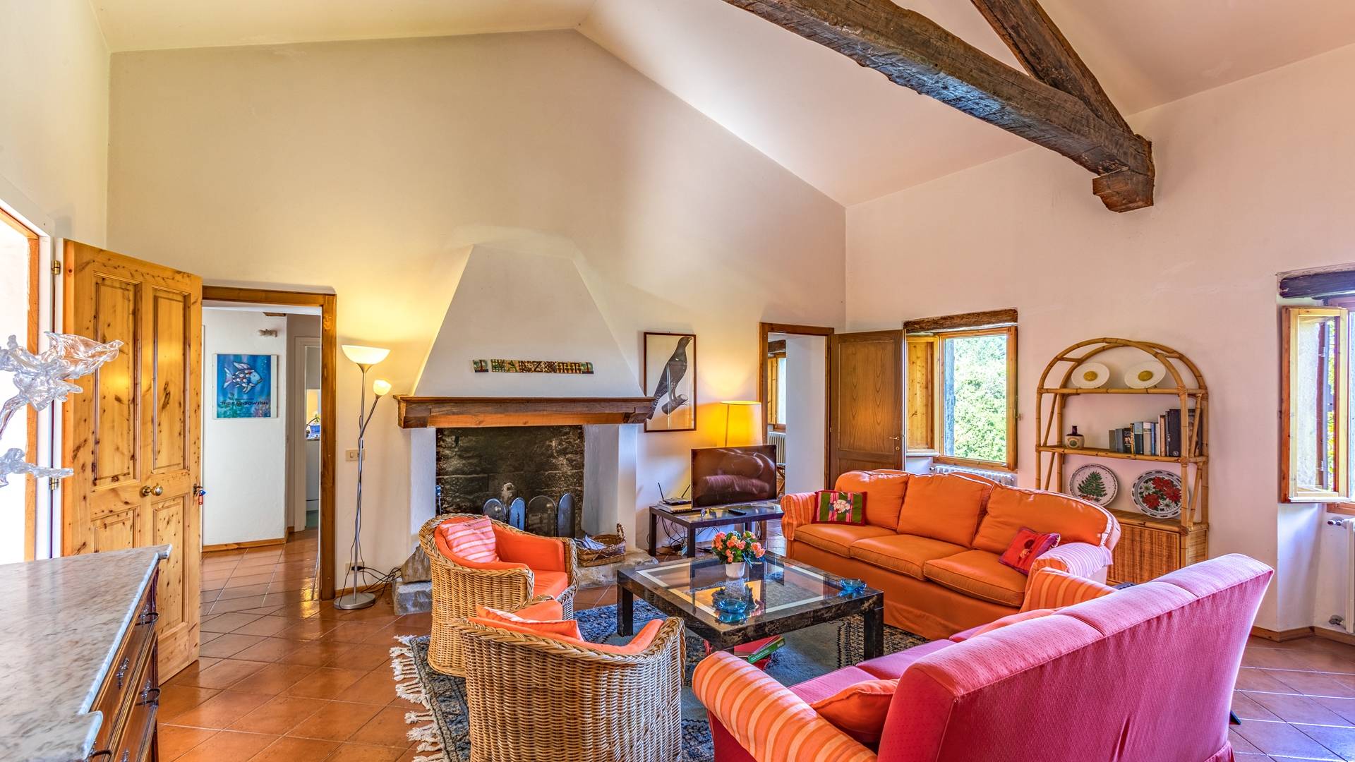 The smallest, located on the ground floor of the house, consists of a large living room with a fireplace, kitchen and dining area, three bedrooms, and two bathrooms. The second, on the first floor, has a large living room with fireplace, a large dining room, a kitchen, a wardrobe with washing machine, a small study and four double bedrooms. Two bathrooms with tub and shower complete the whole.