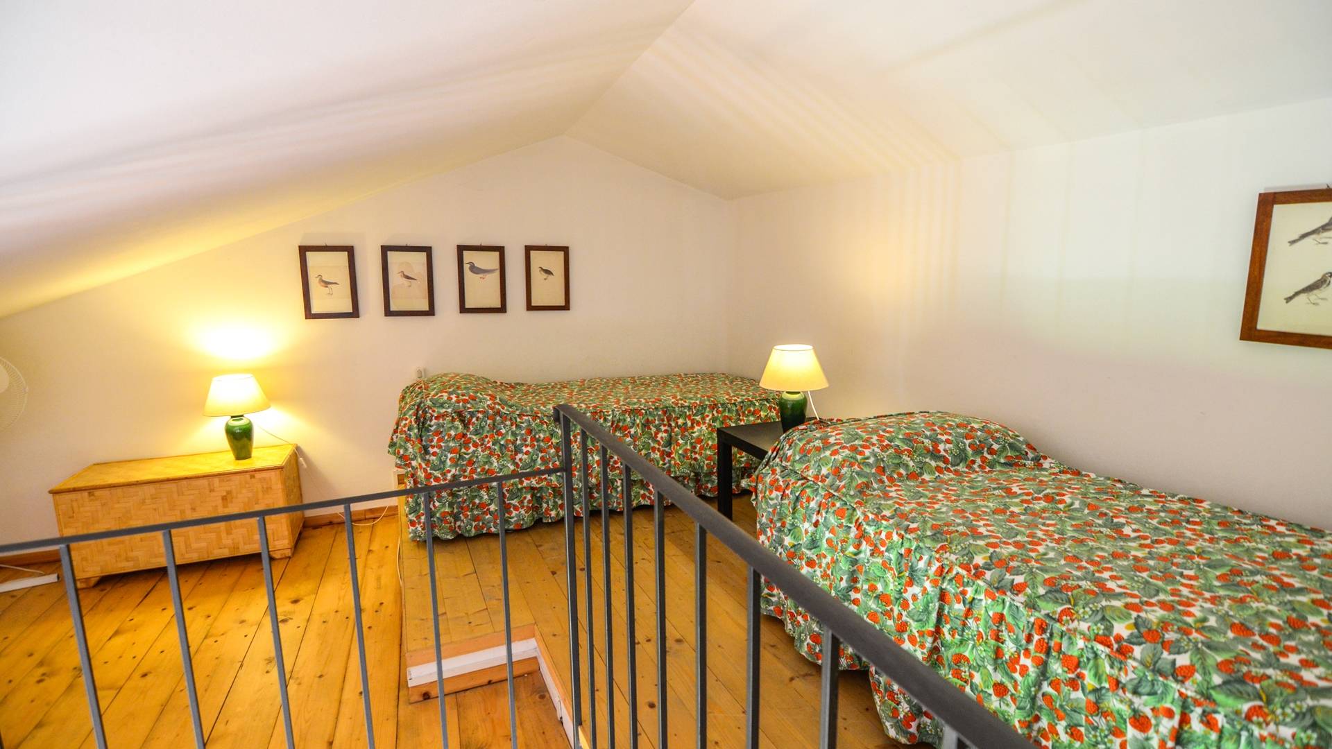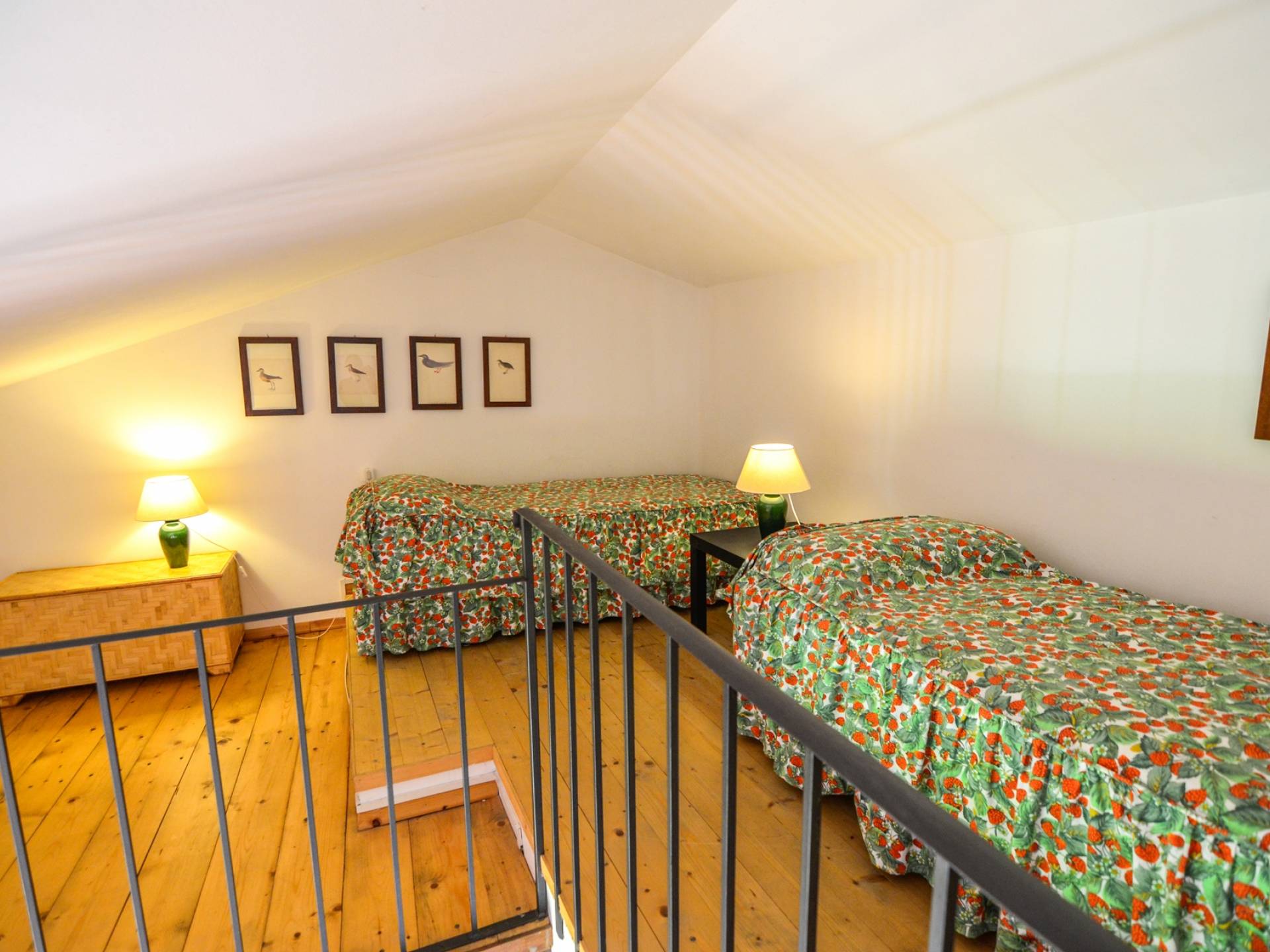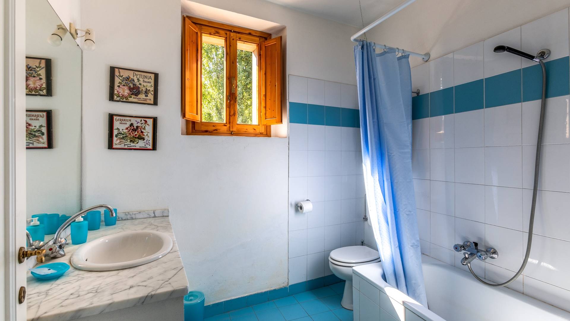 The smallest, located on the ground floor of the house, consists of a large living room with a fireplace, kitchen and dining area, three bedrooms, and two bathrooms. The second, on the first floor, has a large living room with fireplace, a large dining room, a kitchen, a wardrobe with washing machine, a small study and four double bedrooms. Two bathrooms with tub and shower complete the whole.