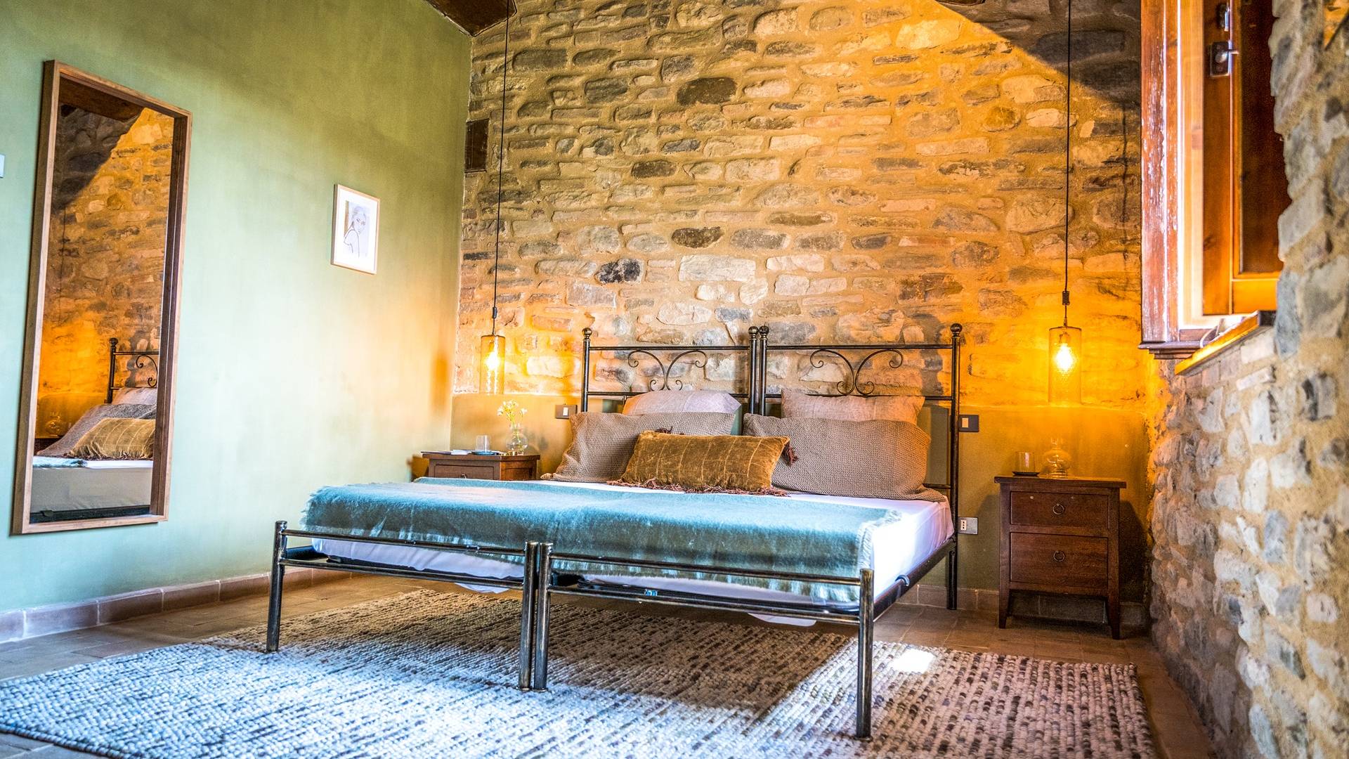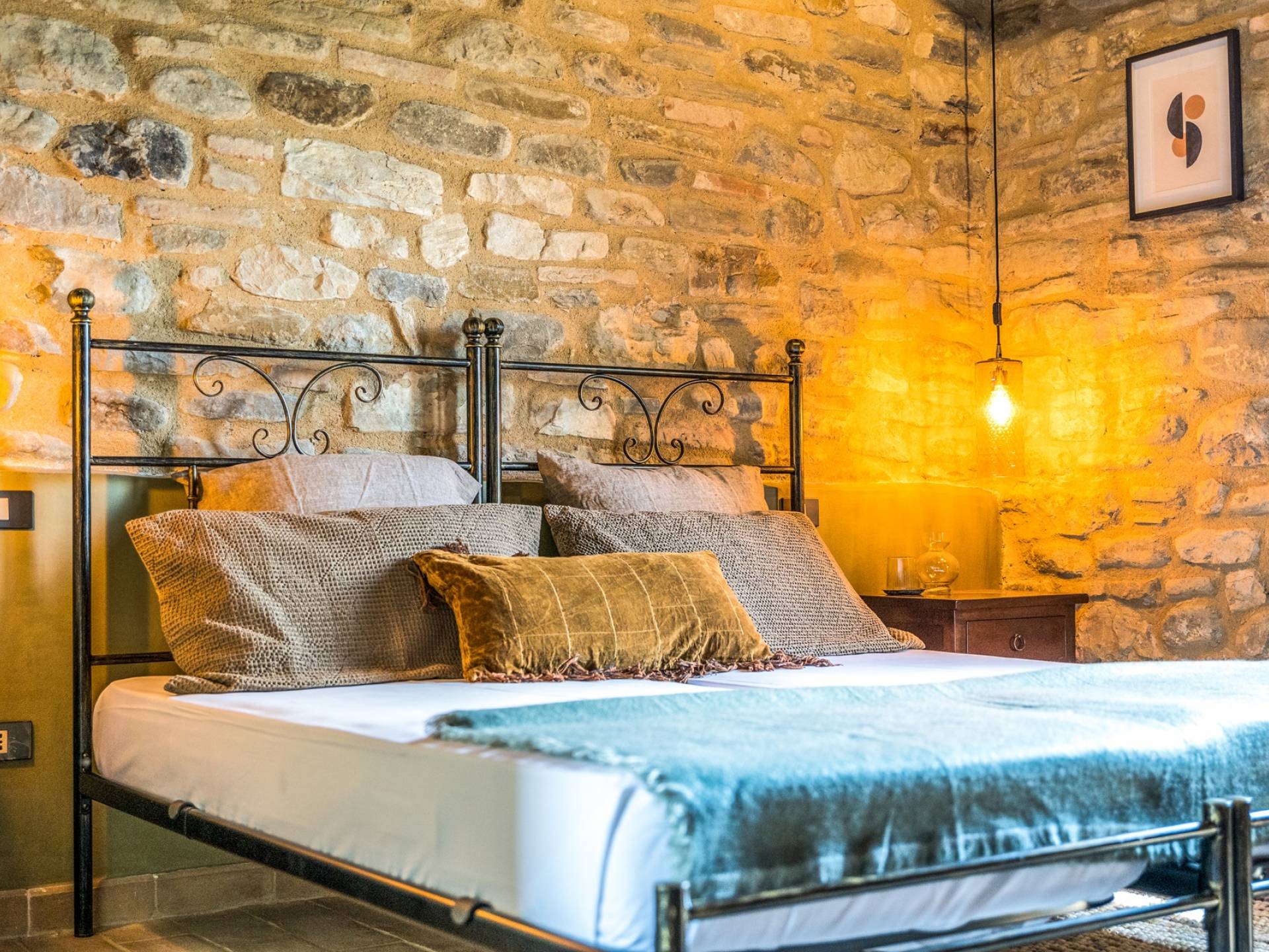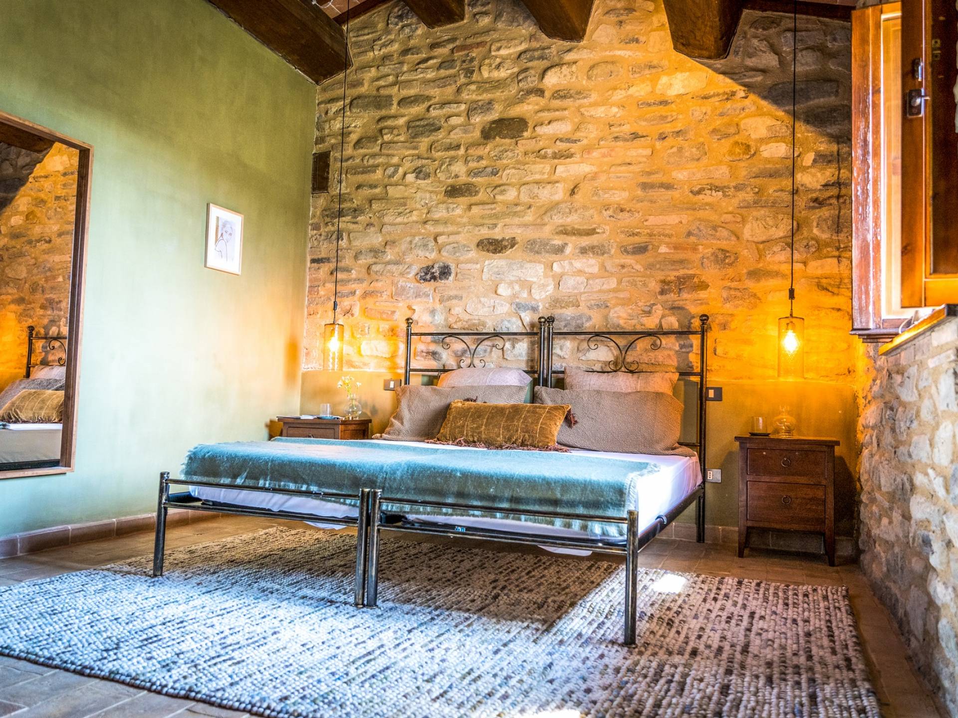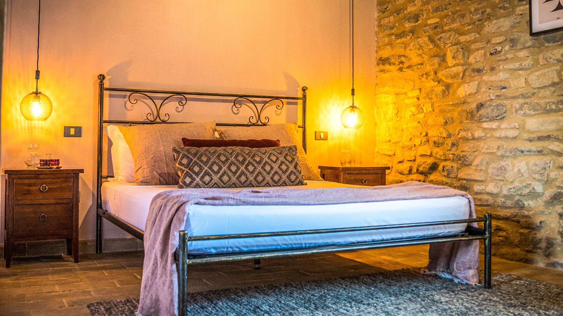 The Medieval village Panicaglia houses a unique castle from 1266. This wonderful spot, located at a height of 800 meters offers an amazing view of the Umbrian mountains and has everything you need for a lovely stay. It’s a place that breathes ambiance, where you can relax and enjoy yourselves, but also have the opportunity to really experience Italian family life. Have a look in the kitchen or help out in the vegetable garden if you feel like it or simply relax in one of our many lounge spots.