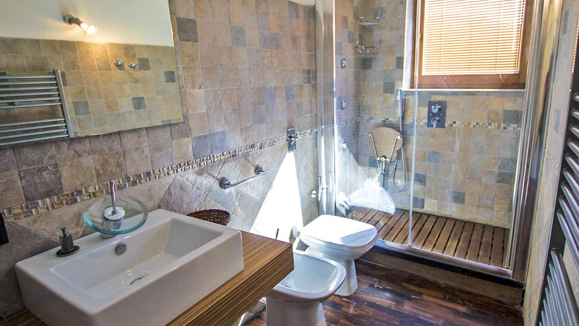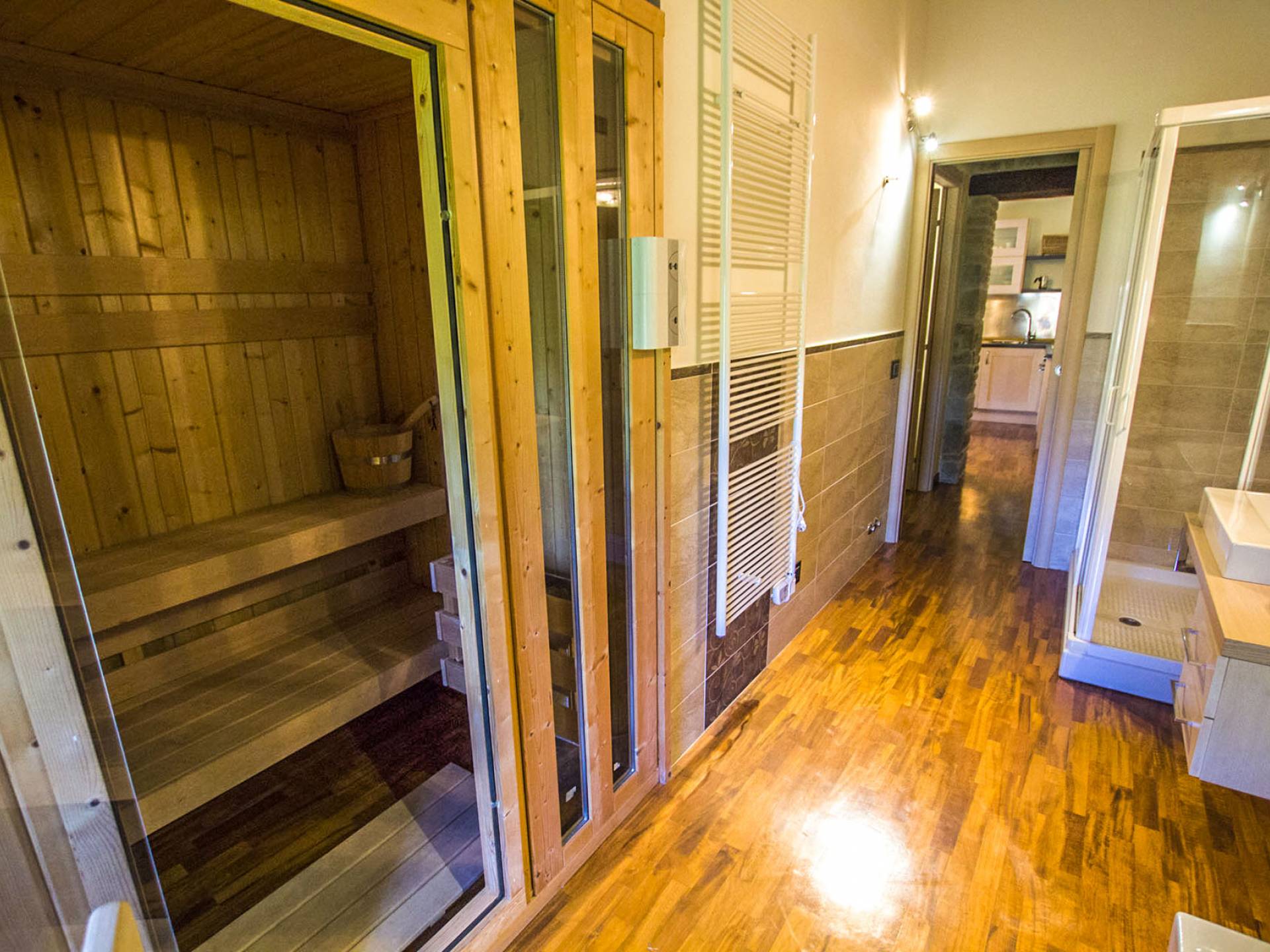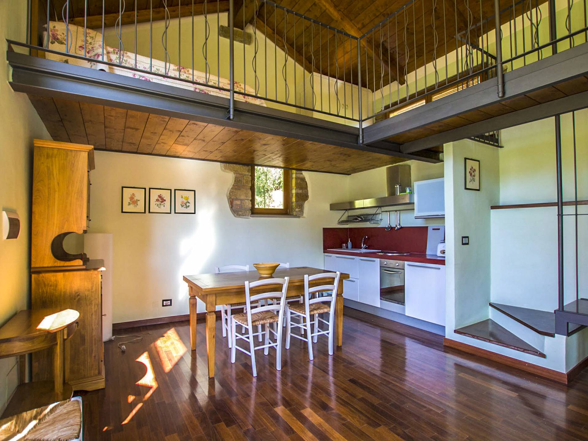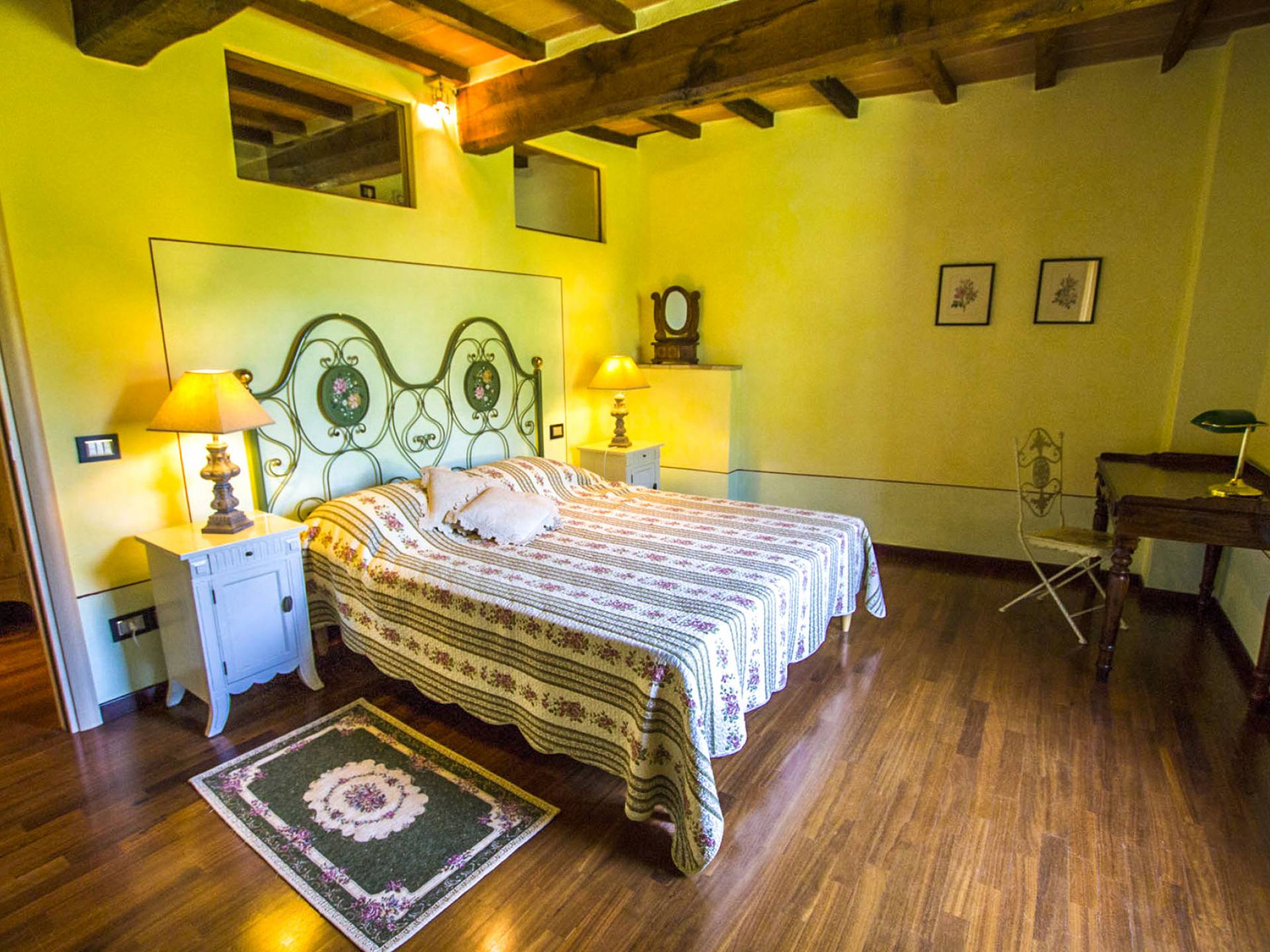 The interiors are light and airy, with floors that range between artisan terracotta and parquet. The wooden ceilings give a rustic air and at the same time refined to all spaces. The 6 apartments can accommodate a total of 19 people, divided into 9 comfortable double rooms and 2 single rooms. Each room is characterized by typical rustic elements of local craftsmanship. In addition to the 10 bathrooms equipped with all modern comforts, guests also have a common room with double ovens and a stove capable of accommodating up to 25 people.
