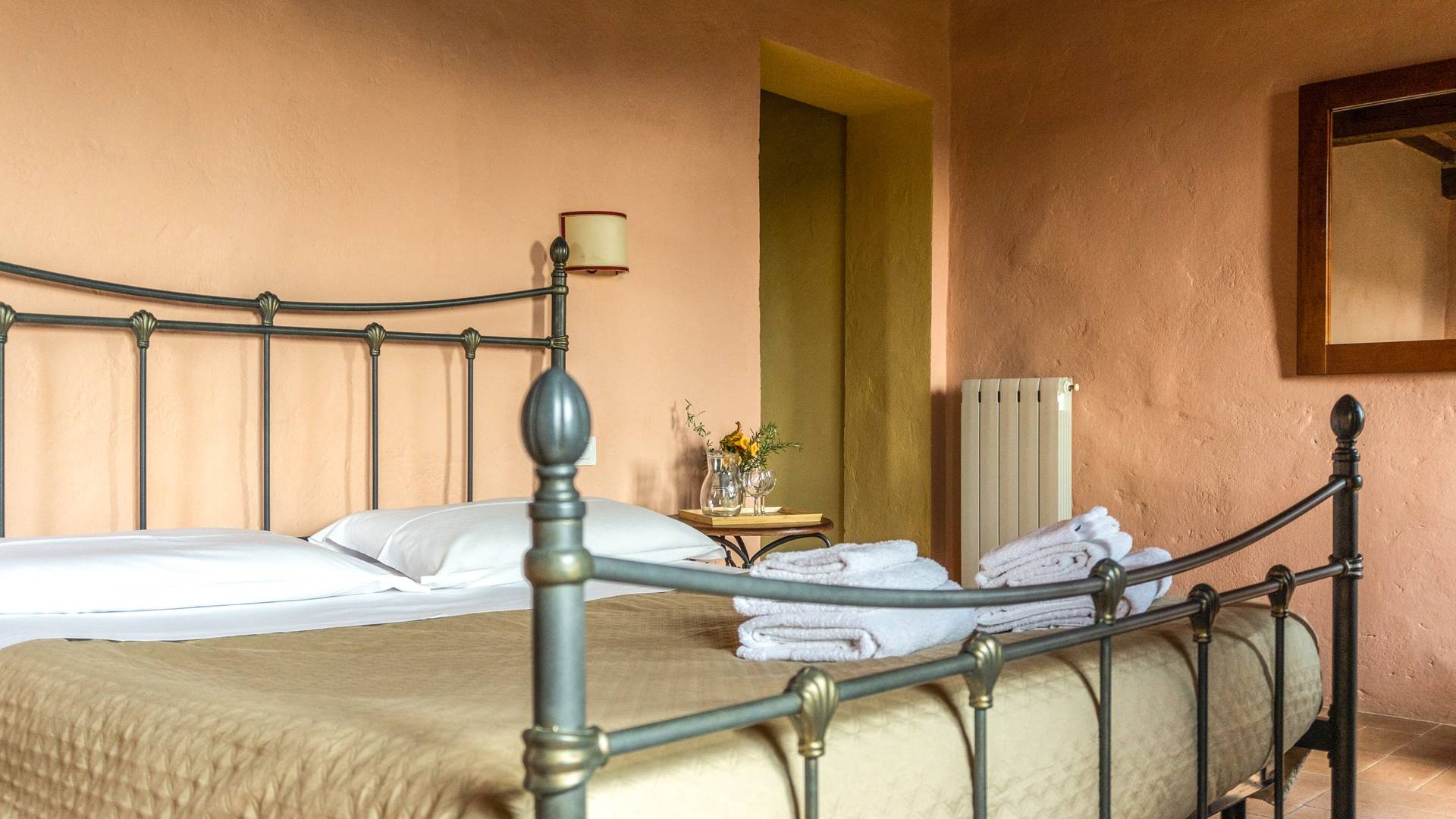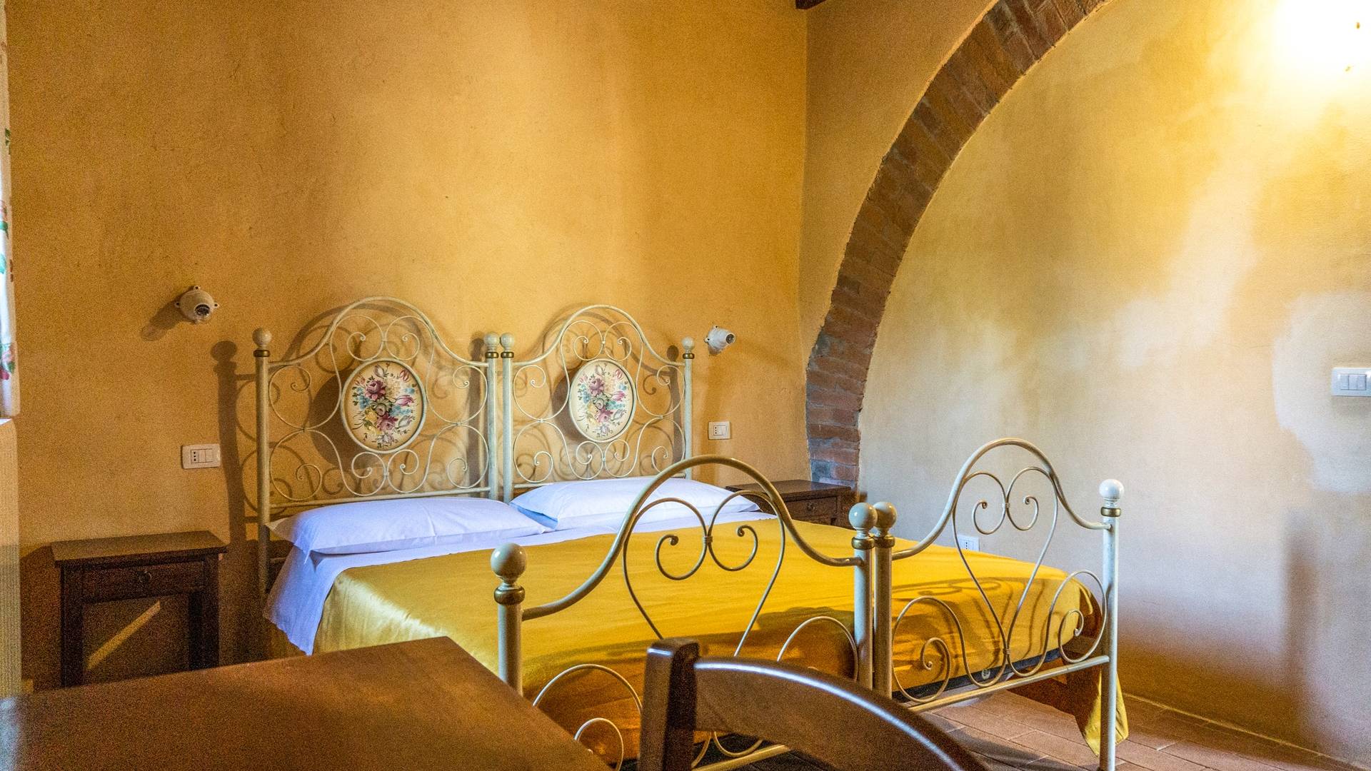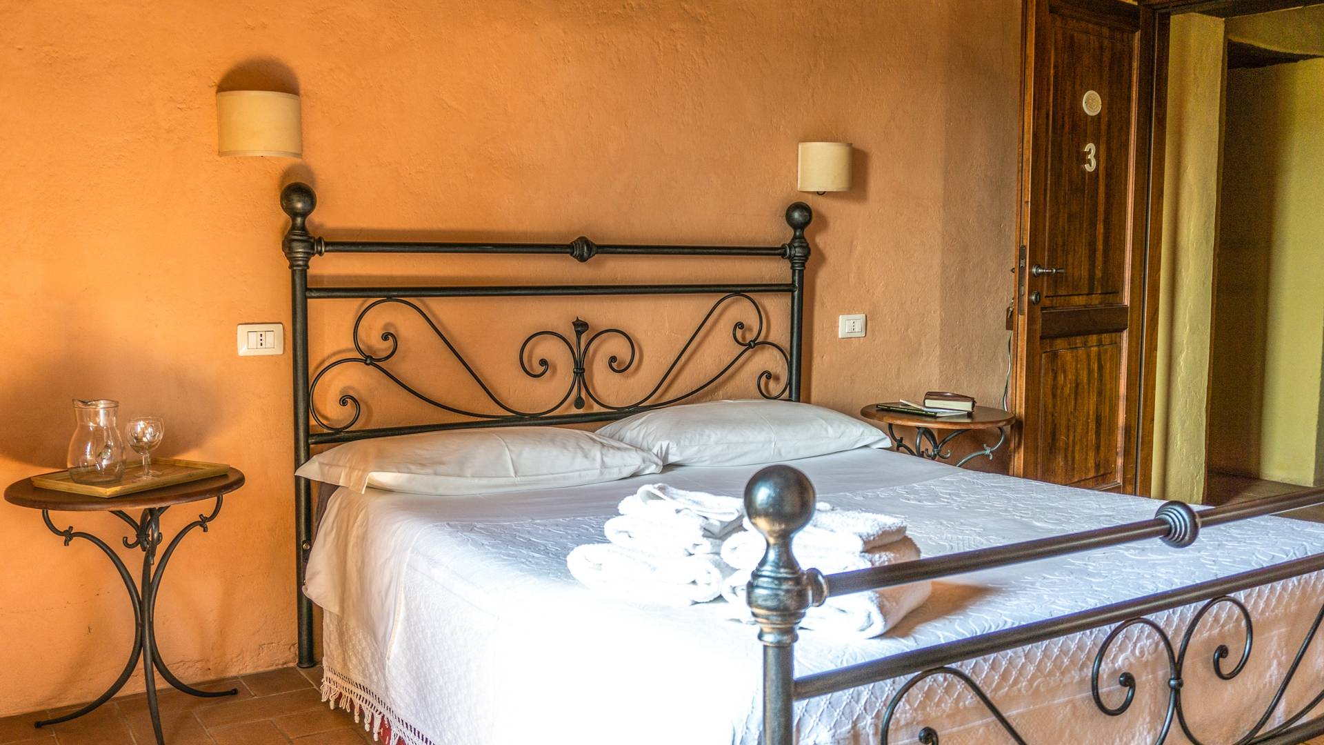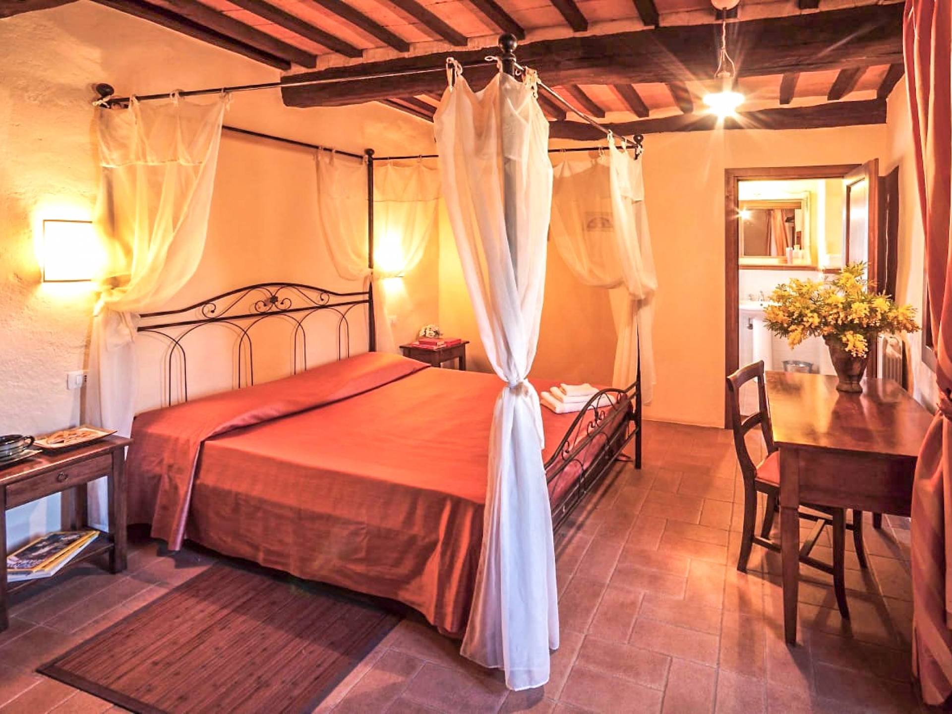 In the sleeping area, with brightly colored walls, four-poster beds, terracotta floors, wooden beams on the ceilings, walnut writing desks, painted wrought iron headboards, bathroom furniture made by the skilled hands of the Umbrian artisans, will make you find the dreamy atmosphere that inspired the tales of a thousand and one nights, that began with “Once upon a time …”