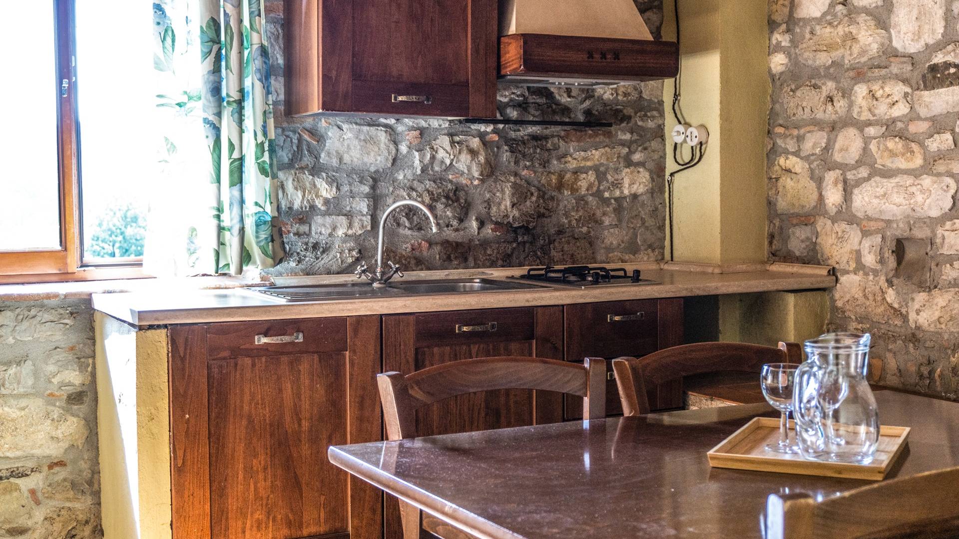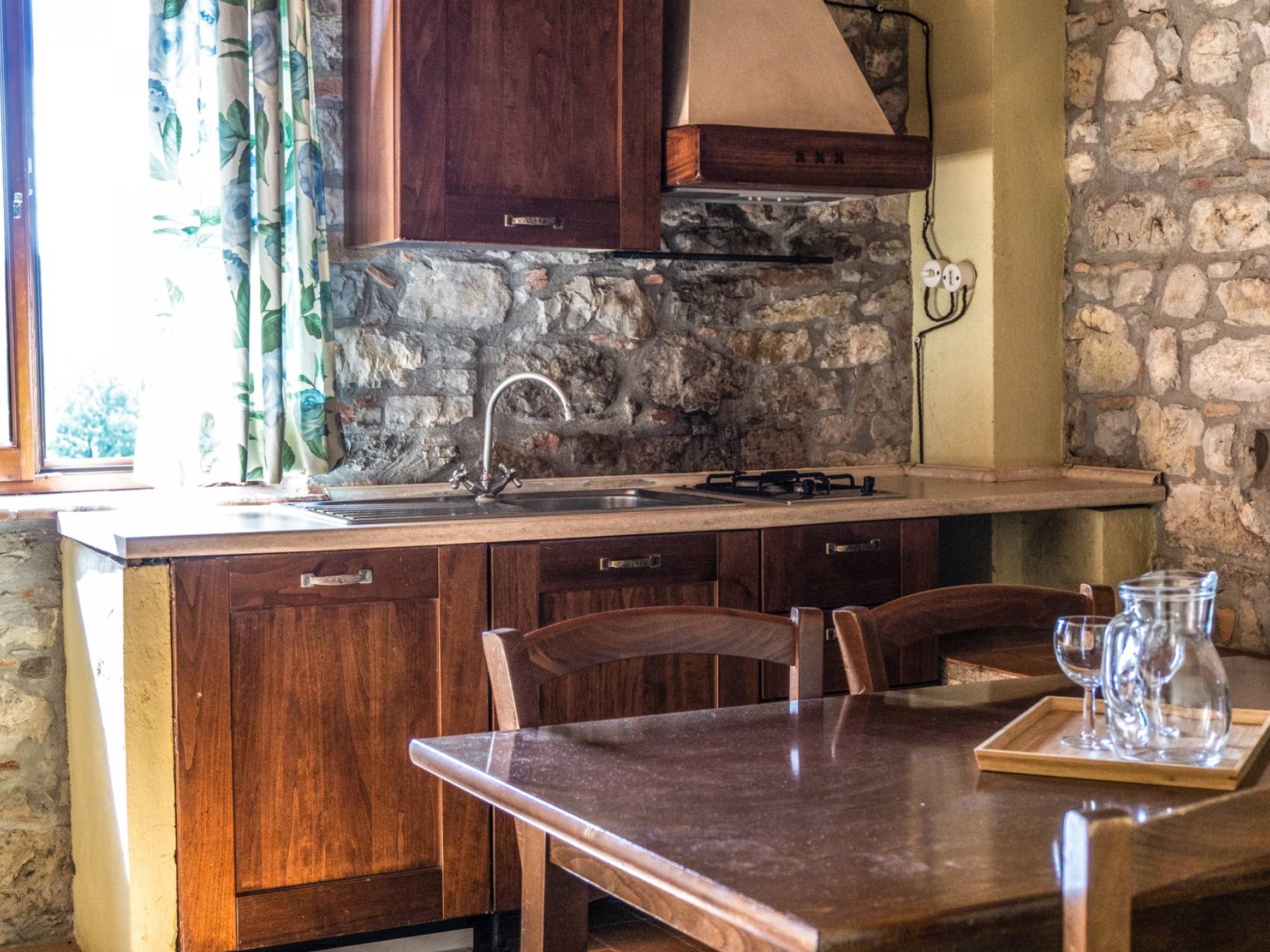 The internal rooms with fireplace, the stone walls, the details of the exposed electrical system, and the kitchen with the old sink in grit, the old majolica tiles, and many other references to the past are also large. For unforgettable dinners in the moonlight, you can easily sit outside.
