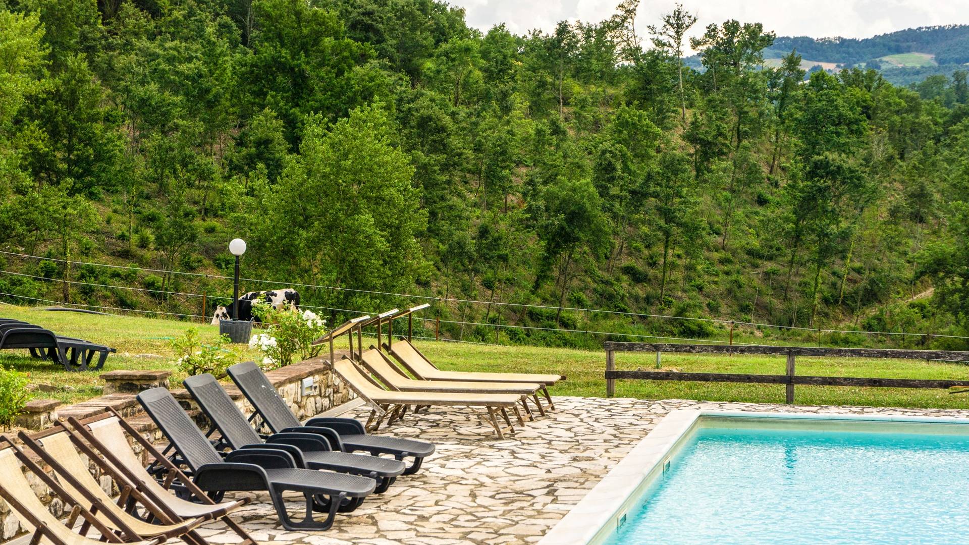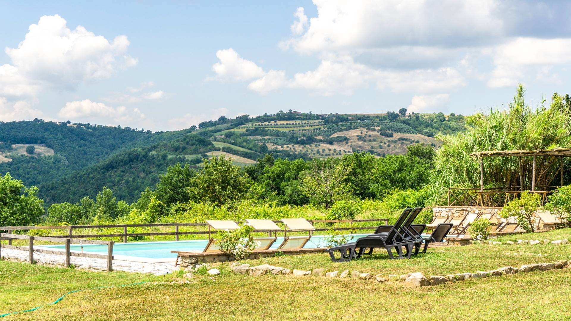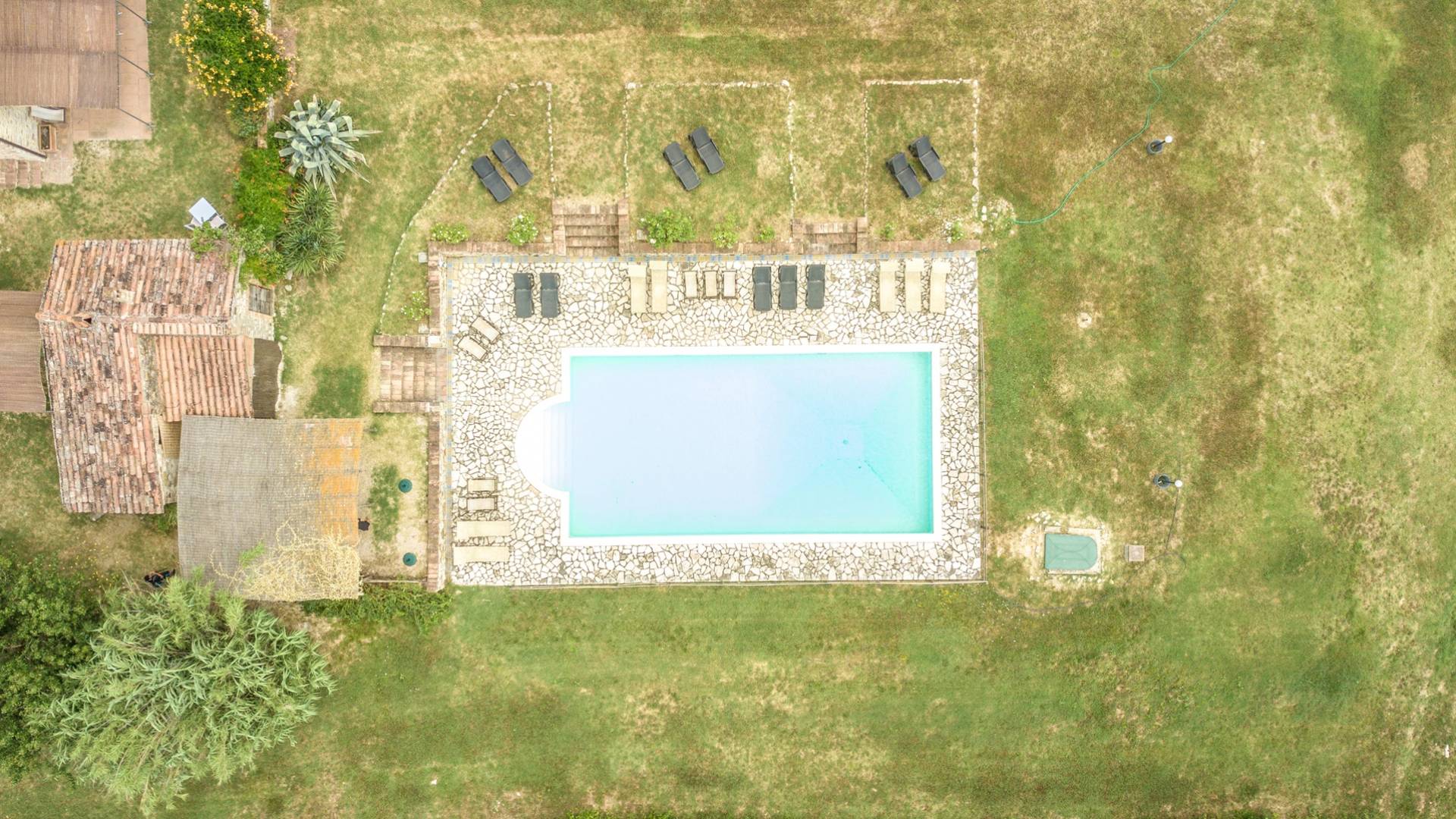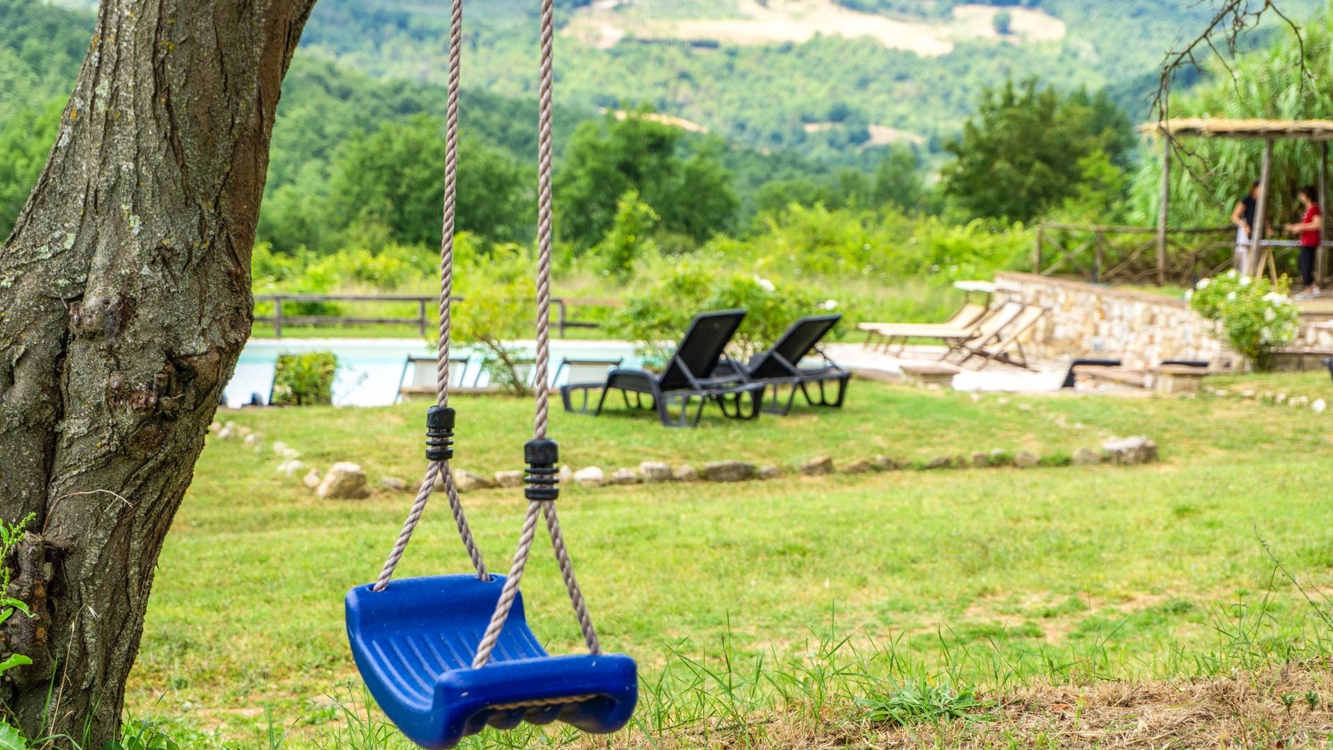 Lots of outdoor space at your disposal, where you can rest and sunbathe or where you can enjoy beautiful walks in contact with nature. Vegetable and chicken coop products are also available, with organic vegetables and fresh eggs practically all year round. Outside there is also a beautiful swimming pool, overlooking the Umbrian hills, which opens onto a large green lawn with parasols and deck chairs. Enjoy also the pergola with a small library or the large raised terrace with a wood oven and barbecue for the picnic. The property also boasts an old barn that has been transformed into an interesting multipurpose facility capable of hosting rooms for yoga, play or relaxation, and conviviality. Outside there is also a volleyball court, nearby there are tennis courts and a riding stable.