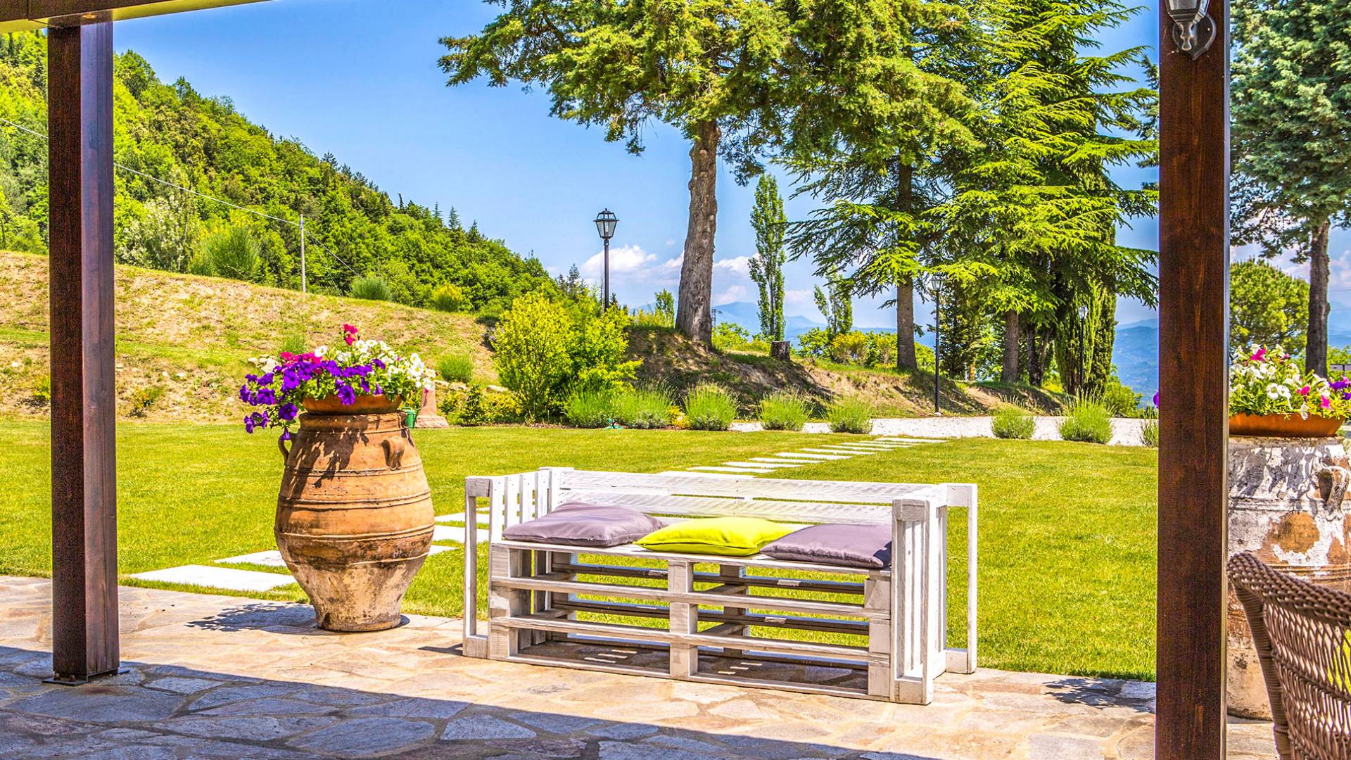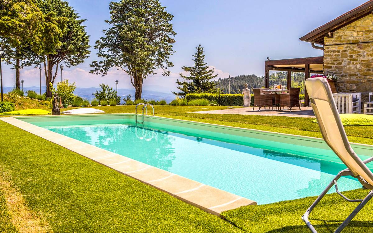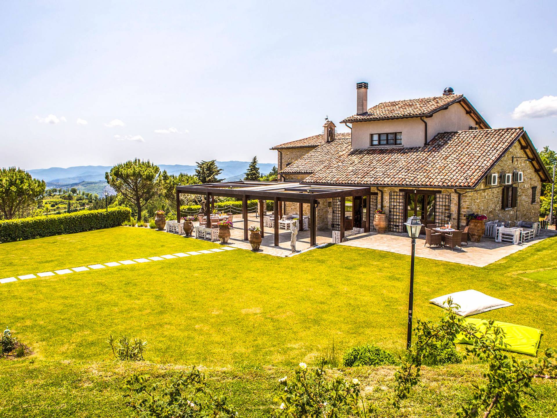 Villa Panorama Umbria is a luxury villa rental with 7 bedrooms and a private pool. At just a ten minutes drive from the charming Città di Castello, on a peak at more than 700 meters high, where you will breathe fresh air even during the hot summer days, Villa Panorama is an enchanted viewpoint on four regions: Umbria, Tuscany, Emilia Romagna, and Le Marche.