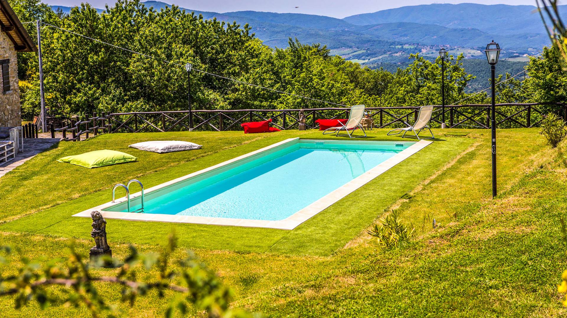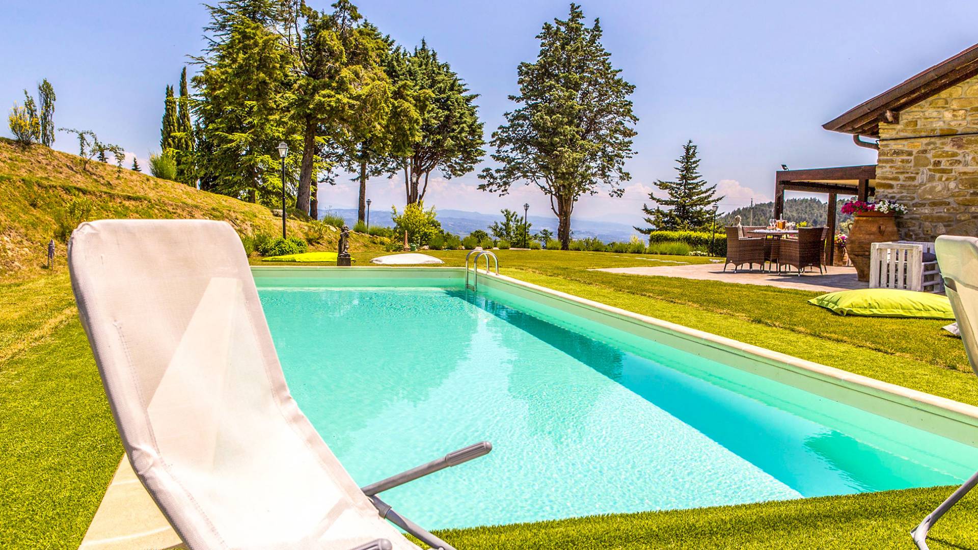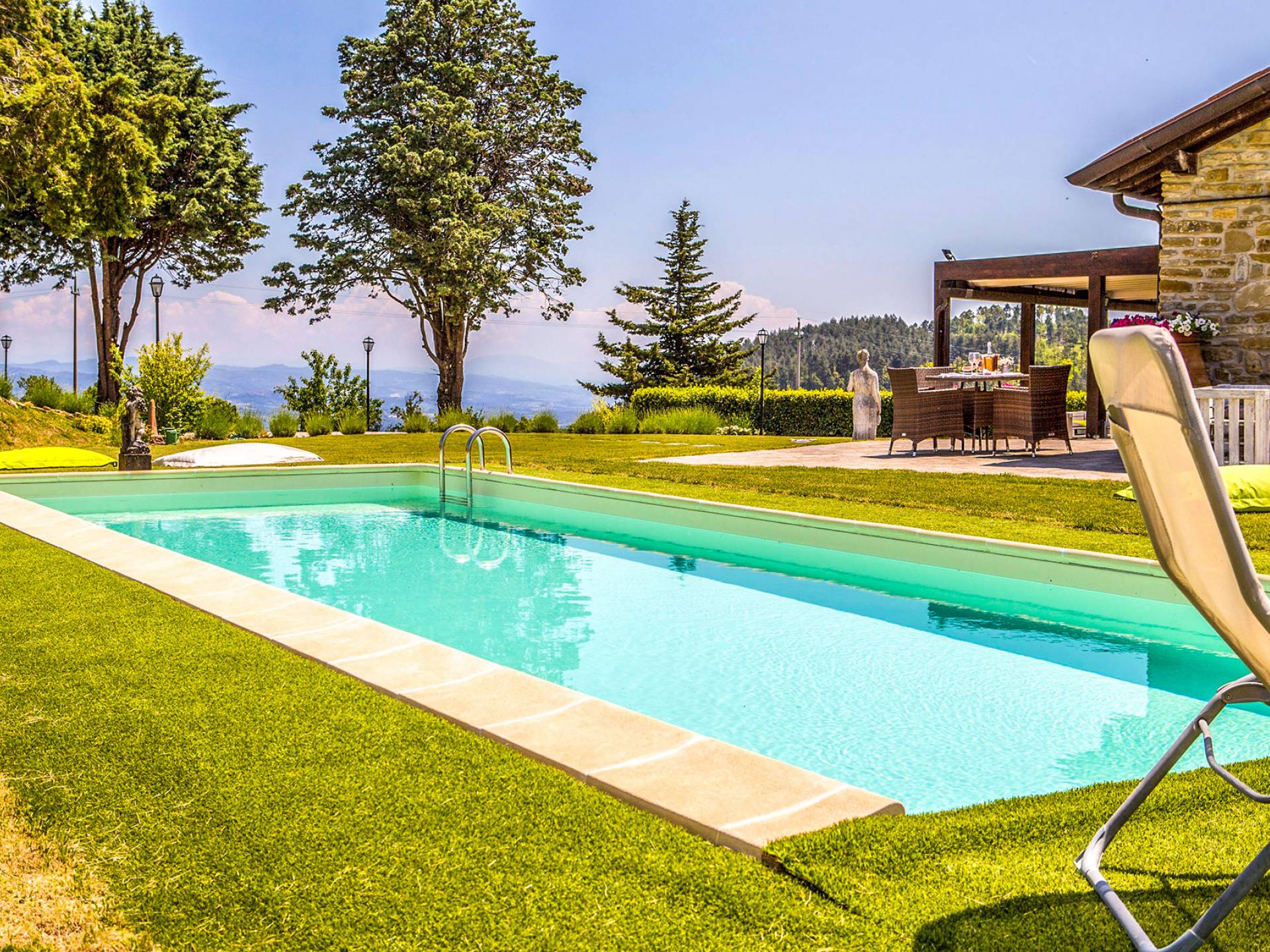 Villa Panorama Umbria is a luxury villa rental with 7 bedrooms and a private pool. At just a ten minutes drive from the charming Città di Castello, on a peak at more than 700 meters high, where you will breathe fresh air even during the hot summer days, Villa Panorama is an enchanted viewpoint on four regions: Umbria, Tuscany, Emilia Romagna, and Le Marche.
