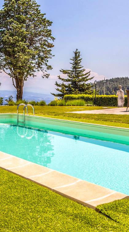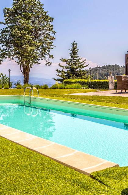 Surrounded by a property of 40 hectares of land, Villa Panorama Umbria is the ideal place to reach, even by foot, Mount Cedrone, the highest point of the Umbrian Valtiberina. For those who prefer instead to dedicate their time to themselves, whether through moments of conviviality in a group or intimacy with their family or also organizing exclusive gatherings, Villa Panorama has a huge park where there is an enchanting infinity pool overlooking the surrounding hills and the valley underneath. The property also offers truffle hunting and cooking classes.
