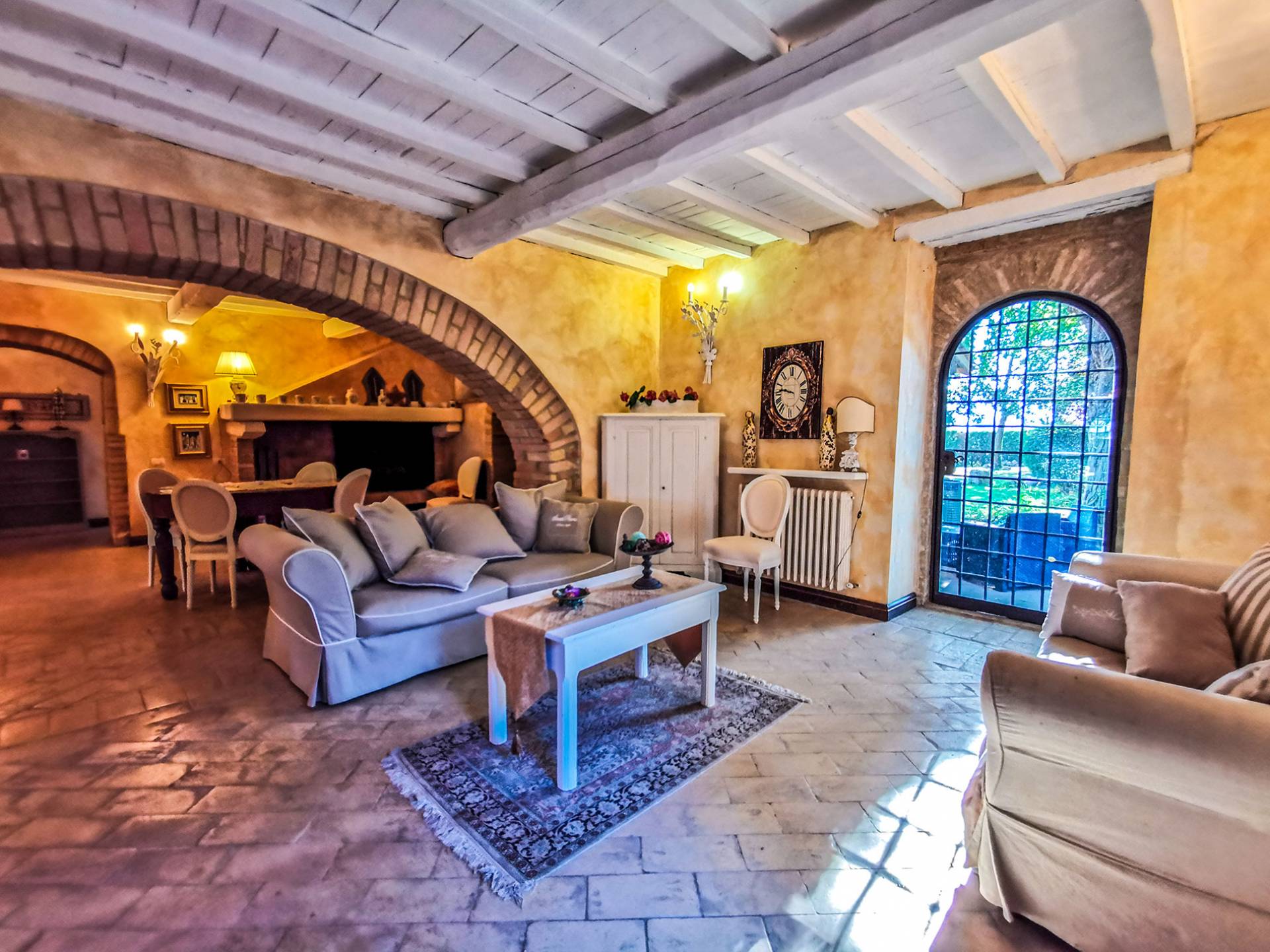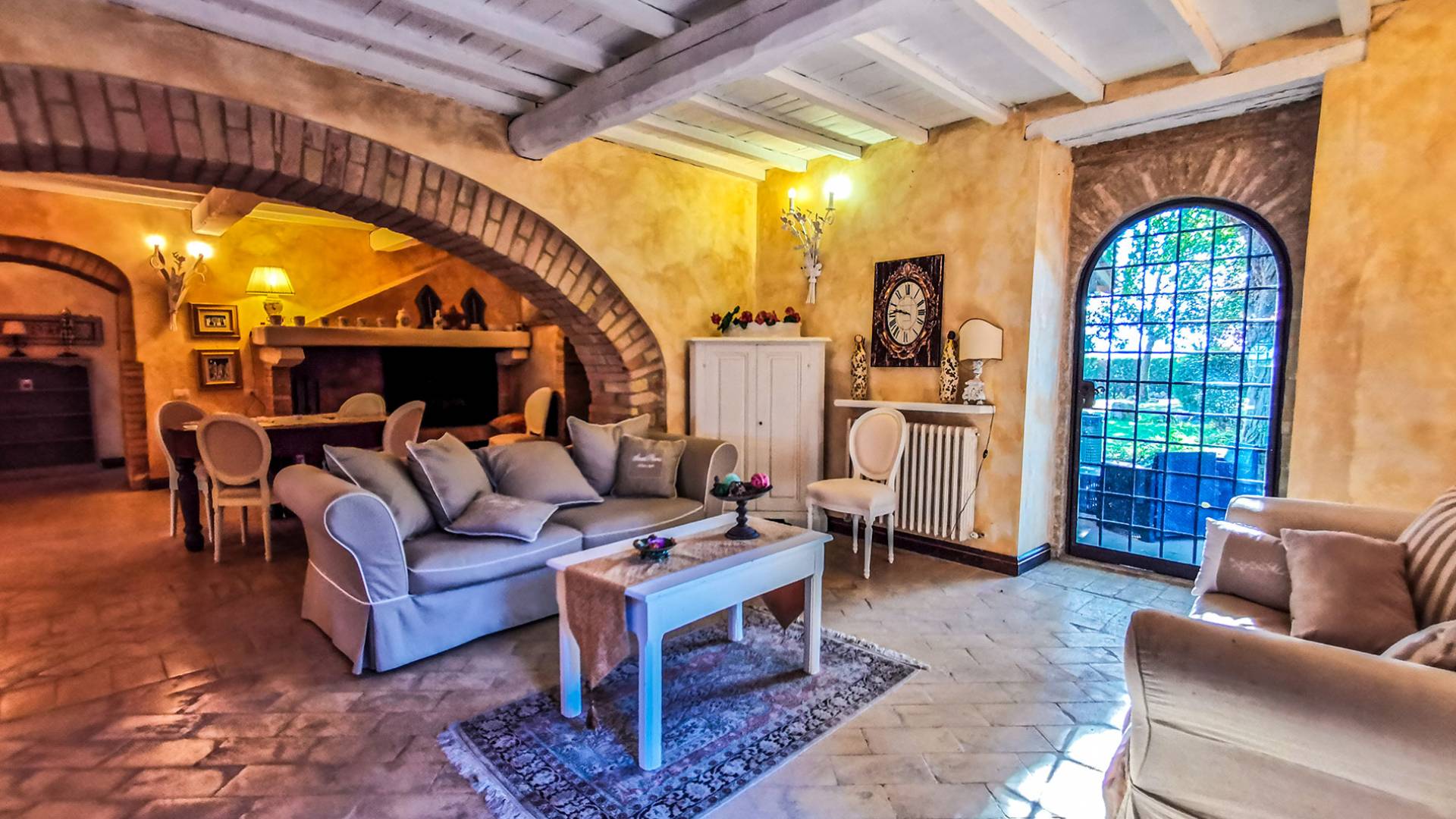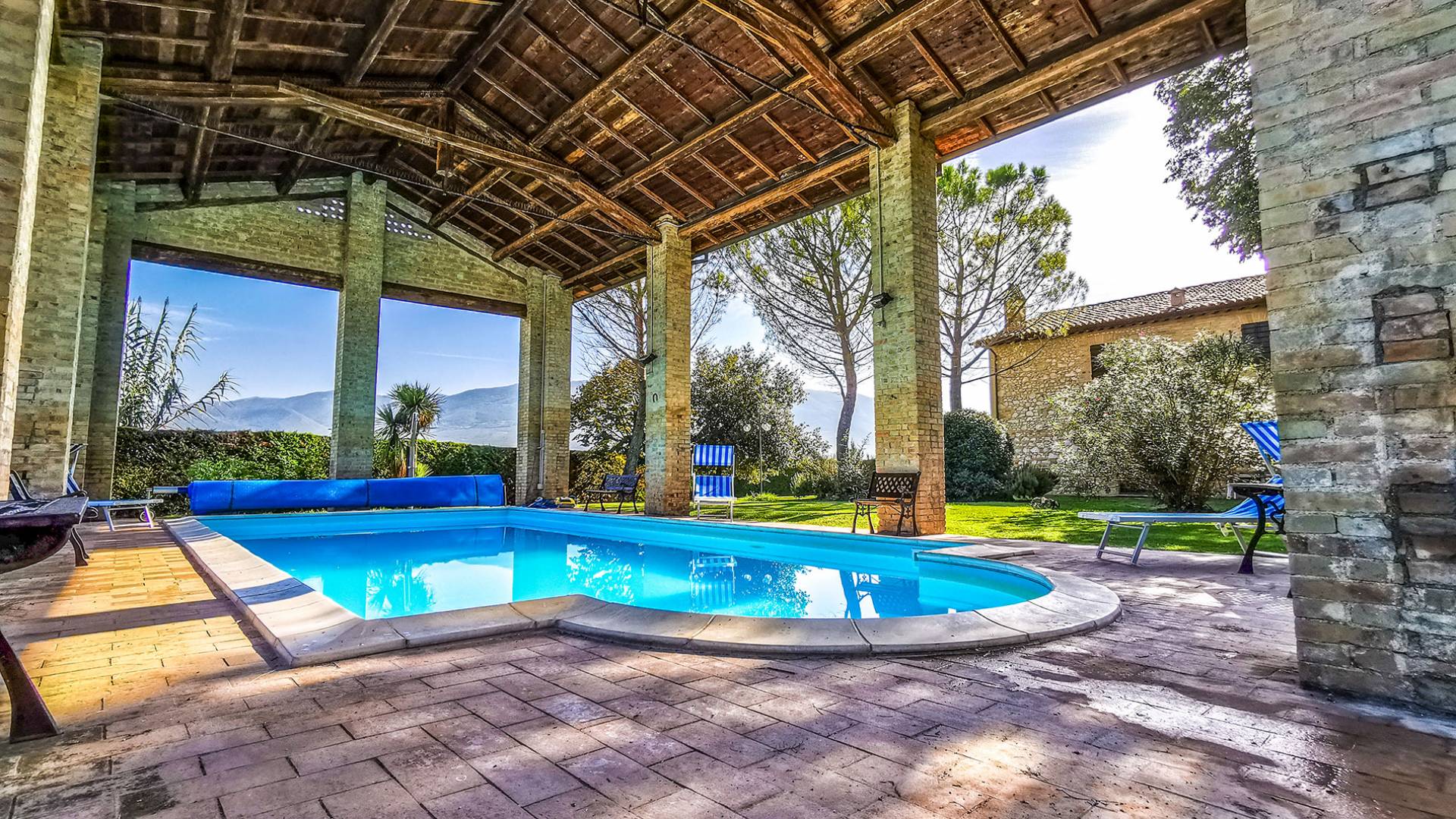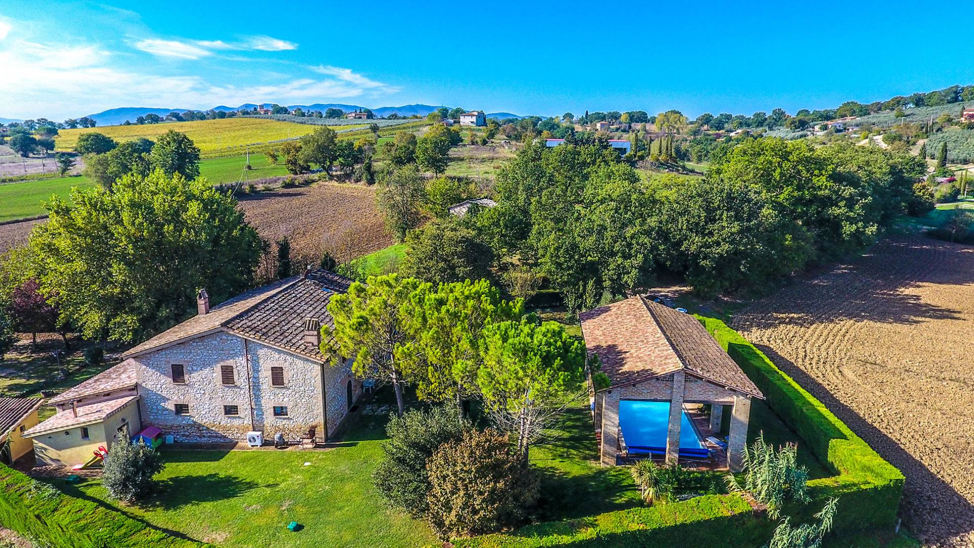 Arranged on two levels, the structure is able to receive up to 12 people, giving them the opportunity to enjoy, as well as a strategic position that allows reaching characteristic towns such as Spoleto, Todi, Perugia, and Assisi in a few minutes, even a large outdoor pool, but protected by a roof, and a bright covered veranda in the center of which is a relaxing Jacuzzi tub. The ground floor consists of a large living room, dining room, kitchen, double bedroom with a private bathroom with shower, utility room, service bathroom, and bright enclosed veranda. On the first floor, there is a small hallway, three double
