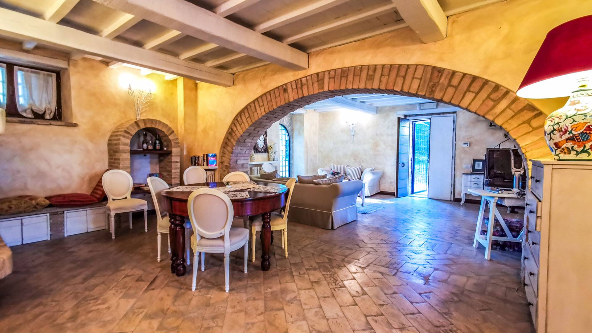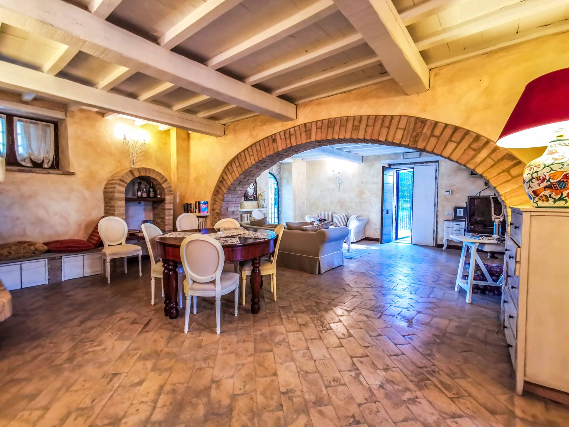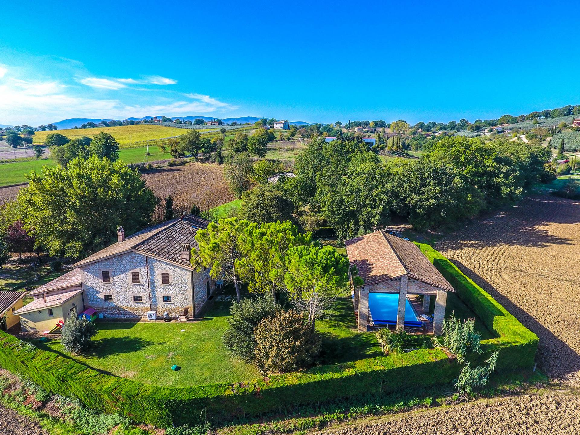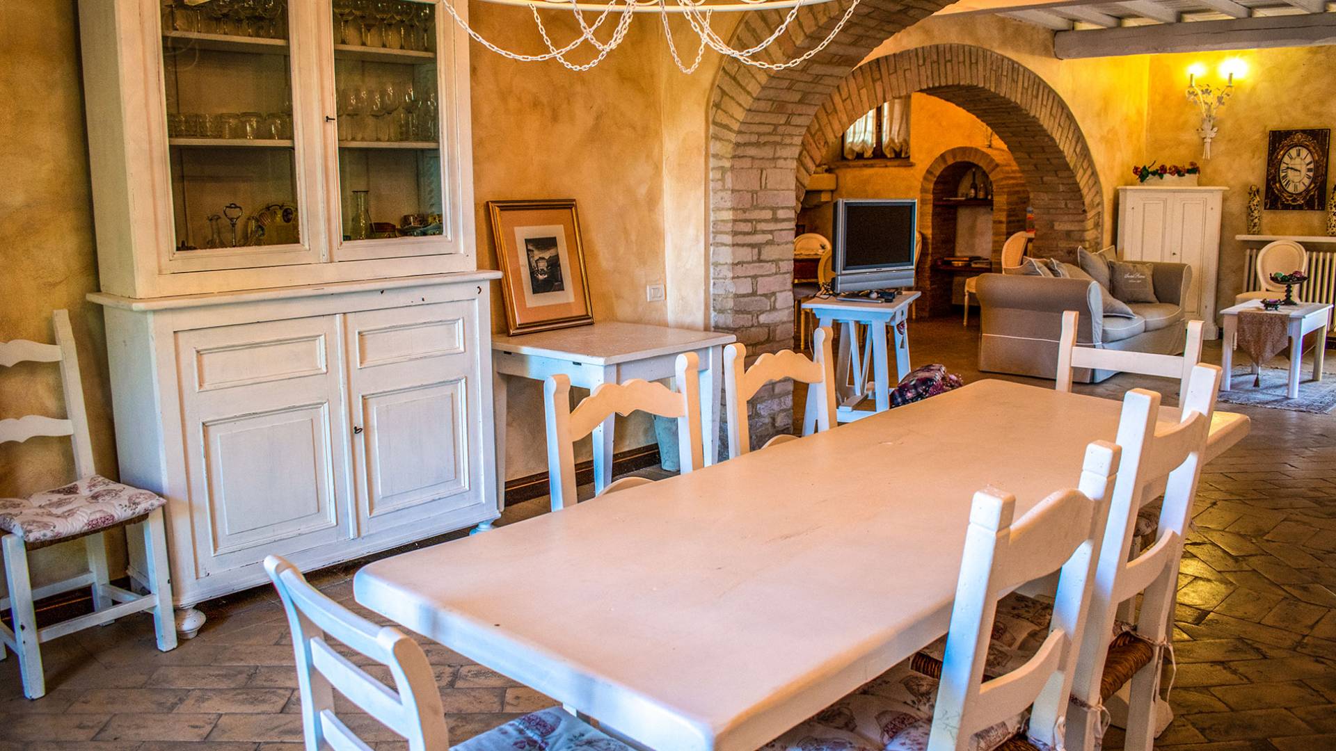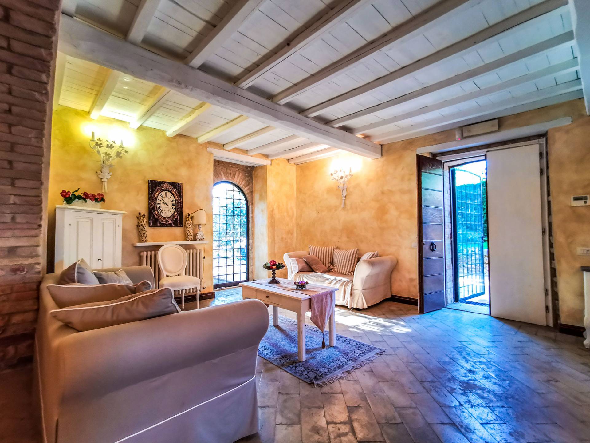 Arranged on two levels, the structure is able to receive up to 12 people, giving them the opportunity to enjoy, as well as a strategic position that allows reaching characteristic towns such as Spoleto, Todi, Perugia, and Assisi in a few minutes, even a large outdoor pool, but protected by a roof, and a bright covered veranda in the center of which is a relaxing Jacuzzi tub. The ground floor consists of a large living room, dining room, kitchen, double bedroom with a private bathroom with shower, utility room, service bathroom, and bright enclosed veranda. On the first floor, there is a small hallway, three double