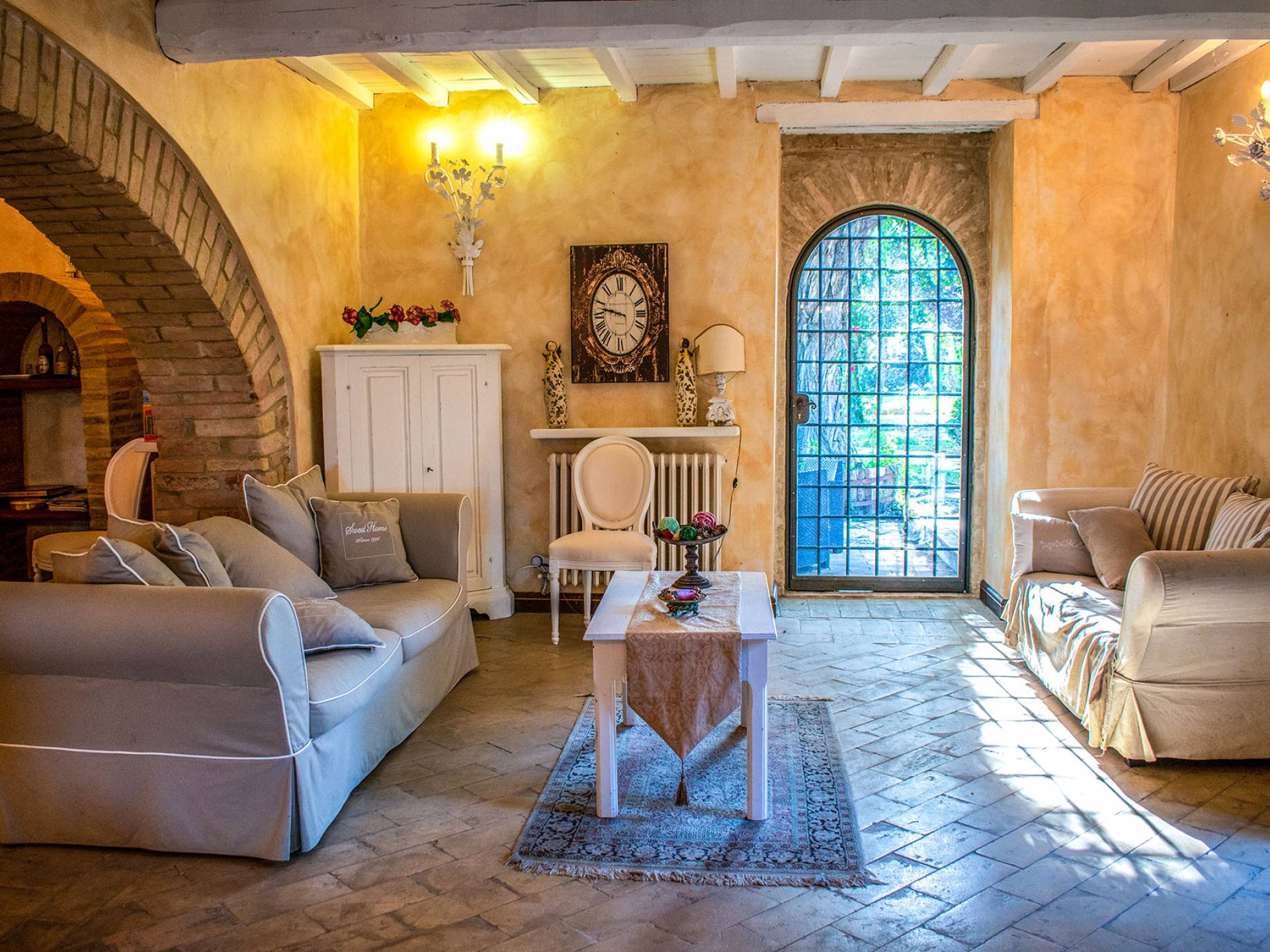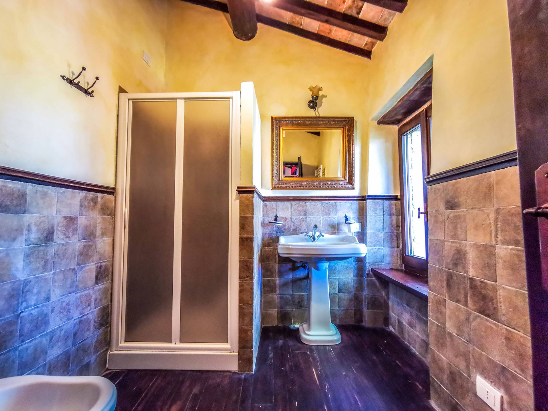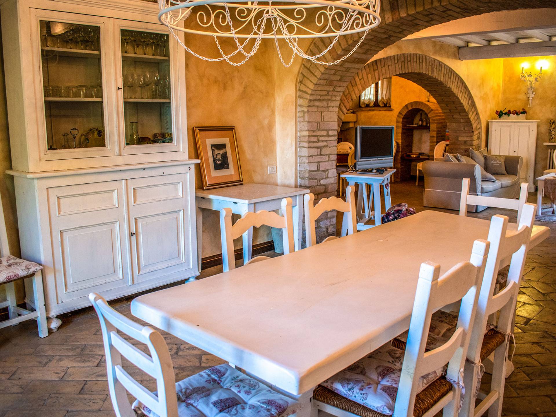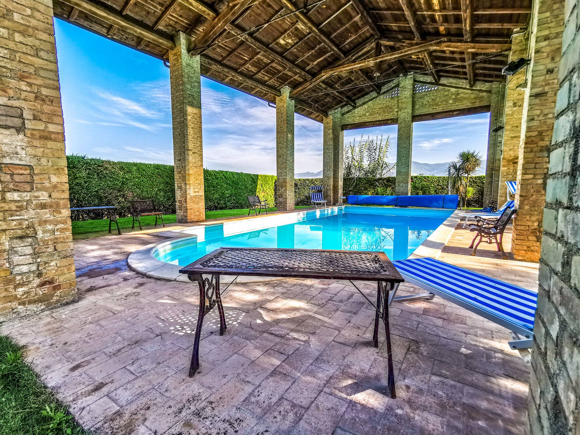 Arranged on two levels, the structure is able to receive up to 12 people, giving them the opportunity to enjoy, as well as a strategic position that allows reaching characteristic towns such as Spoleto, Todi, Perugia, and Assisi in a few minutes, even a large outdoor pool, but protected by a roof, and a bright covered veranda in the center of which is a relaxing Jacuzzi tub. The ground floor consists of a large living room, dining room, kitchen, double bedroom with a private bathroom with shower, utility room, service bathroom, and bright enclosed veranda. On the first floor, there is a small hallway, three double