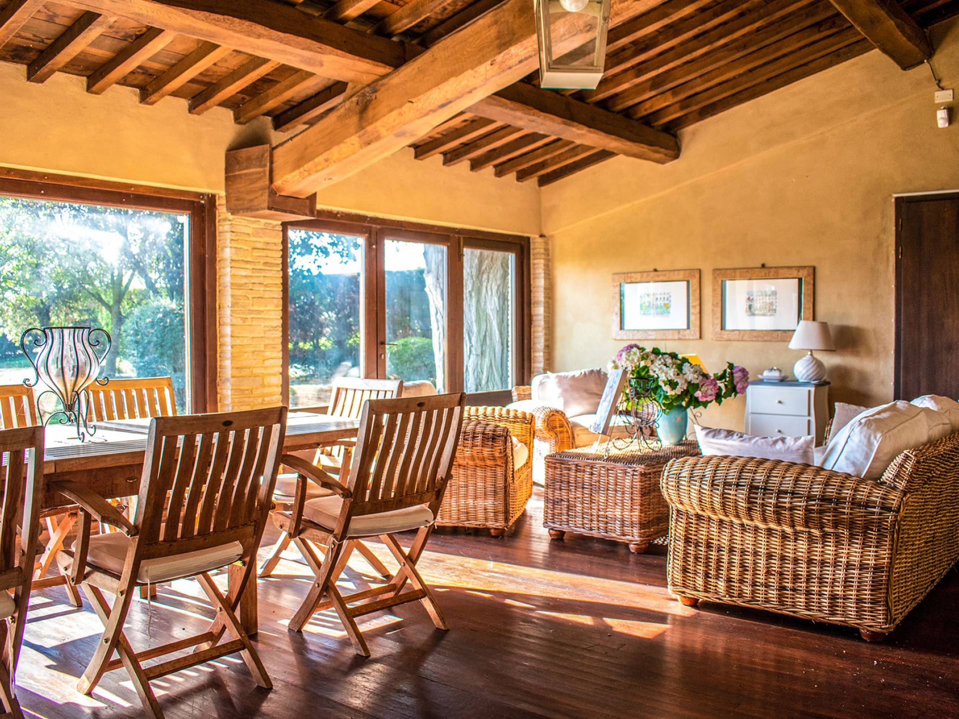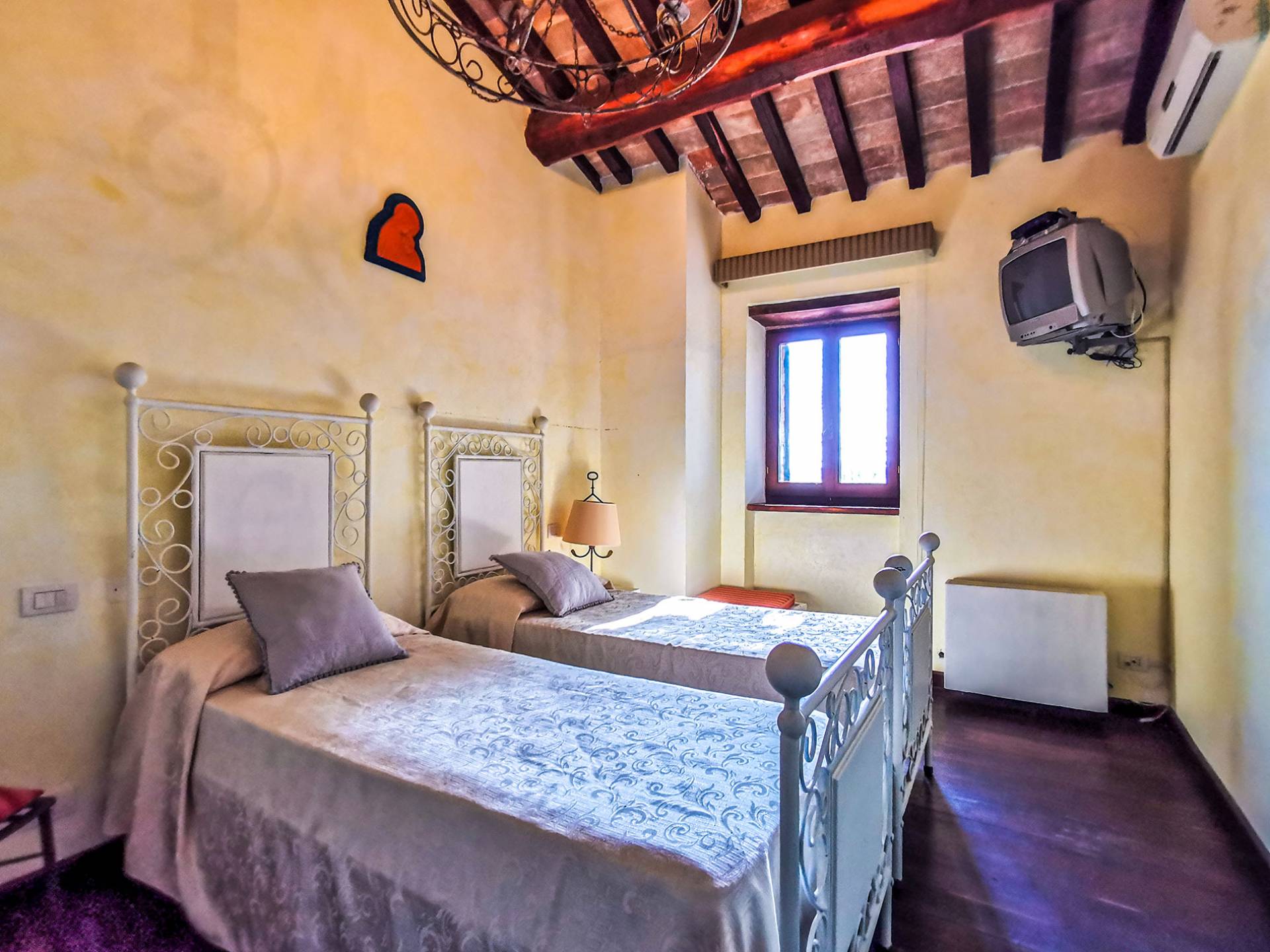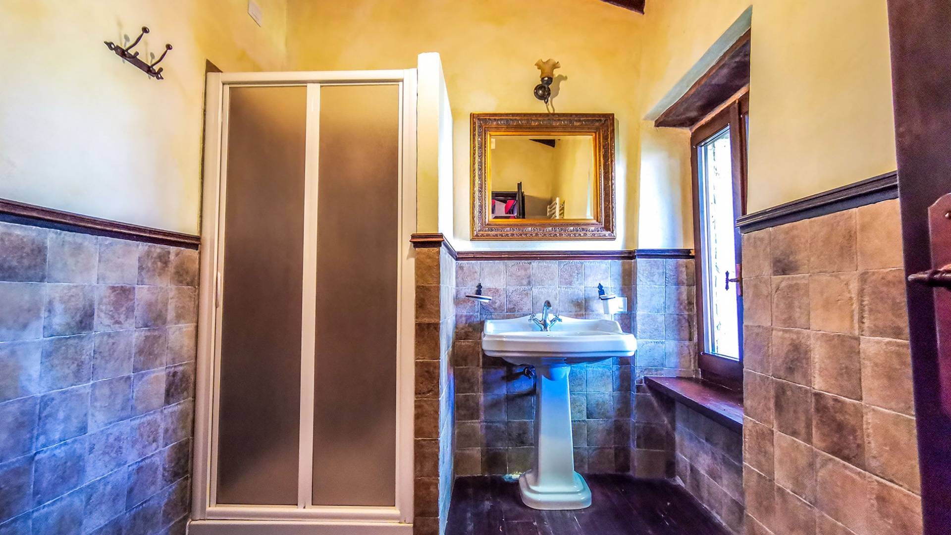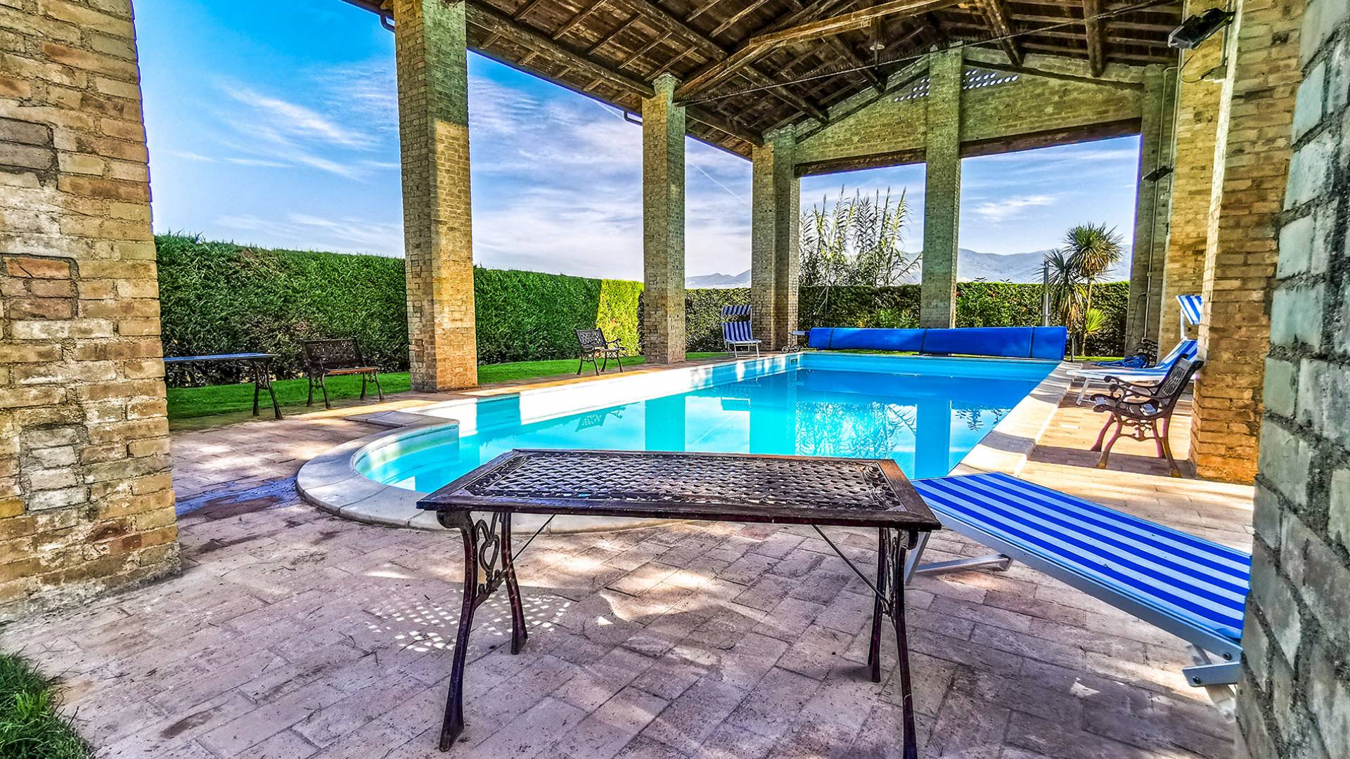 Arranged on two levels, the structure is able to receive up to 12 people, giving them the opportunity to enjoy, as well as a strategic position that allows reaching characteristic towns such as Spoleto, Todi, Perugia, and Assisi in a few minutes, even a large outdoor pool, but protected by a roof, and a bright covered veranda in the center of which is a relaxing Jacuzzi tub. The ground floor consists of a large living room, dining room, kitchen, double bedroom with a private bathroom with shower, utility room, service bathroom, and bright enclosed veranda. On the first floor, there is a small hallway, three double